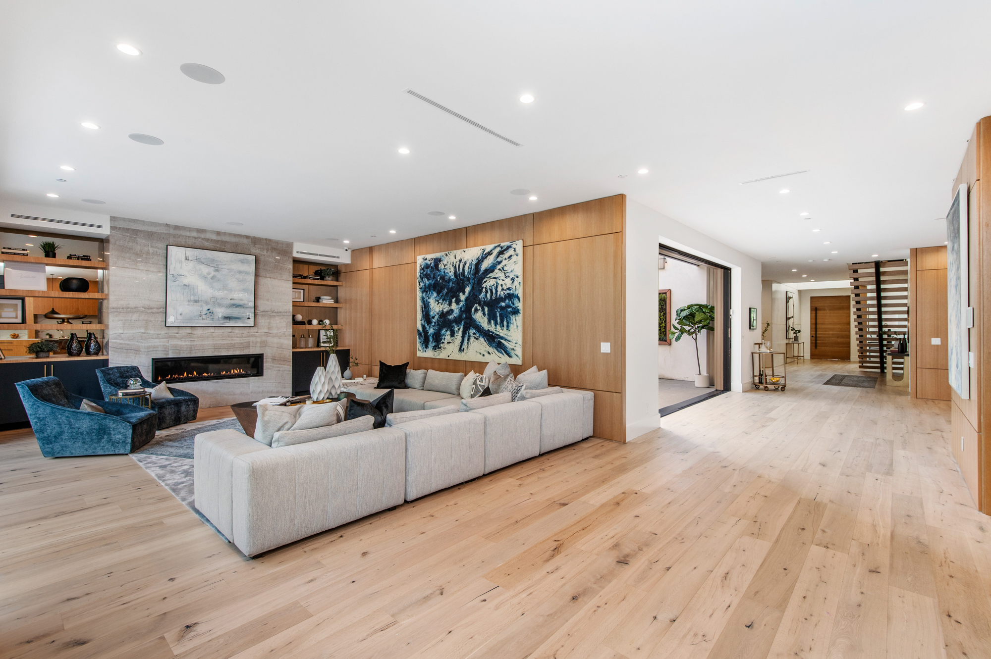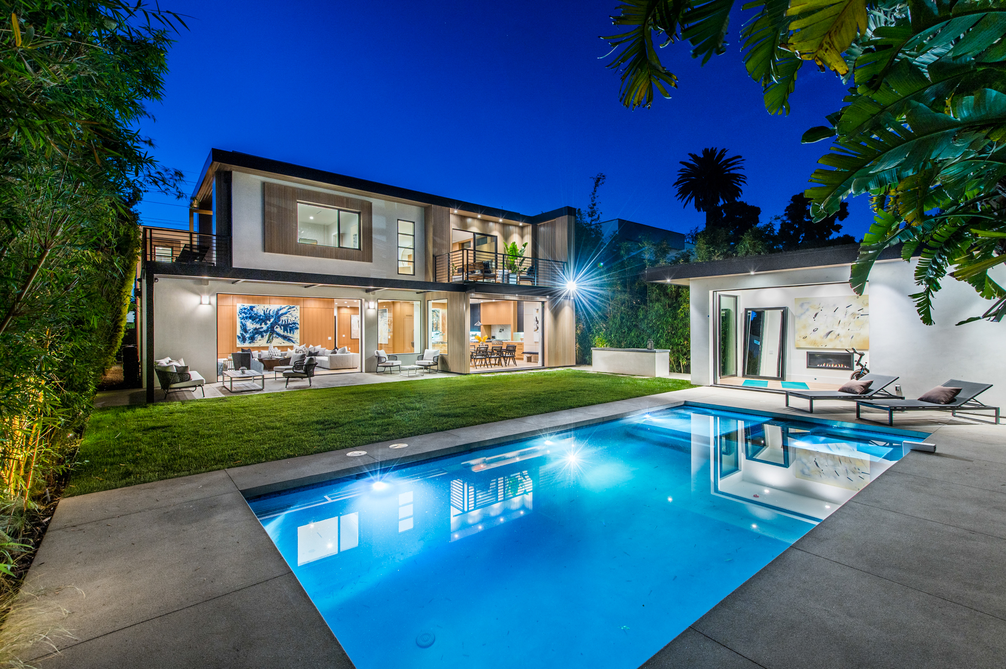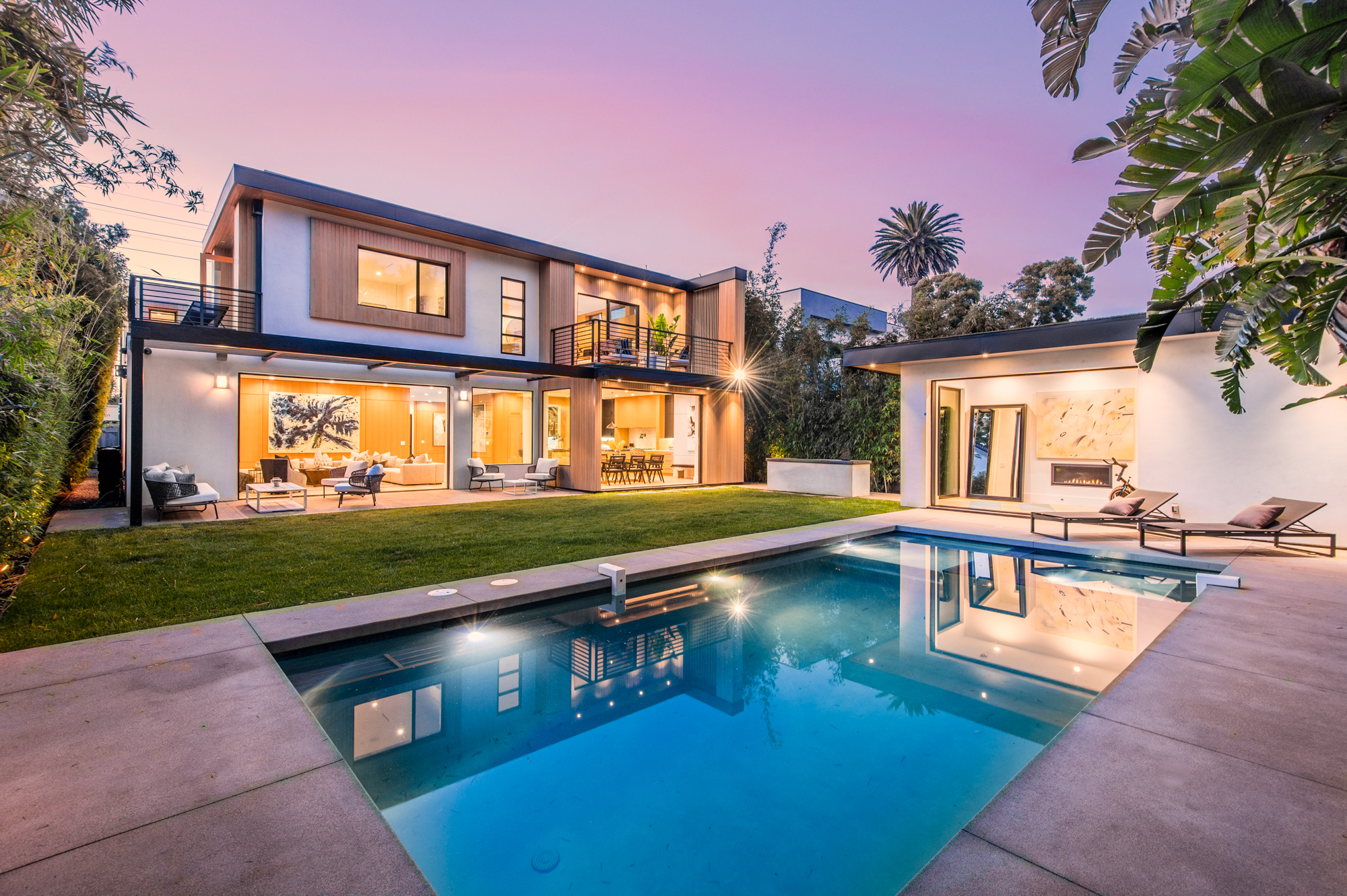 Uniquely designed architectural modern masterpiece situated on one of Venice’s larger lots at almost 11,000 sq. ft. Stroll to Abbot Kinney. This unparalleled property leaves nothing spared, exuding warmth, luxury, sophistication & is the epitome of the custom beach home. An expansive living room that entails a 13 ft. high ceiling. Glamorous formal dining room opens to a private indoor/ outdoor living space designed for entertaining. Custom gourmet kitchen with two center islands which overlook the lavish and illuminated family and breakfast room. Pocket doors leading to your very own tropical oasis. Secluded backyard sanctuary features an entertainer’s patio, manicured grass lawn, pool, spa, sundeck, built-in bbq, fire pit and En Suite/gym overlooking the pool and spa. Master suite w/ a spa-like bath, two private balcony retreats, and a spacious walk-in closet. Additional features include, 5 bedrooms, 6.5 bathrooms, home theater, wine cellar, floating staircase, expansive paneling and unparalleled craftsmanship throughout. This modern, tranquil, and custom built beach home is the ideal trophy property for the discerning buyer.