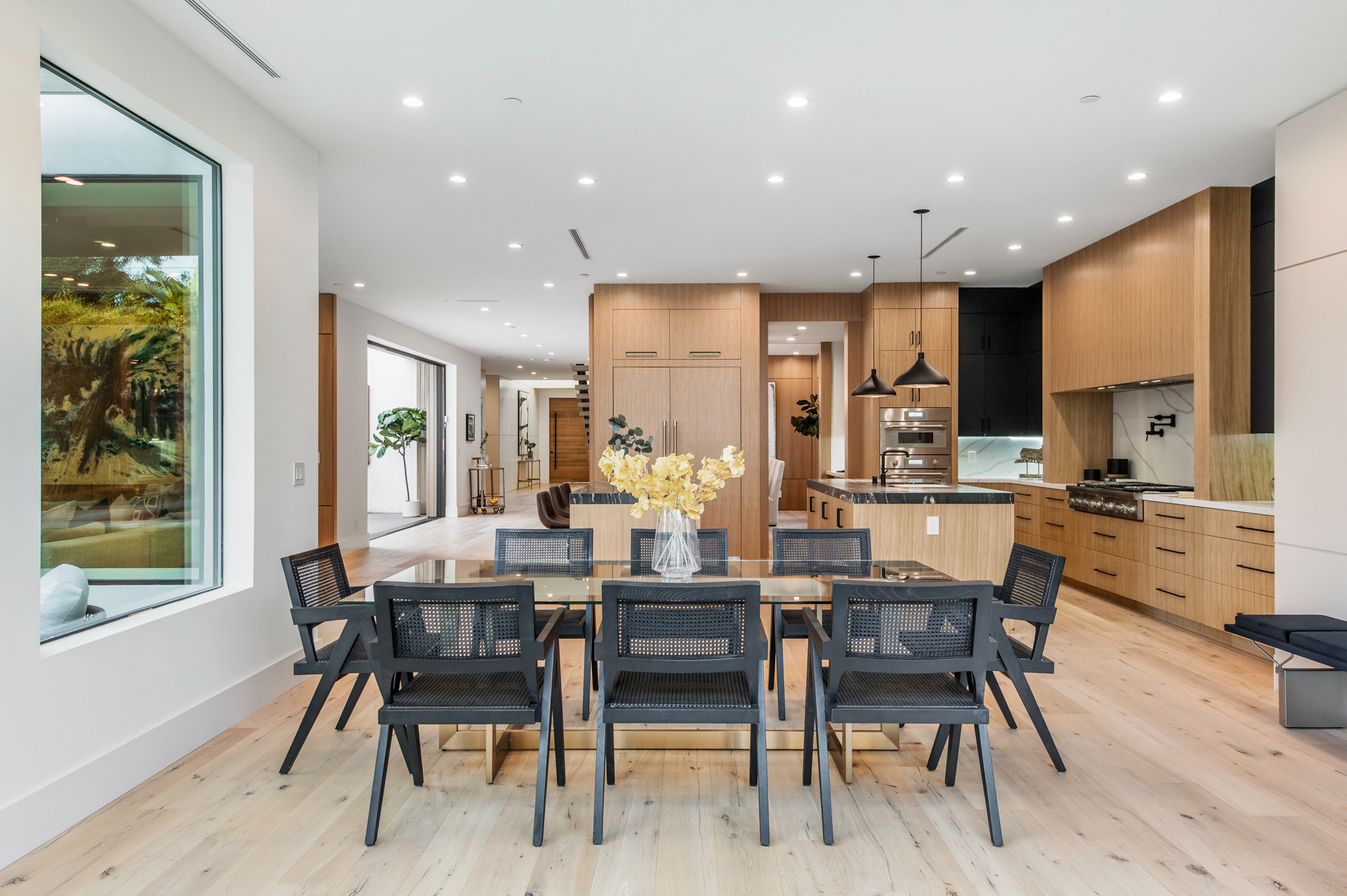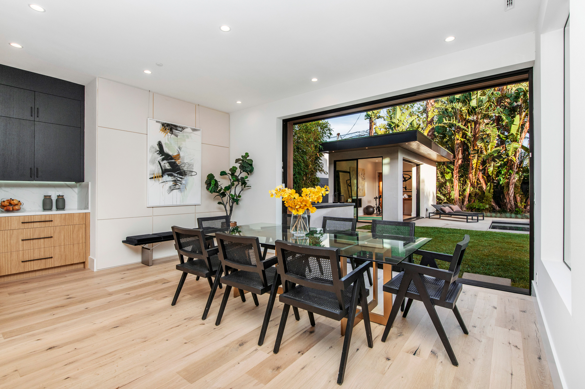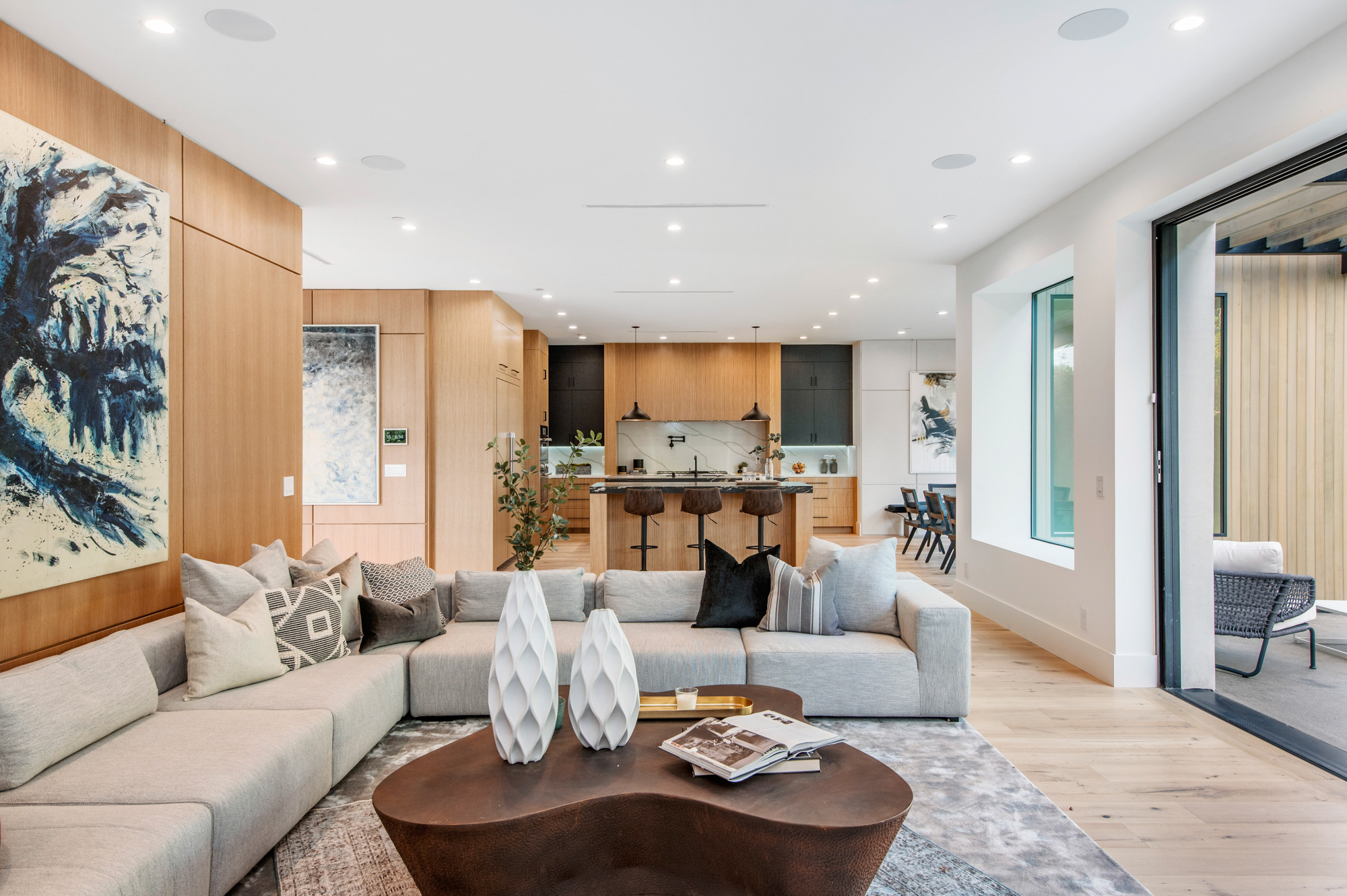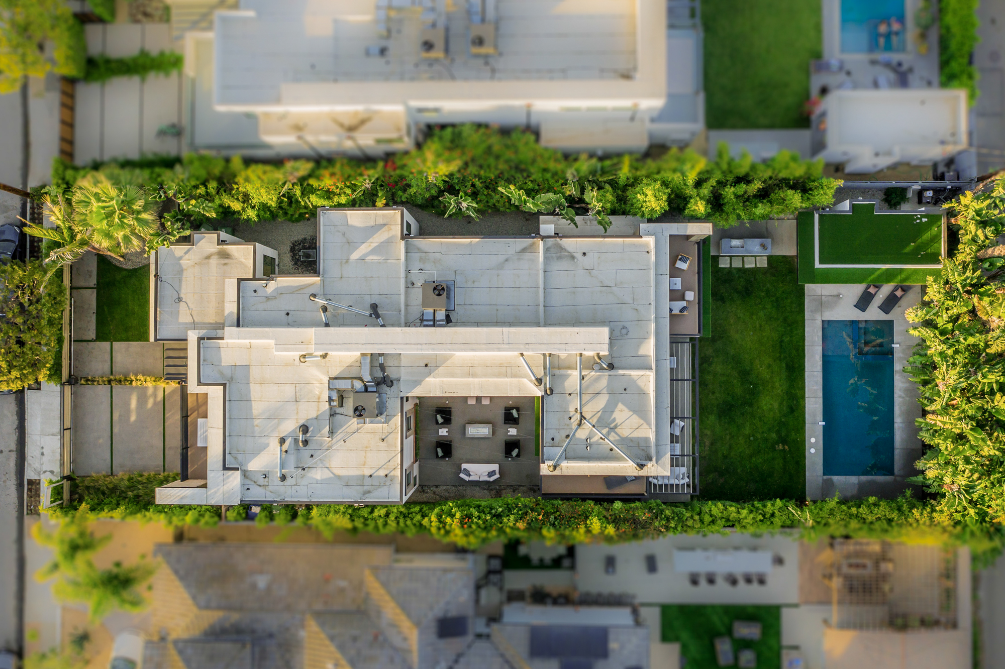 Uniquely designed architectural modern masterpiece situated on one of Venice’s larger lots at almost 11,000 sq. ft. Stroll to Abbot Kinney. This unparalleled property leaves nothing spared, exuding warmth, luxury, sophistication & is the epitome of the custom beach home. An expansive living room that entails a 13 ft. high ceiling. Glamorous formal dining room opens to a private indoor/ outdoor living space designed for entertaining. Custom gourmet kitchen with two center islands which overlook the lavish and illuminated family and breakfast room. Pocket doors leading to your very own tropical oasis. Secluded backyard sanctuary features an entertainer’s patio, manicured grass lawn, pool, spa, sundeck, built-in bbq, fire pit and En Suite/gym overlooking the pool and spa. Master suite w/ a spa-like bath, two private balcony retreats, and a spacious walk-in closet. Additional features include, 5 bedrooms, 6.5 bathrooms, home theater, wine cellar, floating staircase, expansive paneling and unparalleled craftsmanship throughout. This modern, tranquil, and custom built beach home is the ideal trophy property for the discerning buyer.