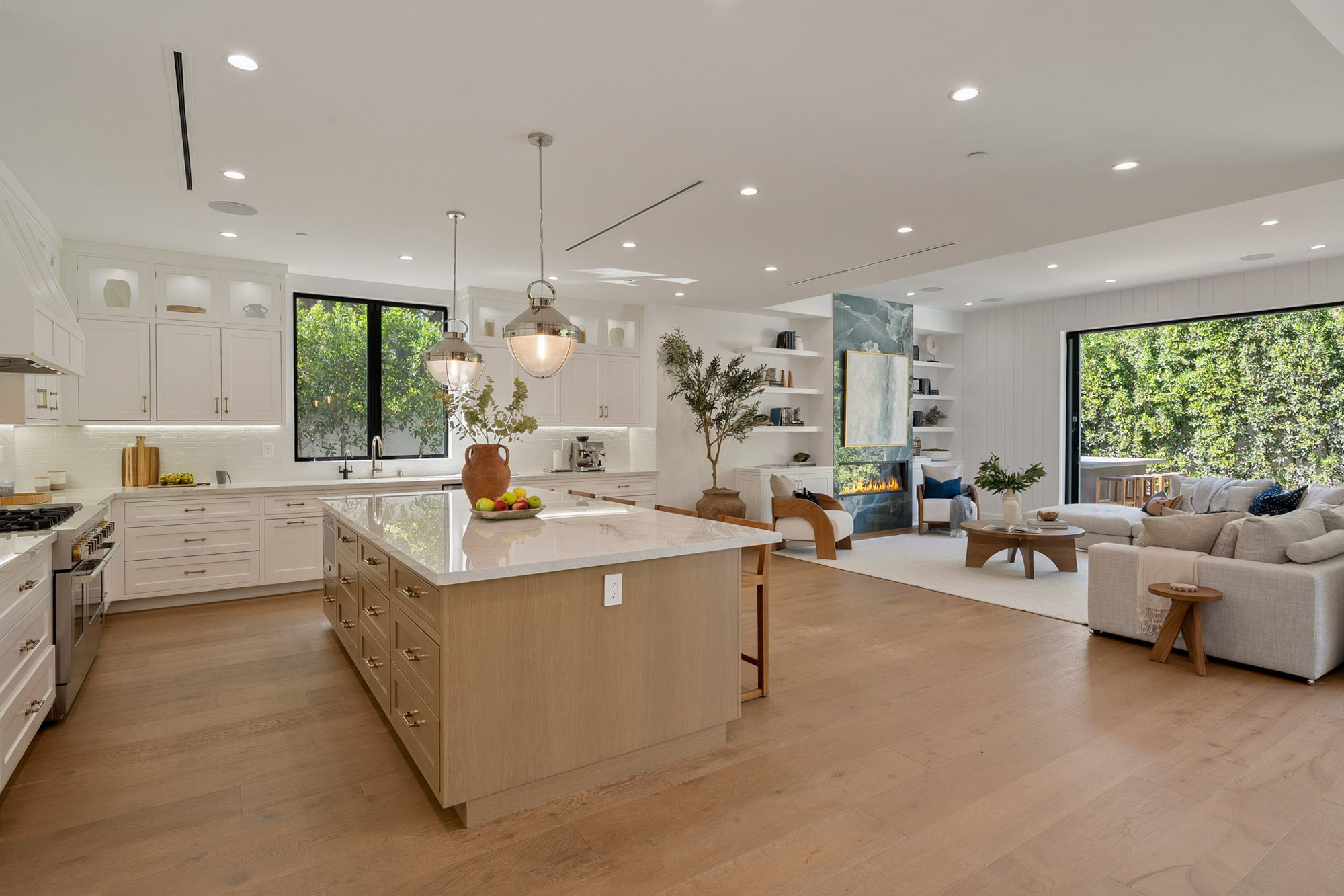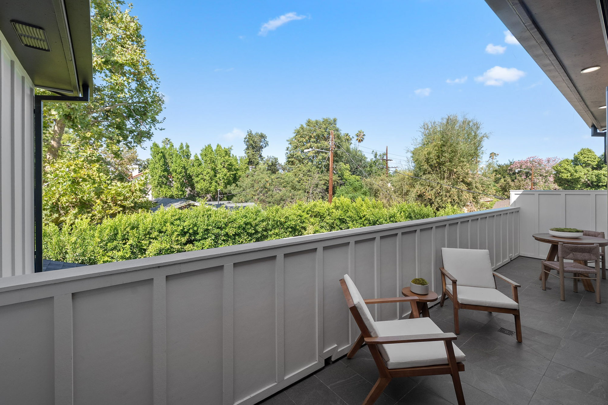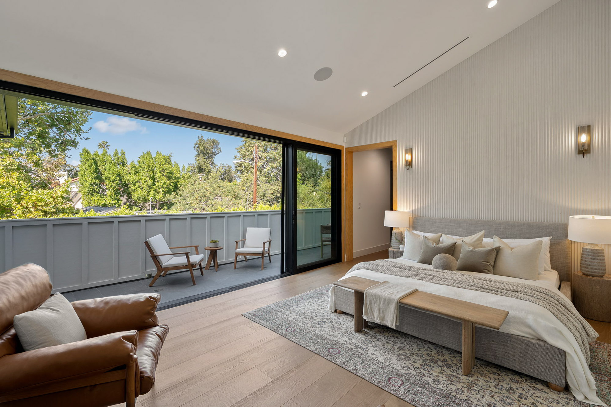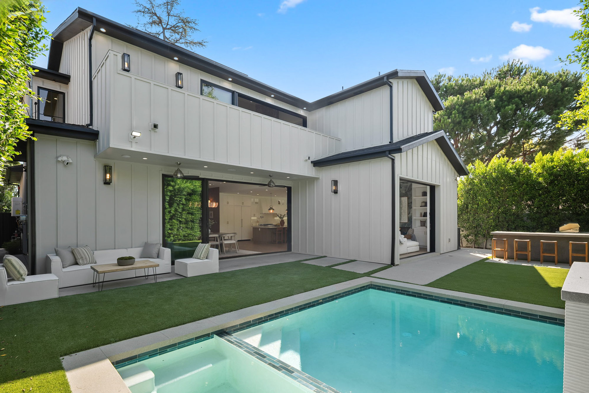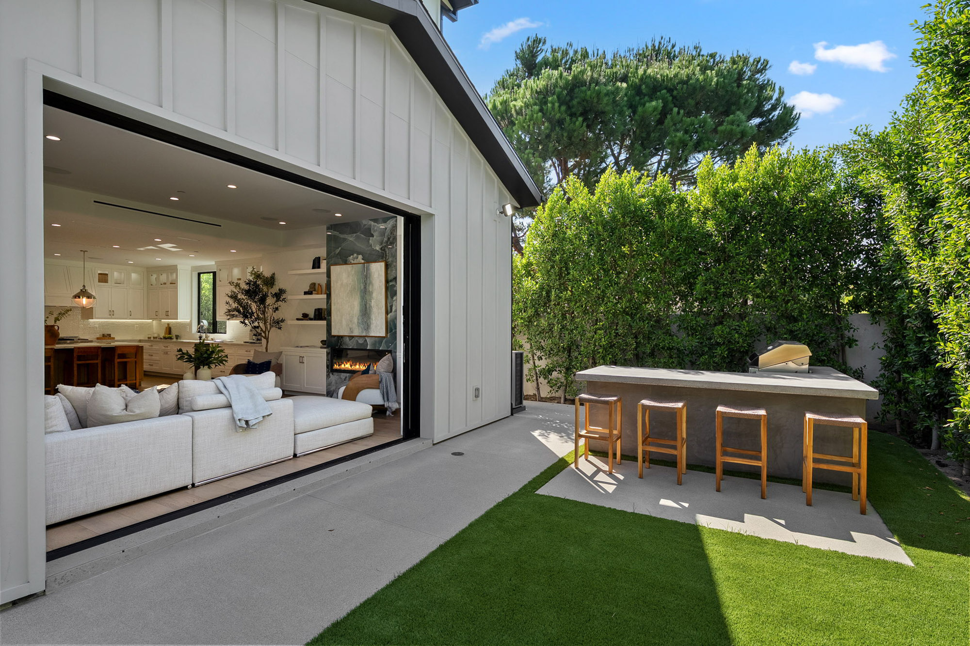Nestled in the coveted Chandler Estates neighborhood of Sherman Oaks, this newer construction home sits on a gated corner lot, strategically setback from the street to create a private oasis. Designed for modern living, the spacious open-concept main level is anchored by a show-stopping chef’s kitchen equipped with top-of-the-line JennAir appliances and a massive island with seating. Floor-to-ceiling sliding glass doors in both the living room and formal dining room open seamlessly to the backyard, effortlessly extending your living space outside. Step outside to a serene retreat surrounded by mature privacy hedges and highlighted by a heated pool/spa, plus a built-in BBQ with bar seating – the ideal space to entertain or unwind after a long day. The gated front yard also impresses with a built-in fire pit and putting green. Upstairs, four generously sized ensuite bedrooms ensure everyone has their own private retreat, while a dedicated laundry room offers convenience. The sophisticated primary suite features a private balcony, custom walk-in closet and spa-inspired bathroom, complete with a soaking tub, oversized rainfall shower and double vanity. Additional highlights include a main-level ensuite bedroom, high ceilings throughout, water softener system, reverse osmosis with instant hot water and added alkaline, a two-car garage with an EV charger outlet and smart home system with built-in speakers, security cameras, a Nest thermostat and more. Ideally located just moments from Westfield Fashion Square, Ventura Boulevard’s premier shopping and dining, and top private schools including Notre Dame, Harvard-Westlake, and Campbell Hall.