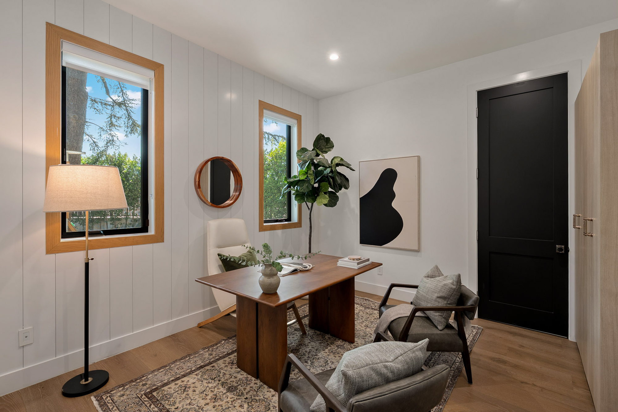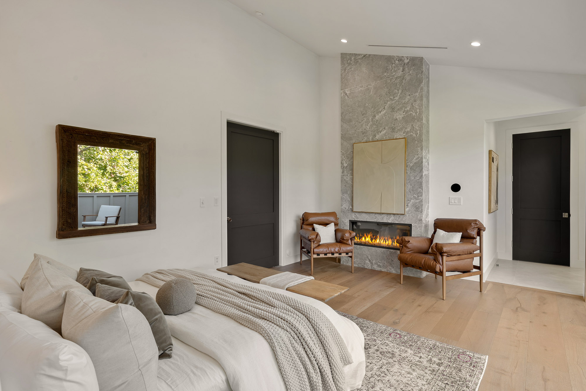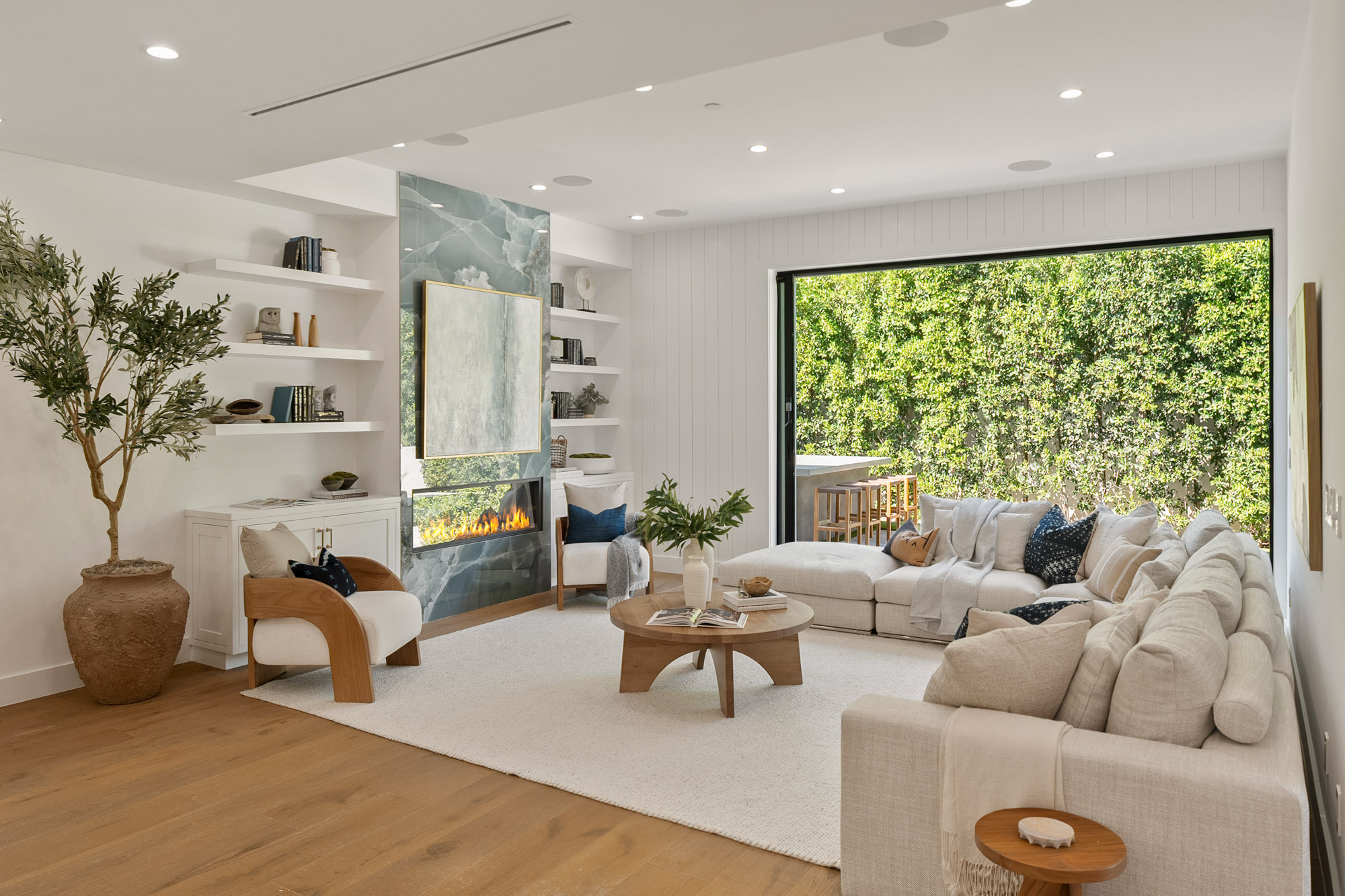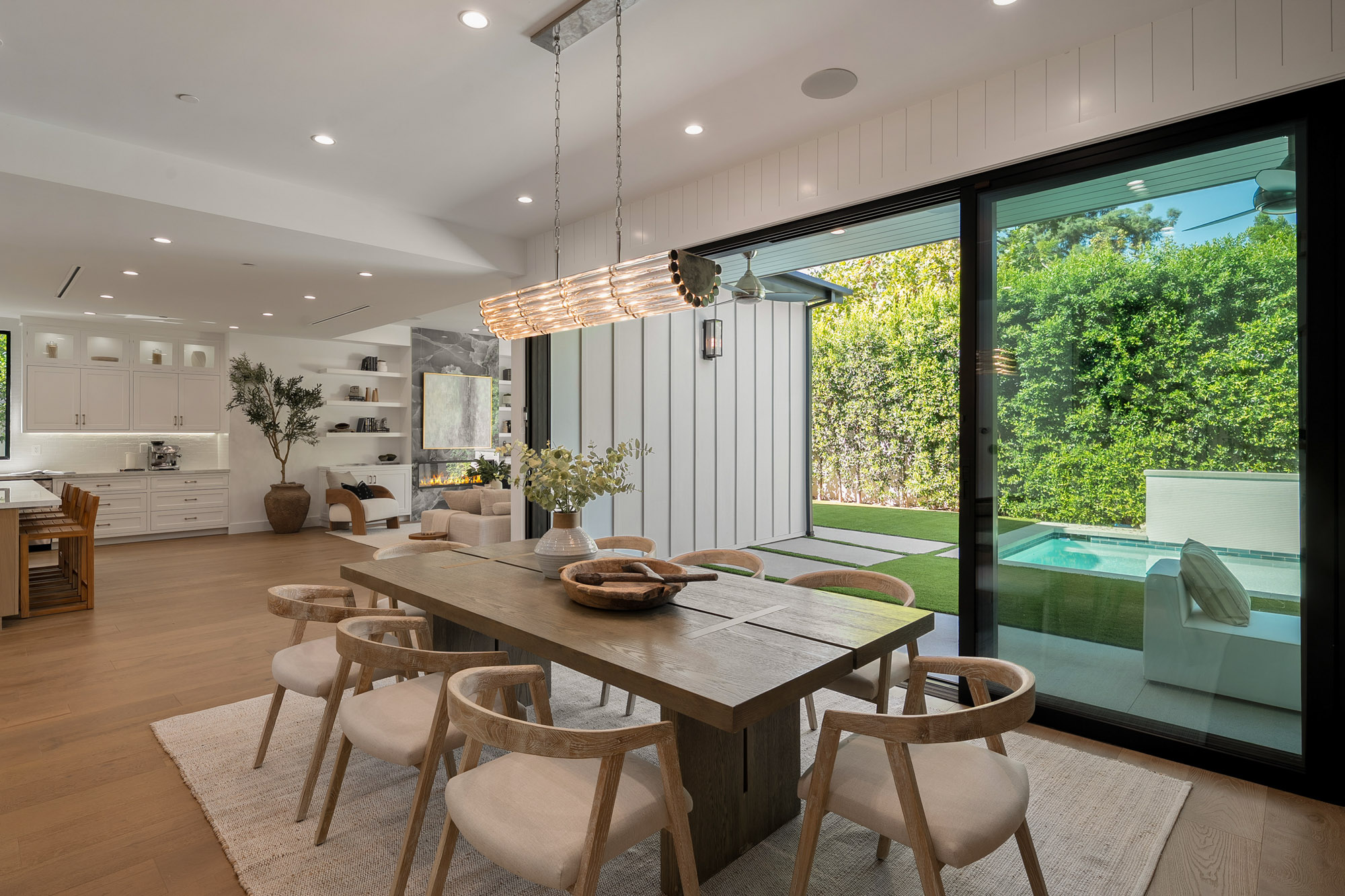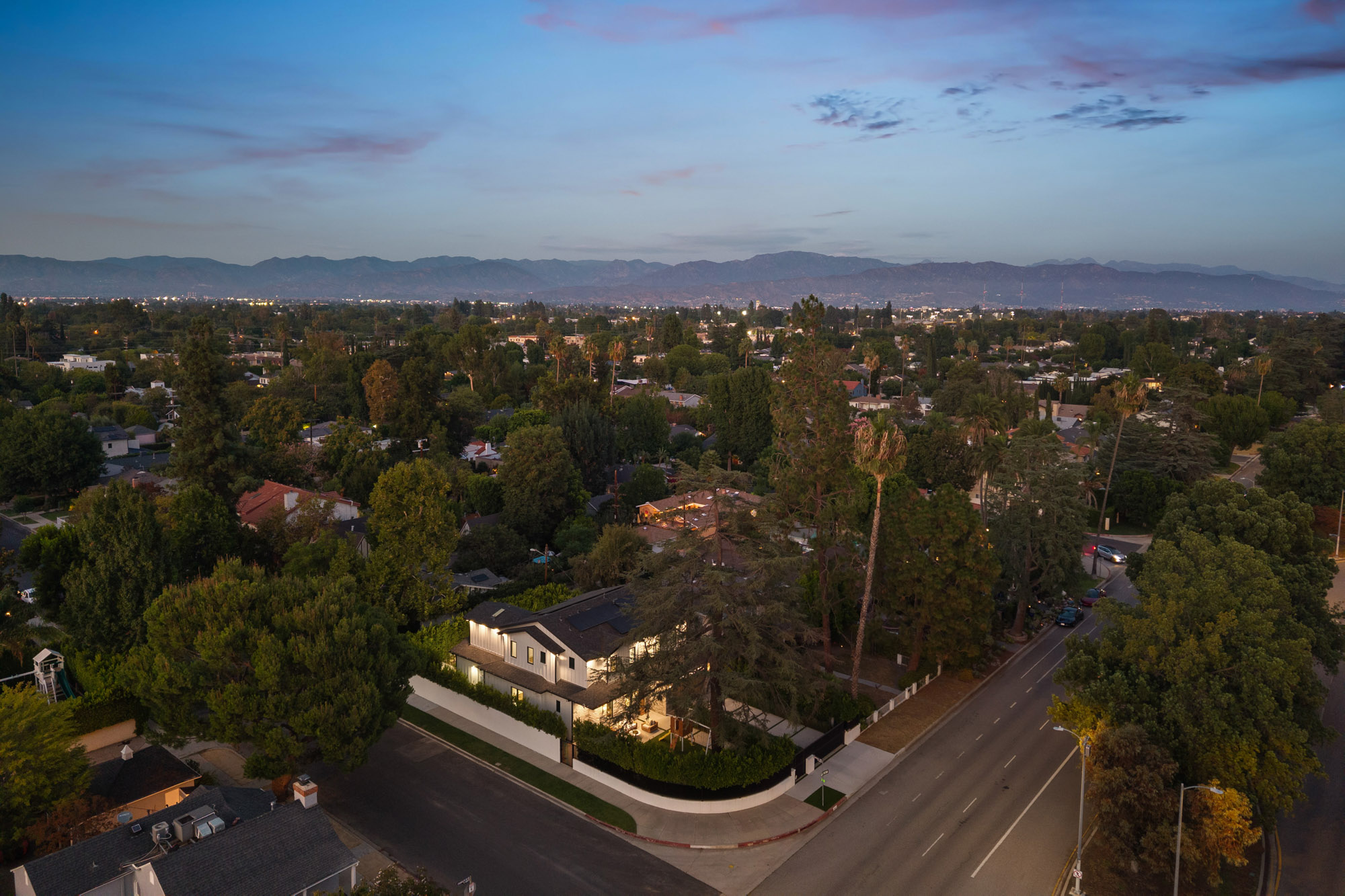 Nestled in the coveted Chandler Estates neighborhood of Sherman Oaks, this newer construction home sits on a gated corner lot, strategically setback from the street to create a private oasis. Designed for modern living, the spacious open-concept main level is anchored by a show-stopping chef’s kitchen equipped with top-of-the-line JennAir appliances and a massive island with seating. Floor-to-ceiling sliding glass doors in both the living room and formal dining room open seamlessly to the backyard, effortlessly extending your living space outside. Step outside to a serene retreat surrounded by mature privacy hedges and highlighted by a heated pool/spa, plus a built-in BBQ with bar seating – the ideal space to entertain or unwind after a long day. The gated front yard also impresses with a built-in fire pit and putting green. Upstairs, four generously sized ensuite bedrooms ensure everyone has their own private retreat, while a dedicated laundry room offers convenience. The sophisticated primary suite features a private balcony, custom walk-in closet and spa-inspired bathroom, complete with a soaking tub, oversized rainfall shower and double vanity. Additional highlights include a main-level ensuite bedroom, high ceilings throughout, water softener system, reverse osmosis with instant hot water and added alkaline, a two-car garage with an EV charger outlet and smart home system with built-in speakers, security cameras, a Nest thermostat and more. Ideally located just moments from Westfield Fashion Square, Ventura Boulevard’s premier shopping and dining, and top private schools including Notre Dame, Harvard-Westlake, and Campbell Hall.