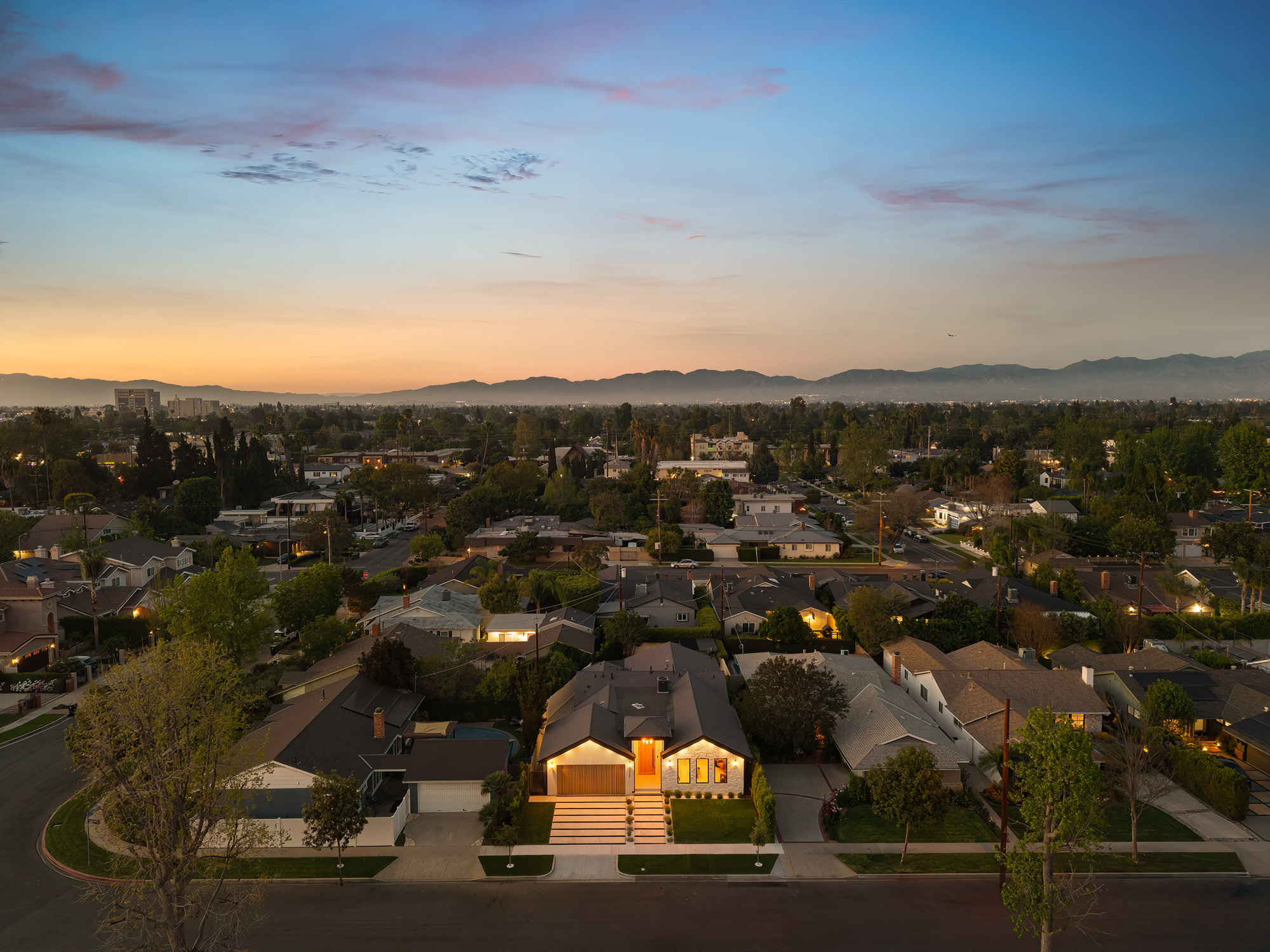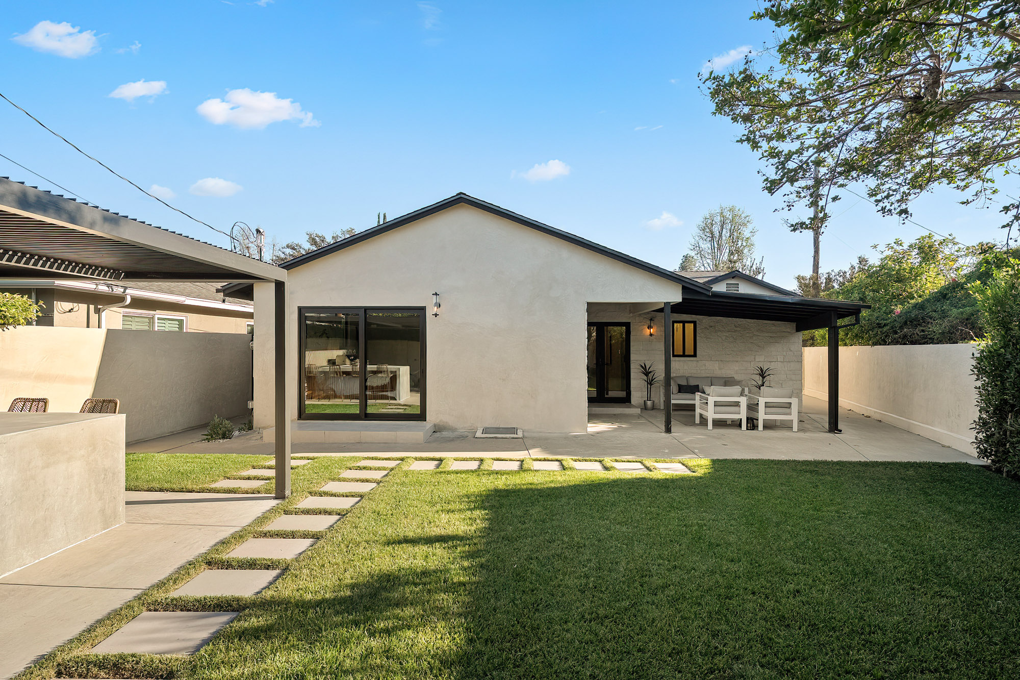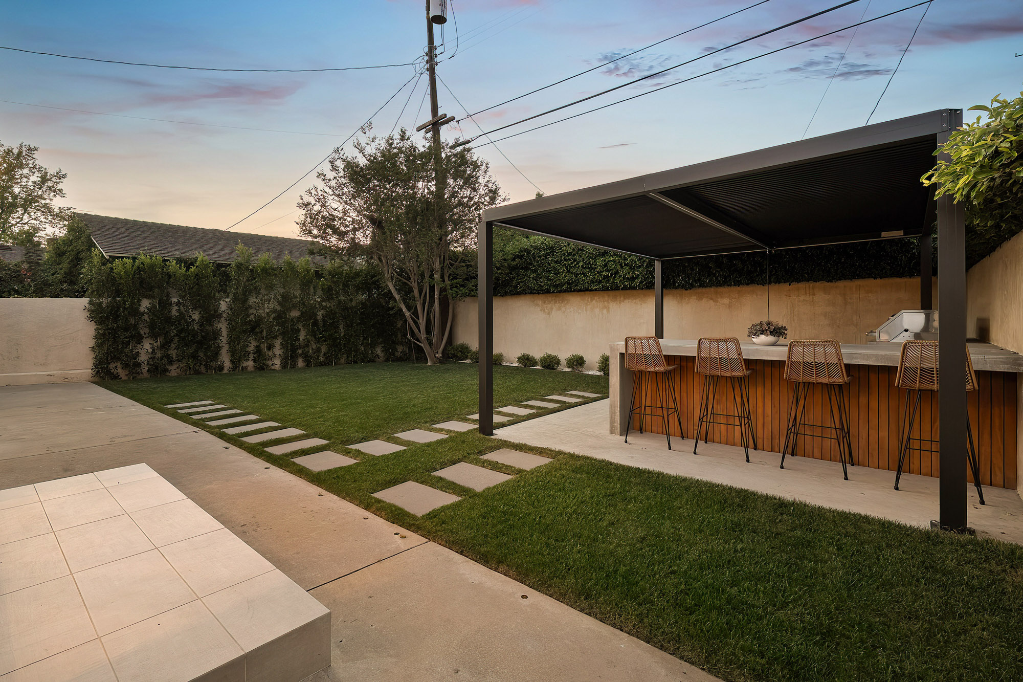Situated in the coveted Chandler Estates neighborhood of Sherman Oaks, this new development home offers an inviting open-concept floor plan with lofty vaulted ceilings that carry throughout. Designed for modern living, the spacious living and dining area flows seamlessly into a beautifully appointed chef’s kitchen outfitted with top-of-the-line appliances, sleek custom cabinetry and a stunning waterfall island. This home features three generously sized ensuite bedrooms, including a luxurious primary suite with a custom walk-in closet and spa-inspired bath, complete with a soaking tub, large glass-enclosed shower and double vanity. Step outside to a private backyard retreat, where you’ll find a built-in BBQ with bar seating and a louvered pergola above, along with a covered patio and large grassy yard, the perfect setting for year-round entertaining and relaxation. Additional highlights include a dedicated laundry room and two-car garage equipped with an EV charger. Ideally located just moments from Westfield Fashion Square, Ventura Boulevard’s premier shopping and dining, top-rated public and private schools, and so much more.