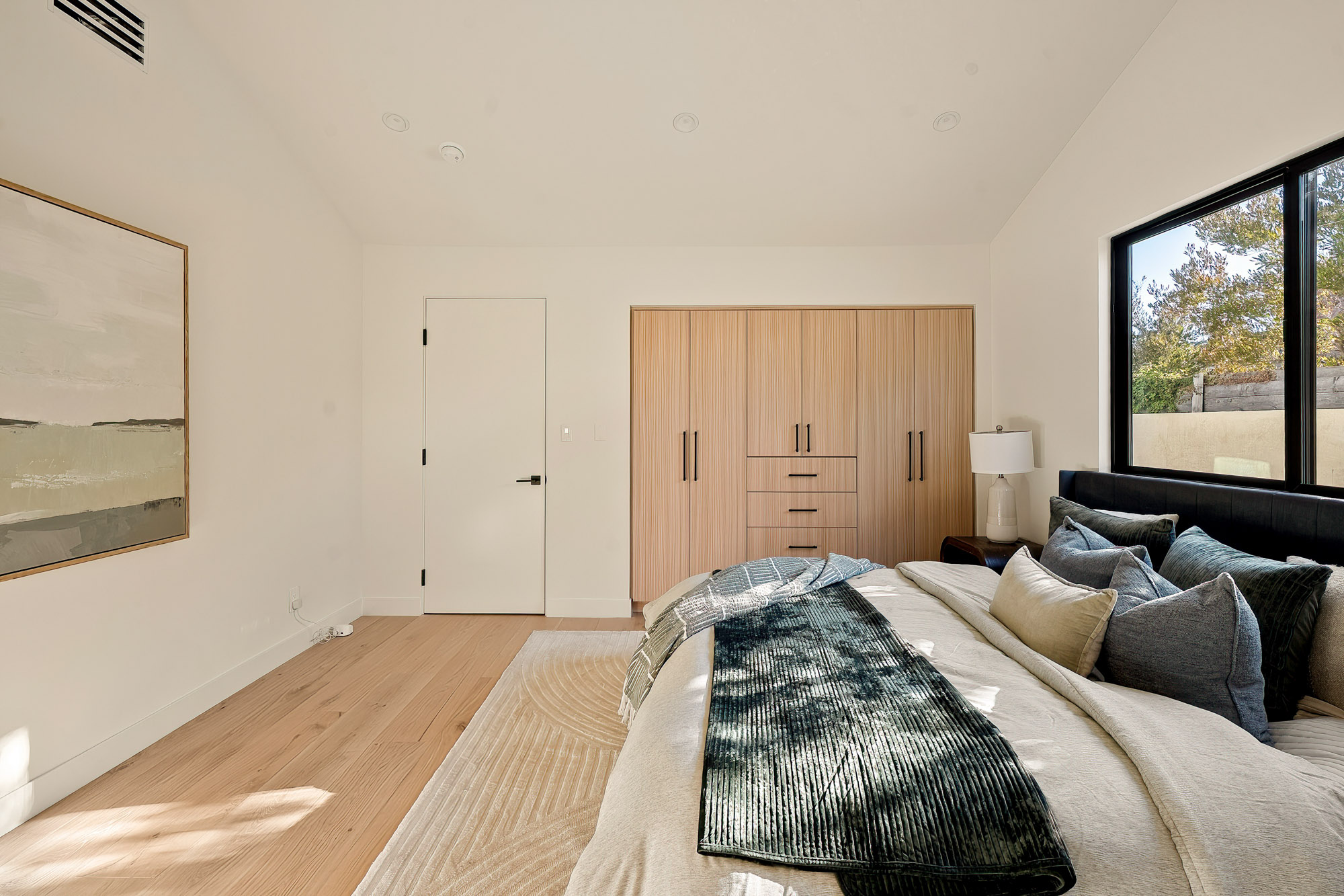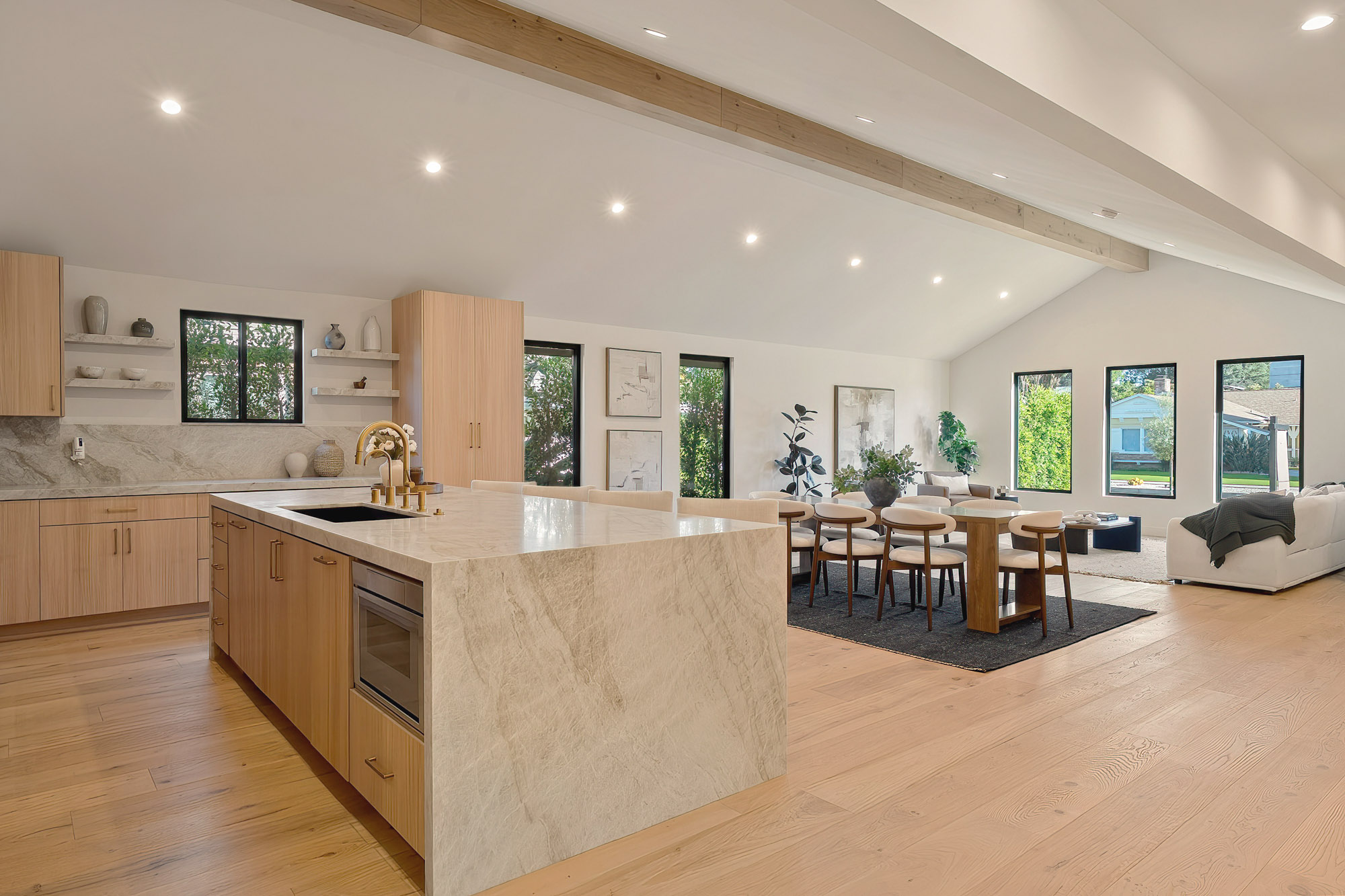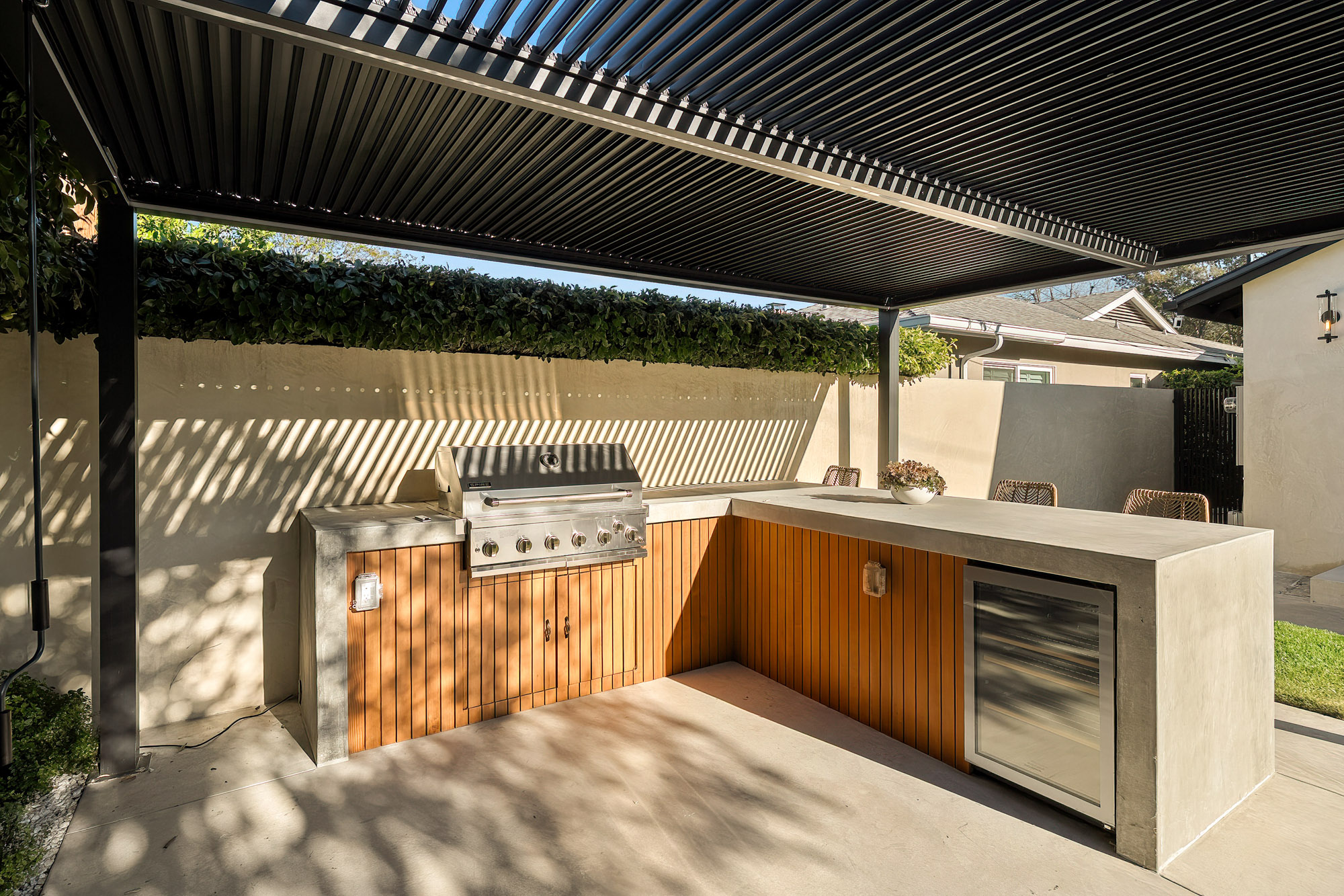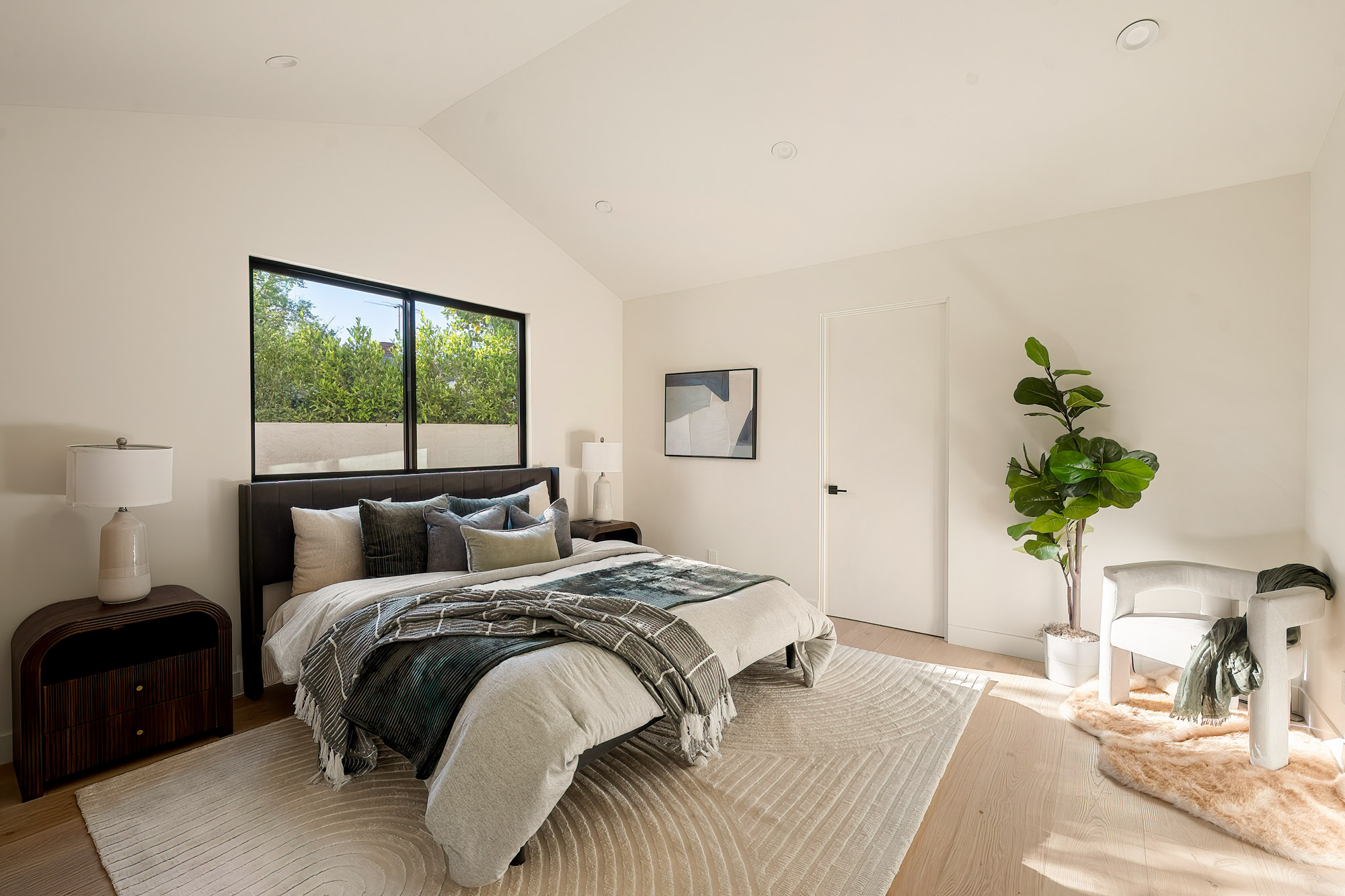 Situated in the coveted Chandler Estates neighborhood of Sherman Oaks, this new development home offers an inviting open-concept floor plan with lofty vaulted ceilings that carry throughout. Designed for modern living, the spacious living and dining area flows seamlessly into a beautifully appointed chef’s kitchen outfitted with top-of-the-line appliances, sleek custom cabinetry and a stunning waterfall island. This home features three generously sized ensuite bedrooms, including a luxurious primary suite with a custom walk-in closet and spa-inspired bath, complete with a soaking tub, large glass-enclosed shower and double vanity. Step outside to a private backyard retreat, where you’ll find a built-in BBQ with bar seating and a louvered pergola above, along with a covered patio and large grassy yard, the perfect setting for year-round entertaining and relaxation. Additional highlights include a dedicated laundry room and two-car garage equipped with an EV charger. Ideally located just moments from Westfield Fashion Square, Ventura Boulevard’s premier shopping and dining, top-rated public and private schools, and so much more.