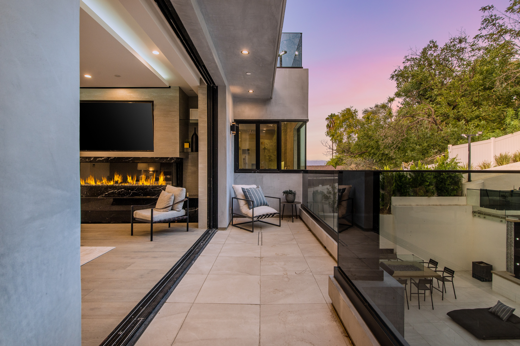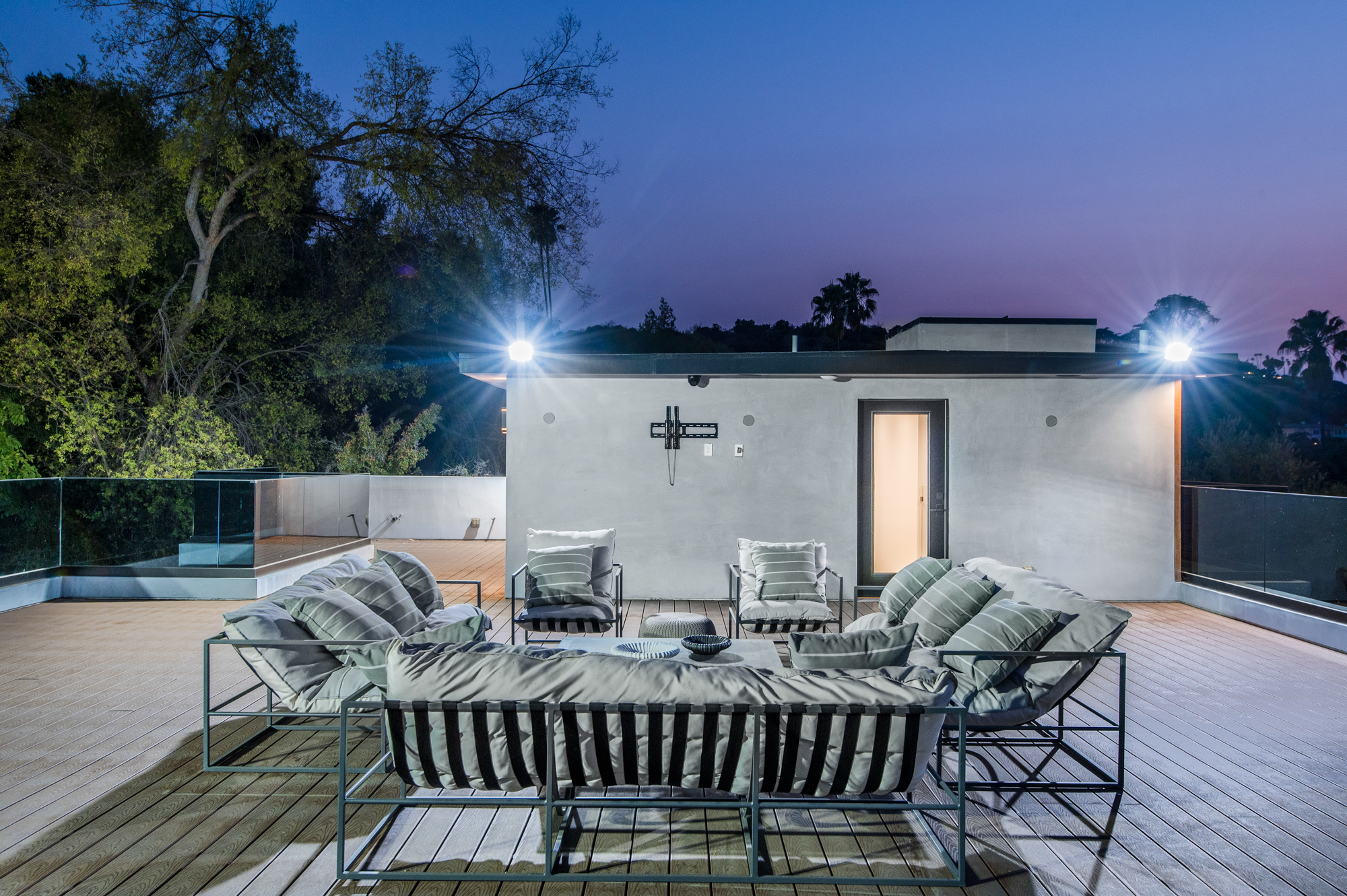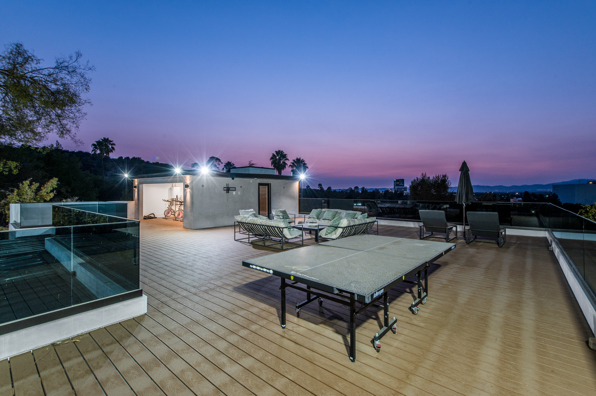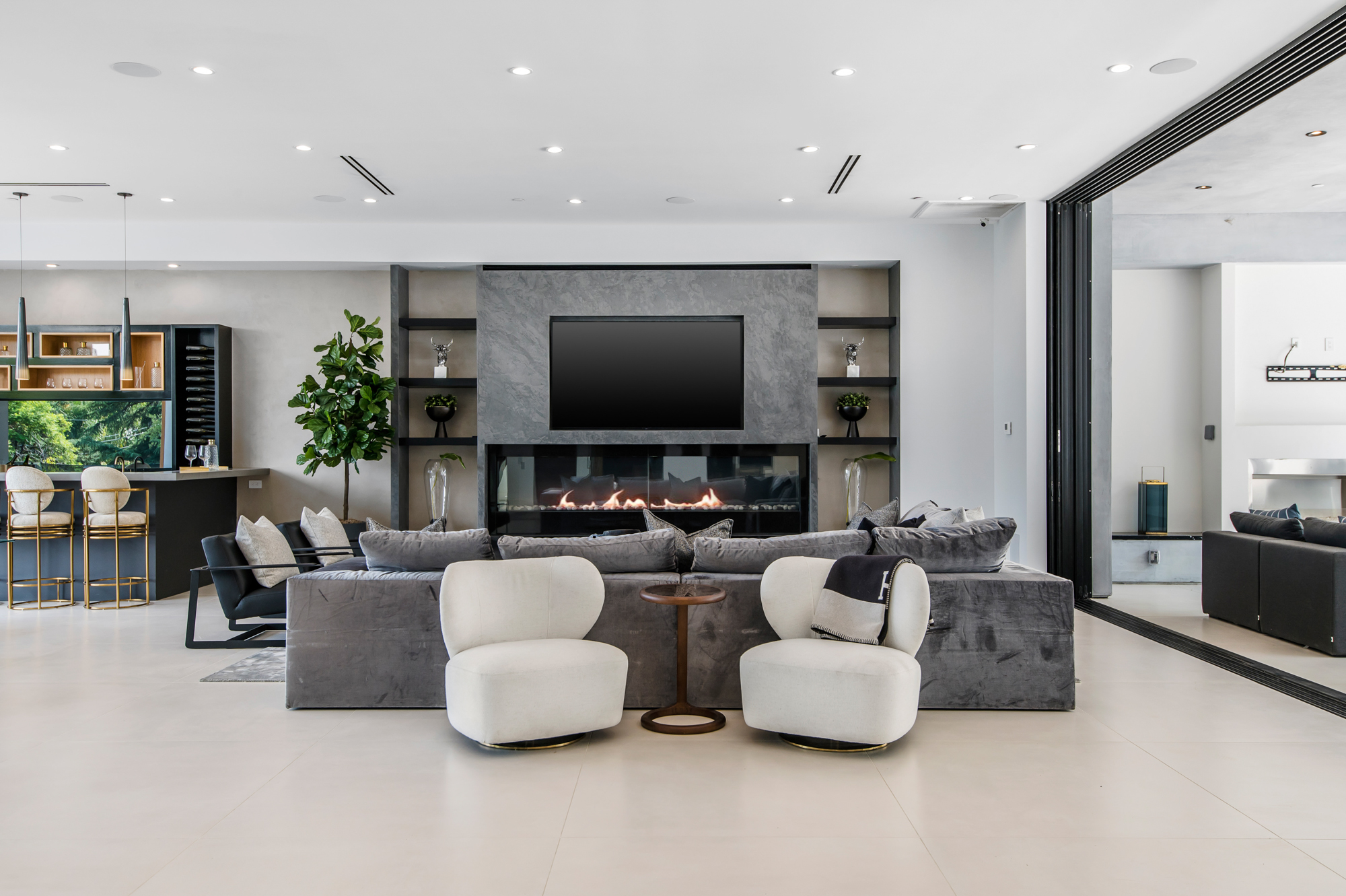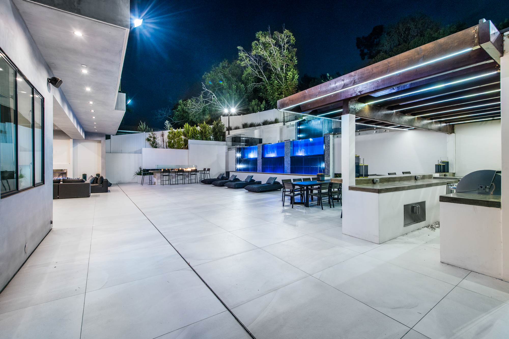 Situated on a prestigious street south of the Blvd, this contemporary modern estate is the newest gem in Sherman Oaks. Flawless at every angle, guests arrive to a multi-level entertainment statement property designed for the most discerning buyer. Inside guests are greeted w/ soaring ceilings & a floating glass staircase that adorns a large main foyer, overlooking the expansive floor plan. Sophisticated formal living room features a large stone linear fireplace, temperature controlled wine cellar, & floor to ceiling pocket sliding doors that open to the entertainer’s dream backyard. Elegant formal dining room offers a bar & opens to a patio w/ expansive views of the valley. Gourmet Chef’s kitchen features quartz counters, large center island w/ breakfast bar, breakfast nook & walk in pantry. Upstairs, the master retreat features a wet bar, fireplace, private balconies, spa-like master bath, & illuminated walk-in closet. Finally, a boasting rooftop deck w/ gym showcases 180 degree jetliner views of the valley. A second kitchen, media room & 4 additional guest suites complete this estate. Backyard sanctuary provides multi level seating areas, elevated sparkling pool & spa w/ transparent glass & cascading waterfalls, covered patio w/ fireplace, outdoor kitchen & elevated fire-pit bar. Additional amenities include Control4 smart system, security cameras, surround sound & elevator. Live a luxurious lifestyle that is within close proximity to shops, fine dining & more.
