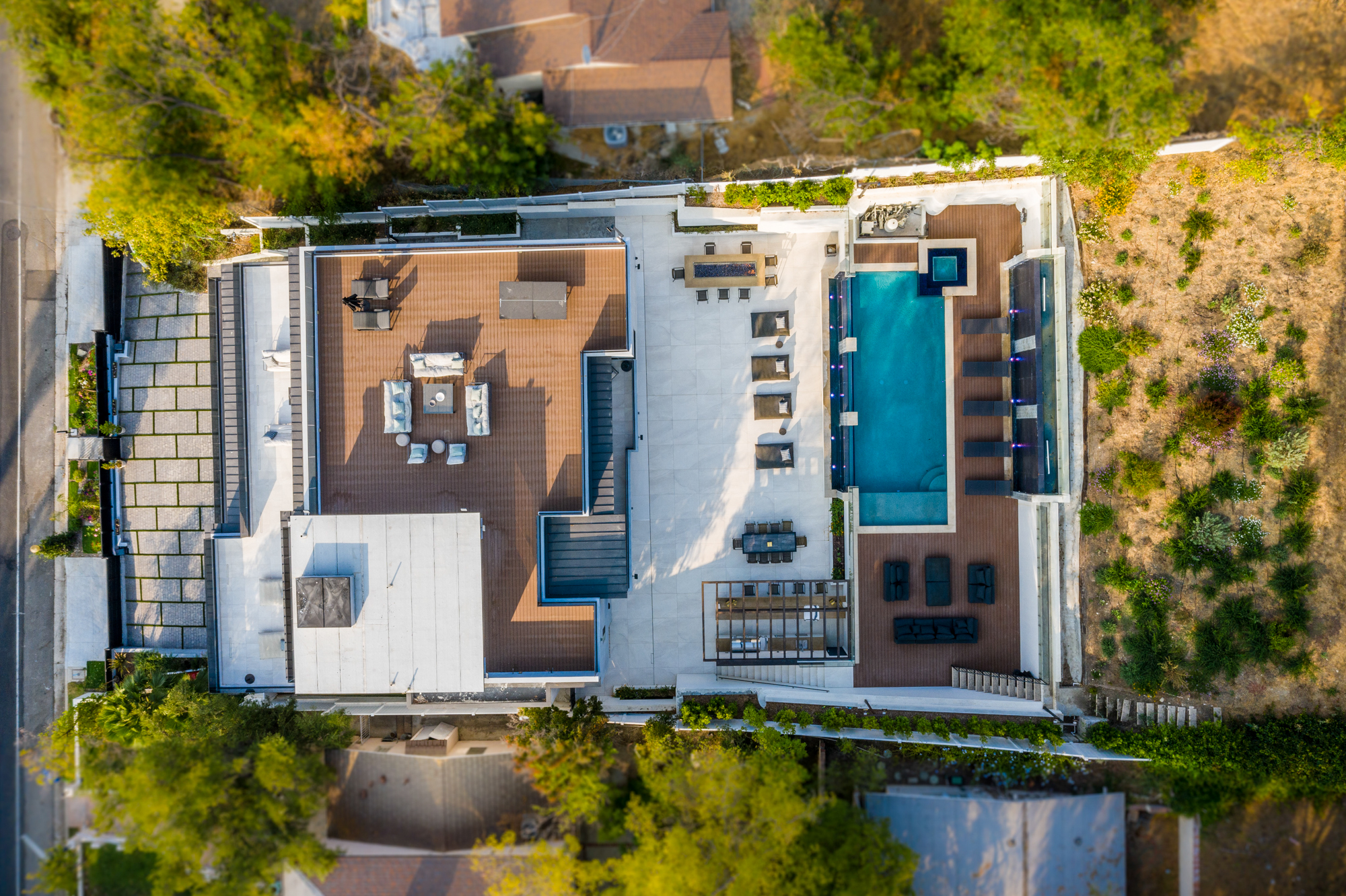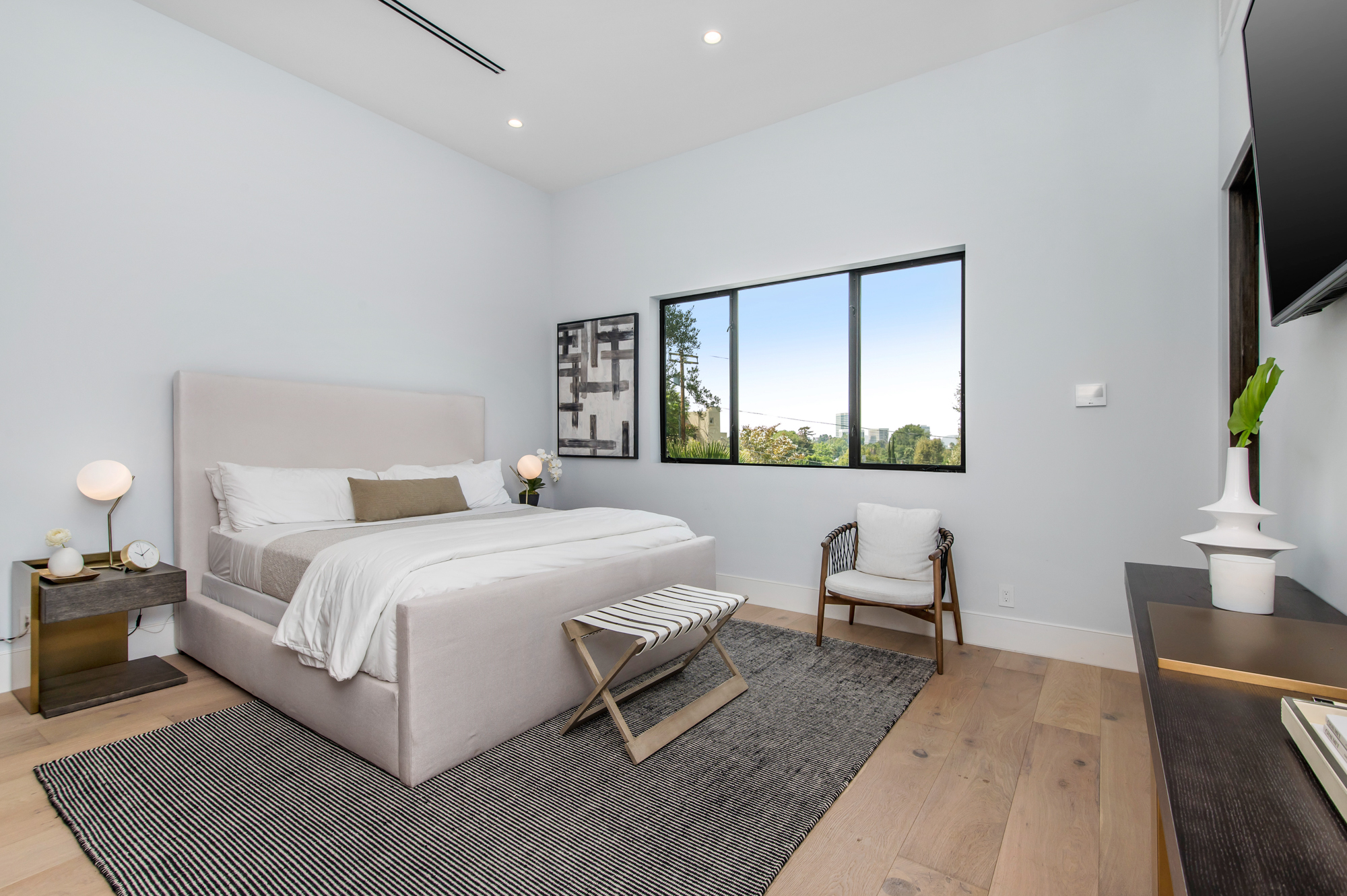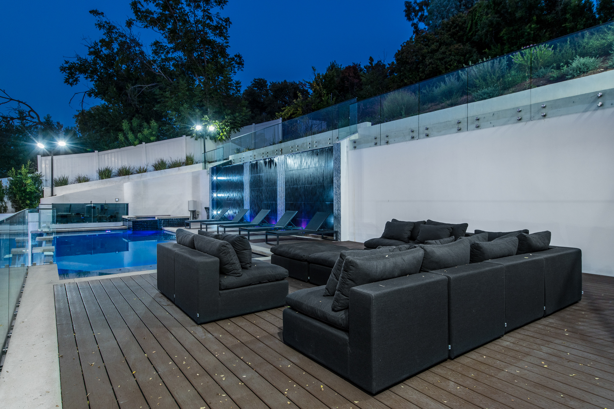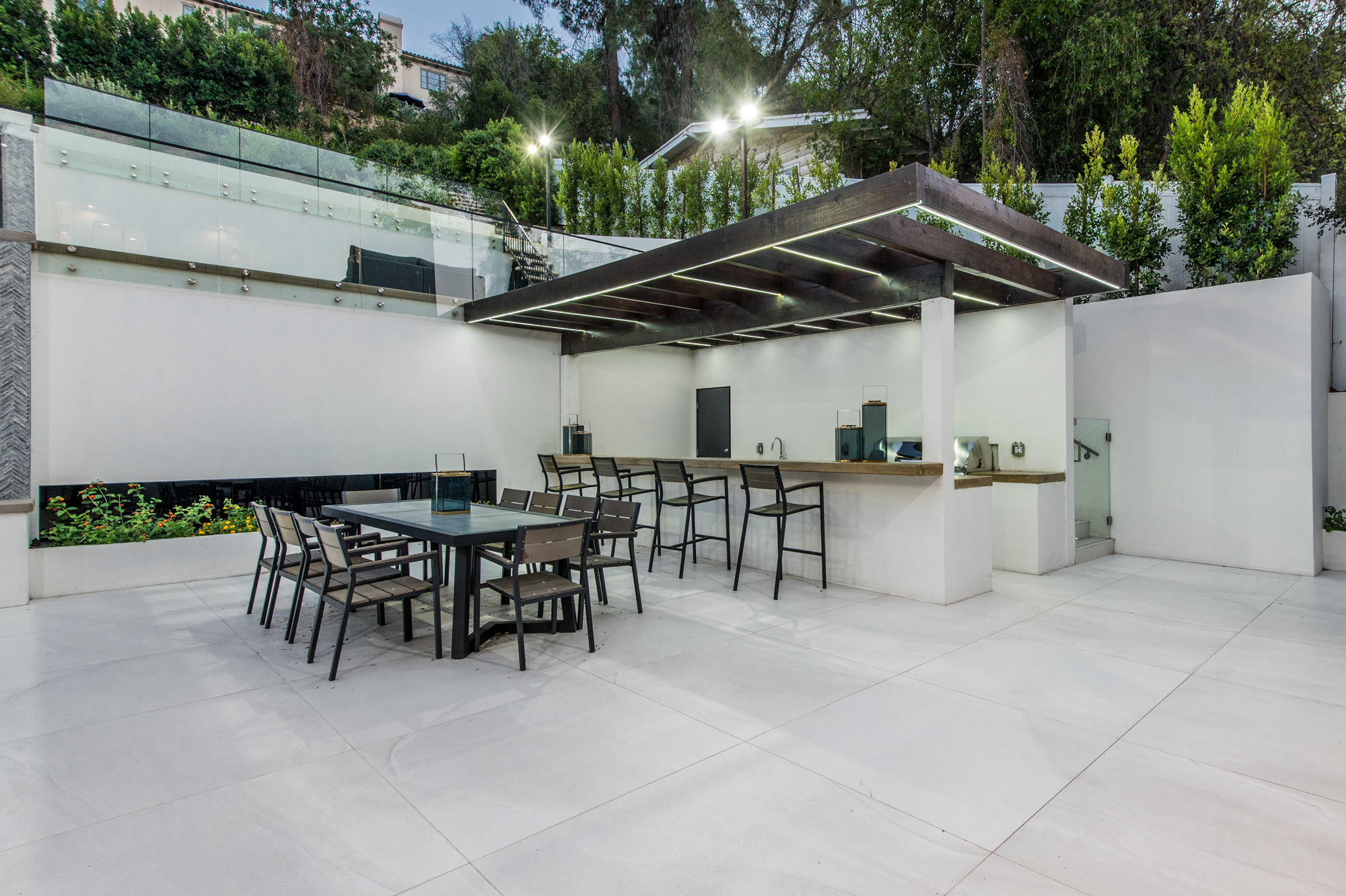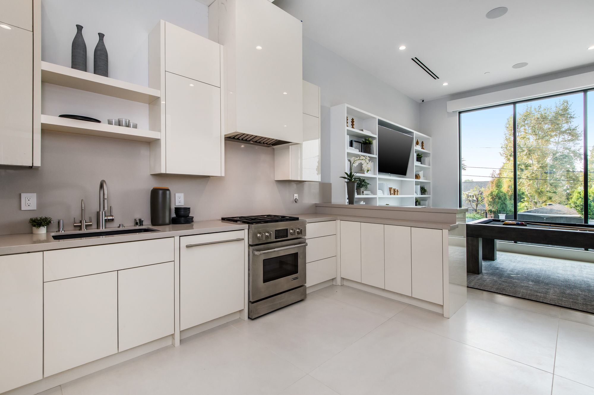 Situated on a prestigious street south of the Blvd, this contemporary modern estate is the newest gem in Sherman Oaks. Flawless at every angle, guests arrive to a multi-level entertainment statement property designed for the most discerning buyer. Inside guests are greeted w/ soaring ceilings & a floating glass staircase that adorns a large main foyer, overlooking the expansive floor plan. Sophisticated formal living room features a large stone linear fireplace, temperature controlled wine cellar, & floor to ceiling pocket sliding doors that open to the entertainer’s dream backyard. Elegant formal dining room offers a bar & opens to a patio w/ expansive views of the valley. Gourmet Chef’s kitchen features quartz counters, large center island w/ breakfast bar, breakfast nook & walk in pantry. Upstairs, the master retreat features a wet bar, fireplace, private balconies, spa-like master bath, & illuminated walk-in closet. Finally, a boasting rooftop deck w/ gym showcases 180 degree jetliner views of the valley. A second kitchen, media room & 4 additional guest suites complete this estate. Backyard sanctuary provides multi level seating areas, elevated sparkling pool & spa w/ transparent glass & cascading waterfalls, covered patio w/ fireplace, outdoor kitchen & elevated fire-pit bar. Additional amenities include Control4 smart system, security cameras, surround sound & elevator. Live a luxurious lifestyle that is within close proximity to shops, fine dining & more.