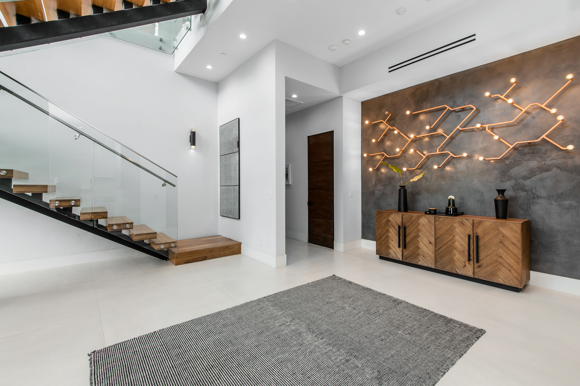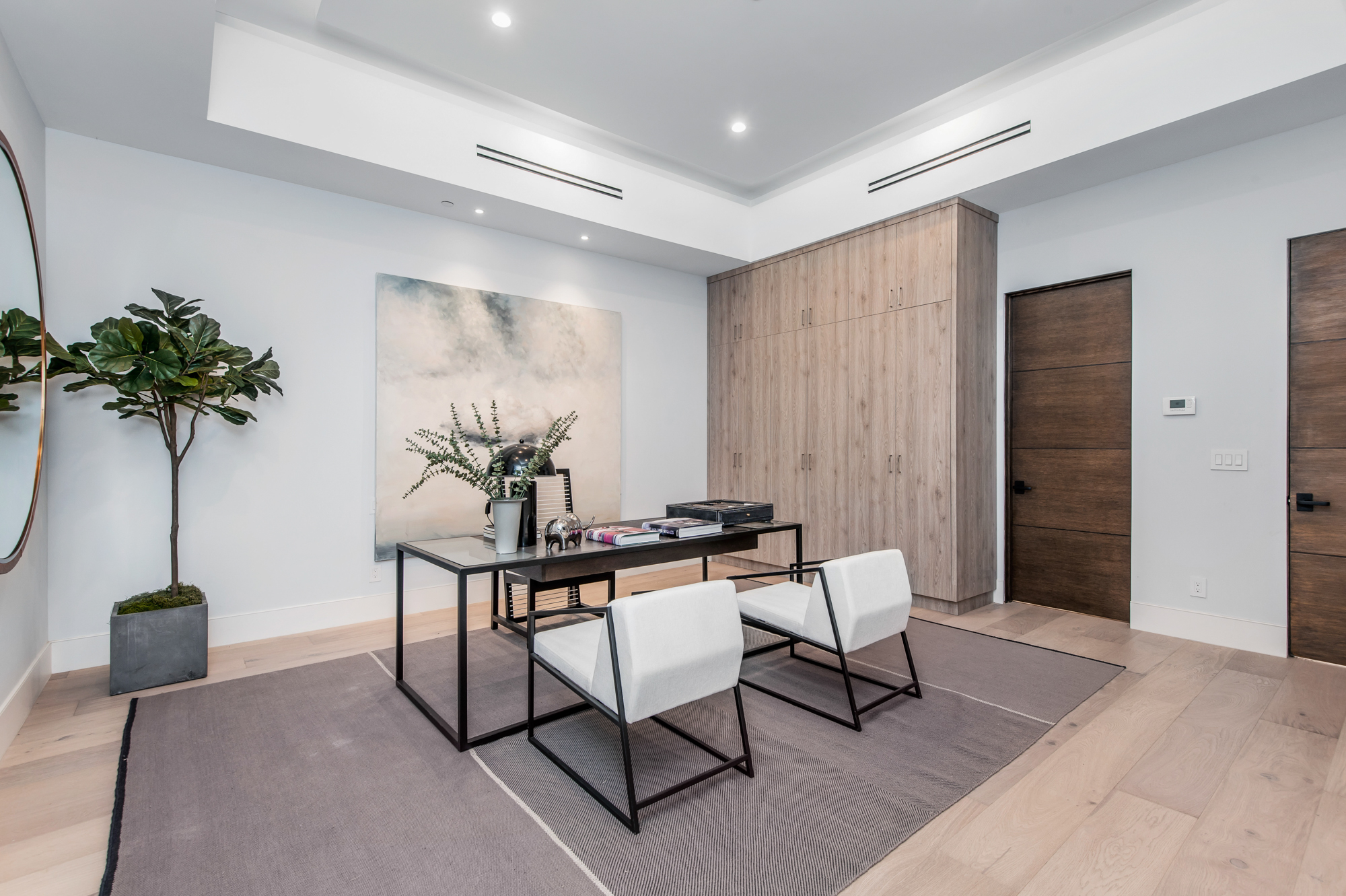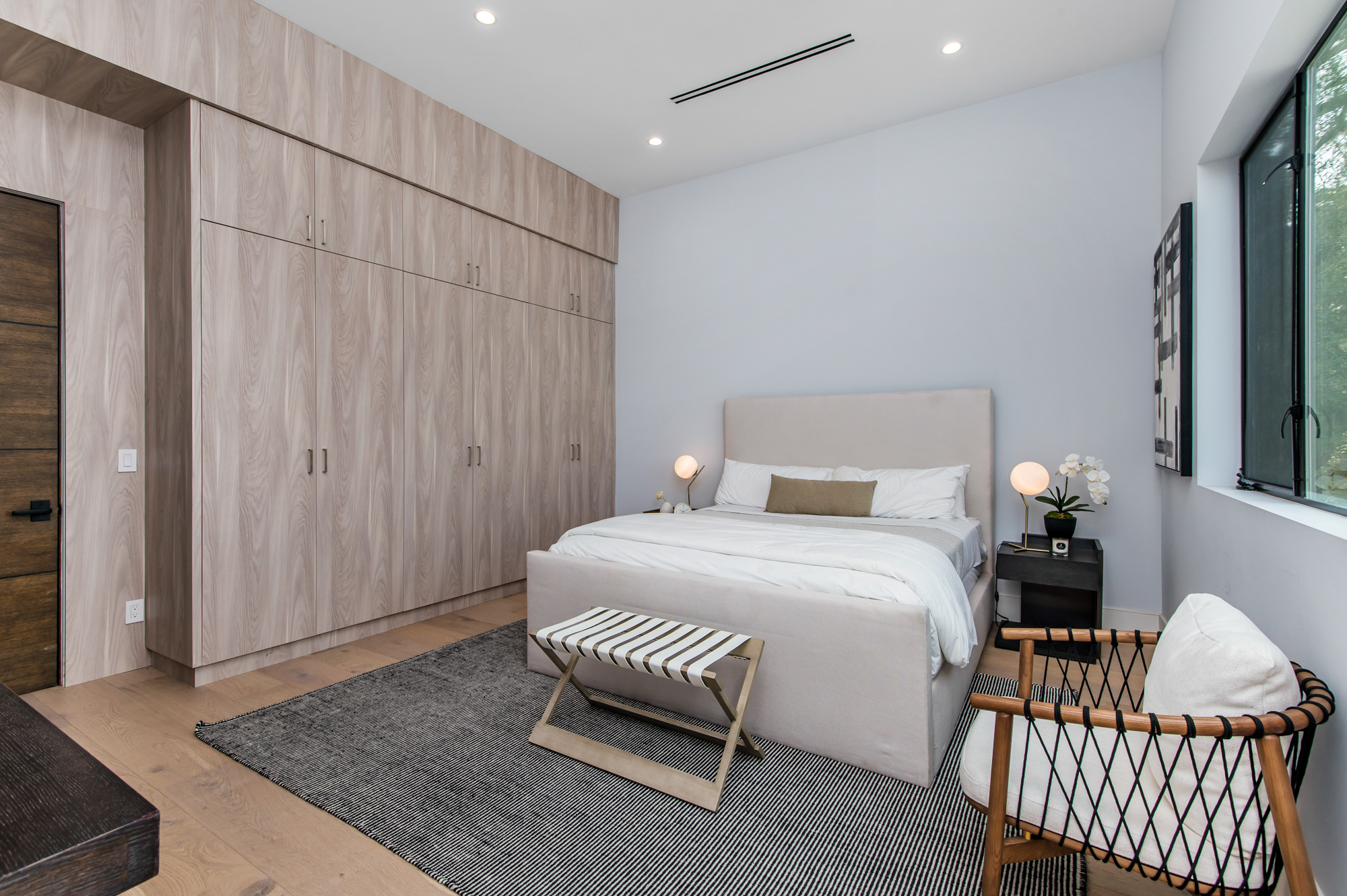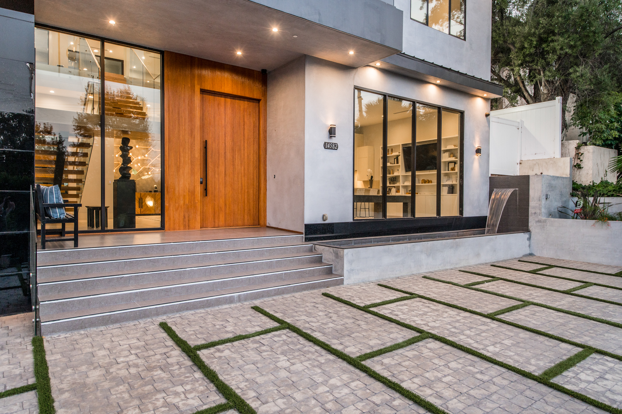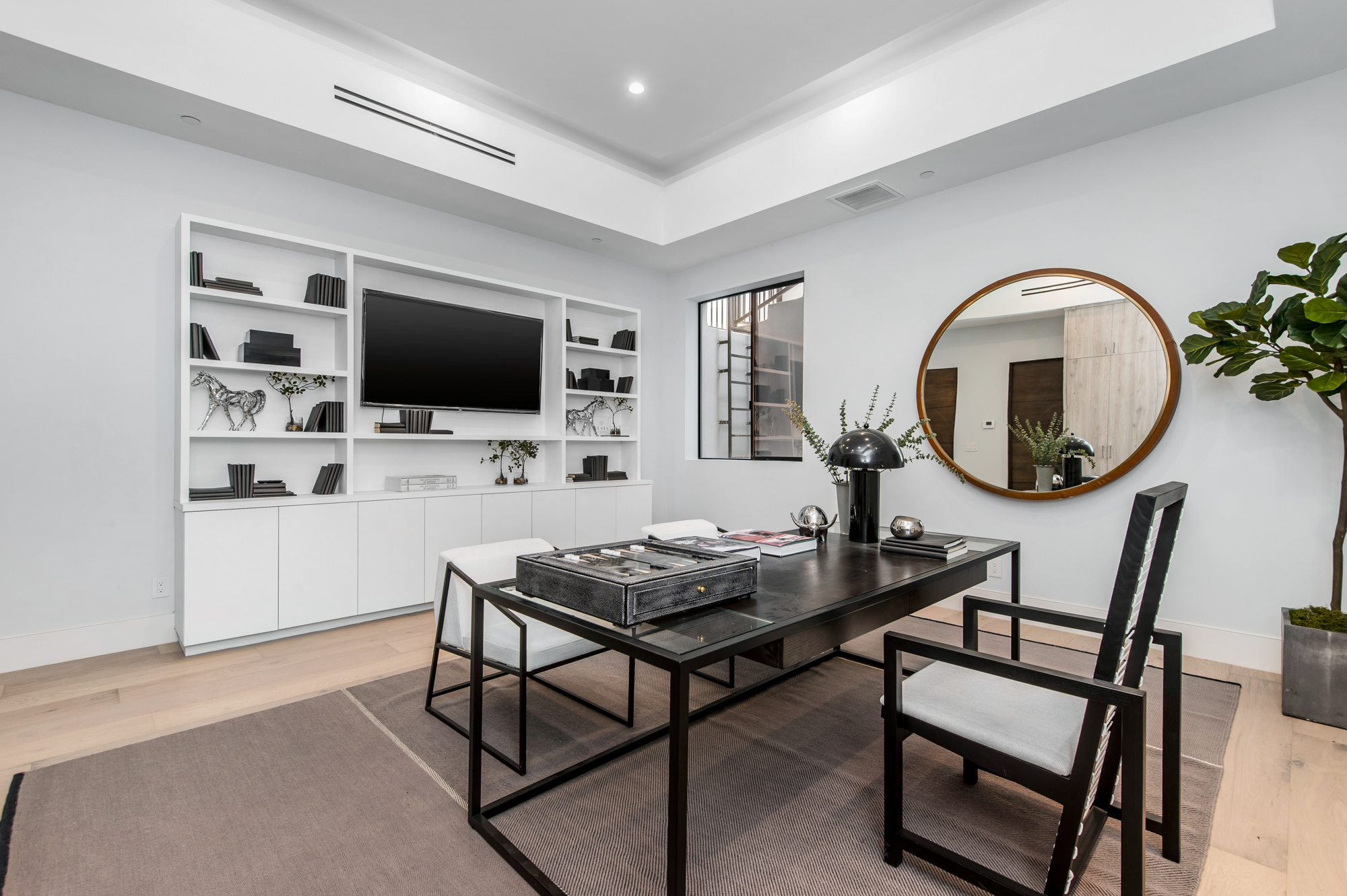 Situated on a prestigious street south of the Blvd, this contemporary modern estate is the newest gem in Sherman Oaks. Flawless at every angle, guests arrive to a multi-level entertainment statement property designed for the most discerning buyer. Inside guests are greeted w/ soaring ceilings & a floating glass staircase that adorns a large main foyer, overlooking the expansive floor plan. Sophisticated formal living room features a large stone linear fireplace, temperature controlled wine cellar, & floor to ceiling pocket sliding doors that open to the entertainer’s dream backyard. Elegant formal dining room offers a bar & opens to a patio w/ expansive views of the valley. Gourmet Chef’s kitchen features quartz counters, large center island w/ breakfast bar, breakfast nook & walk in pantry. Upstairs, the master retreat features a wet bar, fireplace, private balconies, spa-like master bath, & illuminated walk-in closet. Finally, a boasting rooftop deck w/ gym showcases 180 degree jetliner views of the valley. A second kitchen, media room & 4 additional guest suites complete this estate. Backyard sanctuary provides multi level seating areas, elevated sparkling pool & spa w/ transparent glass & cascading waterfalls, covered patio w/ fireplace, outdoor kitchen & elevated fire-pit bar. Additional amenities include Control4 smart system, security cameras, surround sound & elevator. Live a luxurious lifestyle that is within close proximity to shops, fine dining & more.