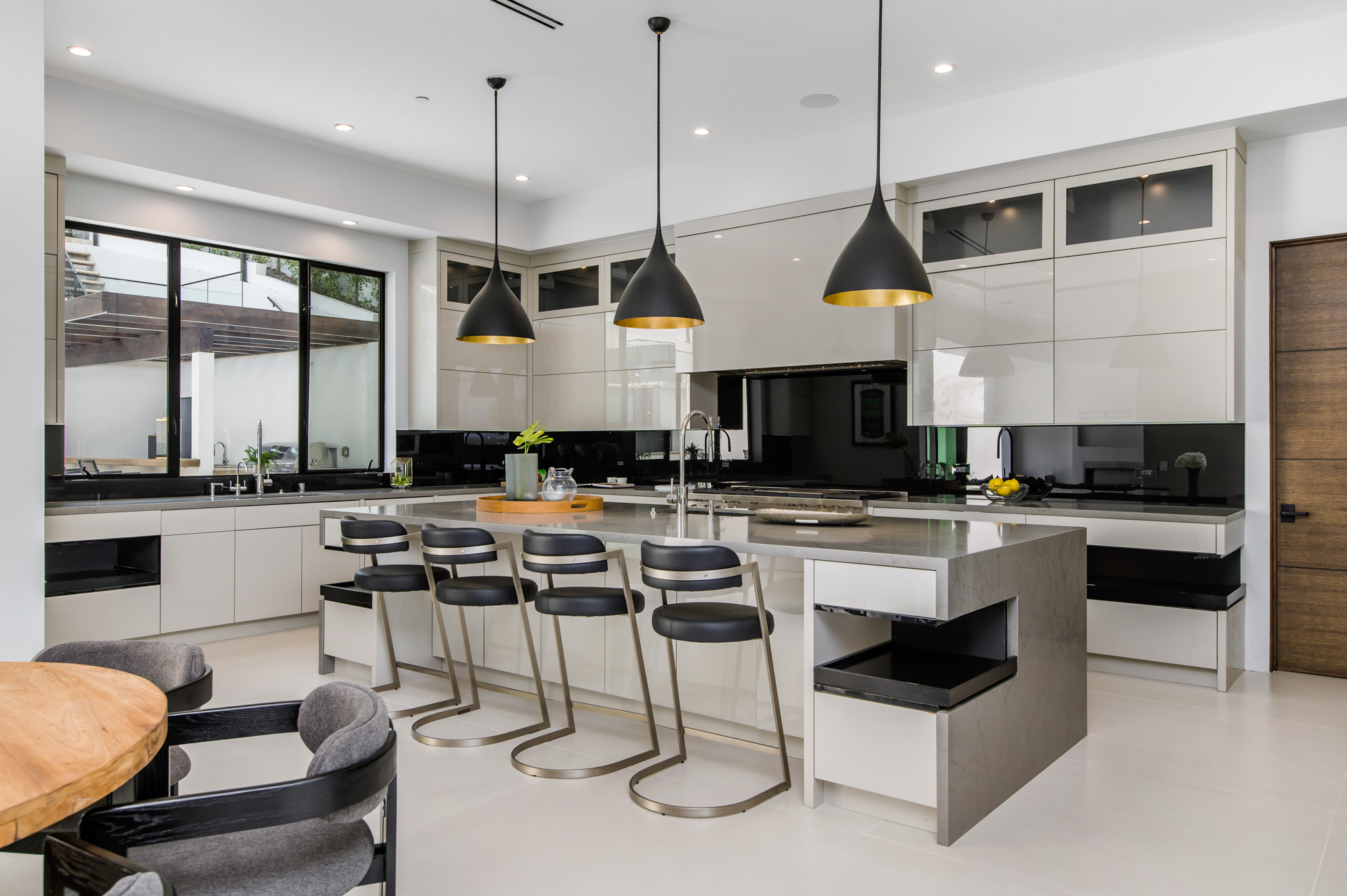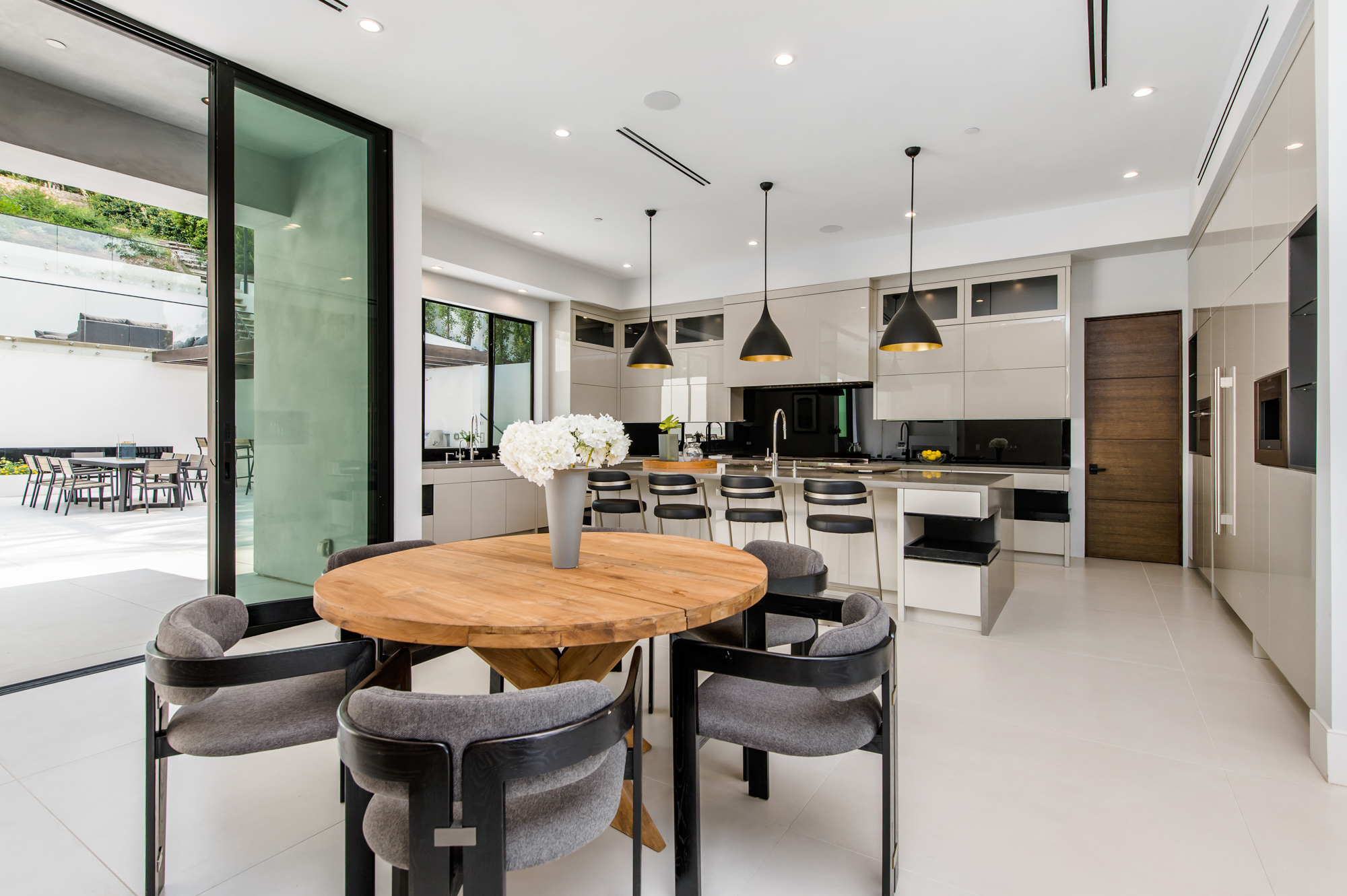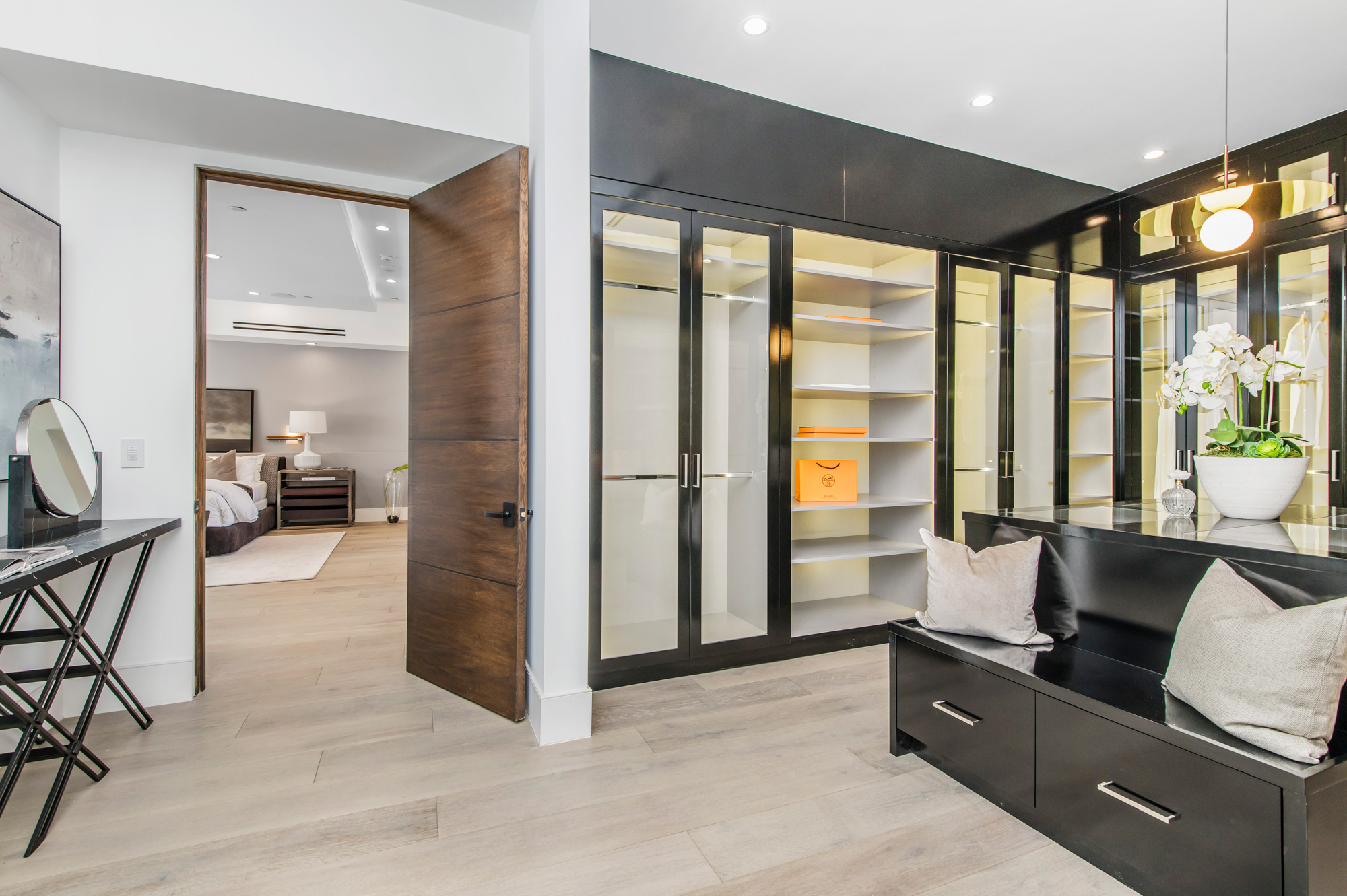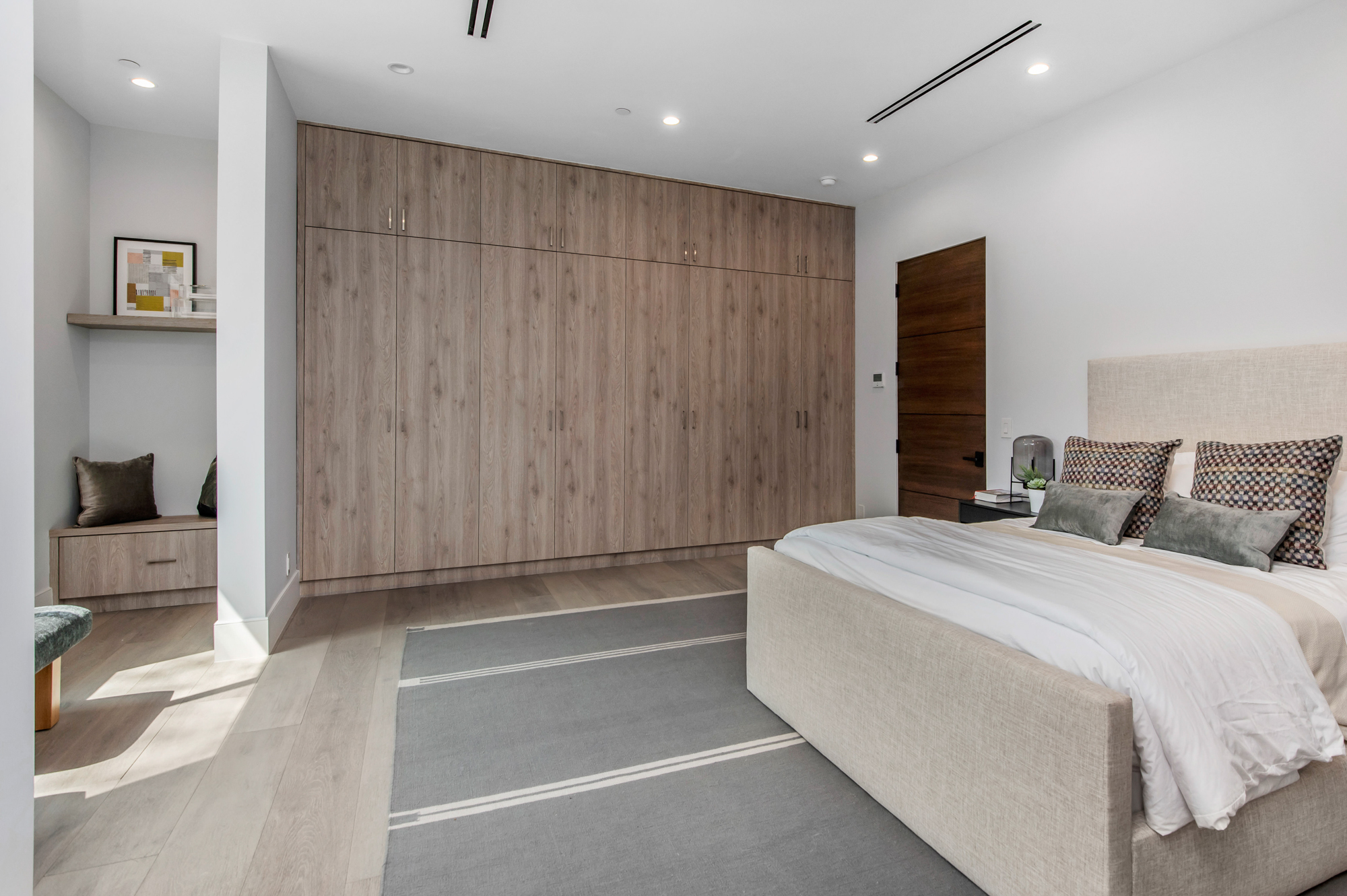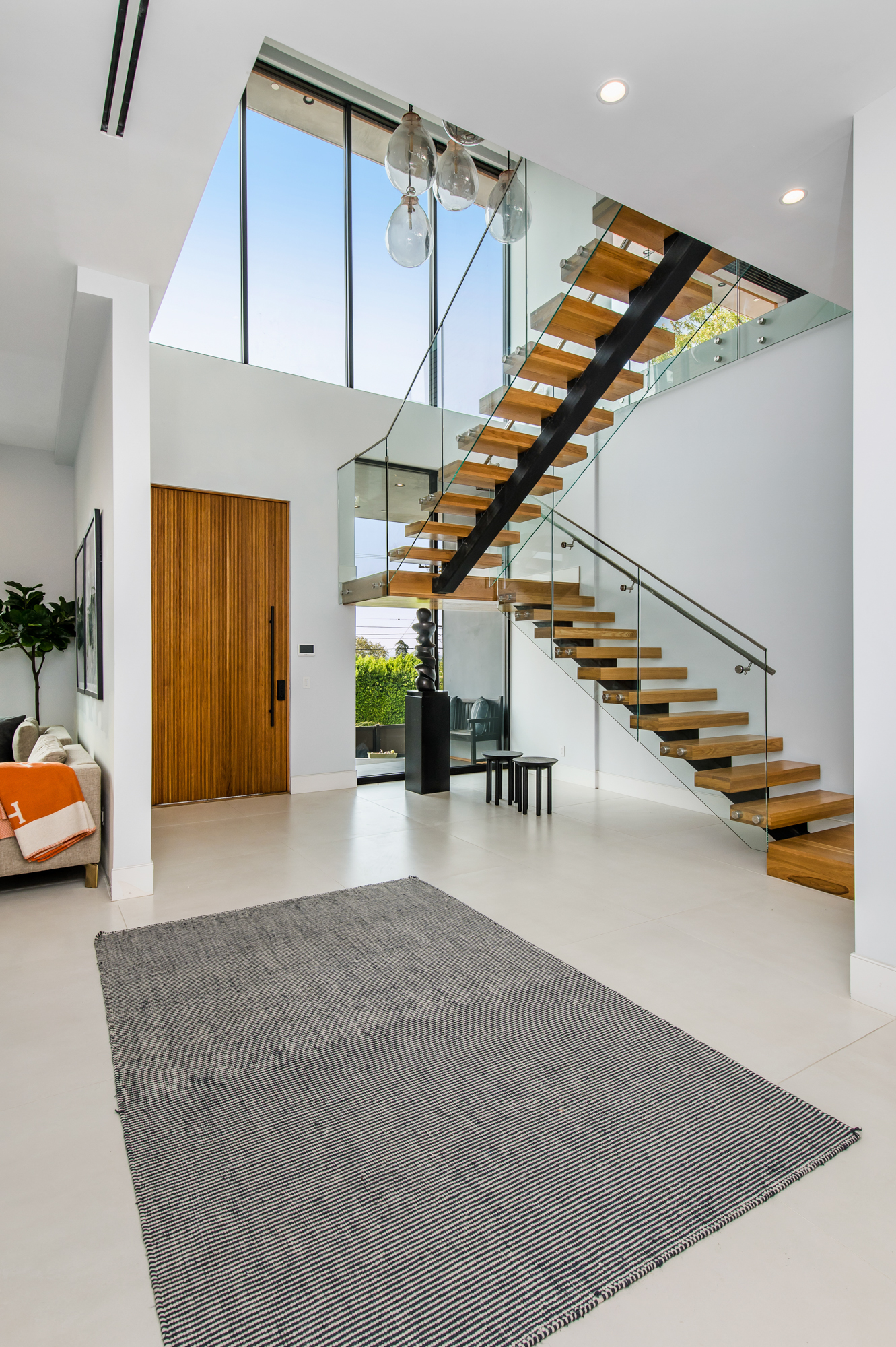 Situated on a prestigious street south of the Blvd, this contemporary modern estate is the newest gem in Sherman Oaks. Flawless at every angle, guests arrive to a multi-level entertainment statement property designed for the most discerning buyer. Inside guests are greeted w/ soaring ceilings & a floating glass staircase that adorns a large main foyer, overlooking the expansive floor plan. Sophisticated formal living room features a large stone linear fireplace, temperature controlled wine cellar, & floor to ceiling pocket sliding doors that open to the entertainer’s dream backyard. Elegant formal dining room offers a bar & opens to a patio w/ expansive views of the valley. Gourmet Chef’s kitchen features quartz counters, large center island w/ breakfast bar, breakfast nook & walk in pantry. Upstairs, the master retreat features a wet bar, fireplace, private balconies, spa-like master bath, & illuminated walk-in closet. Finally, a boasting rooftop deck w/ gym showcases 180 degree jetliner views of the valley. A second kitchen, media room & 4 additional guest suites complete this estate. Backyard sanctuary provides multi level seating areas, elevated sparkling pool & spa w/ transparent glass & cascading waterfalls, covered patio w/ fireplace, outdoor kitchen & elevated fire-pit bar. Additional amenities include Control4 smart system, security cameras, surround sound & elevator. Live a luxurious lifestyle that is within close proximity to shops, fine dining & more.