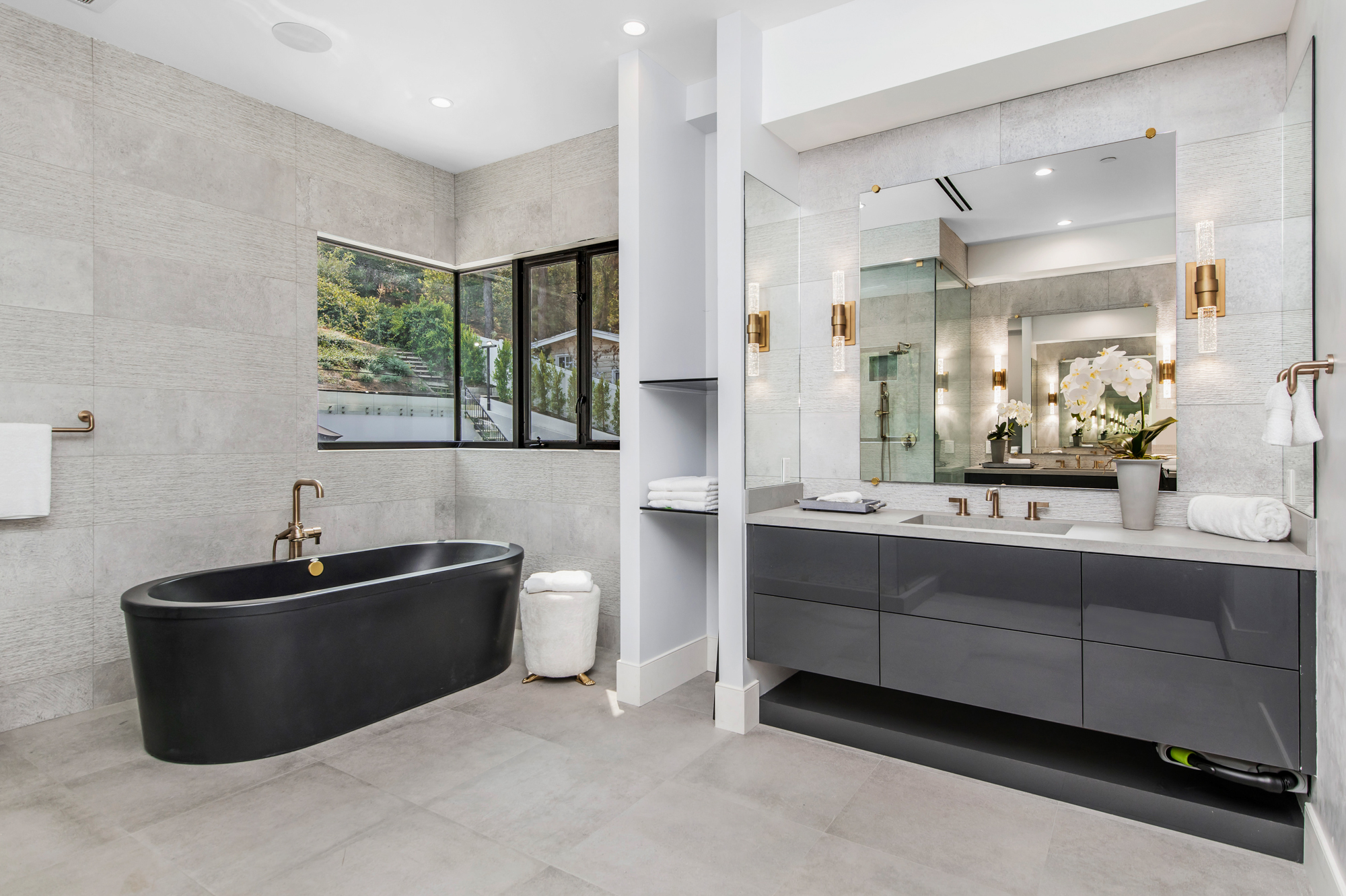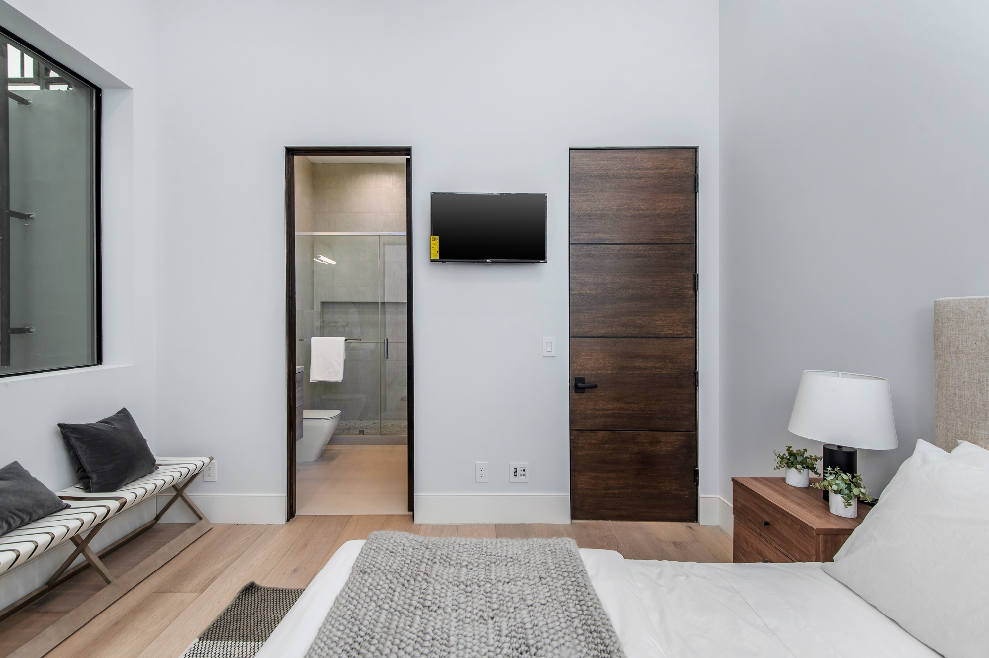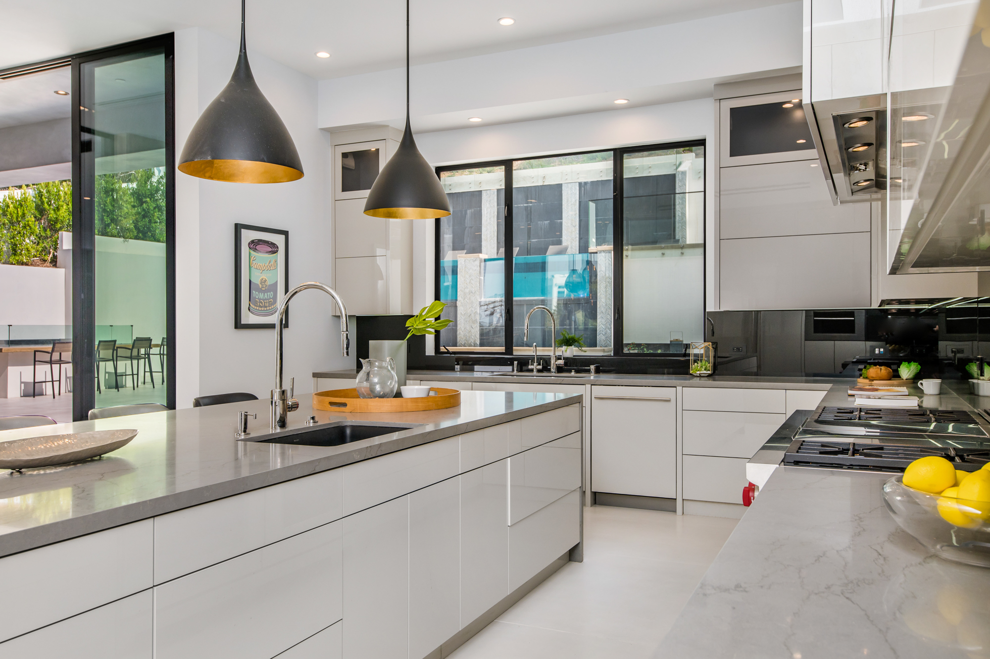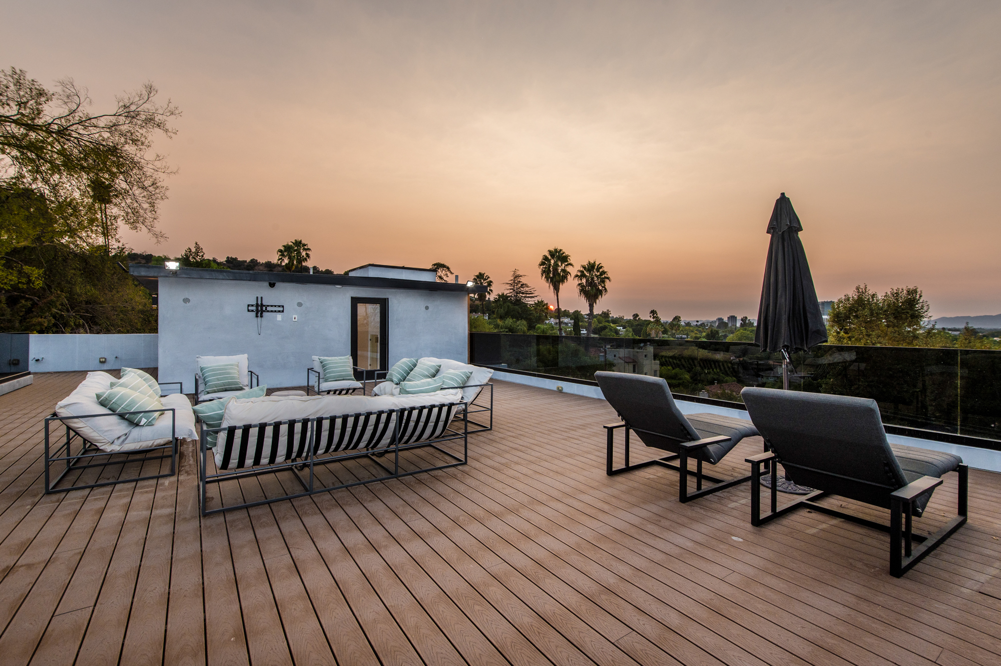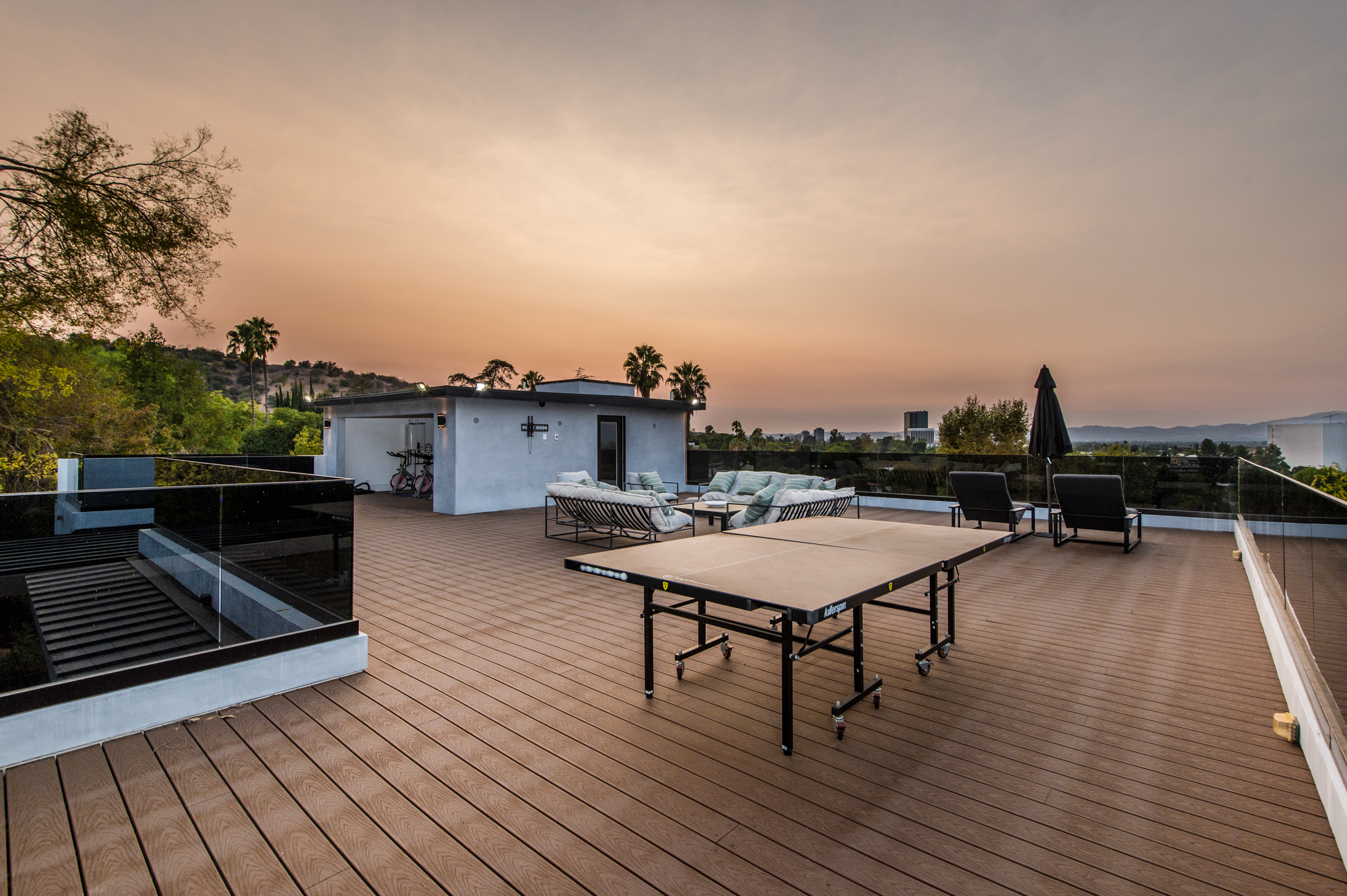 Situated on a prestigious street south of the Blvd, this contemporary modern estate is the newest gem in Sherman Oaks. Flawless at every angle, guests arrive to a multi-level entertainment statement property designed for the most discerning buyer. Inside guests are greeted w/ soaring ceilings & a floating glass staircase that adorns a large main foyer, overlooking the expansive floor plan. Sophisticated formal living room features a large stone linear fireplace, temperature controlled wine cellar, & floor to ceiling pocket sliding doors that open to the entertainer’s dream backyard. Elegant formal dining room offers a bar & opens to a patio w/ expansive views of the valley. Gourmet Chef’s kitchen features quartz counters, large center island w/ breakfast bar, breakfast nook & walk in pantry. Upstairs, the master retreat features a wet bar, fireplace, private balconies, spa-like master bath, & illuminated walk-in closet. Finally, a boasting rooftop deck w/ gym showcases 180 degree jetliner views of the valley. A second kitchen, media room & 4 additional guest suites complete this estate. Backyard sanctuary provides multi level seating areas, elevated sparkling pool & spa w/ transparent glass & cascading waterfalls, covered patio w/ fireplace, outdoor kitchen & elevated fire-pit bar. Additional amenities include Control4 smart system, security cameras, surround sound & elevator. Live a luxurious lifestyle that is within close proximity to shops, fine dining & more.