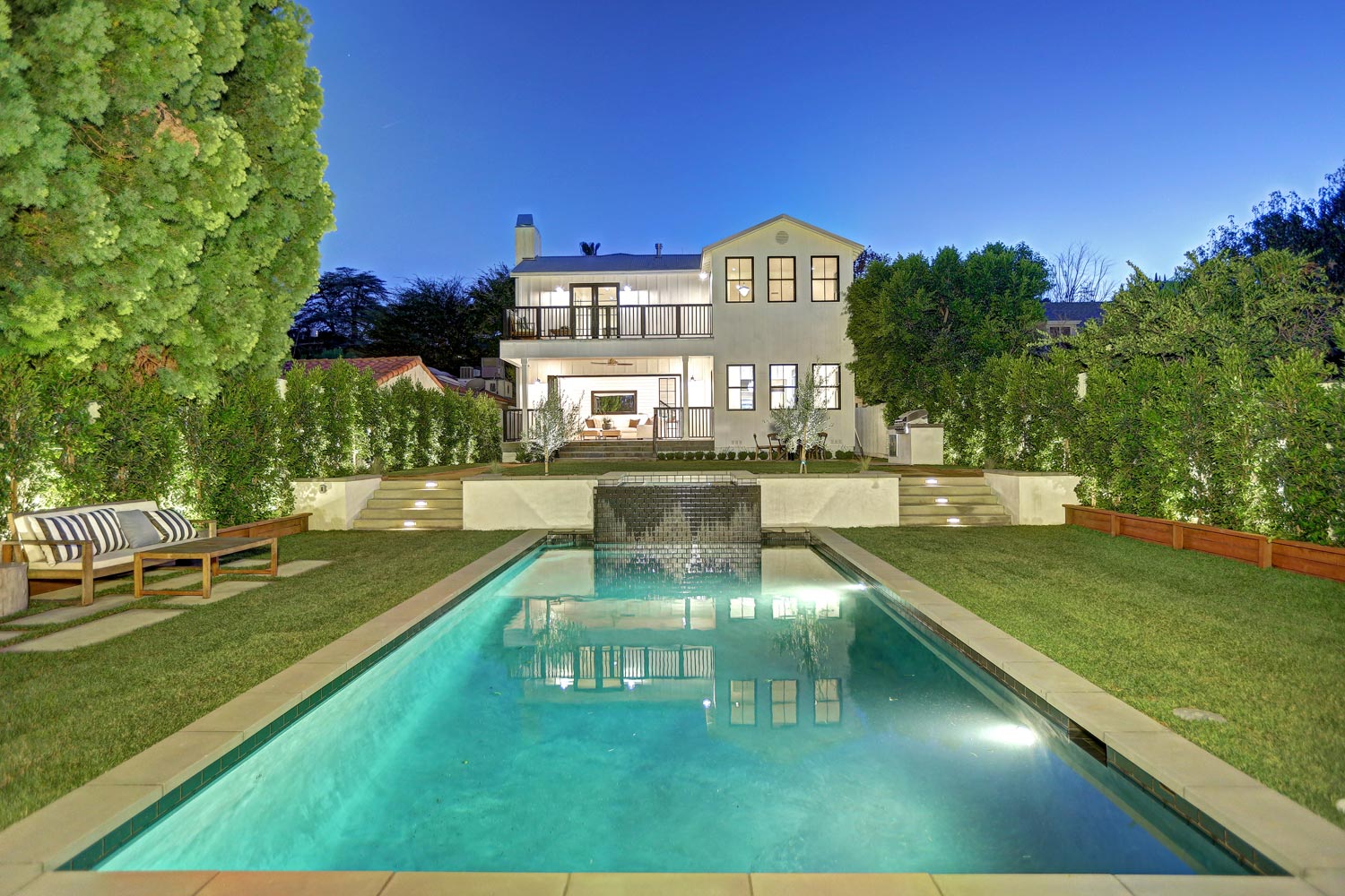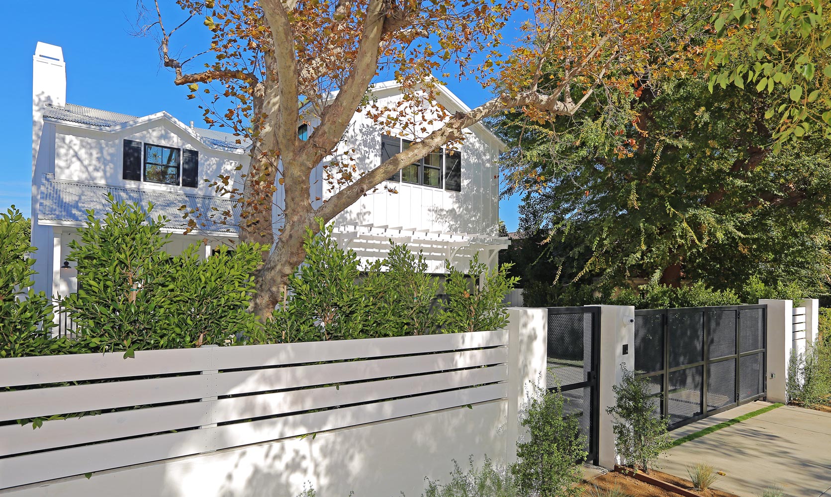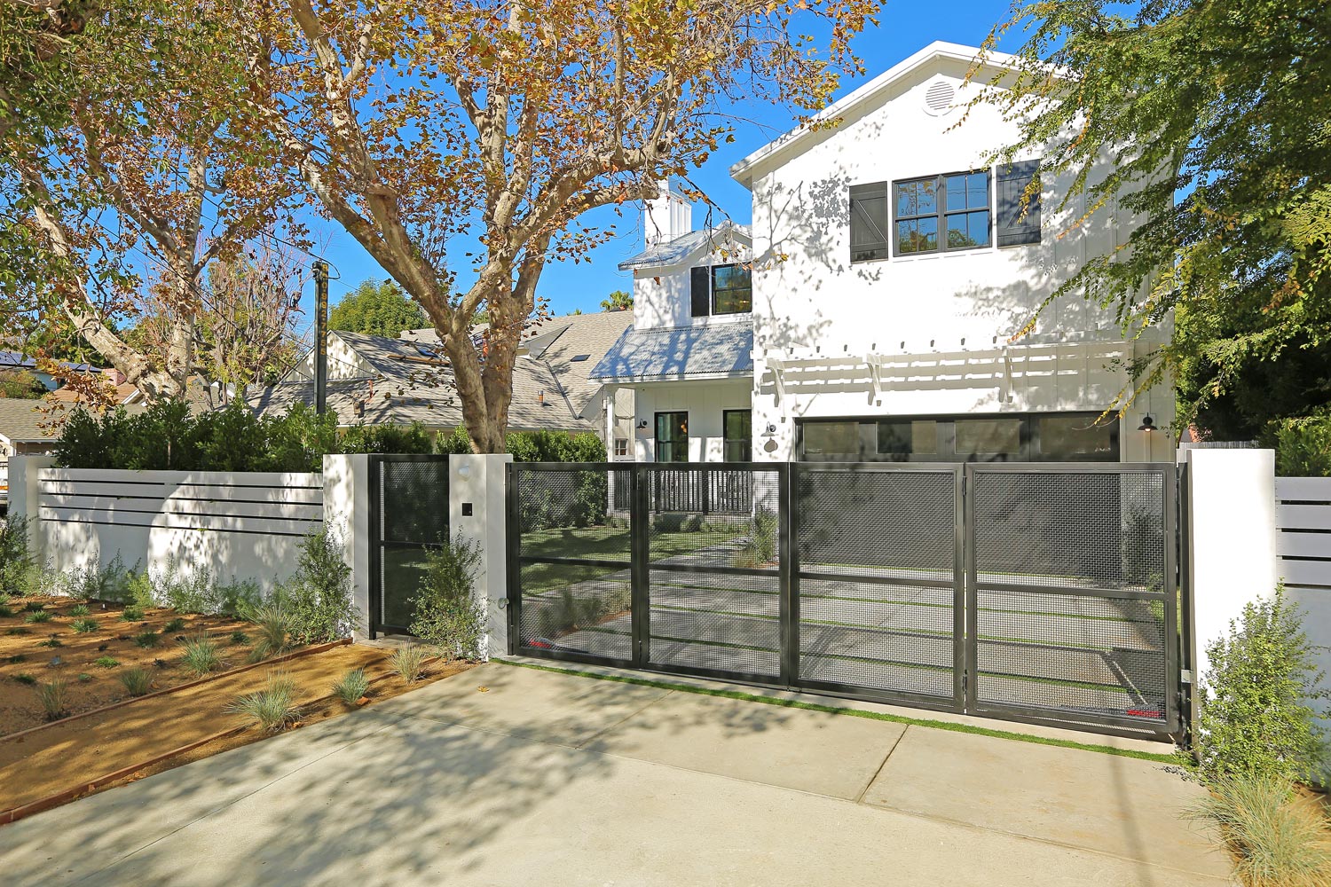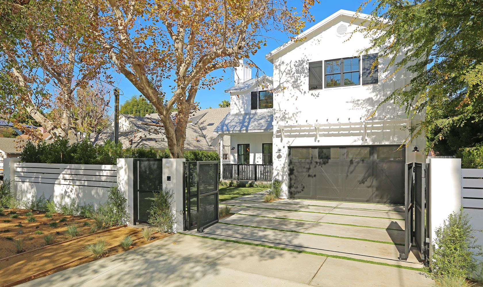 This sprawling gated modern farm is simply an exceptional interpretation between clean lines and timeless materials. Stepping into this sunlit home you will feel the depth, scale, quality and thoughtfulness that went into this architectural large lot property. Equipped with movie theatre, Crestron system, dolby 5.1 sound, Waterworks plumbing supplies,book ended calcutta slabs, wolf/pro glass sub zero, light oak farm floors, La Cantina doors,custom barn doors with wired embedded glass and steel roof to name a few. At 215 feet of lot depth there is plenty of room to enjoy outdoor cooking, entertaining, swimming in your 40 foot long black bottom pool or relaxing in the pool house. Simply put the Sutton house has set the bar for construction.