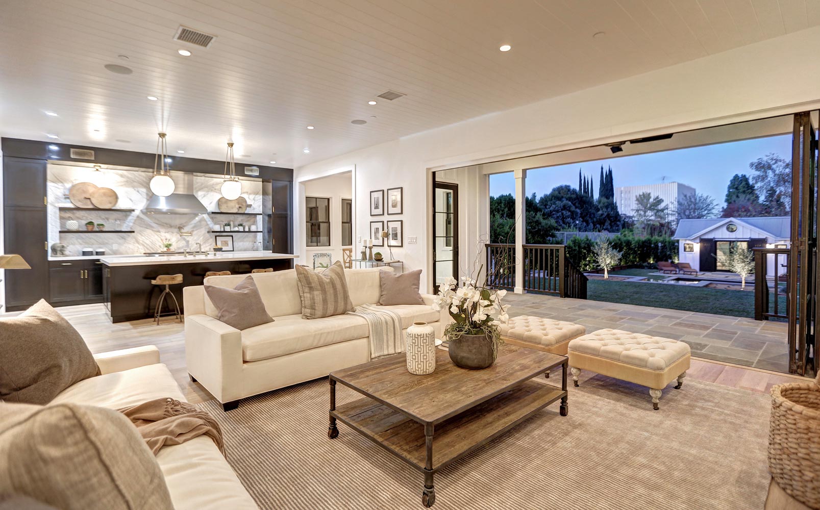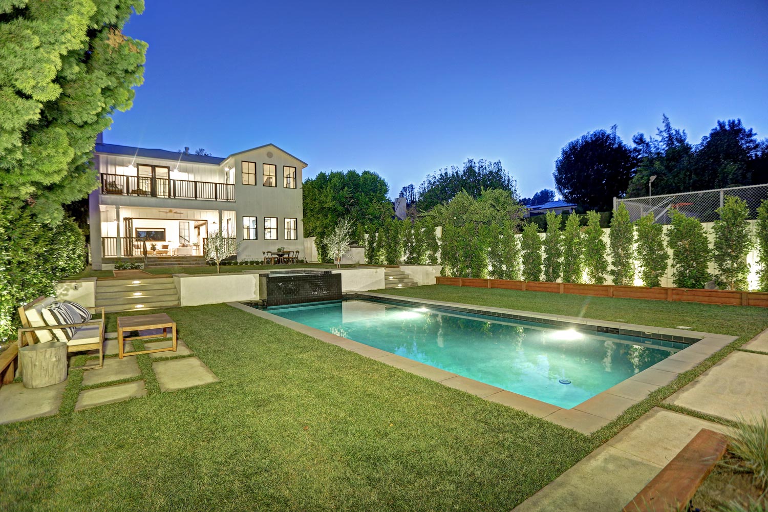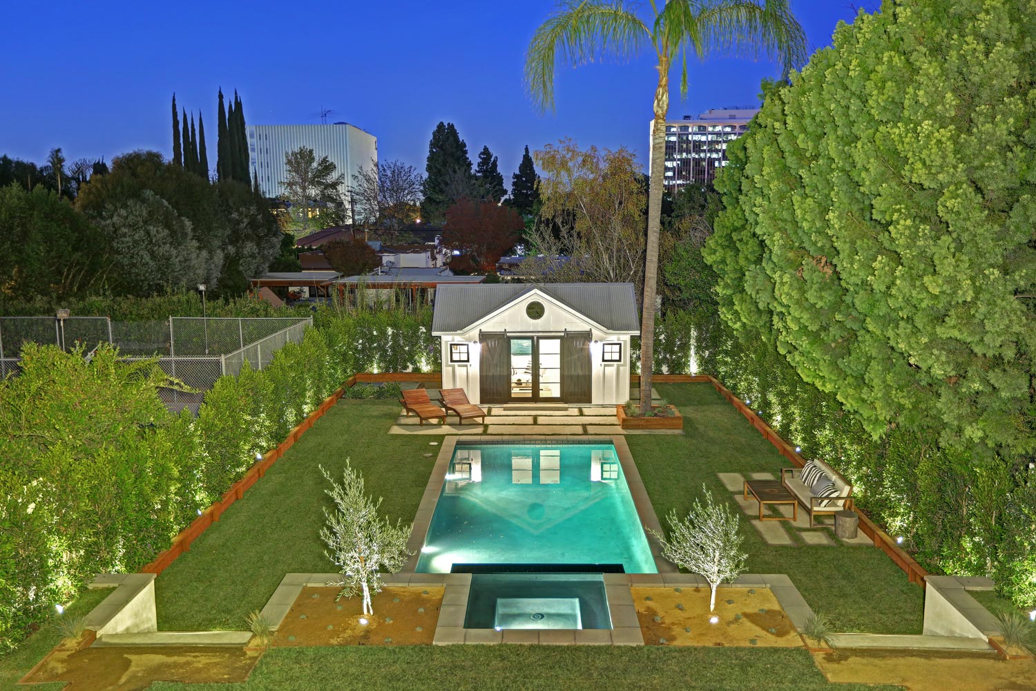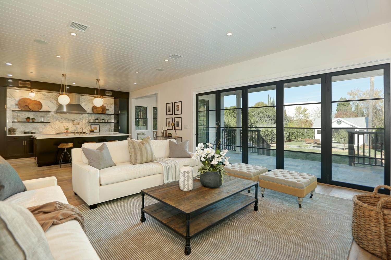 This sprawling gated modern farm is simply an exceptional interpretation between clean lines and timeless materials. Stepping into this sunlit home you will feel the depth, scale, quality and thoughtfulness that went into this architectural large lot property. Equipped with movie theatre, Crestron system, dolby 5.1 sound, Waterworks plumbing supplies,book ended calcutta slabs, wolf/pro glass sub zero, light oak farm floors, La Cantina doors,custom barn doors with wired embedded glass and steel roof to name a few. At 215 feet of lot depth there is plenty of room to enjoy outdoor cooking, entertaining, swimming in your 40 foot long black bottom pool or relaxing in the pool house. Simply put the Sutton house has set the bar for construction.