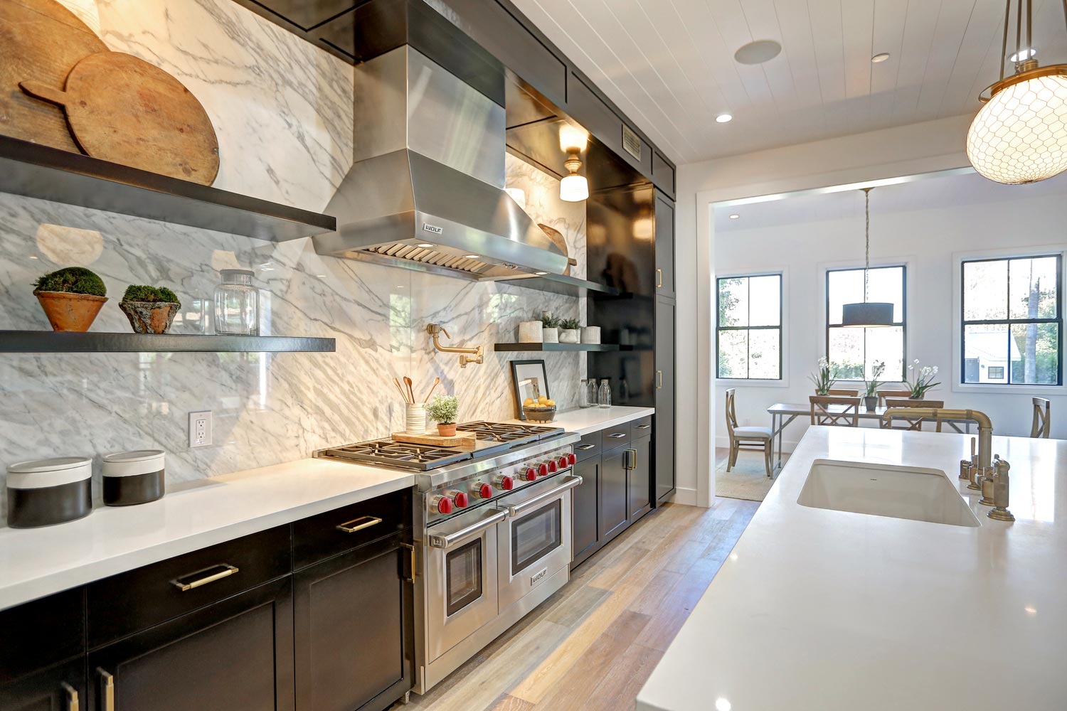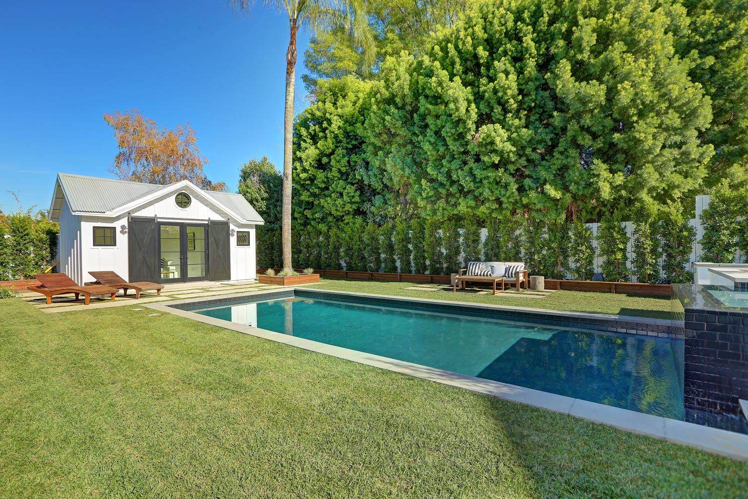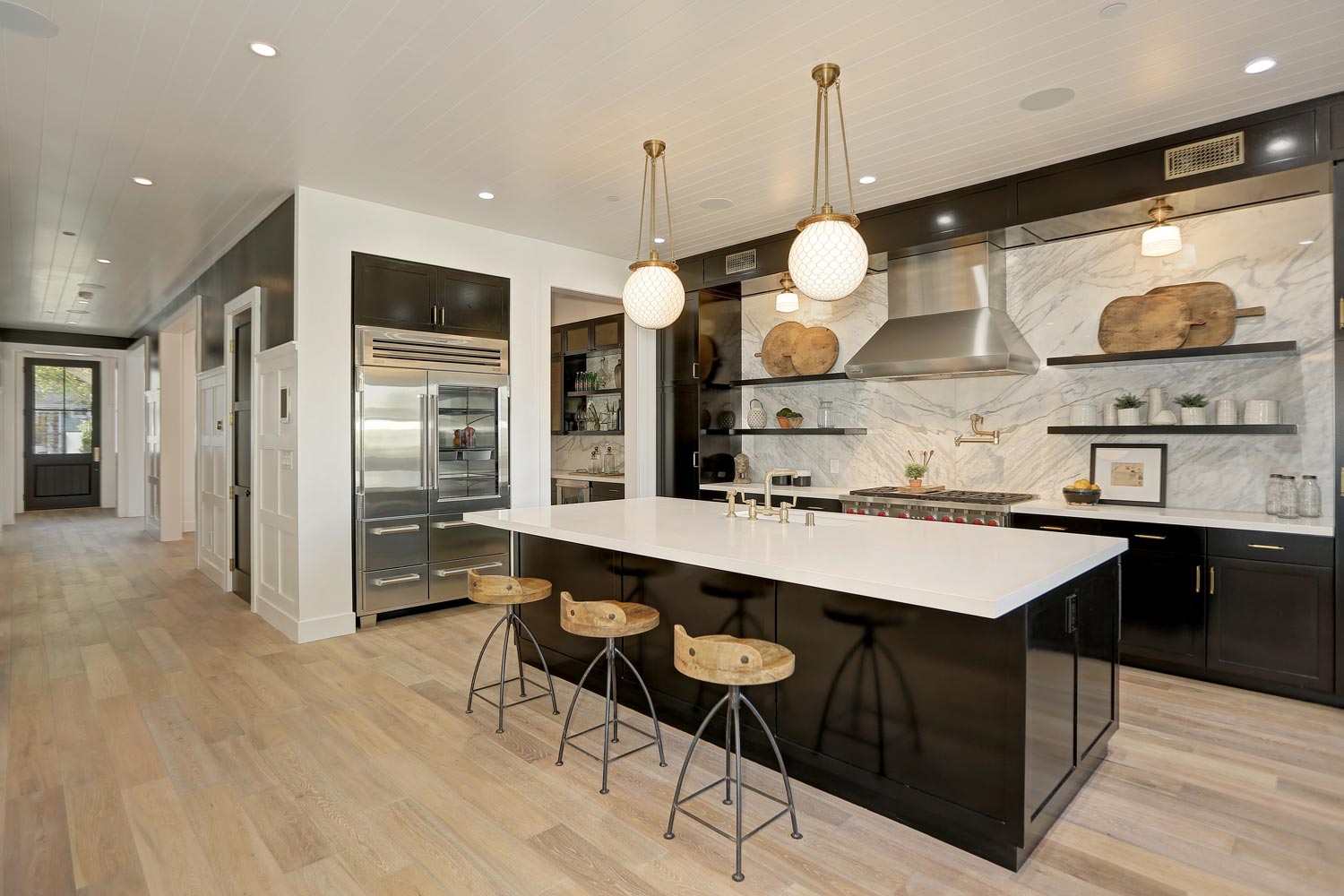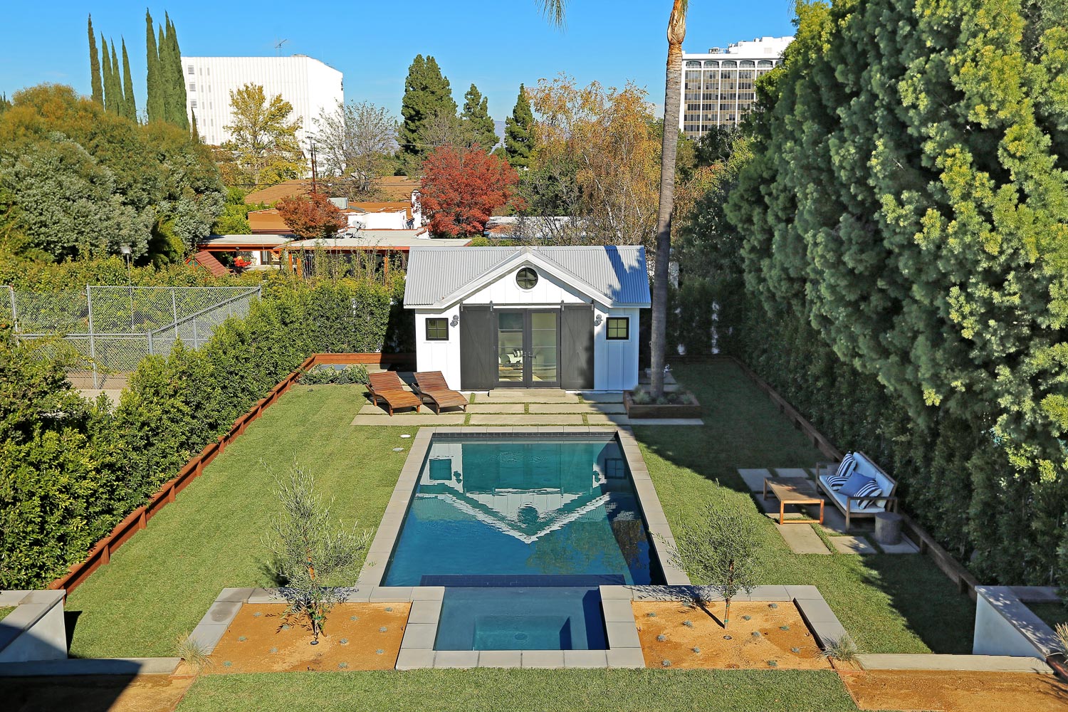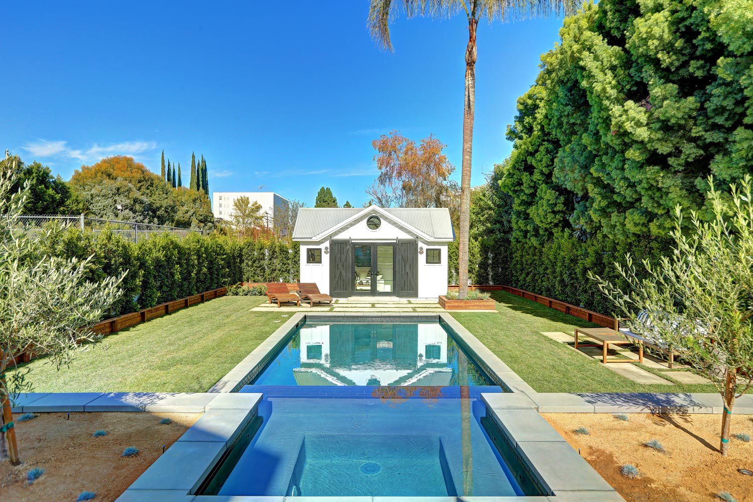 This sprawling gated modern farm is simply an exceptional interpretation between clean lines and timeless materials. Stepping into this sunlit home you will feel the depth, scale, quality and thoughtfulness that went into this architectural large lot property. Equipped with movie theatre, Crestron system, dolby 5.1 sound, Waterworks plumbing supplies,book ended calcutta slabs, wolf/pro glass sub zero, light oak farm floors, La Cantina doors,custom barn doors with wired embedded glass and steel roof to name a few. At 215 feet of lot depth there is plenty of room to enjoy outdoor cooking, entertaining, swimming in your 40 foot long black bottom pool or relaxing in the pool house. Simply put the Sutton house has set the bar for construction.