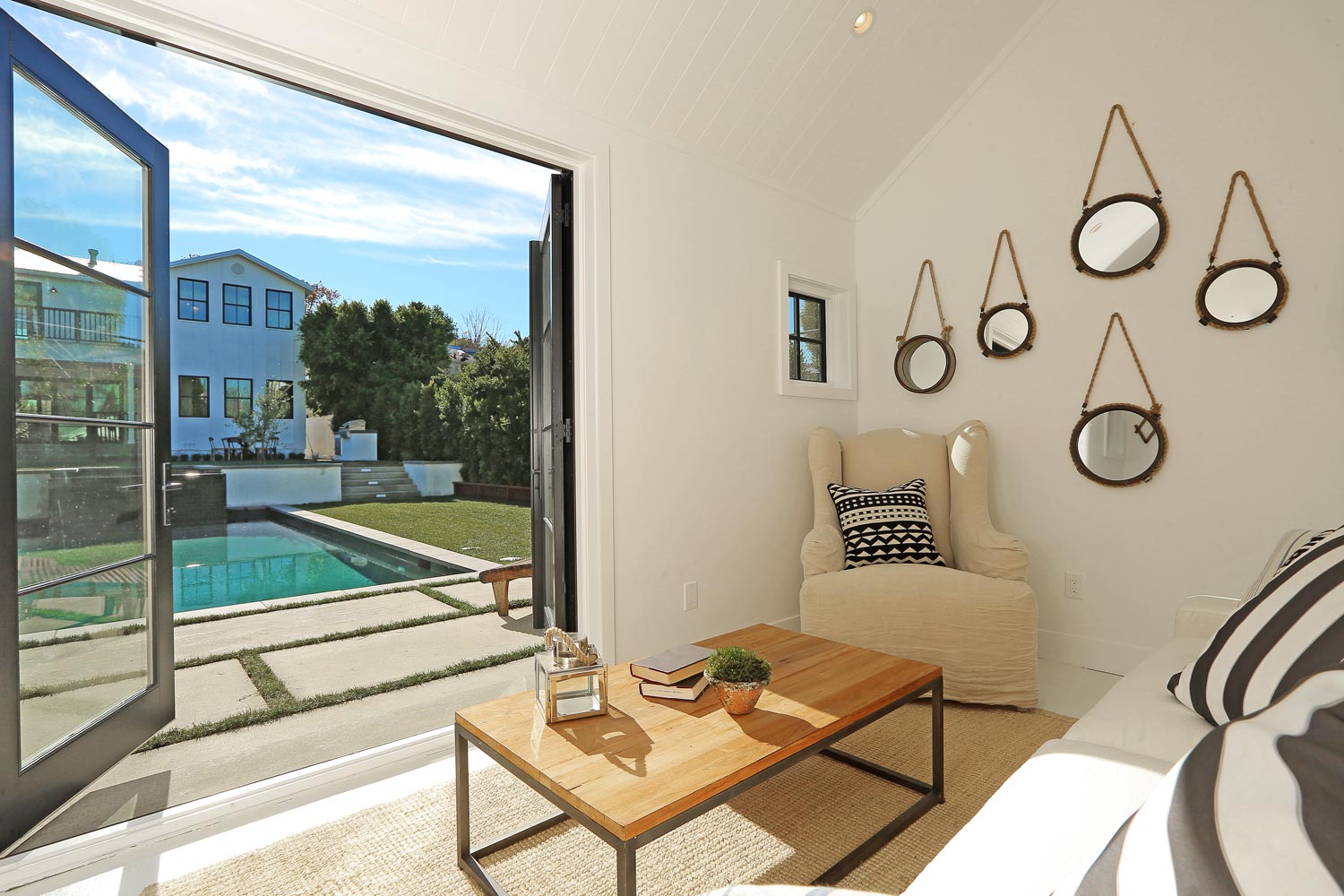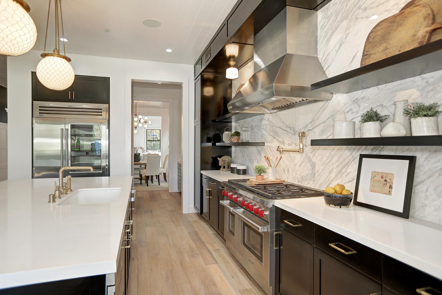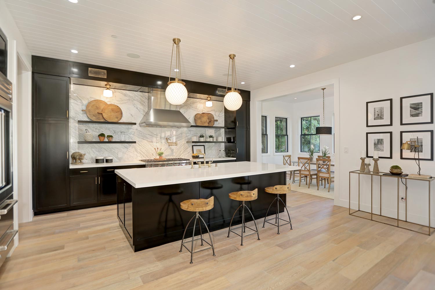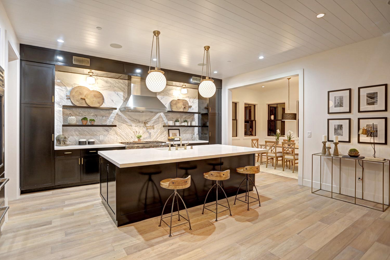 This sprawling gated modern farm is simply an exceptional interpretation between clean lines and timeless materials. Stepping into this sunlit home you will feel the depth, scale, quality and thoughtfulness that went into this architectural large lot property. Equipped with movie theatre, Crestron system, dolby 5.1 sound, Waterworks plumbing supplies,book ended calcutta slabs, wolf/pro glass sub zero, light oak farm floors, La Cantina doors,custom barn doors with wired embedded glass and steel roof to name a few. At 215 feet of lot depth there is plenty of room to enjoy outdoor cooking, entertaining, swimming in your 40 foot long black bottom pool or relaxing in the pool house. Simply put the Sutton house has set the bar for construction.