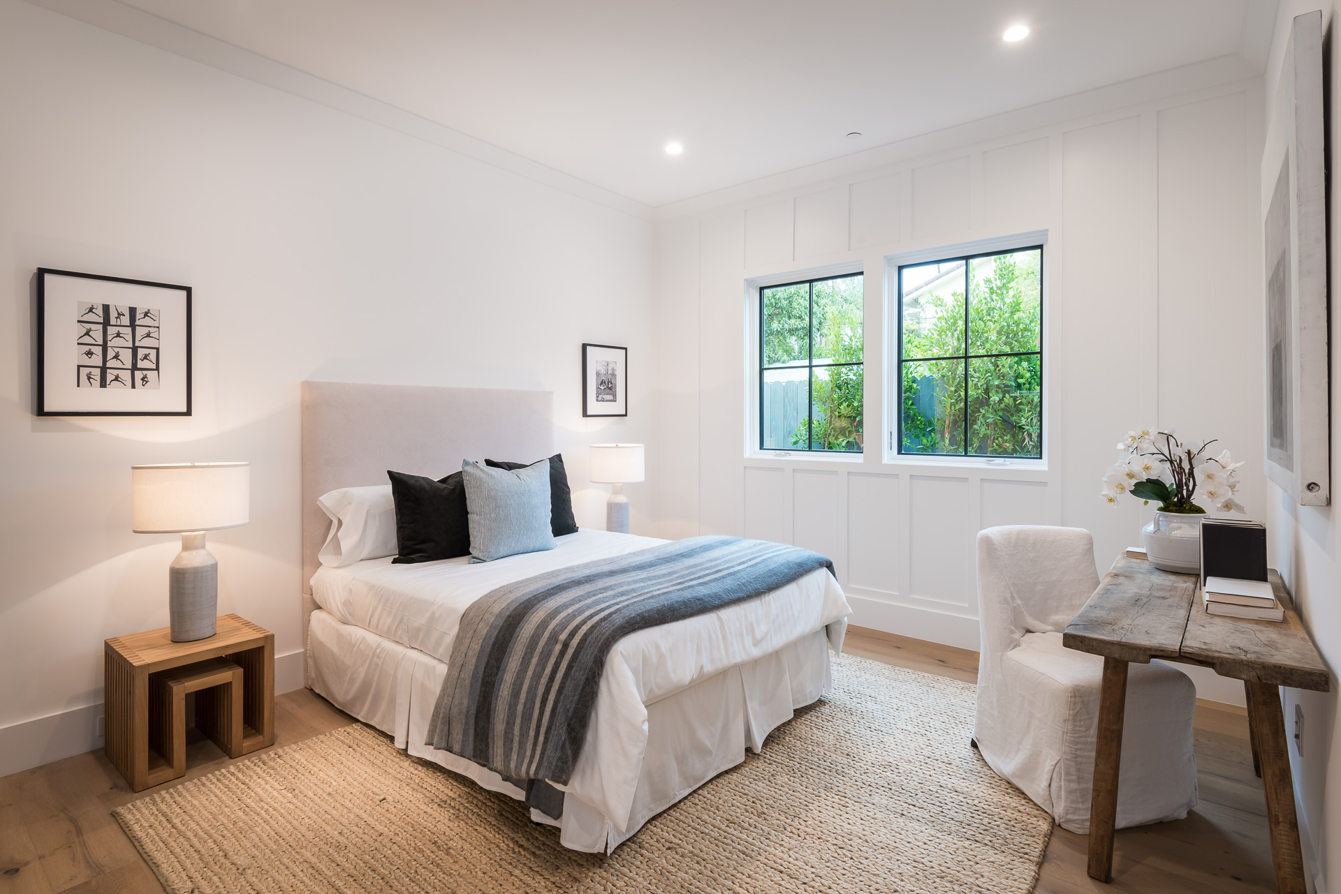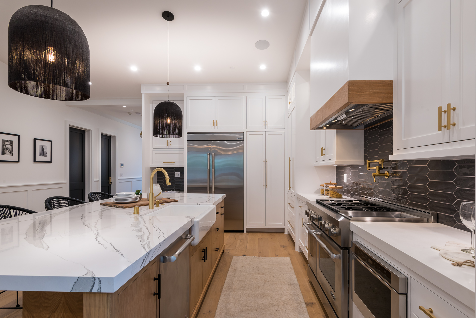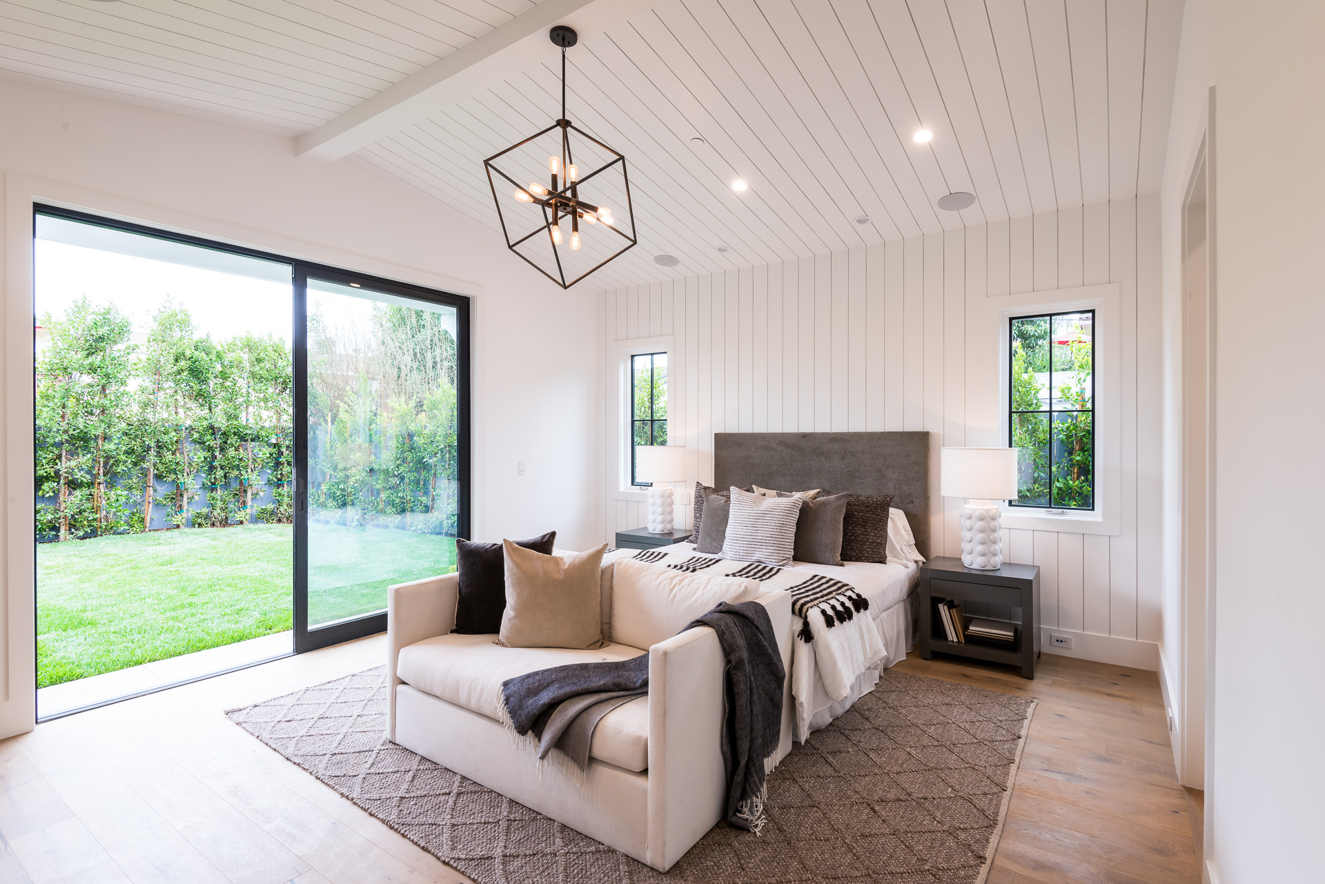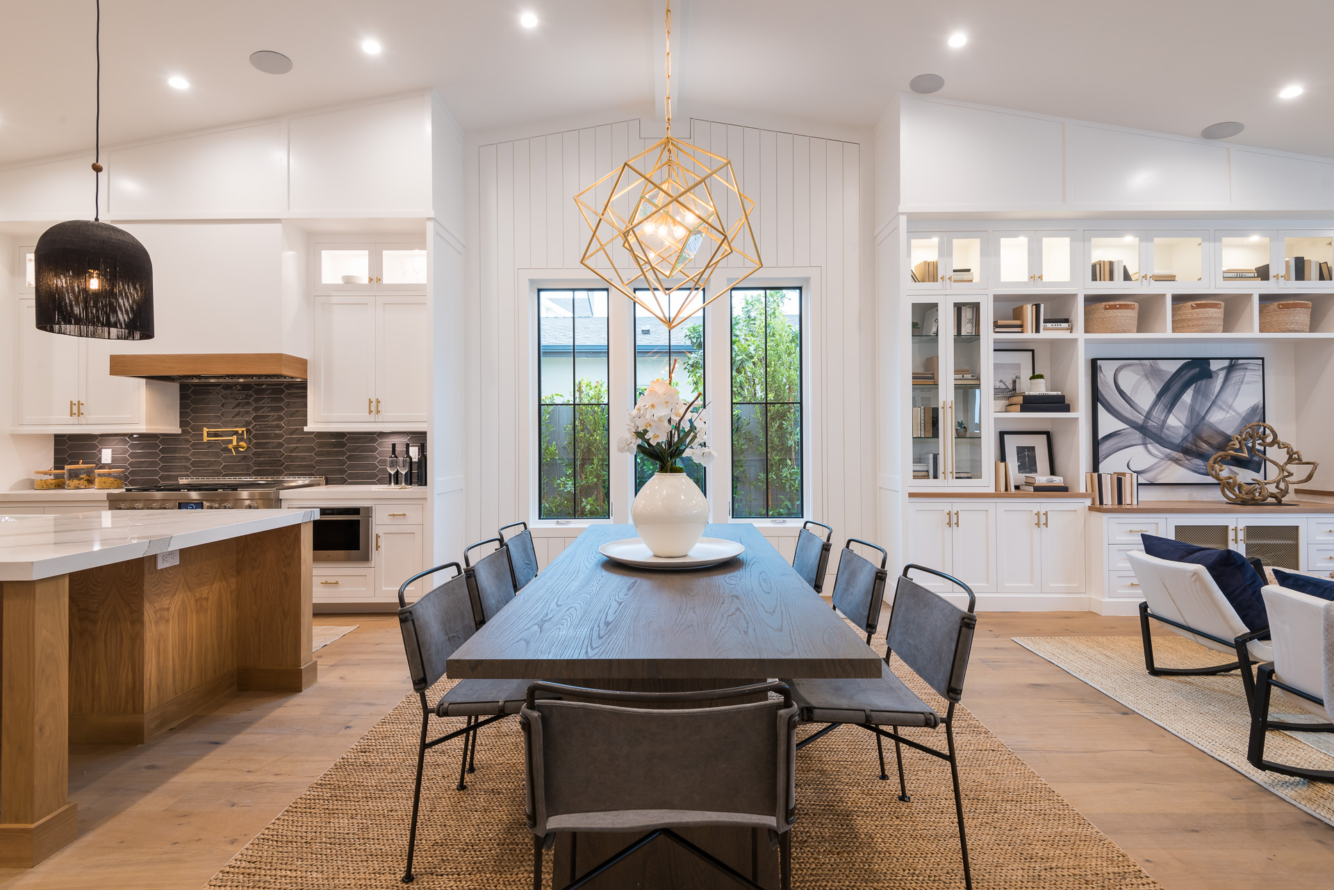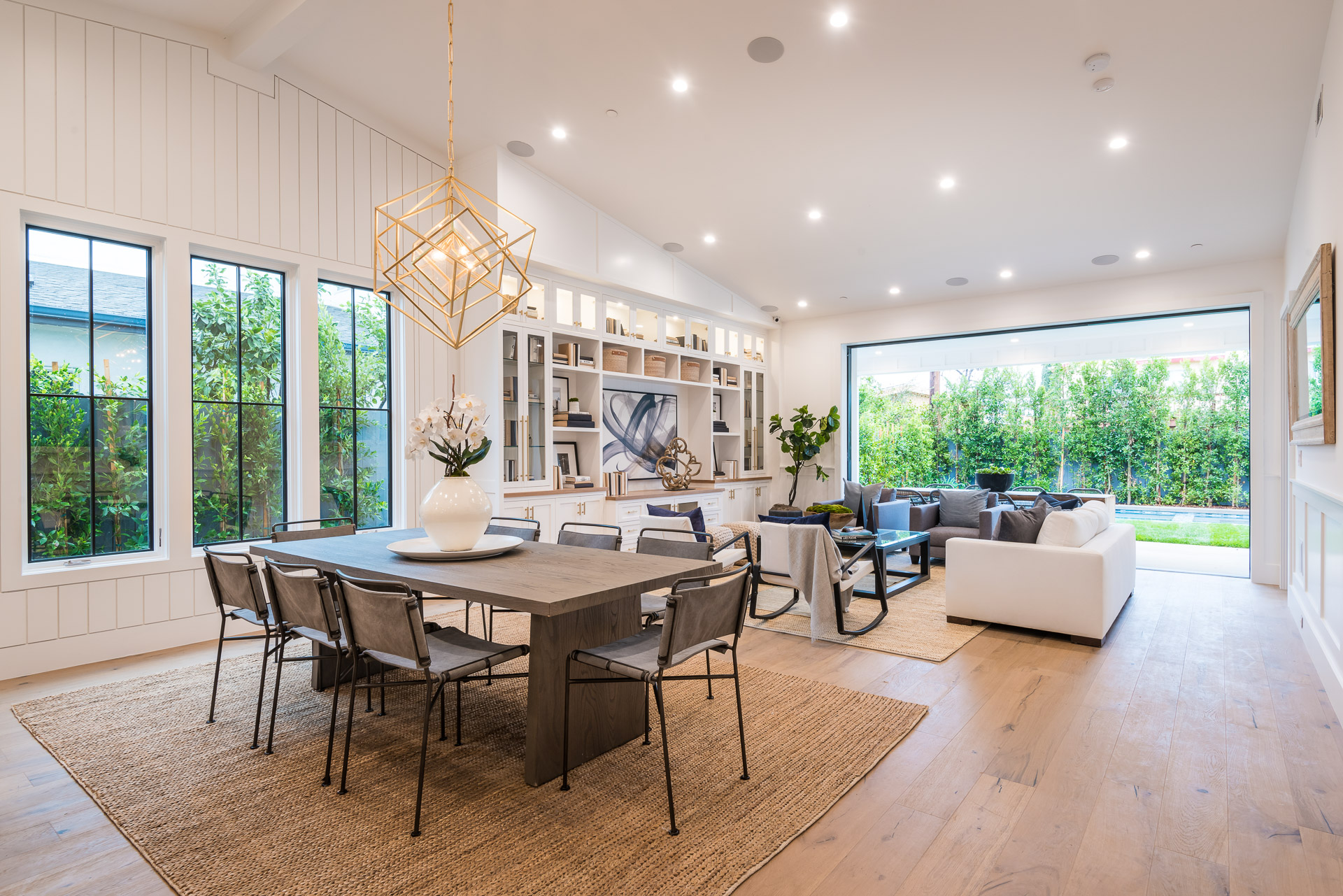 This captivating one-story new construction is any buyers dream home. The grand entrance sets the tone of the rest of the home, with soaring ceilings, an inviting open concept floor plan that leads you to your gourmet chef’s kitchen with high-end appliances and an oversized marble island. The family room is equipped with custom built-ins and floor to ceiling sliding glass doors, opening up to the beautiful backyard with lush landscaping, pool+spa, & BBQ zone. All four bedrooms are en-suite with unique tile work giving each bathroom its own flare. The master has a spa-like bathroom with dual vanities, soaking tub, and oversized shower. Large sliding glass doors in the master offer tranquil views of the backyard. Other amenities include Control-4 smart home, attached two car garage, separate laundry room with utility sink, and luxury finishes throughout. This is a truly remarkable one-story home in the heart of Sherman Oaks!