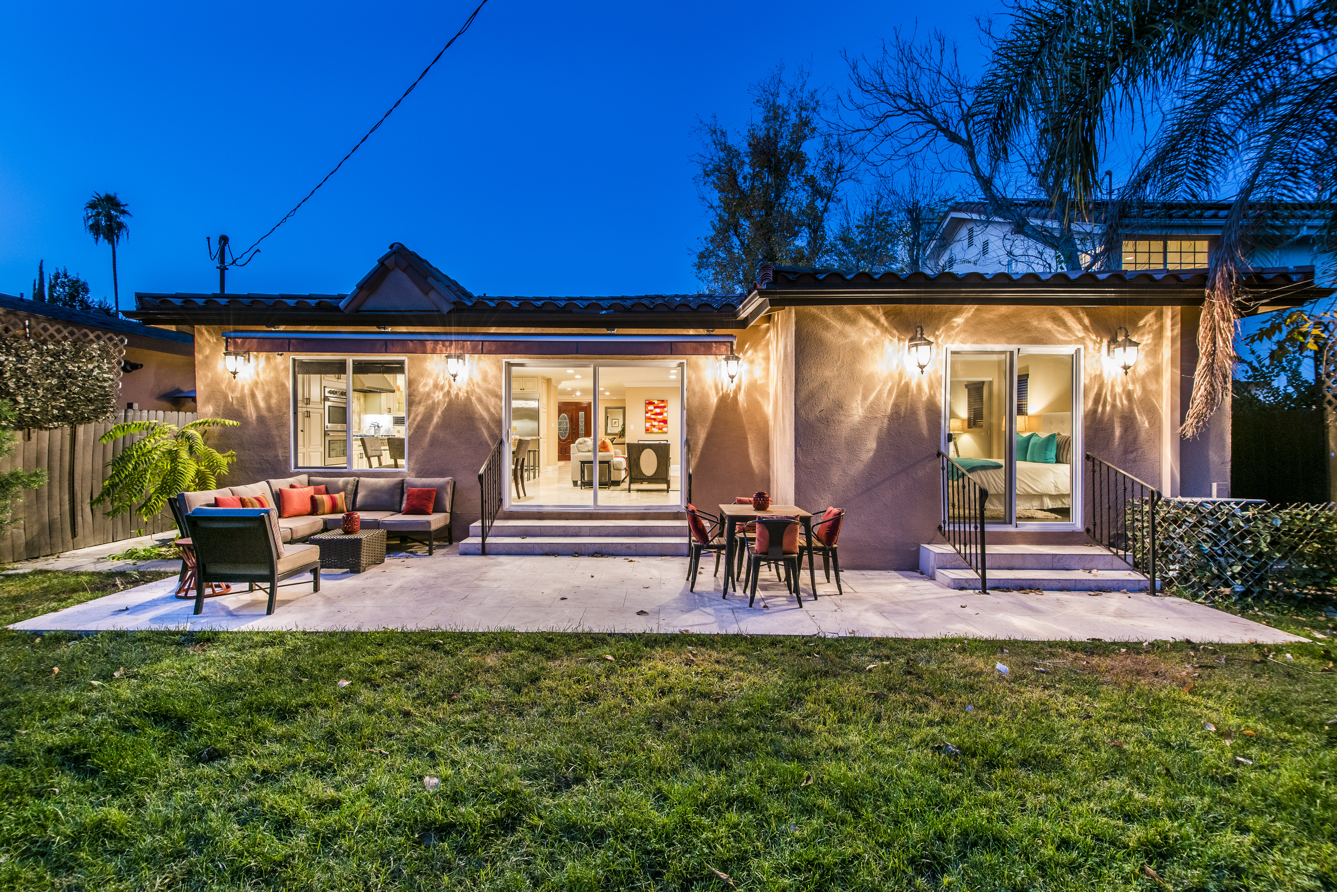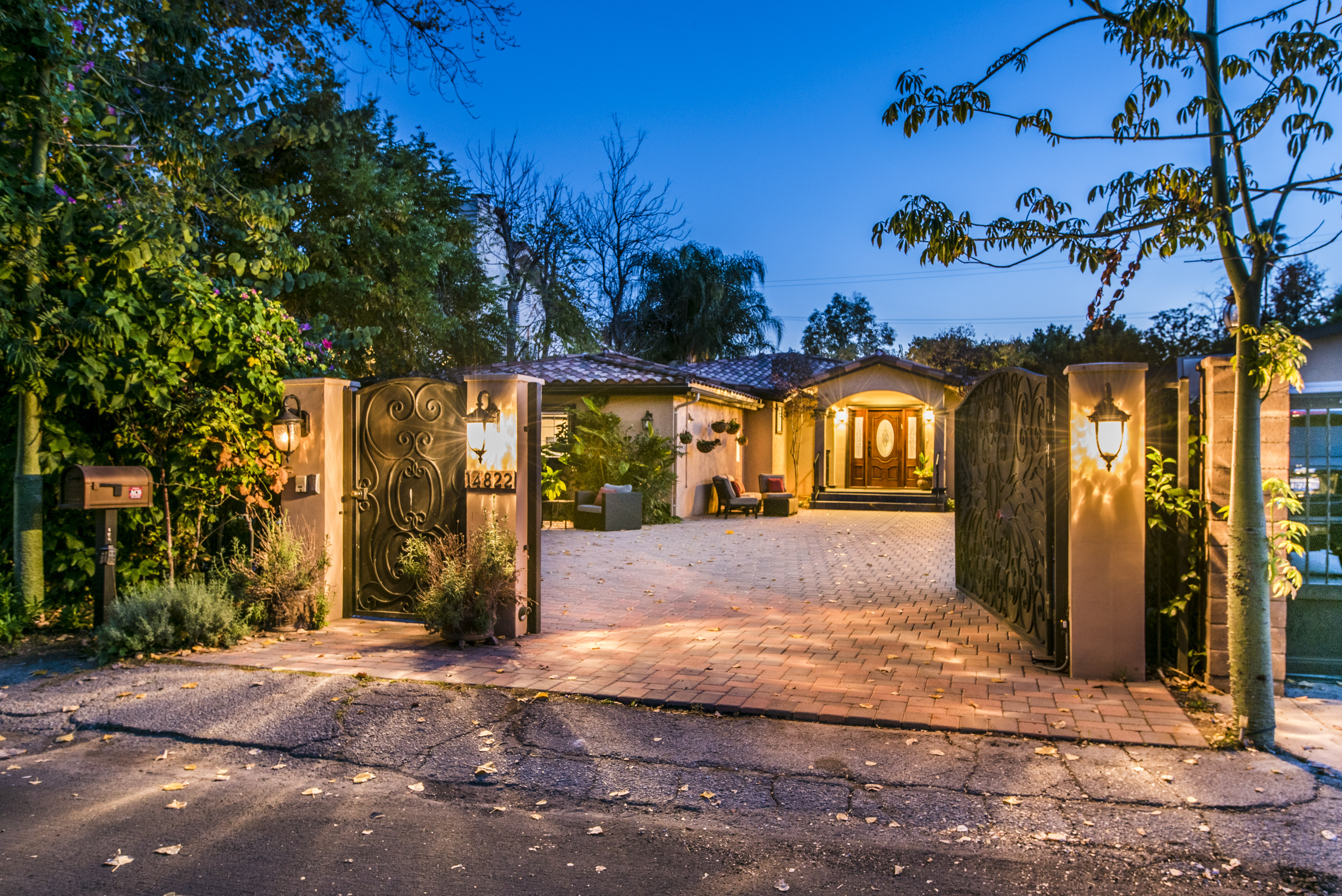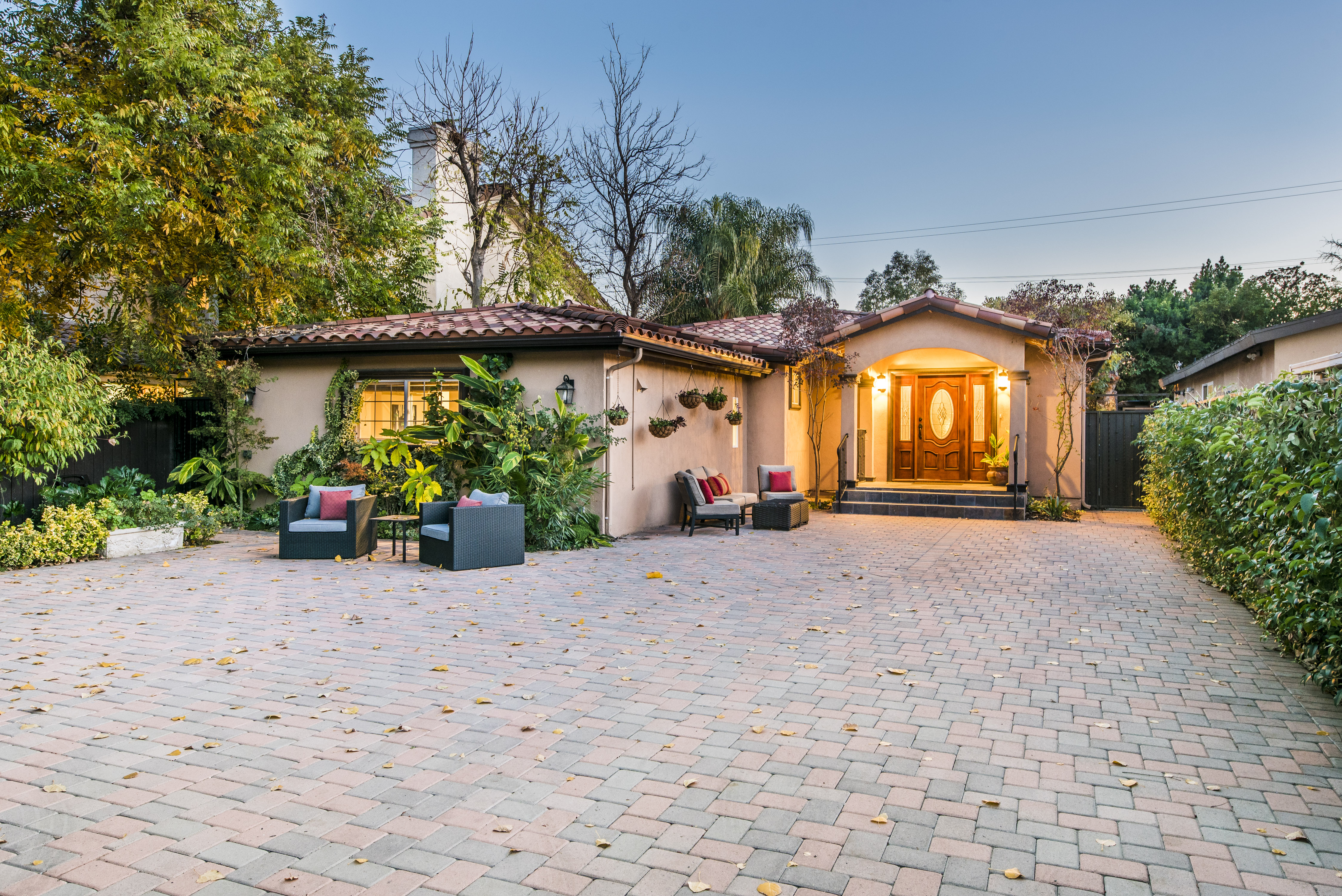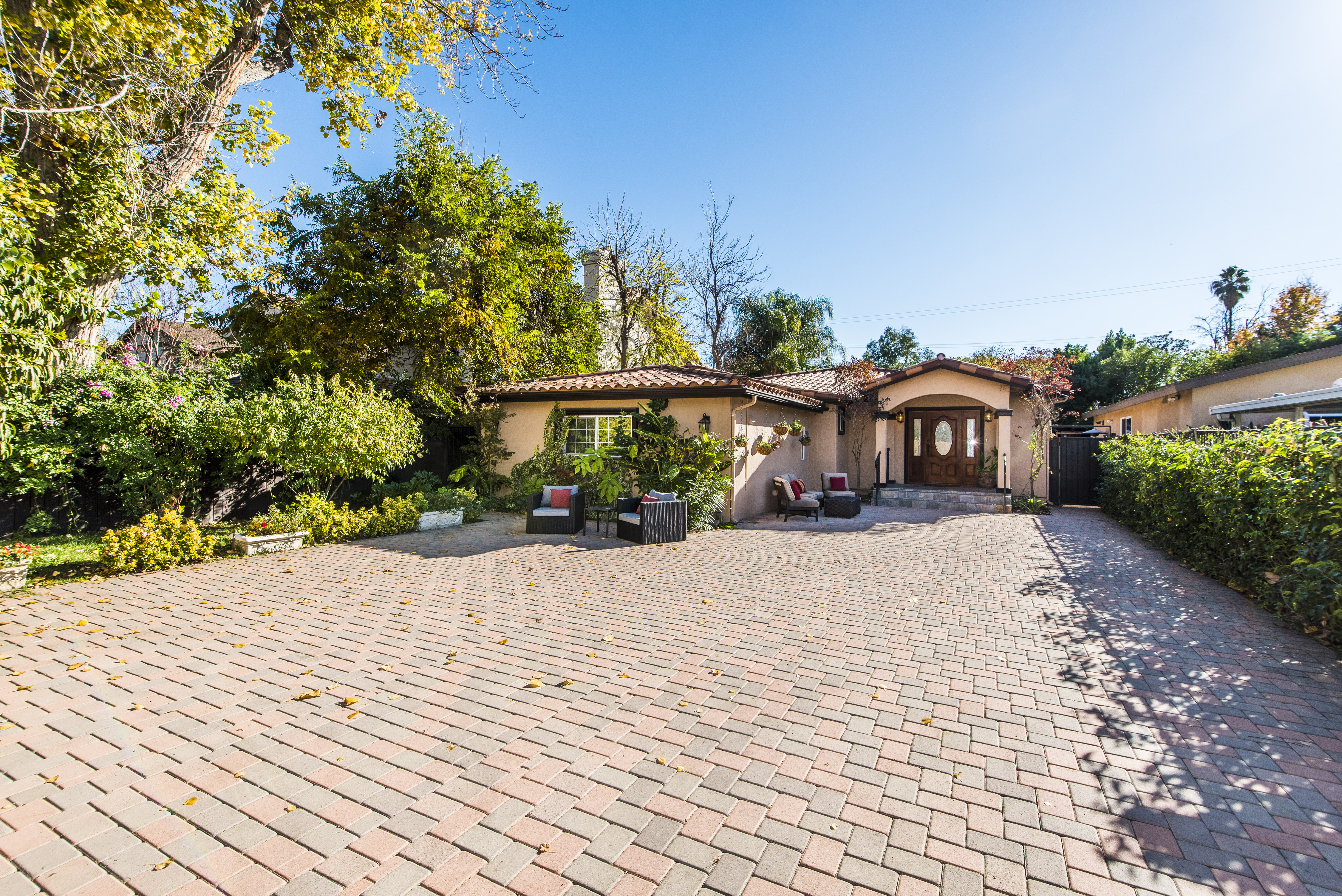 Custom built, one-level home with permitted guest house with full kitchen and bathroom located in the heart of Sherman Oaks. Th main home offers 3 beds and 4 baths, while the guest house offers a kitchen, ¾ bath, and is complete with its own entrance, making it ideal as a guest suite, home office, man cave, and more! Set behind private gates, the large driveway leads you to the covered front patio. As you enter the home, travertine floors grace the living spaces, effortlessly connecting the living room, dining area, and kitchen. The chef’s kitchen features elegant granite countertops, high end appliances, and oversized island with sink and breakfast bar. The spacious master suite has sliding doors to the backyard, a walk-in closet, and a luxurious bathroom with dual vanities, jetted tub, and glass enclosed shower. The backyard features a patio area and large grassy area, perfect for al-fresco dining and SoCal nights. Other amenities include wood flooring, terracotta roof, hand-laid stone courtyard, and pre-wiring for security and surveillance systems. Located in Kester Avenue Elementary school district, moments from the Sherman Oaks Galleria, Sherman Oaks Park, Ventura Blvd, and conveniently located to both the 101 and 405 freeways. This home is sure to go fast!