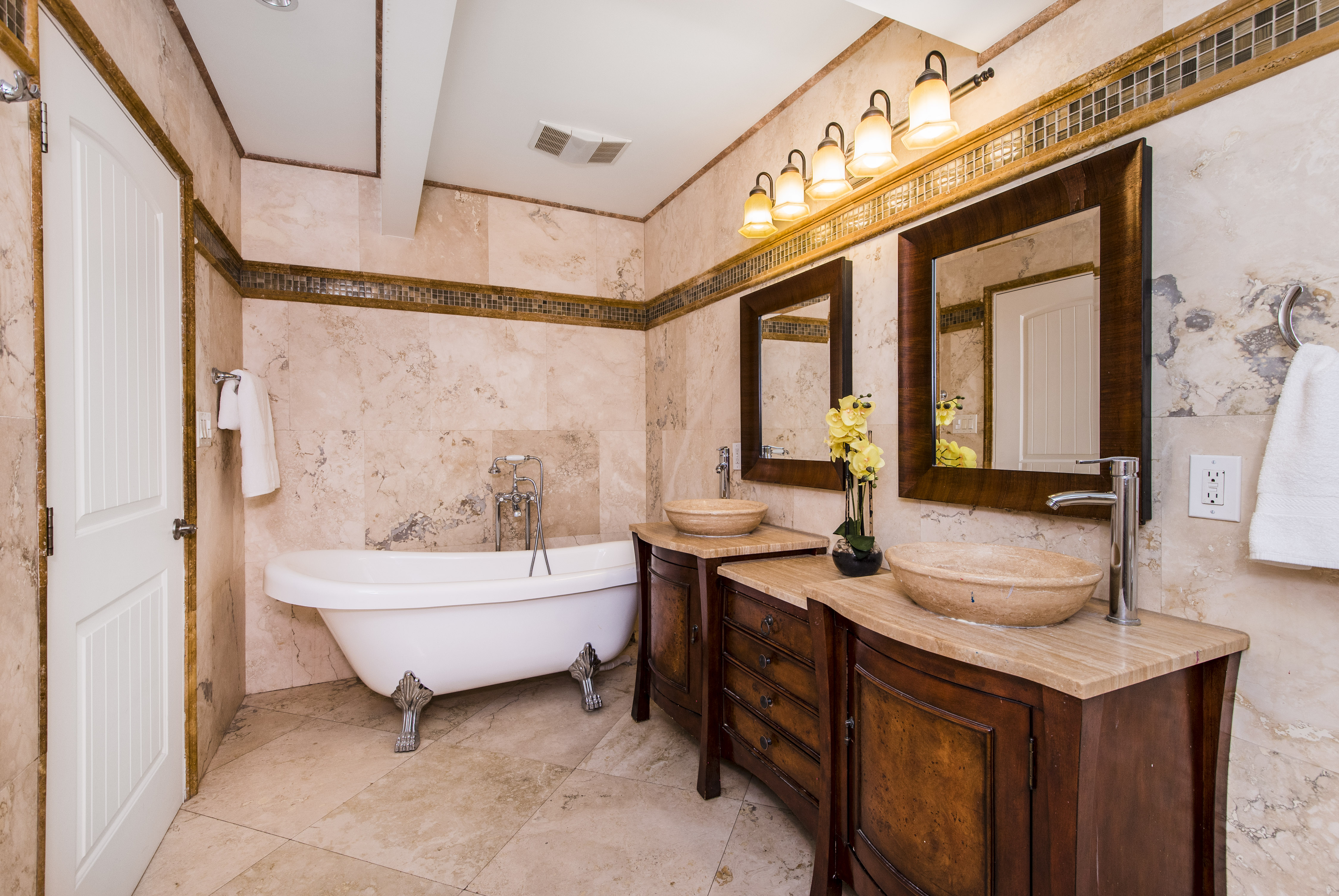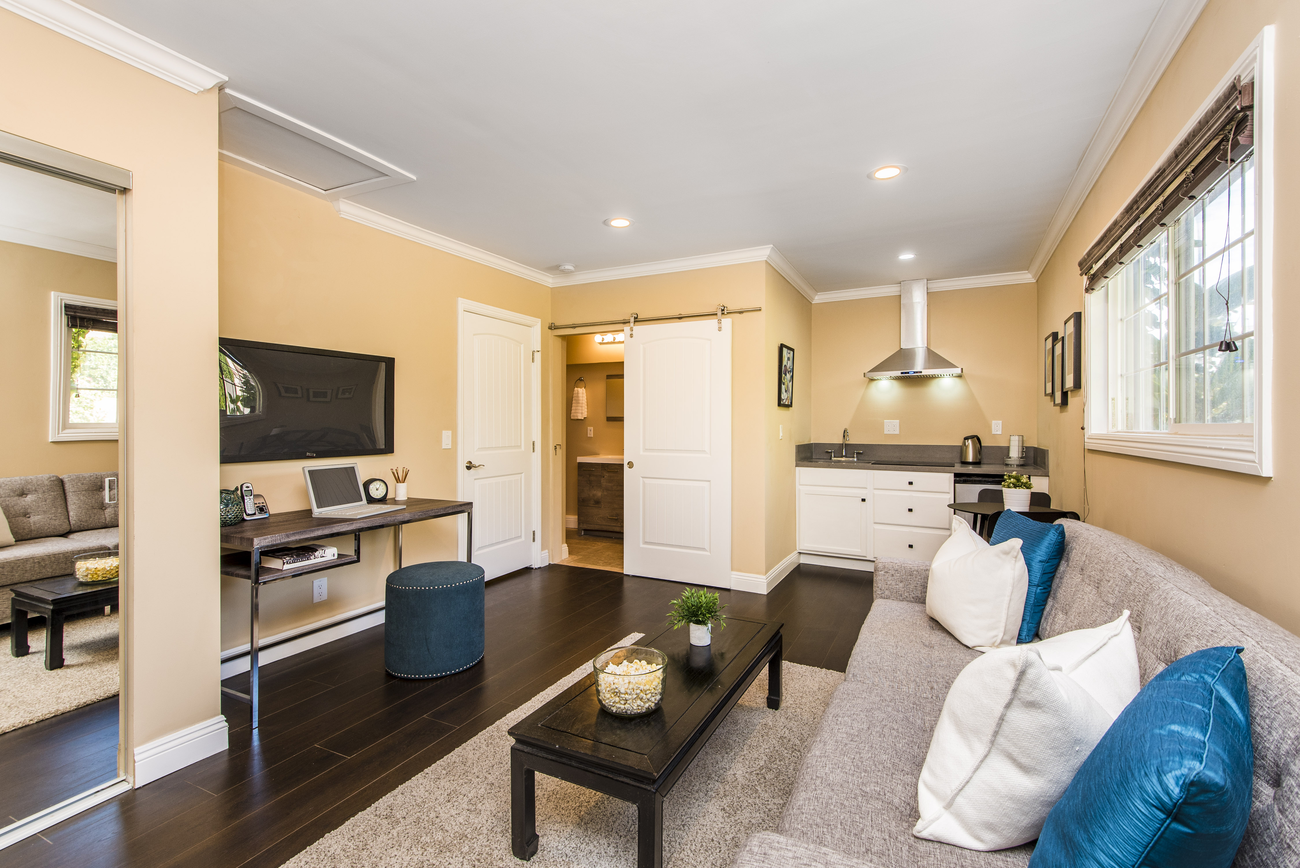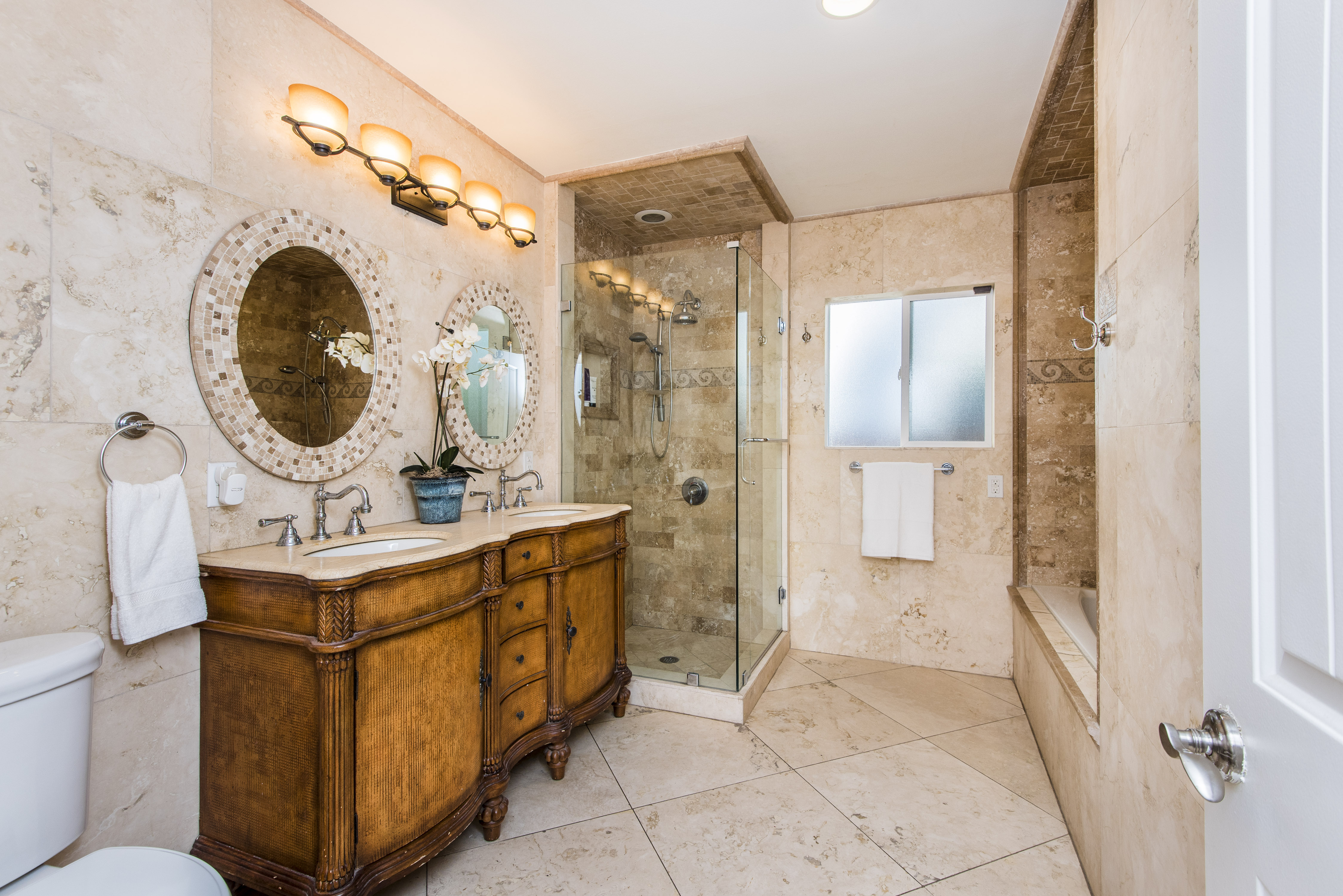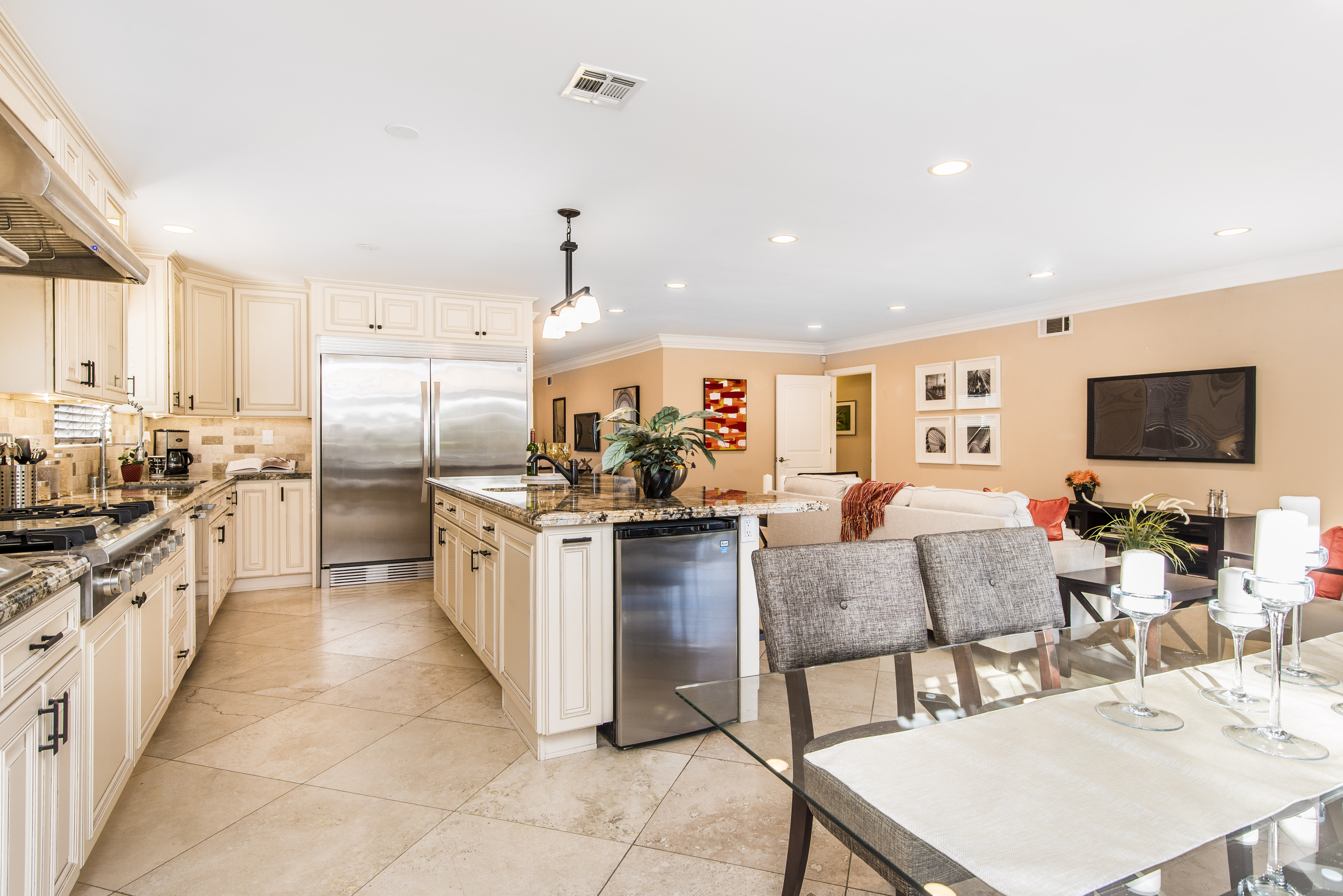 Custom built, one-level home with permitted guest house with full kitchen and bathroom located in the heart of Sherman Oaks. Th main home offers 3 beds and 4 baths, while the guest house offers a kitchen, ¾ bath, and is complete with its own entrance, making it ideal as a guest suite, home office, man cave, and more! Set behind private gates, the large driveway leads you to the covered front patio. As you enter the home, travertine floors grace the living spaces, effortlessly connecting the living room, dining area, and kitchen. The chef’s kitchen features elegant granite countertops, high end appliances, and oversized island with sink and breakfast bar. The spacious master suite has sliding doors to the backyard, a walk-in closet, and a luxurious bathroom with dual vanities, jetted tub, and glass enclosed shower. The backyard features a patio area and large grassy area, perfect for al-fresco dining and SoCal nights. Other amenities include wood flooring, terracotta roof, hand-laid stone courtyard, and pre-wiring for security and surveillance systems. Located in Kester Avenue Elementary school district, moments from the Sherman Oaks Galleria, Sherman Oaks Park, Ventura Blvd, and conveniently located to both the 101 and 405 freeways. This home is sure to go fast!