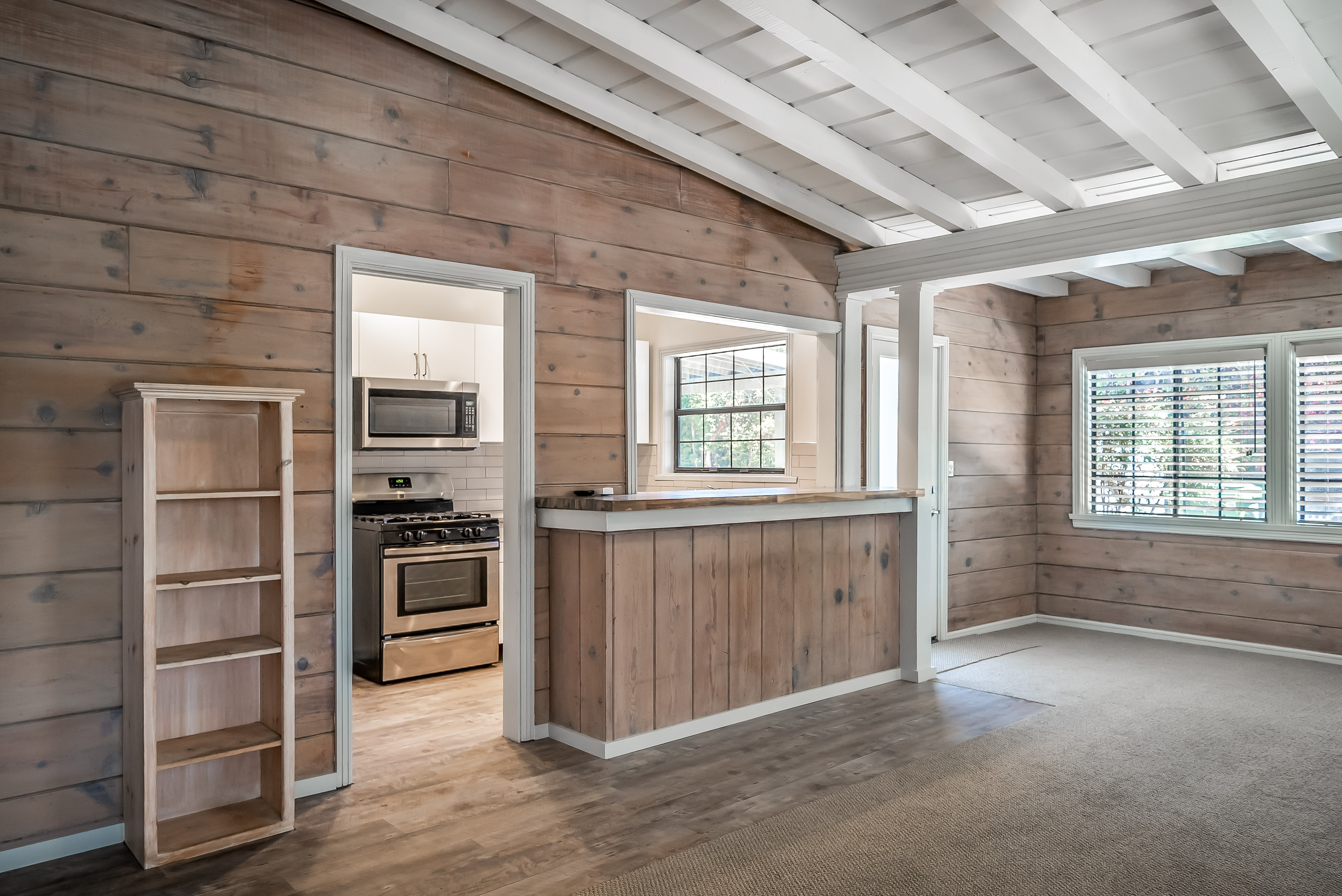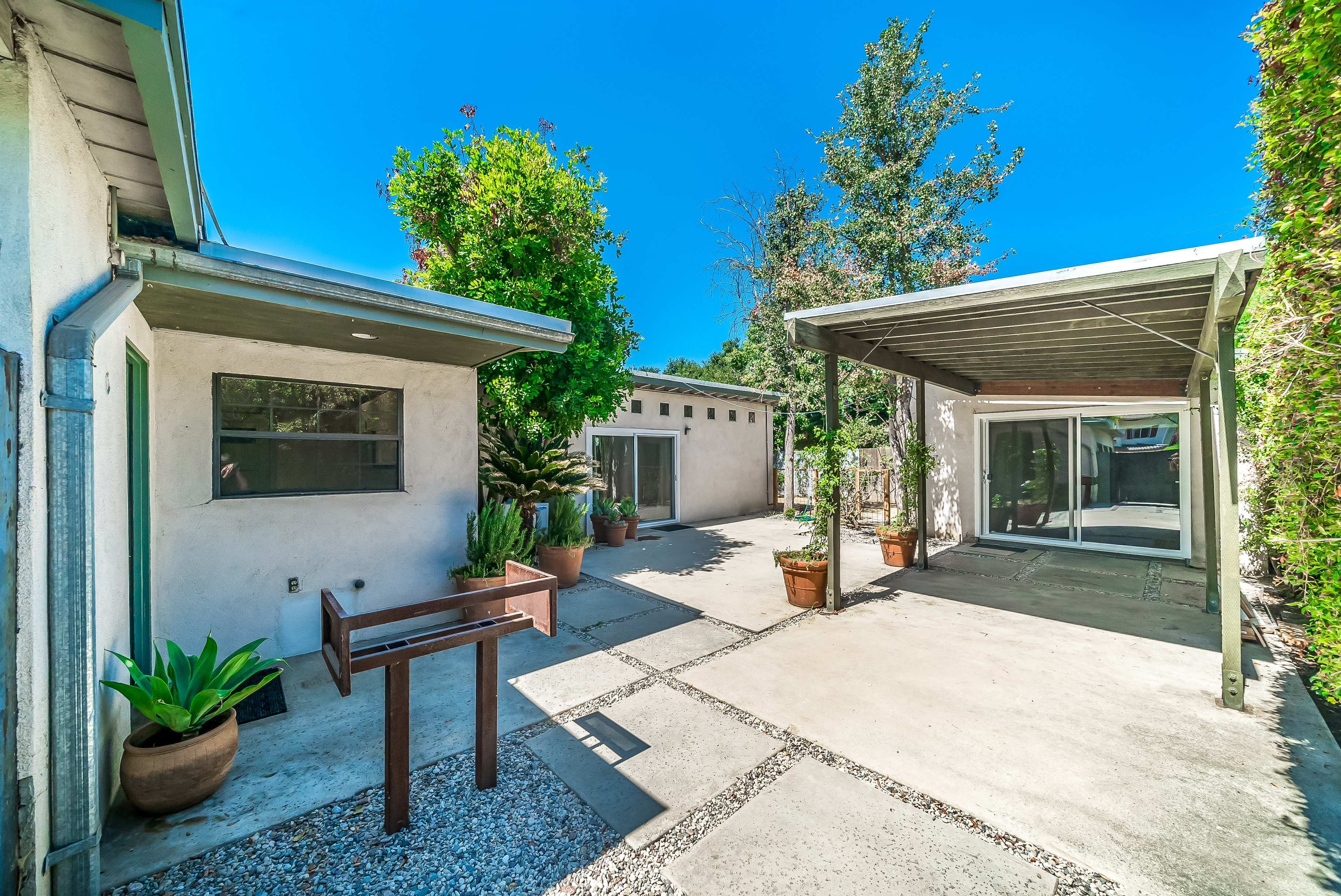 Charming one story home for rent in the heart of Sherman Oaks. The home features one oversized bedroom with built in cabinets, drawers, and a large custom built walk-in closet. Sliding glass doors lead to a private backyard. There is a separate office space off the living room. Wood burning fireplace with stone hearth. Original hardwood stained walls and soaring beamed ceilings, windows all around create an open feeling. Completely remodeled modern IKEA kitchen. All new floors and carpet. Detached studio in the back, perfect for artist, musician, gym, additional room. Citrus orchard and storage shed. Ideal location 101 & 405 and Canyon routes. Trader Joe's, Gelsons, Sherman Oaks Public Park and Pool.