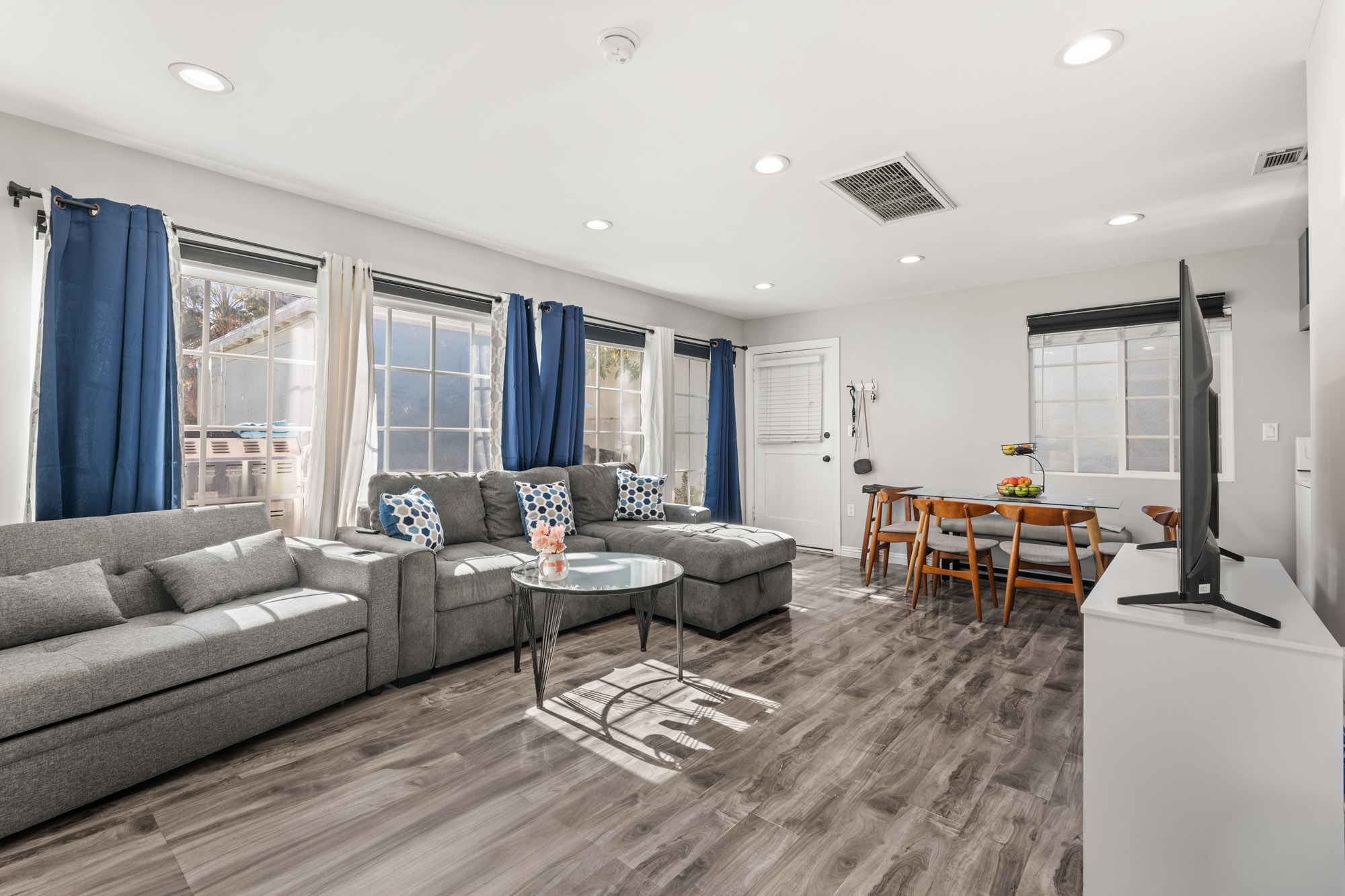 Absolutely gorgeous and truly move-in ready! This property delivers charm, flexibility, and incredible value. Remodeled in 2017 and updated with stylish contemporary finishes, the main home offers 3-bedrooms and 2-bathrooms, a bright, upgraded kitchen, and an open, comfortable layout, perfect for everyday living or entertaining. The bathrooms have been redesigned with classy, modern touches, and the home includes a washer and dryer for added convenience. The property also features a detached 2-bedroom, 1-bathroom ADU (built in 2017) with its own private entrance and separate address, ideal for rental income, multigenerational living, a home office, or a creative studio. Situated on an oversized 7,796 sq. ft. lot, the yard is HUGE with endless possibilities!