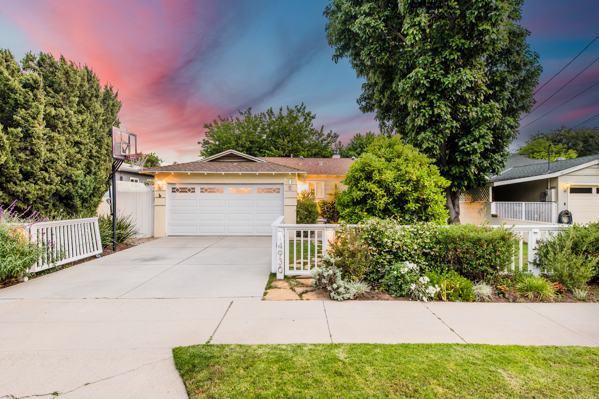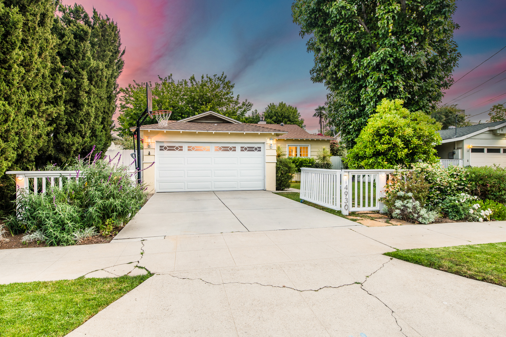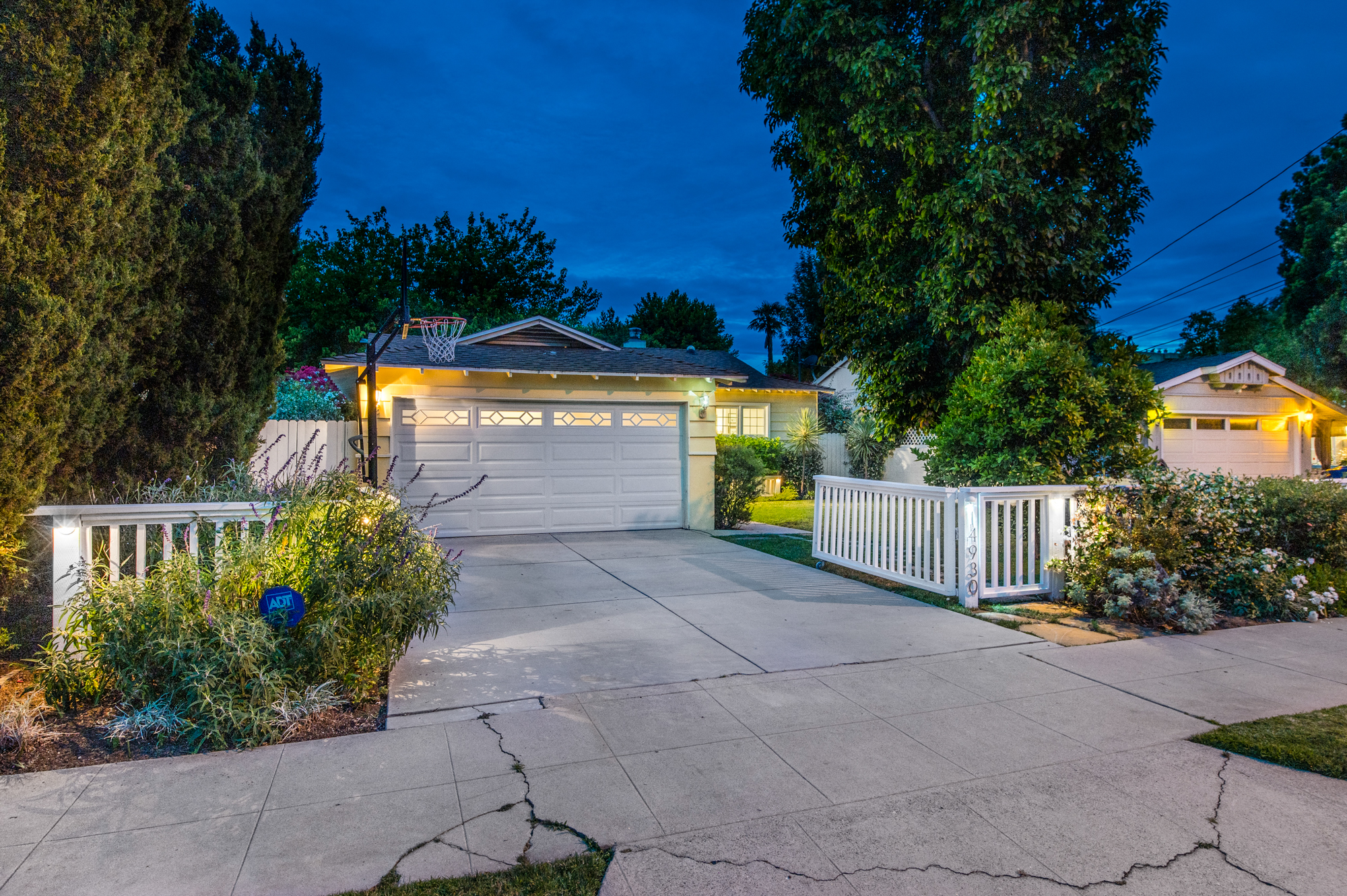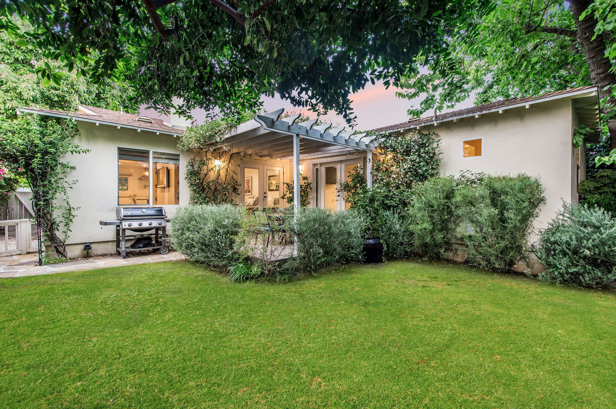 This beautifully updated one-level traditional home in Sherman Oaks offers 3 bedrooms, 3 baths, plus an office/den and over 1,800 sft. The home’s white picket fence and well manicured lawn greet you as you make your way to the front door. Inside, original hardwood floors grace the living spaces of this open floor plan which blends living room, dining room, and kitchen effortlessly. The spacious living room has a charming brick fireplace and dual French doors which lead to the tranquil backyard. The recently remodeled chef’s kitchen has classic subway tile backsplash, high end appliances, convenient pot filler, and oversized island with additional storage. The kitchen opens to the large dining area with a designer light fixture and plenty of room to entertain. The den with attached half bath is the perfect place to cozy up for movie night, or, use this space as a playroom, home office, gym, or more! The master suite is your own little hideaway with french doors to the covered pergola and updated ensuite bath with jacuzzi tub, walk-in shower, and dual sink vanity. The 2 additional bedrooms are well sized with ample closet space and share an updated bath. Outside, the patio is ideal for al fresco dining and the large grassy area is perfect for kids and pets alike. Additional features include built in speaker system through the home, gas hookups for BBQ in backyard, Nest system, walk in pantry, attached garage, fruit bearing trees and more!......