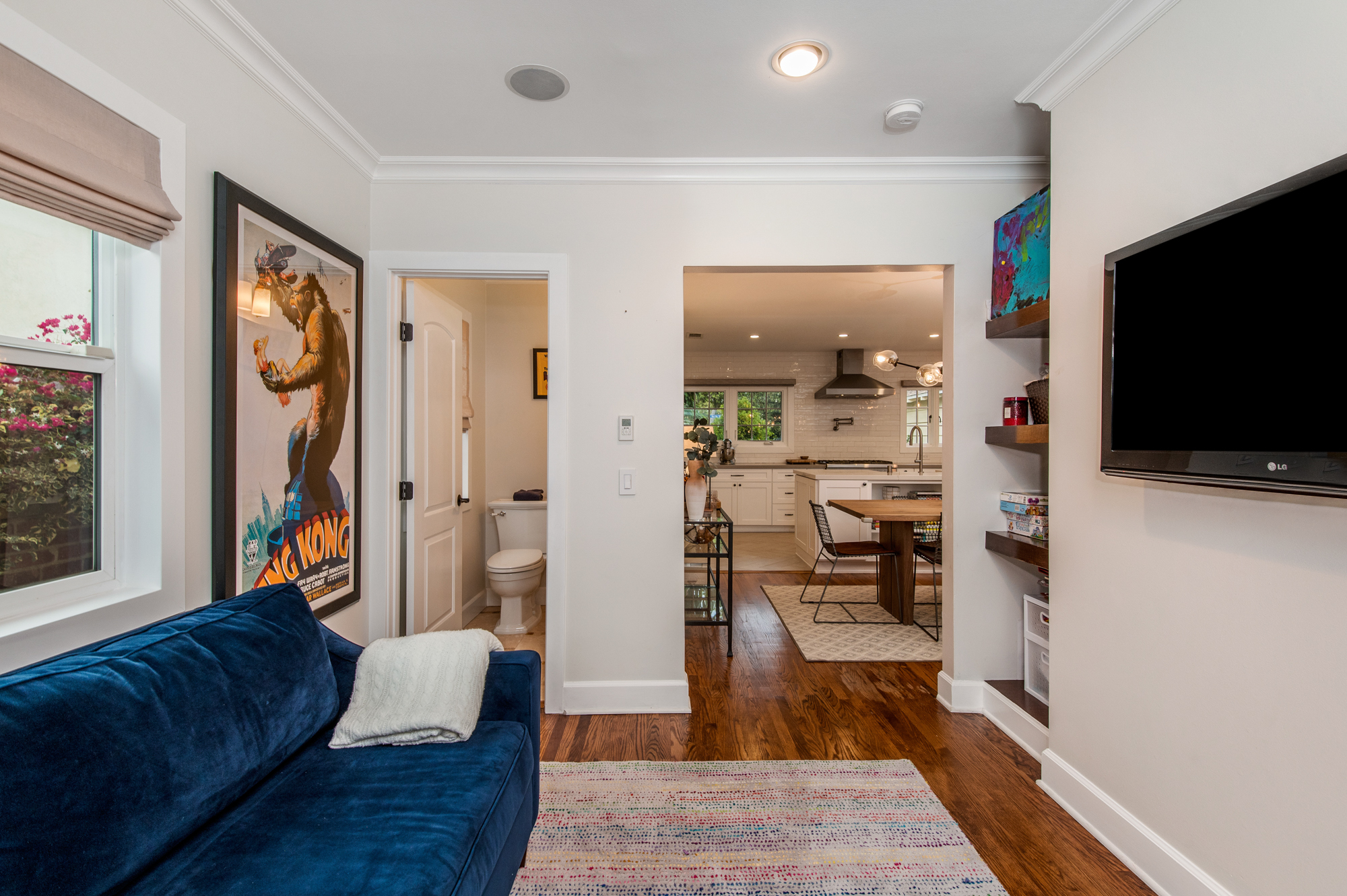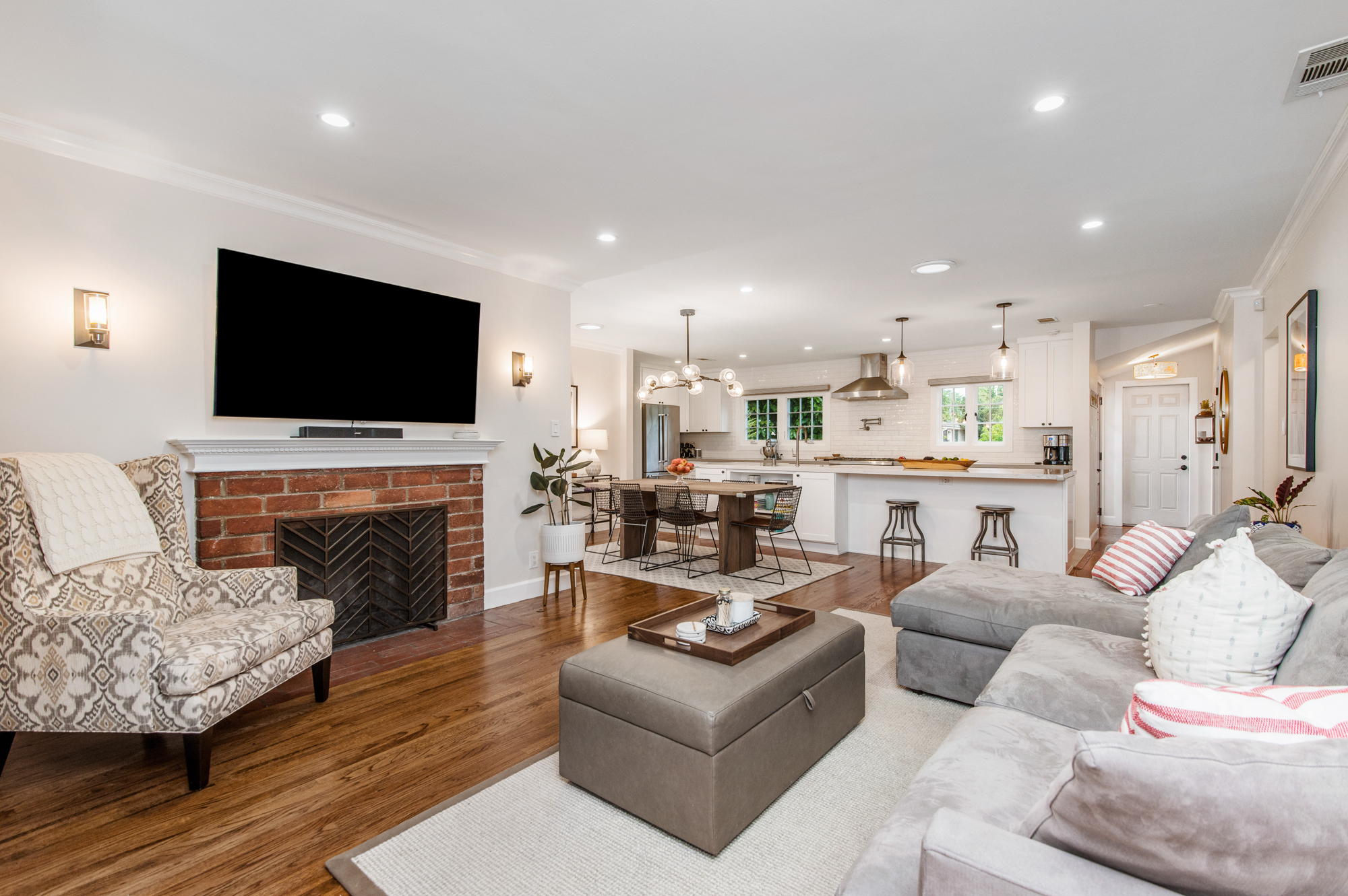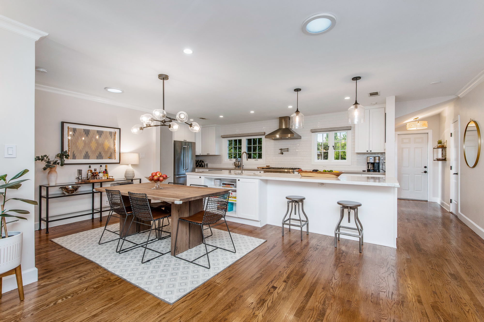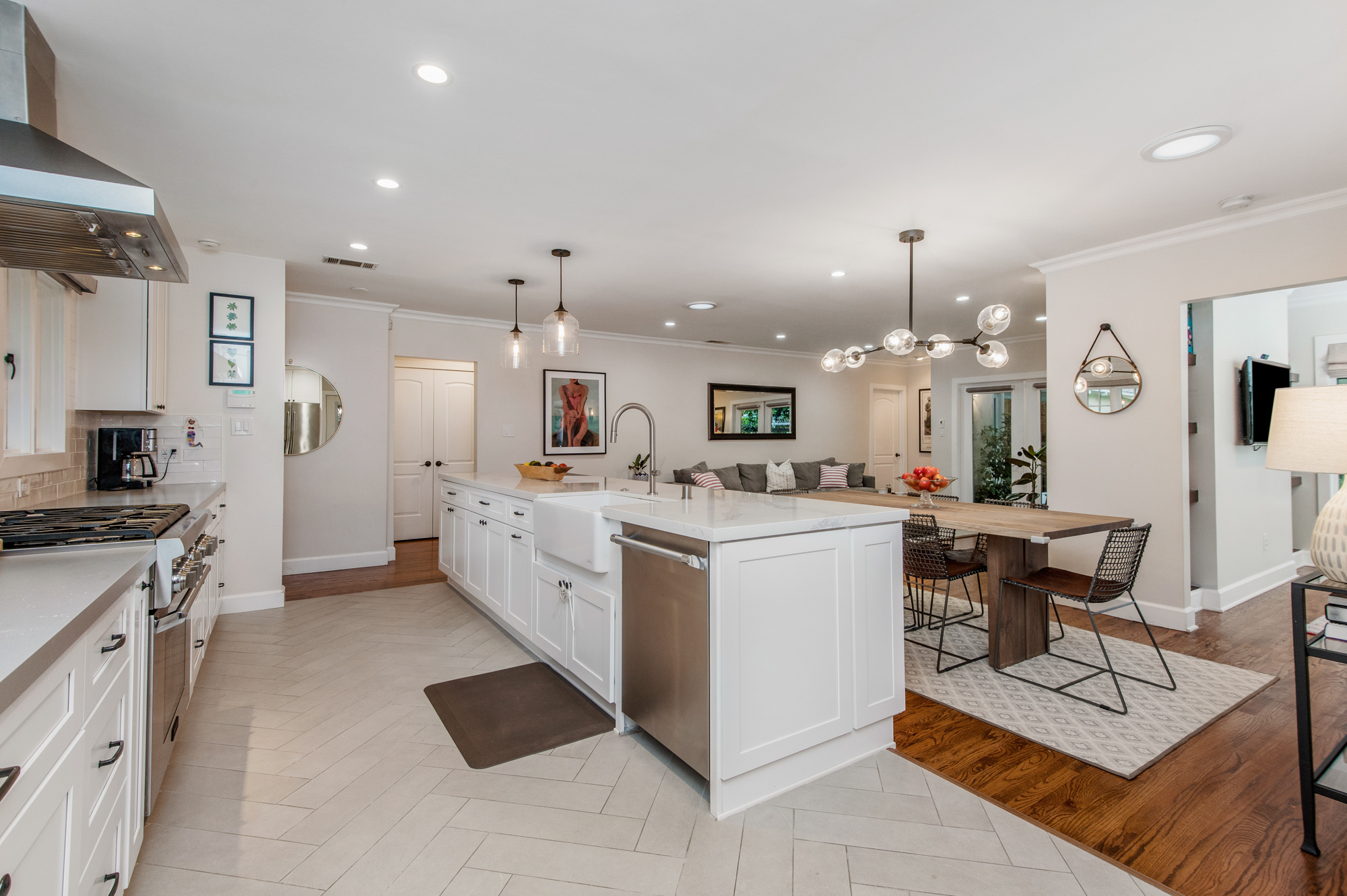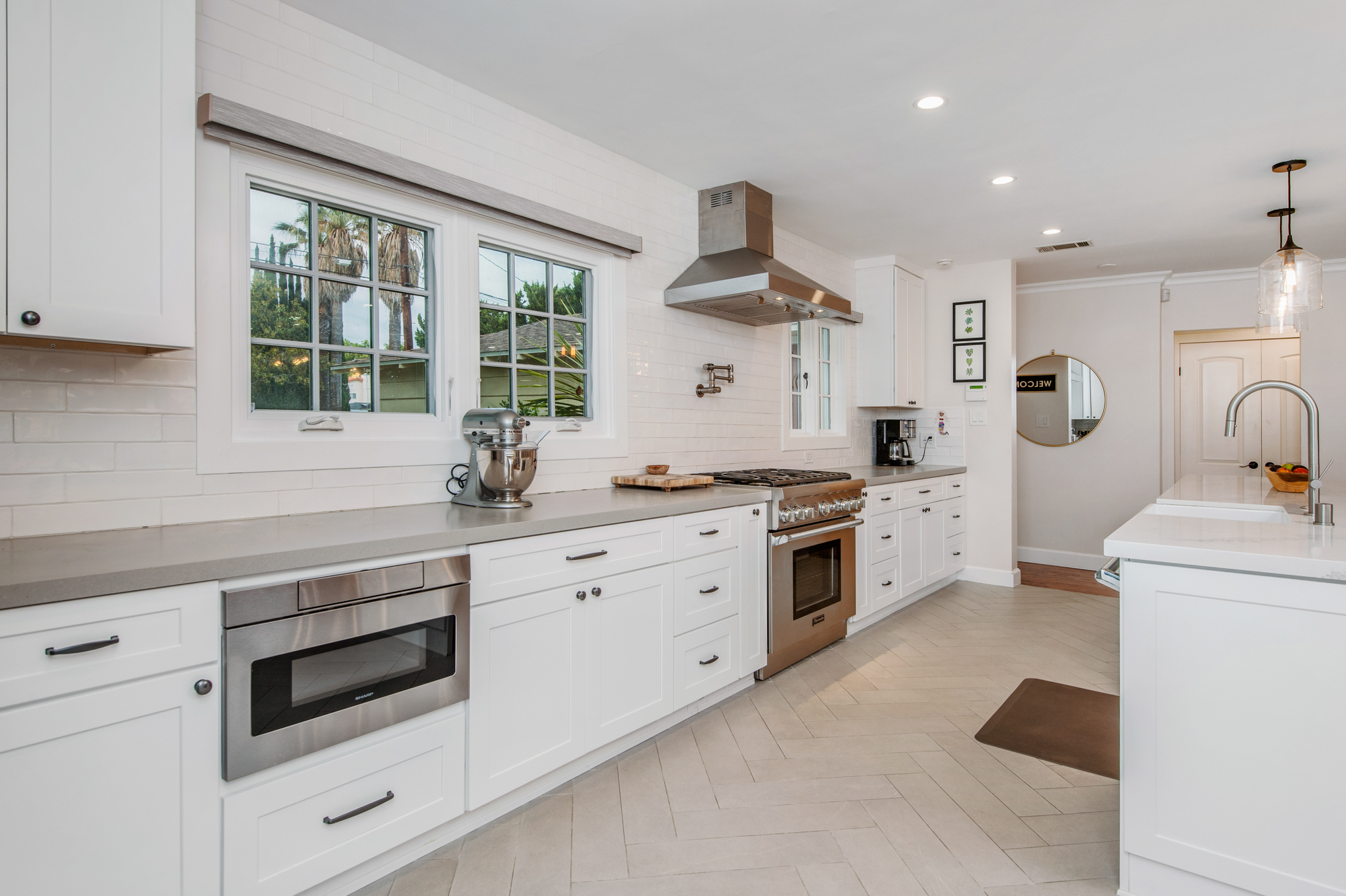 This beautifully updated one-level traditional home in Sherman Oaks offers 3 bedrooms, 3 baths, plus an office/den and over 1,800 sft. The home’s white picket fence and well manicured lawn greet you as you make your way to the front door. Inside, original hardwood floors grace the living spaces of this open floor plan which blends living room, dining room, and kitchen effortlessly. The spacious living room has a charming brick fireplace and dual French doors which lead to the tranquil backyard. The recently remodeled chef’s kitchen has classic subway tile backsplash, high end appliances, convenient pot filler, and oversized island with additional storage. The kitchen opens to the large dining area with a designer light fixture and plenty of room to entertain. The den with attached half bath is the perfect place to cozy up for movie night, or, use this space as a playroom, home office, gym, or more! The master suite is your own little hideaway with french doors to the covered pergola and updated ensuite bath with jacuzzi tub, walk-in shower, and dual sink vanity. The 2 additional bedrooms are well sized with ample closet space and share an updated bath. Outside, the patio is ideal for al fresco dining and the large grassy area is perfect for kids and pets alike. Additional features include built in speaker system through the home, gas hookups for BBQ in backyard, Nest system, walk in pantry, attached garage, fruit bearing trees and more!......