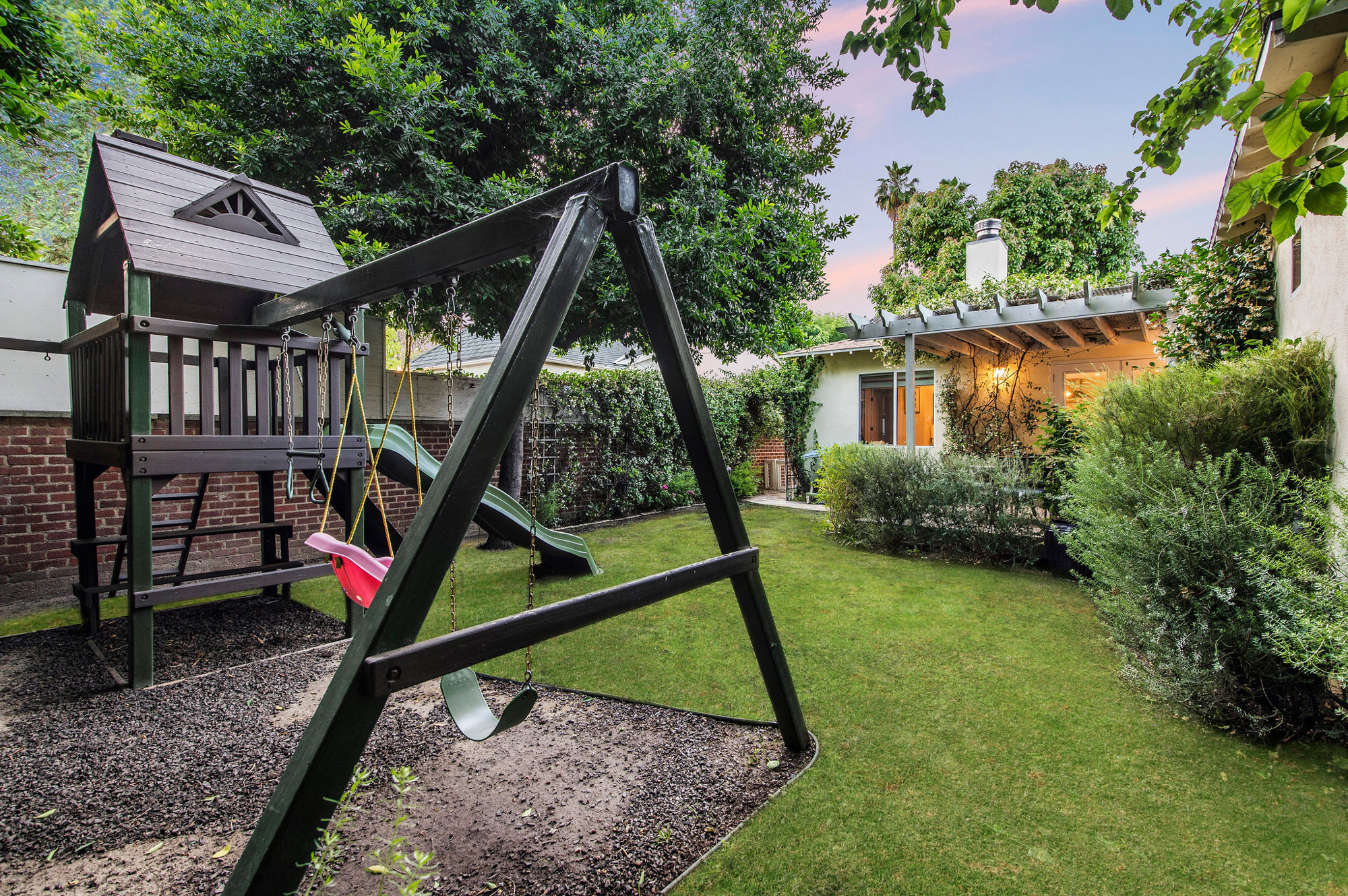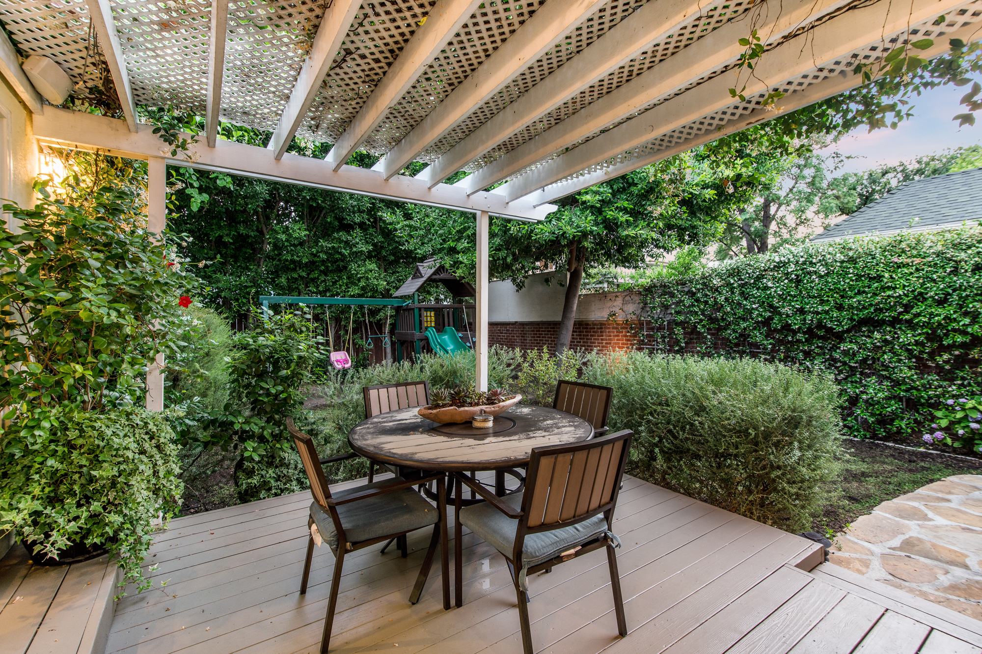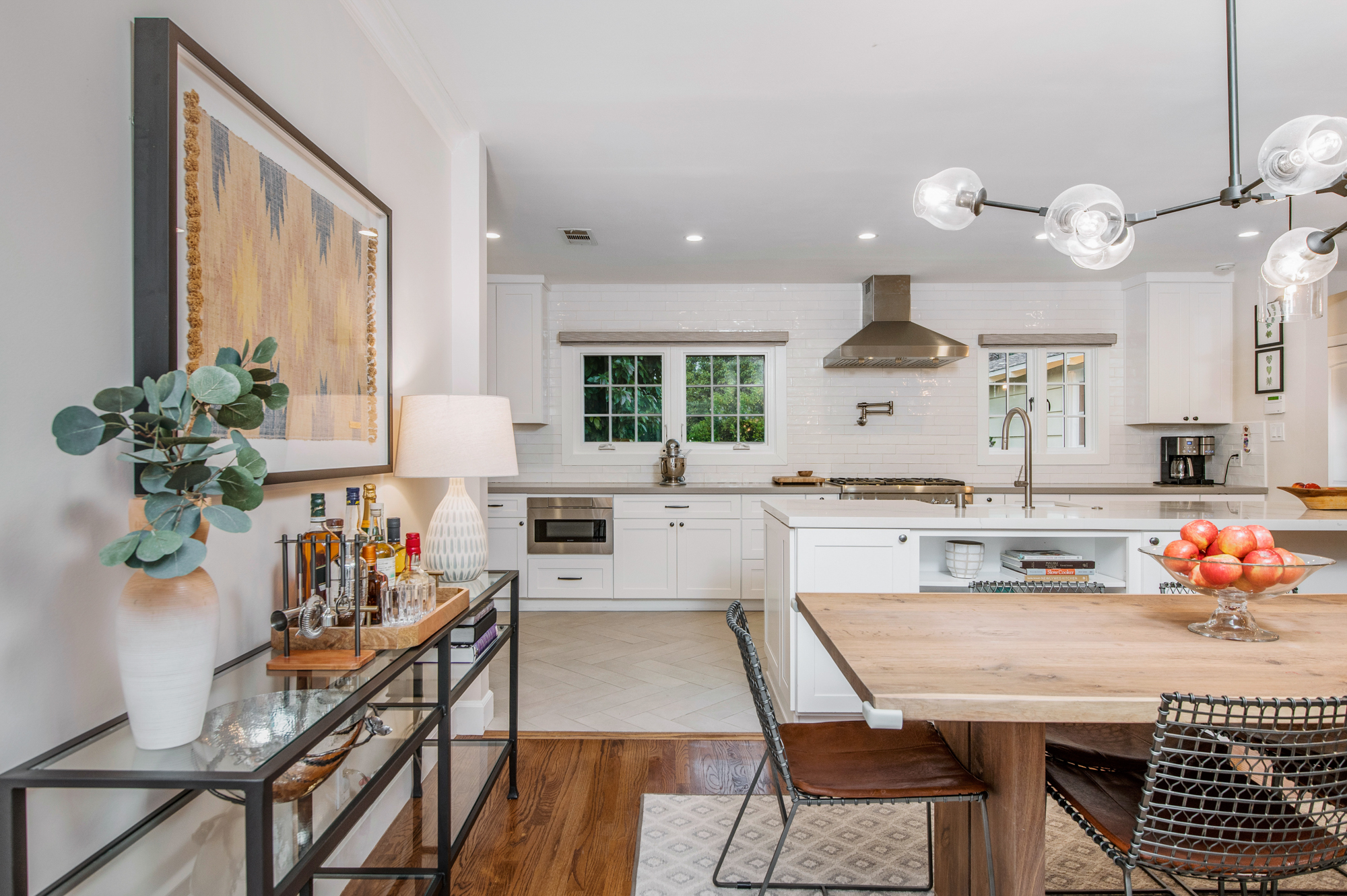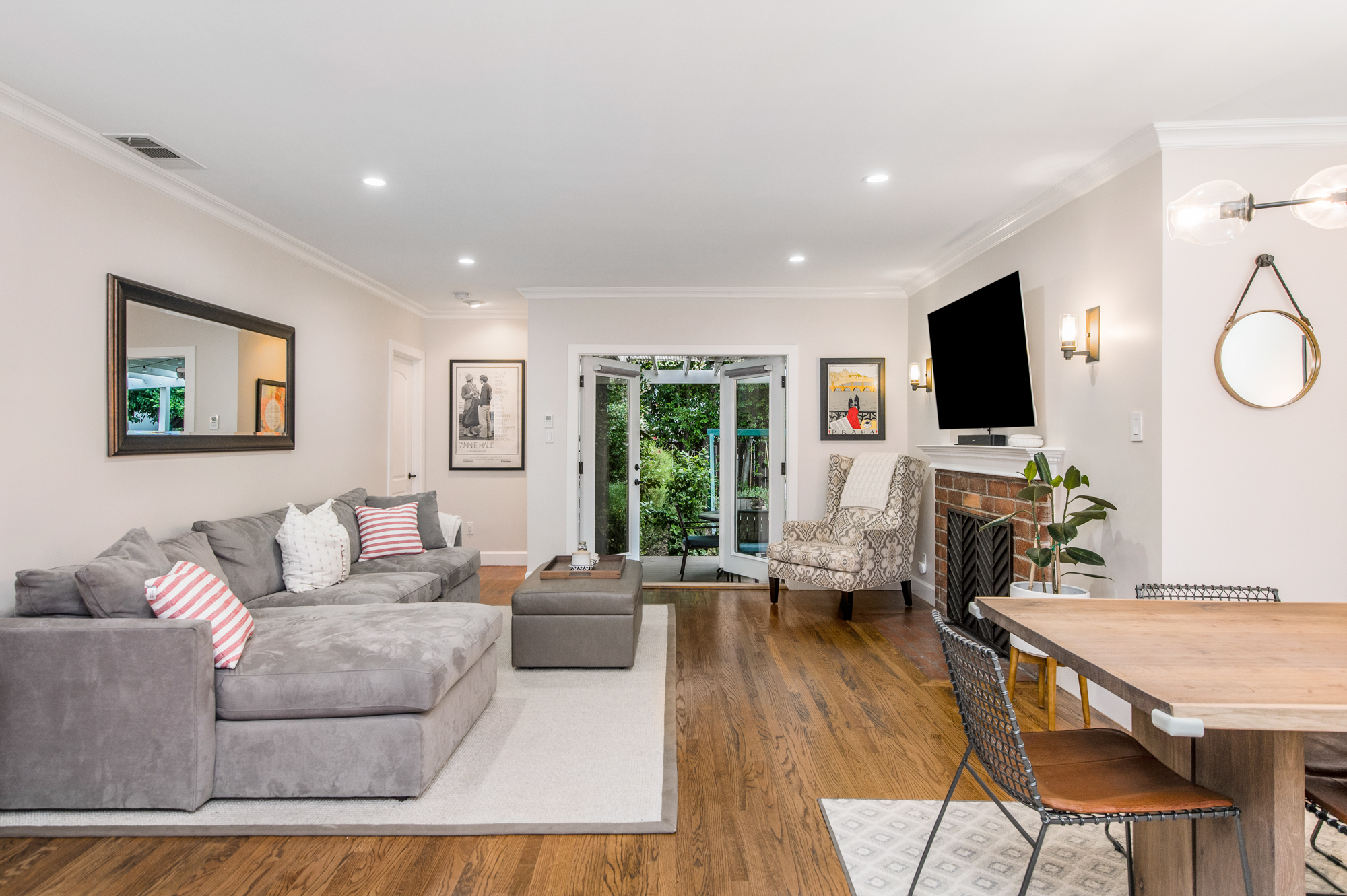 This beautifully updated one-level traditional home in Sherman Oaks offers 3 bedrooms, 3 baths, plus an office/den and over 1,800 sft. The home’s white picket fence and well manicured lawn greet you as you make your way to the front door. Inside, original hardwood floors grace the living spaces of this open floor plan which blends living room, dining room, and kitchen effortlessly. The spacious living room has a charming brick fireplace and dual French doors which lead to the tranquil backyard. The recently remodeled chef’s kitchen has classic subway tile backsplash, high end appliances, convenient pot filler, and oversized island with additional storage. The kitchen opens to the large dining area with a designer light fixture and plenty of room to entertain. The den with attached half bath is the perfect place to cozy up for movie night, or, use this space as a playroom, home office, gym, or more! The master suite is your own little hideaway with french doors to the covered pergola and updated ensuite bath with jacuzzi tub, walk-in shower, and dual sink vanity. The 2 additional bedrooms are well sized with ample closet space and share an updated bath. Outside, the patio is ideal for al fresco dining and the large grassy area is perfect for kids and pets alike. Additional features include built in speaker system through the home, gas hookups for BBQ in backyard, Nest system, walk in pantry, attached garage, fruit bearing trees and more!......