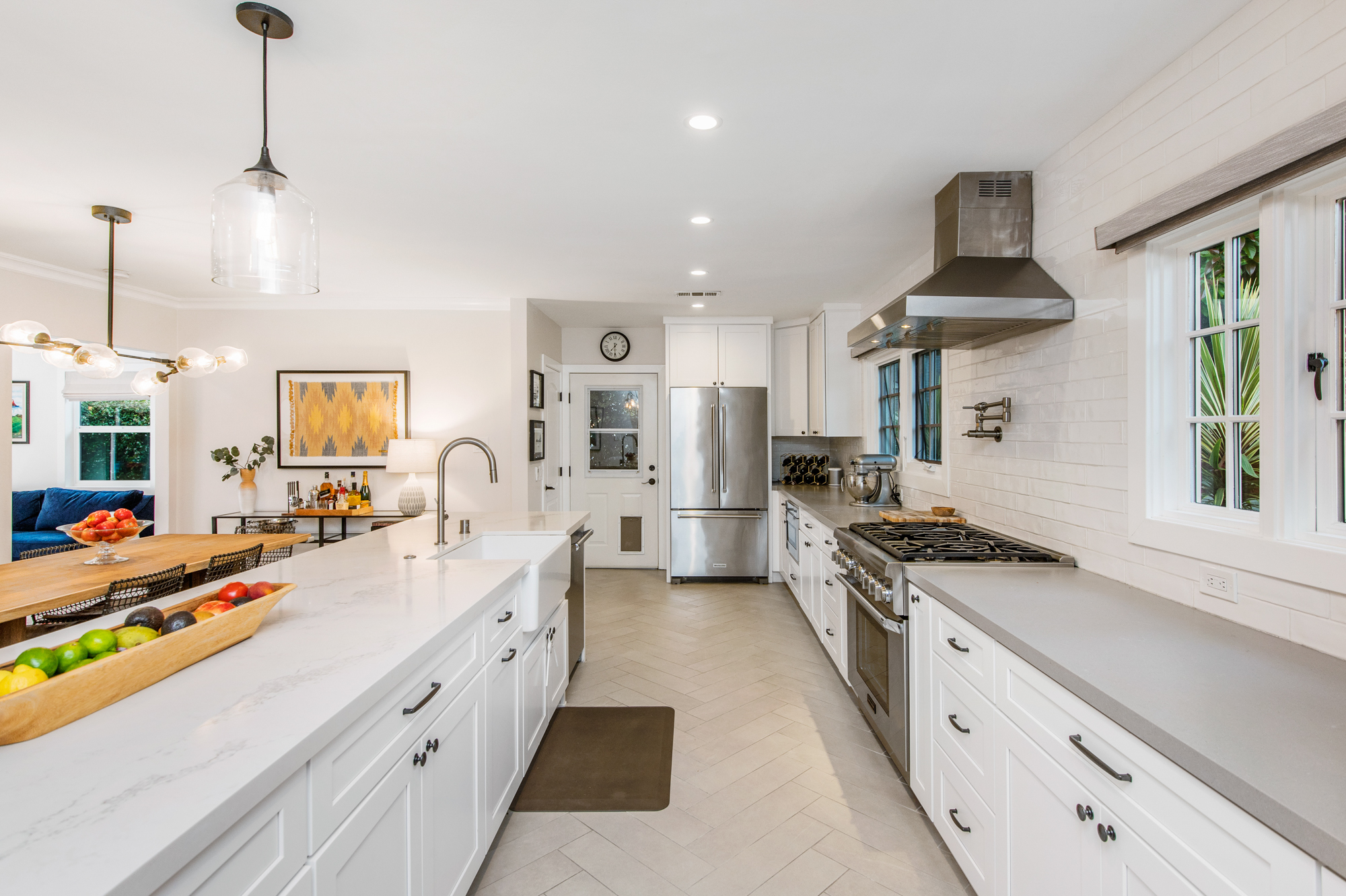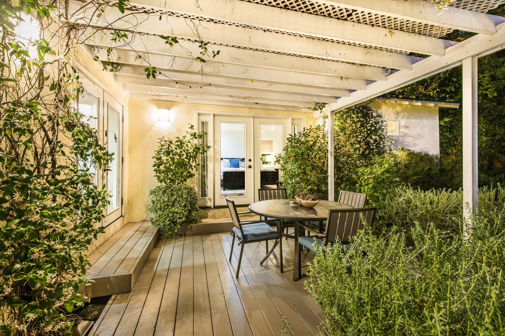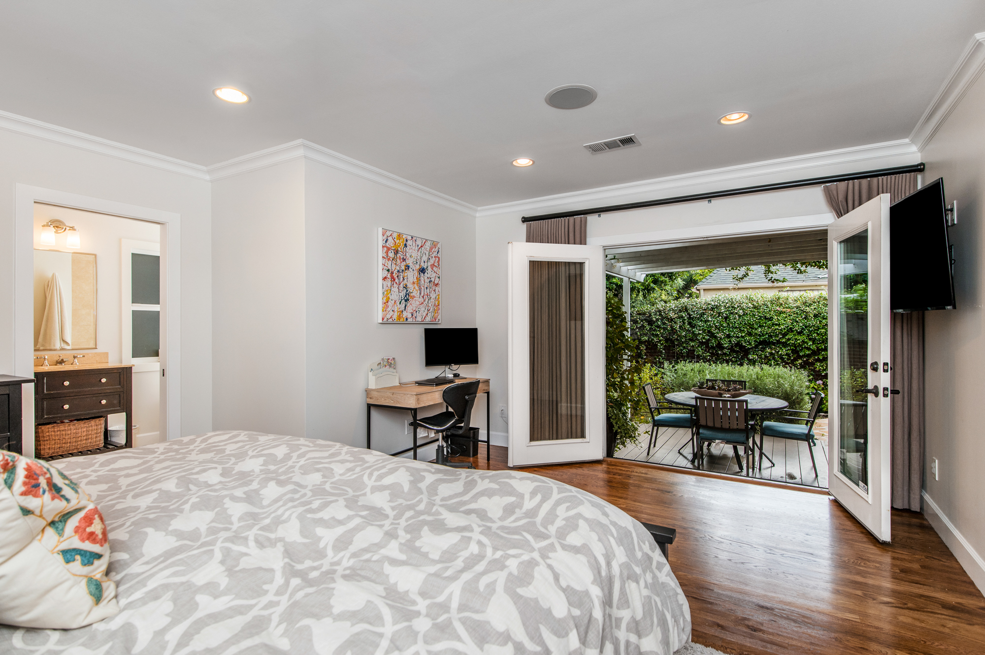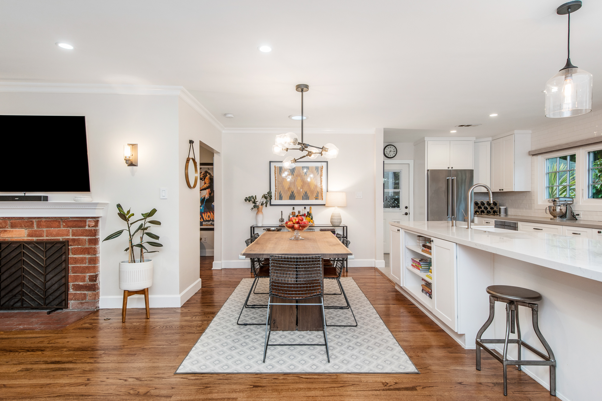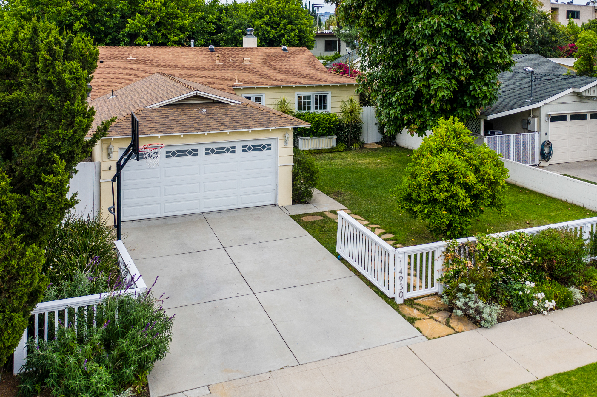 This beautifully updated one-level traditional home in Sherman Oaks offers 3 bedrooms, 3 baths, plus an office/den and over 1,800 sft. The home’s white picket fence and well manicured lawn greet you as you make your way to the front door. Inside, original hardwood floors grace the living spaces of this open floor plan which blends living room, dining room, and kitchen effortlessly. The spacious living room has a charming brick fireplace and dual French doors which lead to the tranquil backyard. The recently remodeled chef’s kitchen has classic subway tile backsplash, high end appliances, convenient pot filler, and oversized island with additional storage. The kitchen opens to the large dining area with a designer light fixture and plenty of room to entertain. The den with attached half bath is the perfect place to cozy up for movie night, or, use this space as a playroom, home office, gym, or more! The master suite is your own little hideaway with french doors to the covered pergola and updated ensuite bath with jacuzzi tub, walk-in shower, and dual sink vanity. The 2 additional bedrooms are well sized with ample closet space and share an updated bath. Outside, the patio is ideal for al fresco dining and the large grassy area is perfect for kids and pets alike. Additional features include built in speaker system through the home, gas hookups for BBQ in backyard, Nest system, walk in pantry, attached garage, fruit bearing trees and more!......