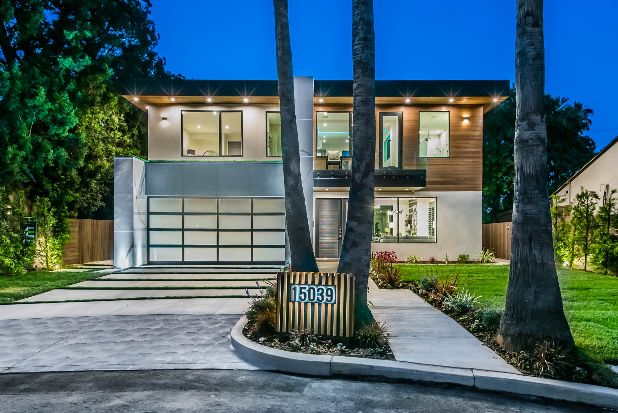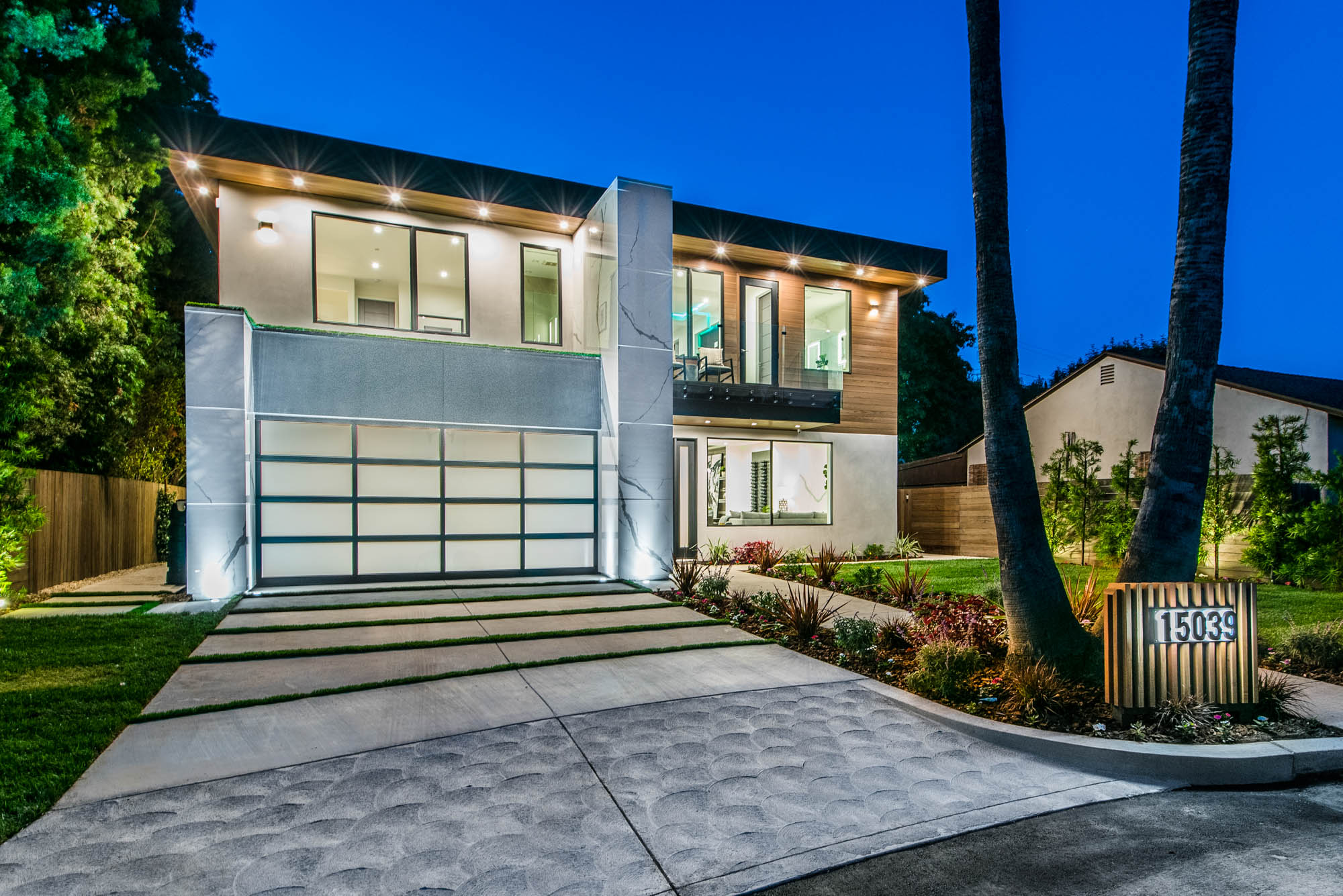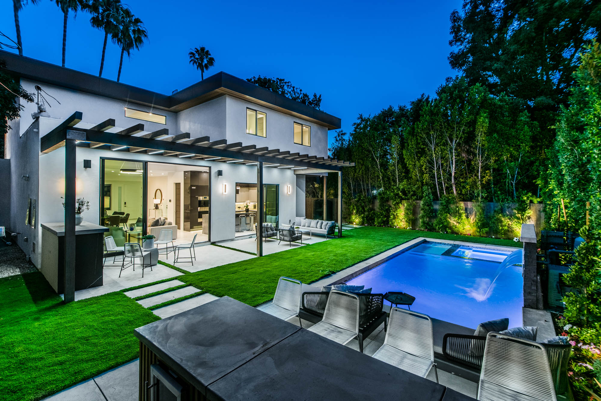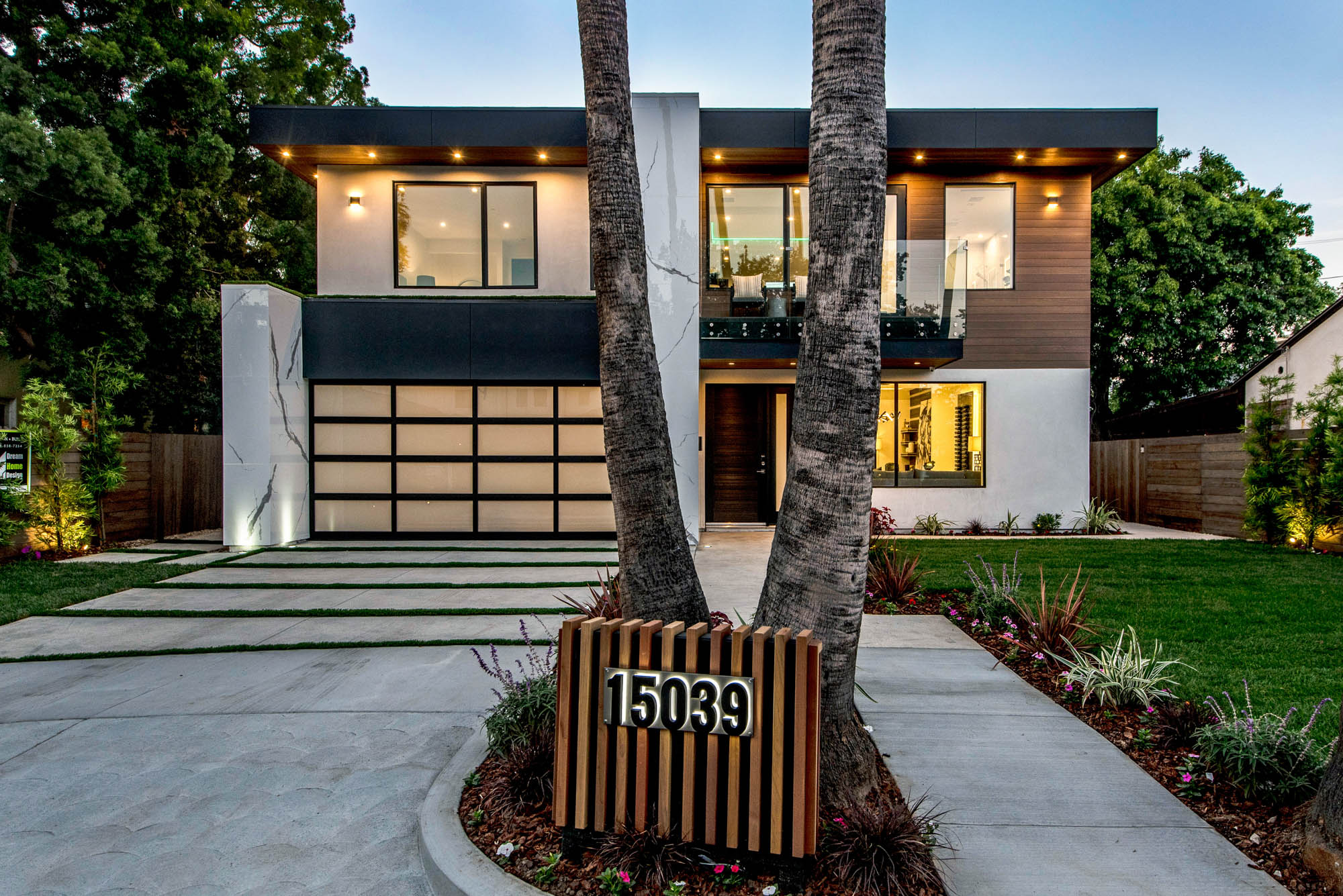 Sleek, modern, and fun are just a few words that begin to describe this new construction modern home, fresh to the Sherman Oaks market. From first glance, the large bold porcelain slabs enclaving the exterior of the home make a statement like no other, teasing for what is to come inside. Porcelain flooring, large windows, recessed lighting, and luxury finishes of the home come alive when the custom LED work carved inside the moldings of each room come on. Each highlight of the home is shown off with the incredible light bounce back this homes high gloss finishes have. Beautiful yet functional, this homes 3,000 sq ft open layout space offers 4 ensuite bedrooms, and 4.5 bathrooms. Main living space offers a family room with an atmospheric fireplace, dining space with a custom LED wine wall piece, and living room with stunning wall work to show off the craftsmanship of this fine modern piece of work. High gloss kitchen is a showstopper with Wolf subzero appliances, and custom cabinetry. Fleet wood glass sliding doors reveal an entertainers dream backyard with a pool and spa, dining space, fireplace, outdoor kitchenette with BBQ and wine fridge. Just upstairs, glass railing and designer lighting lead you to the master suite and additional 2 bedrooms. Master bedroom is a sight to be seen with LED ceiling work, walk in closet, shoe closet, massive windows, balcony, and master bath with large walk in shower, soaking tub, and double vanities. This home is a must see!