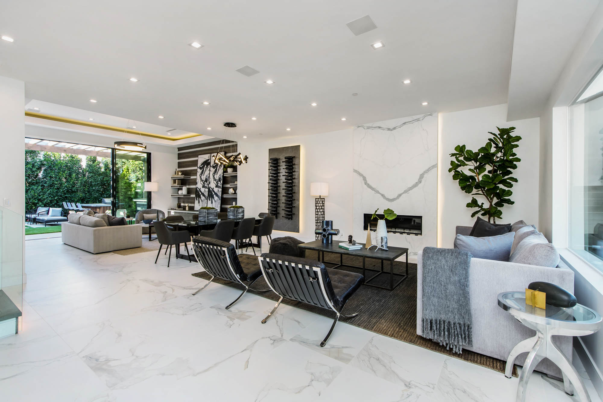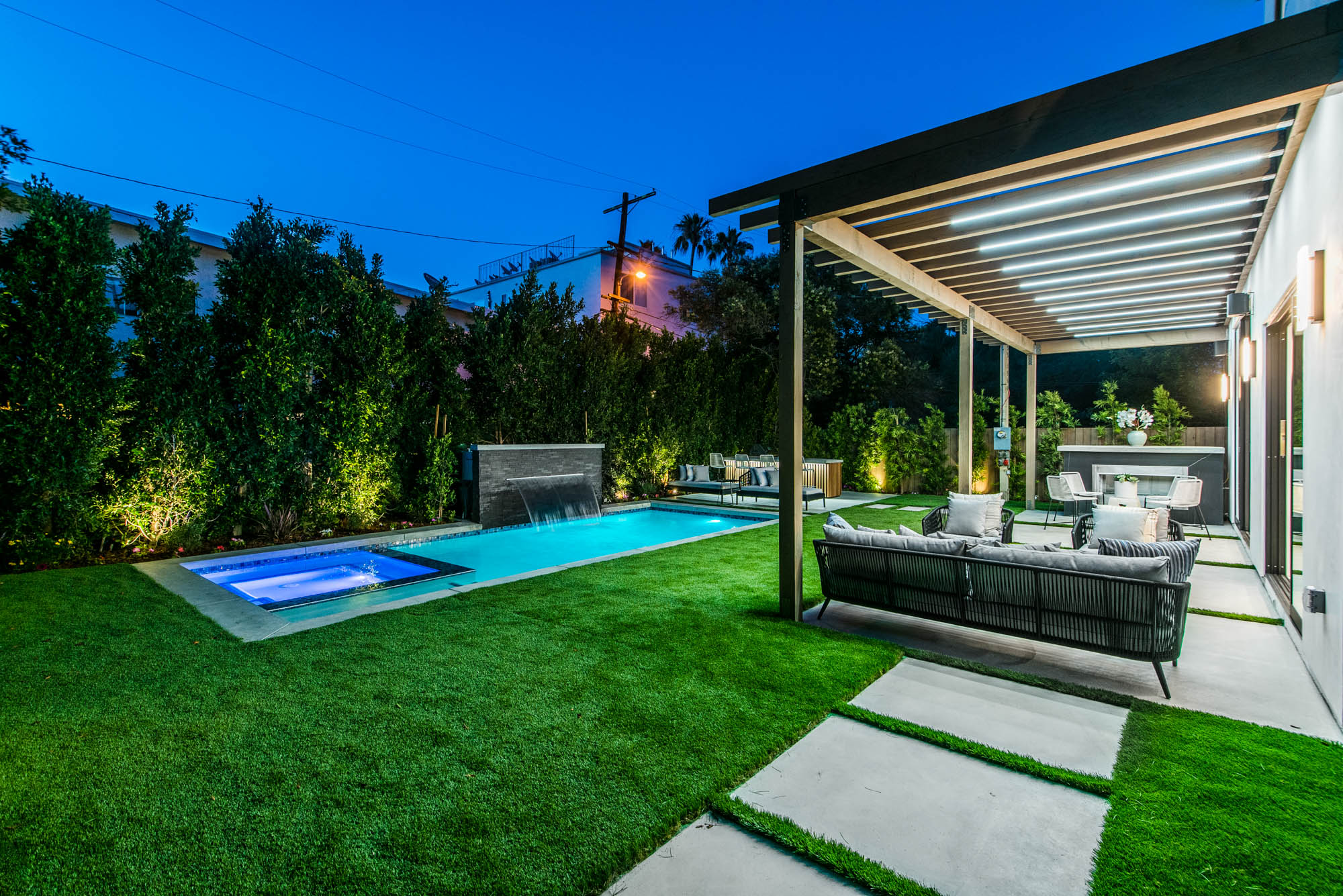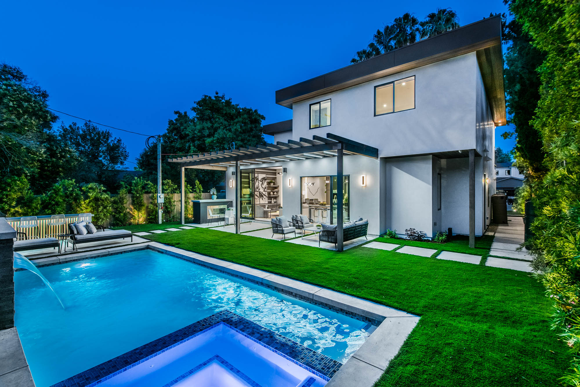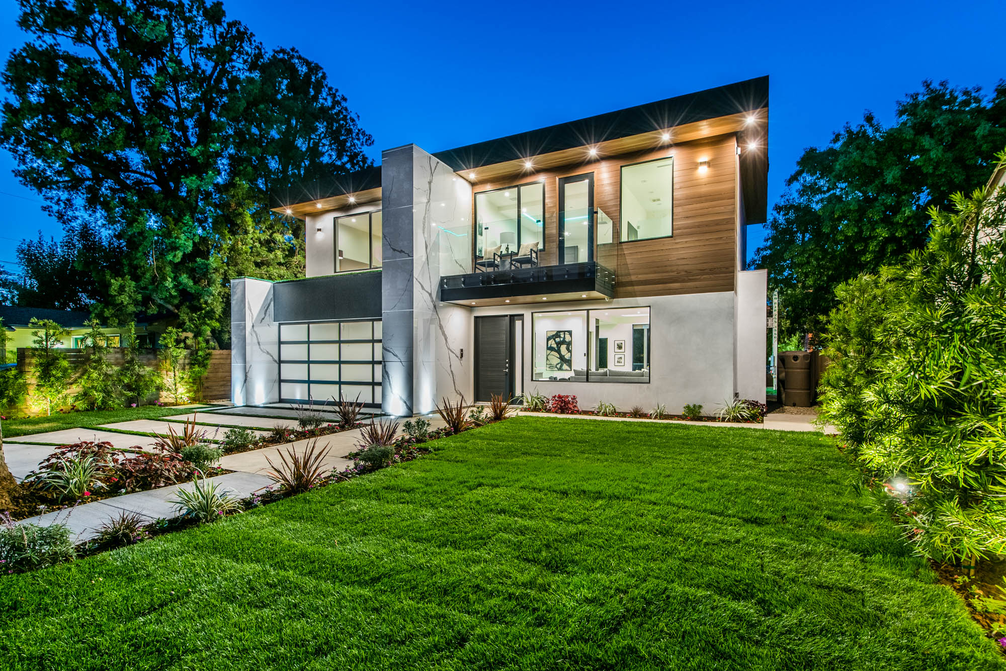 Sleek, modern, and fun are just a few words that begin to describe this new construction modern home, fresh to the Sherman Oaks market. From first glance, the large bold porcelain slabs enclaving the exterior of the home make a statement like no other, teasing for what is to come inside. Porcelain flooring, large windows, recessed lighting, and luxury finishes of the home come alive when the custom LED work carved inside the moldings of each room come on. Each highlight of the home is shown off with the incredible light bounce back this homes high gloss finishes have. Beautiful yet functional, this homes 3,000 sq ft open layout space offers 4 ensuite bedrooms, and 4.5 bathrooms. Main living space offers a family room with an atmospheric fireplace, dining space with a custom LED wine wall piece, and living room with stunning wall work to show off the craftsmanship of this fine modern piece of work. High gloss kitchen is a showstopper with Wolf subzero appliances, and custom cabinetry. Fleet wood glass sliding doors reveal an entertainers dream backyard with a pool and spa, dining space, fireplace, outdoor kitchenette with BBQ and wine fridge. Just upstairs, glass railing and designer lighting lead you to the master suite and additional 2 bedrooms. Master bedroom is a sight to be seen with LED ceiling work, walk in closet, shoe closet, massive windows, balcony, and master bath with large walk in shower, soaking tub, and double vanities. This home is a must see!
