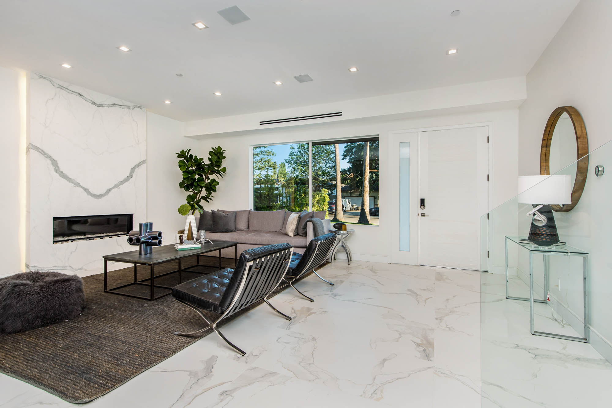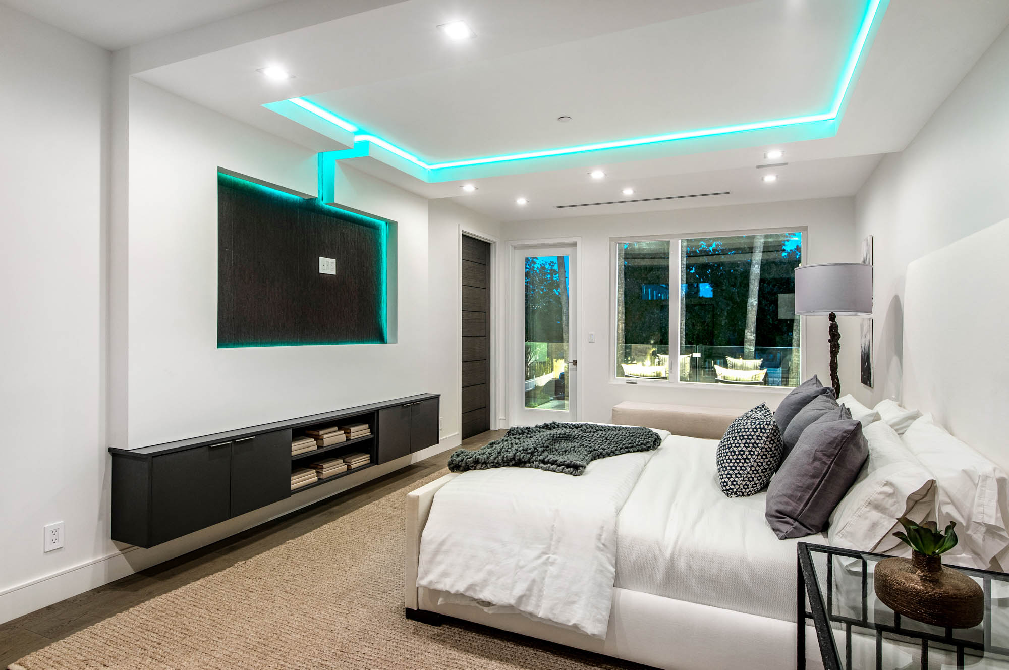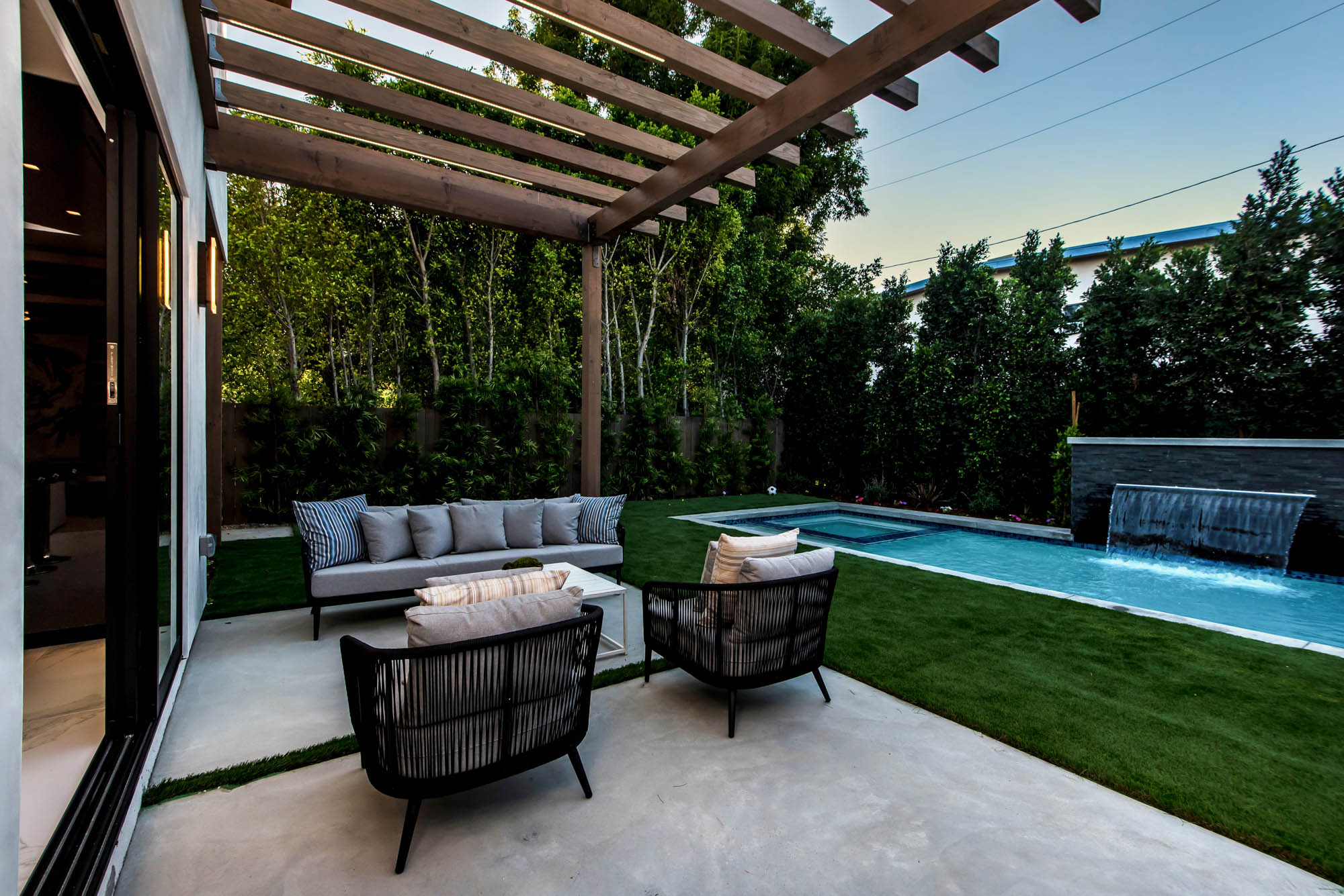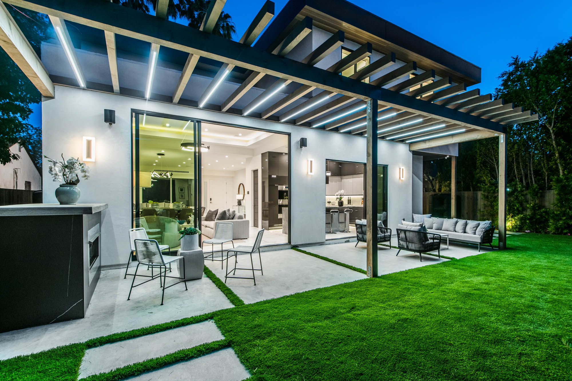 Sleek, modern, and fun are just a few words that begin to describe this new construction modern home, fresh to the Sherman Oaks market. From first glance, the large bold porcelain slabs enclaving the exterior of the home make a statement like no other, teasing for what is to come inside. Porcelain flooring, large windows, recessed lighting, and luxury finishes of the home come alive when the custom LED work carved inside the moldings of each room come on. Each highlight of the home is shown off with the incredible light bounce back this homes high gloss finishes have. Beautiful yet functional, this homes 3,000 sq ft open layout space offers 4 ensuite bedrooms, and 4.5 bathrooms. Main living space offers a family room with an atmospheric fireplace, dining space with a custom LED wine wall piece, and living room with stunning wall work to show off the craftsmanship of this fine modern piece of work. High gloss kitchen is a showstopper with Wolf subzero appliances, and custom cabinetry. Fleet wood glass sliding doors reveal an entertainers dream backyard with a pool and spa, dining space, fireplace, outdoor kitchenette with BBQ and wine fridge. Just upstairs, glass railing and designer lighting lead you to the master suite and additional 2 bedrooms. Master bedroom is a sight to be seen with LED ceiling work, walk in closet, shoe closet, massive windows, balcony, and master bath with large walk in shower, soaking tub, and double vanities. This home is a must see!
