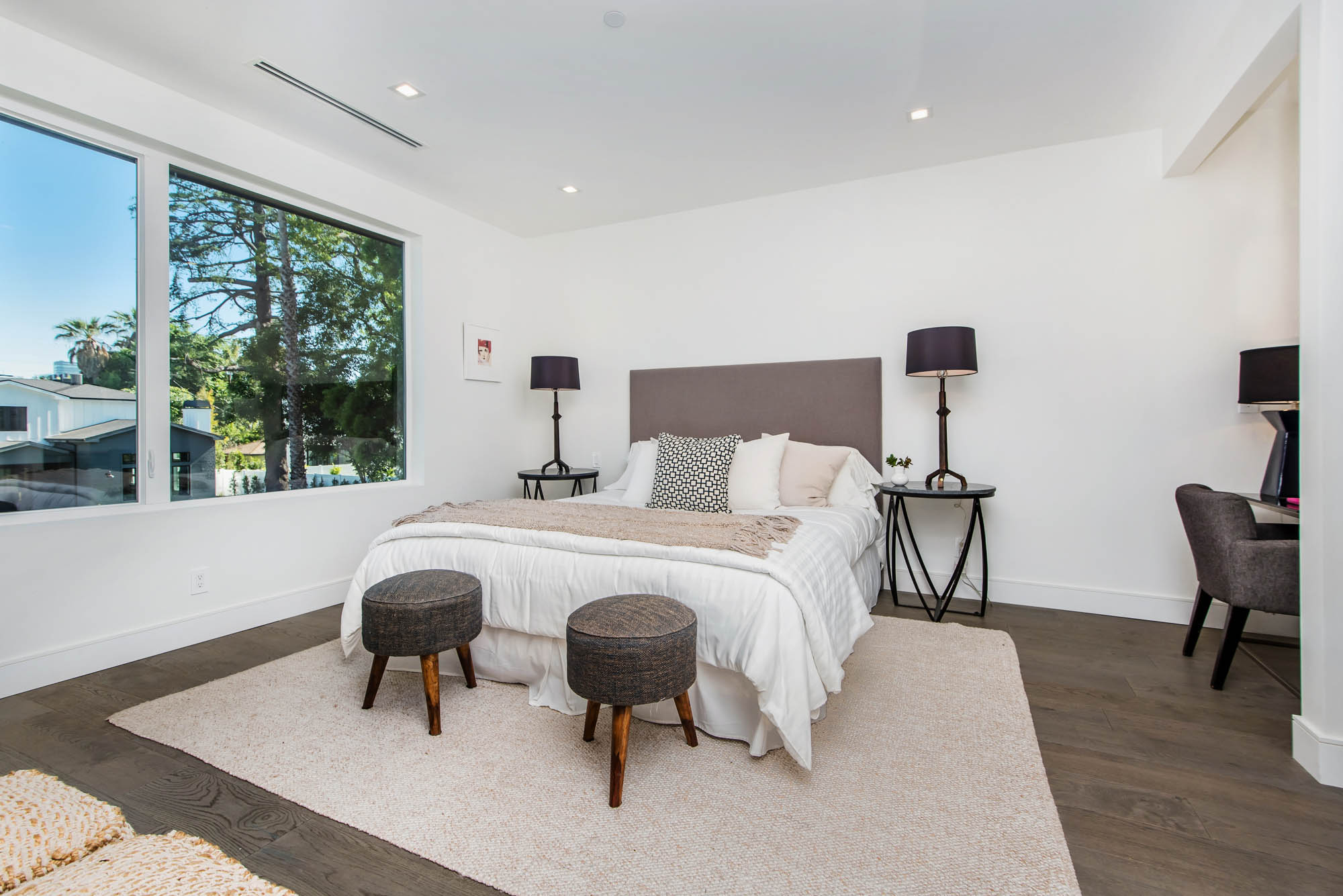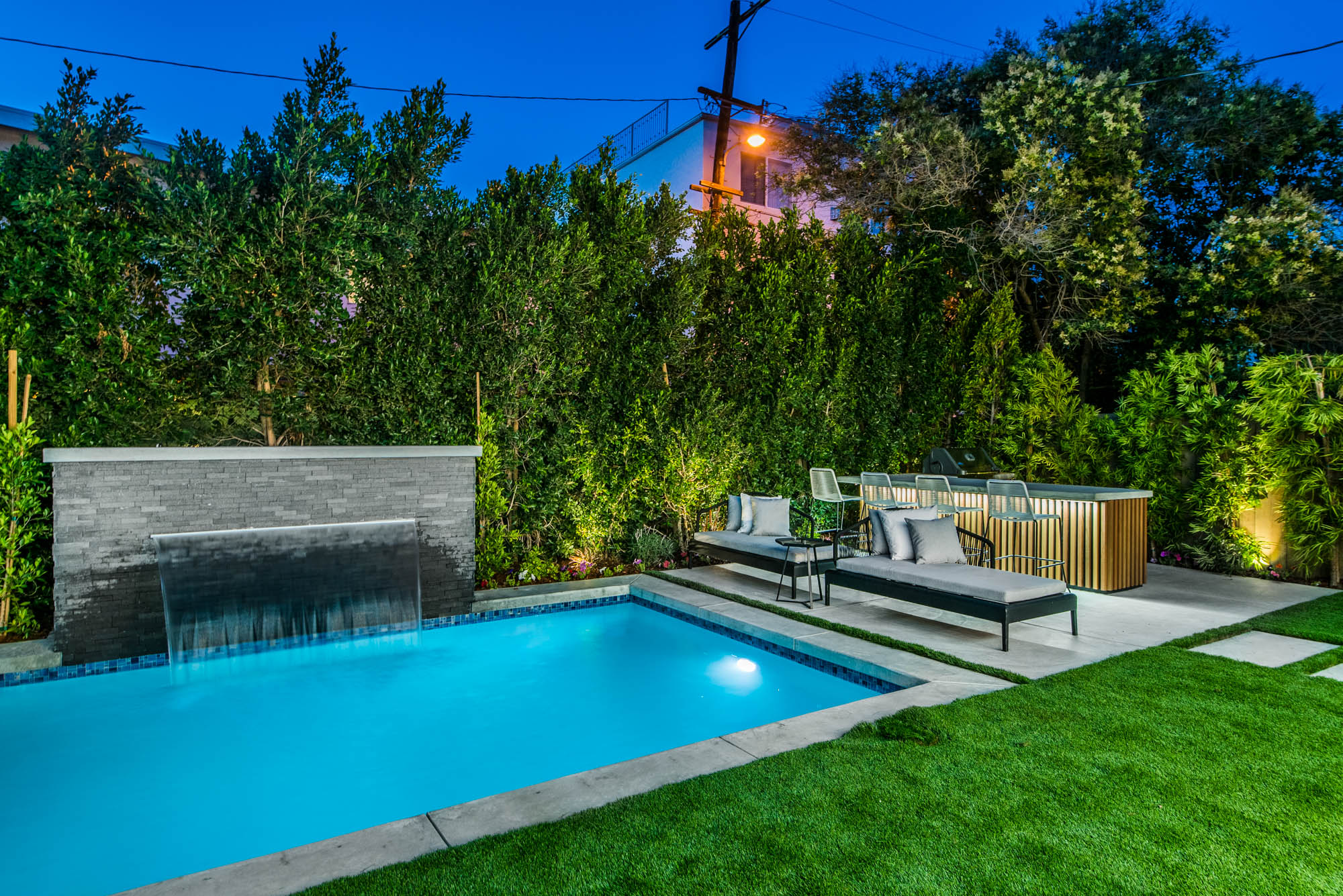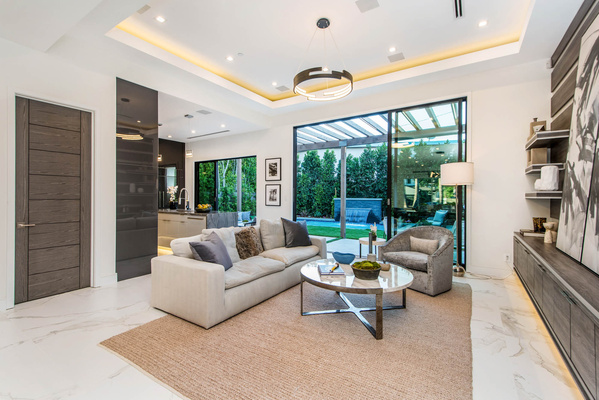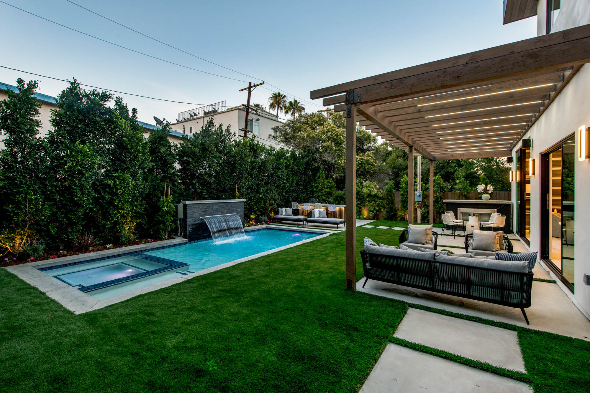 Sleek, modern, and fun are just a few words that begin to describe this new construction modern home, fresh to the Sherman Oaks market. From first glance, the large bold porcelain slabs enclaving the exterior of the home make a statement like no other, teasing for what is to come inside. Porcelain flooring, large windows, recessed lighting, and luxury finishes of the home come alive when the custom LED work carved inside the moldings of each room come on. Each highlight of the home is shown off with the incredible light bounce back this homes high gloss finishes have. Beautiful yet functional, this homes 3,000 sq ft open layout space offers 4 ensuite bedrooms, and 4.5 bathrooms. Main living space offers a family room with an atmospheric fireplace, dining space with a custom LED wine wall piece, and living room with stunning wall work to show off the craftsmanship of this fine modern piece of work. High gloss kitchen is a showstopper with Wolf subzero appliances, and custom cabinetry. Fleet wood glass sliding doors reveal an entertainers dream backyard with a pool and spa, dining space, fireplace, outdoor kitchenette with BBQ and wine fridge. Just upstairs, glass railing and designer lighting lead you to the master suite and additional 2 bedrooms. Master bedroom is a sight to be seen with LED ceiling work, walk in closet, shoe closet, massive windows, balcony, and master bath with large walk in shower, soaking tub, and double vanities. This home is a must see!