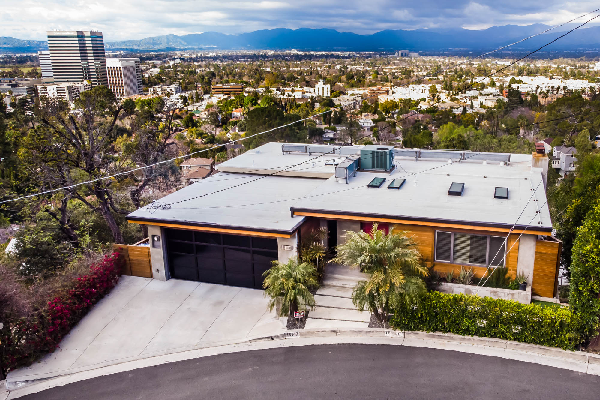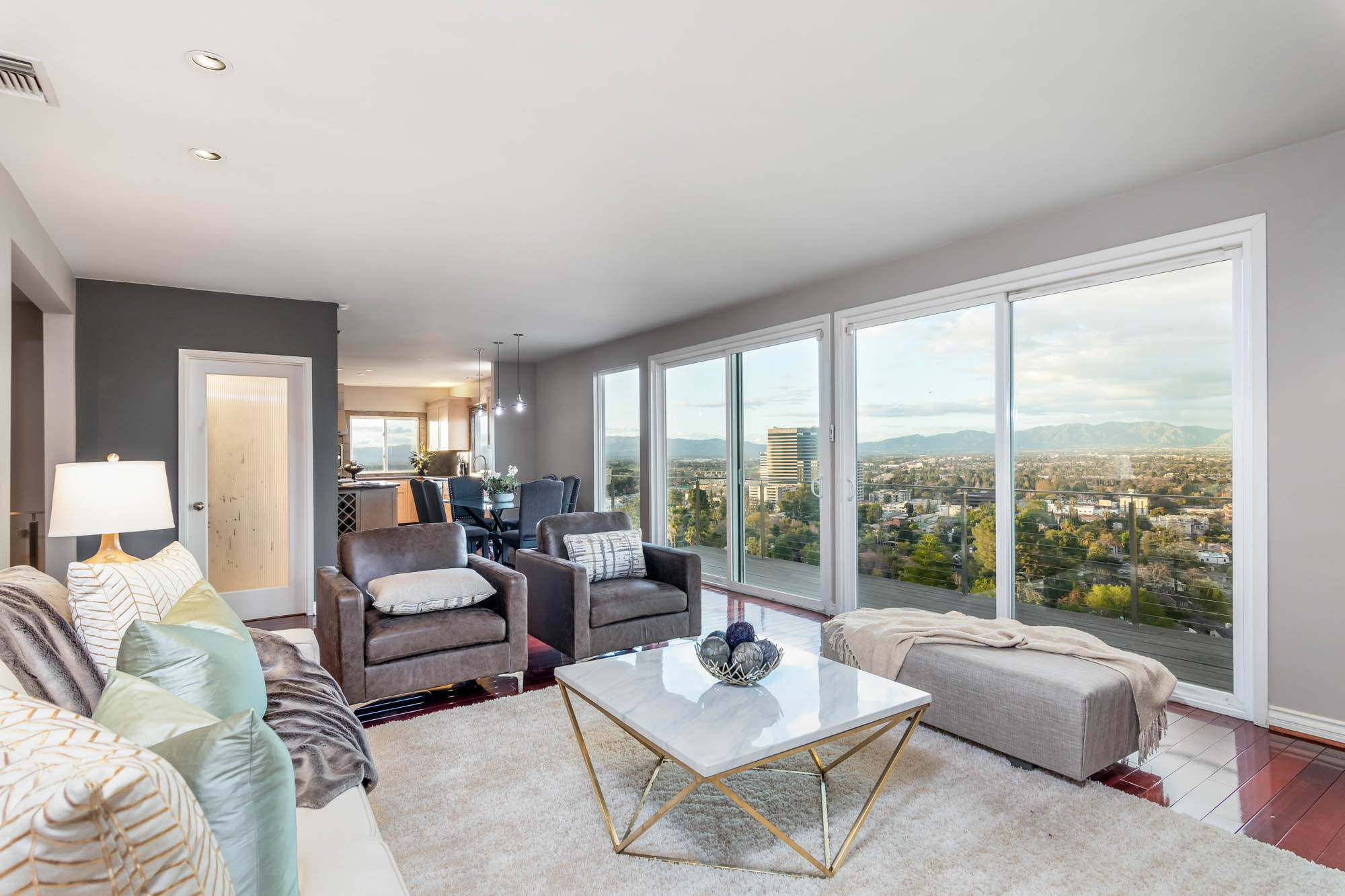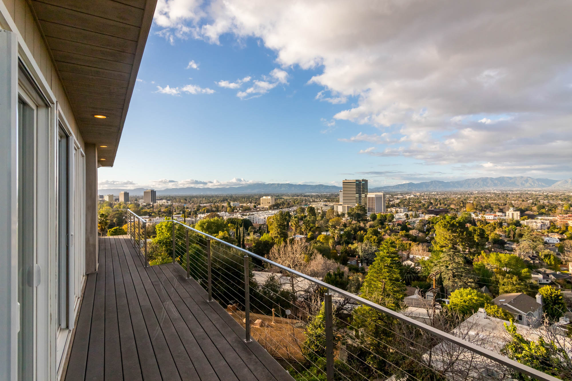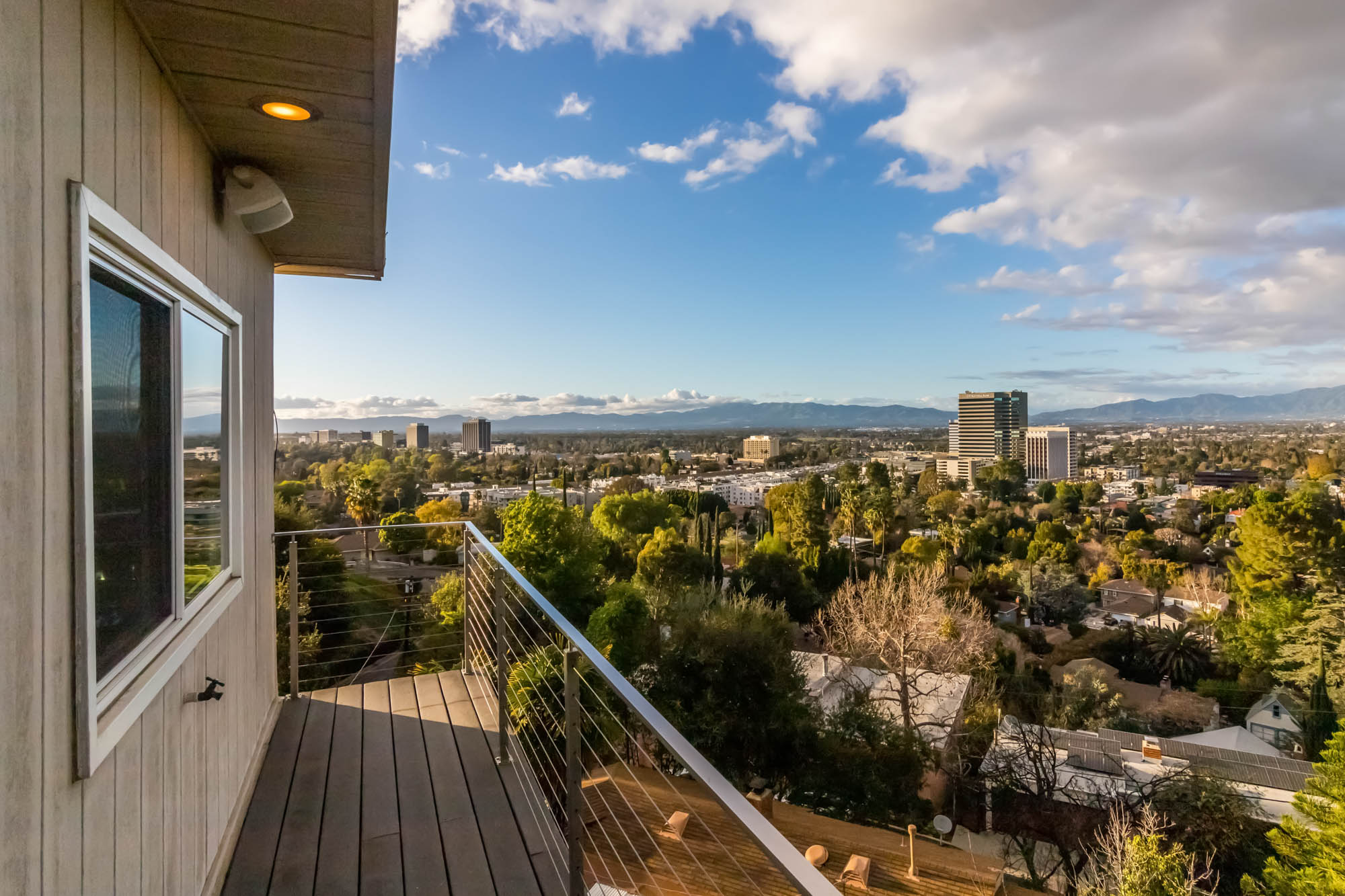 This sexy, mid-century modern, home has breathtaking views from every room! The moment you enter you’ll be captivated by 180 degree views of the valley, mountains, tree-tops, clouds, and city lights. On the main level, the well sized kitchen has lots of storage space, large center island and stainless steel appliances. In the adjoining family room, a gorgeous, natural stone fireplace is a sophisticated focal point and warms up the room for gathering with family and friends. The dining room is perfect for formal dinners and, of course, offers more stunning views. The main level bedroom is generously sized. The main level restroom is sleek and modern, with high-end finishes. Downstairs, a spacious master bedroom showcases more gorgeous views...you can watch the clouds gently float by as you wind down for bedtime, or enjoy the sparkling city lights as you get ready to spice up the night. The master en suite boasts dual-vanities, walk-in shower and a free-standing deep soaking tub, perfect for taking a relaxing bubble bath. The second downstairs bedroom also has an en suite with two separate vanities and tub/shower combo. This room even has a drop down projection screen for hosting fun movie nights! For outdoor entertaining, the full length patio on the main level and a huge full-length patio on the lower level are perfect for barbequing and entertaining guests. Enjoy this private and quiet neighborhood, yet be just moments from the fun and convenience of Ventura Blvd!