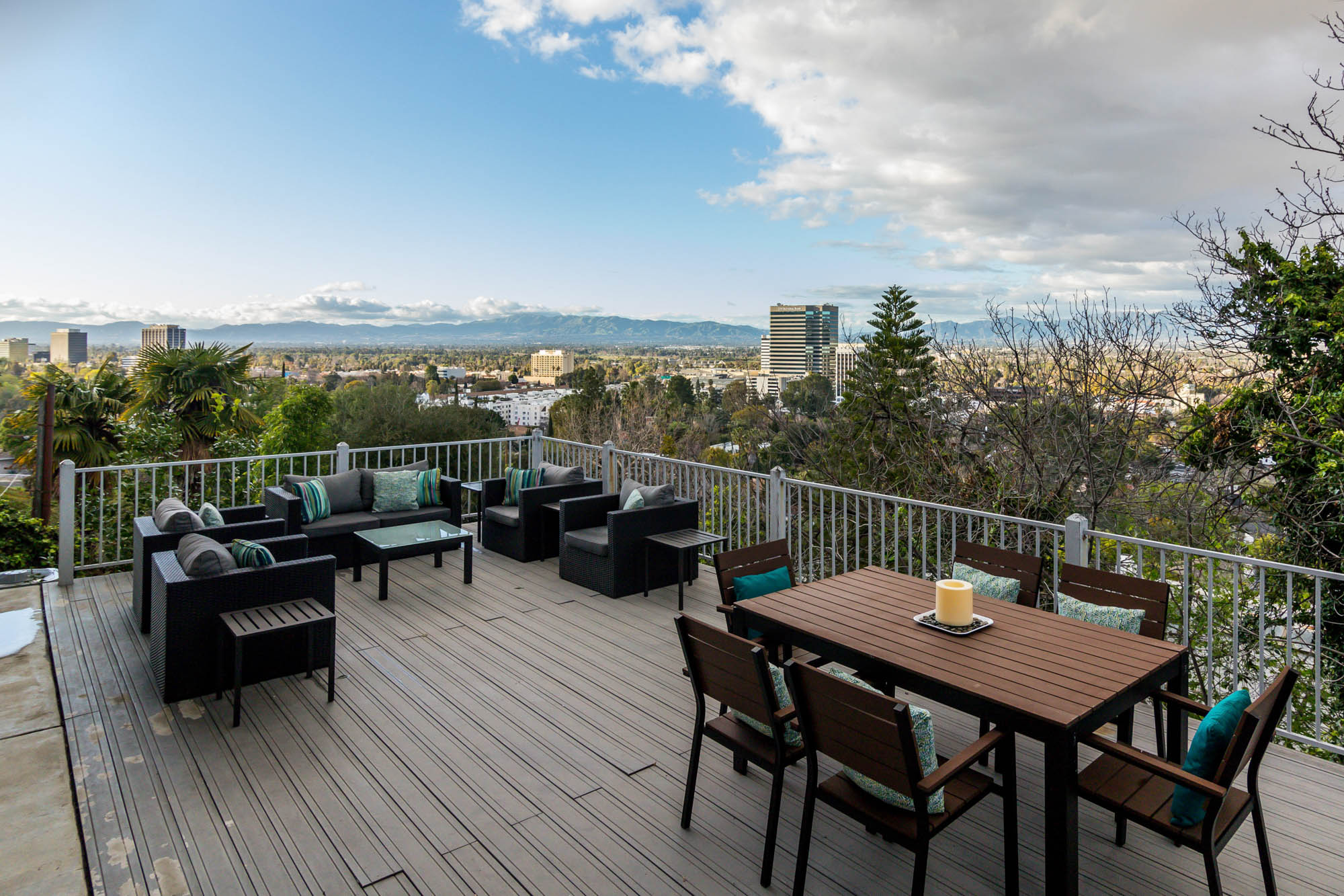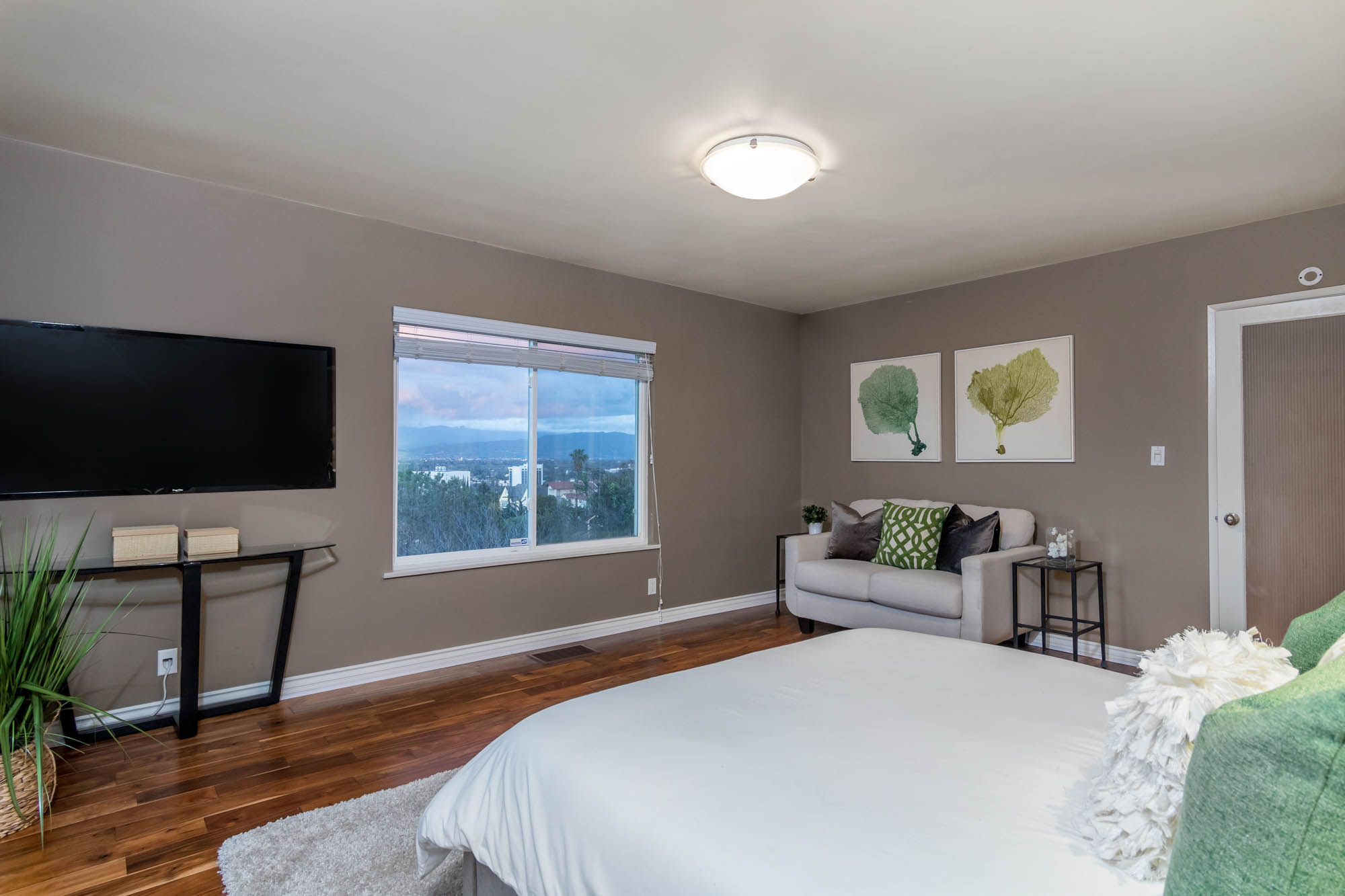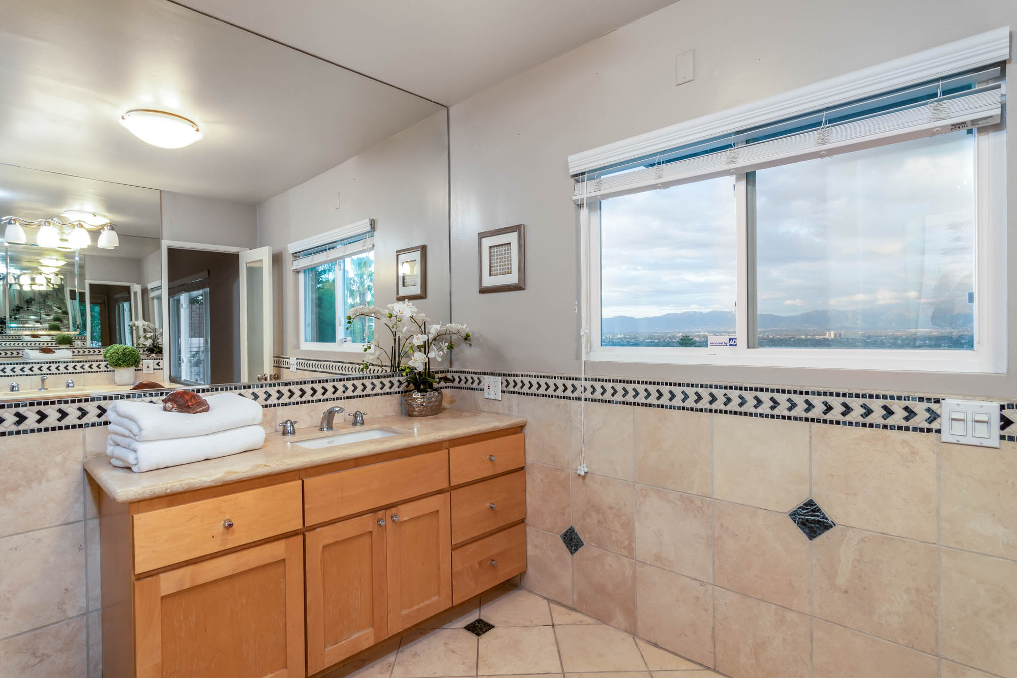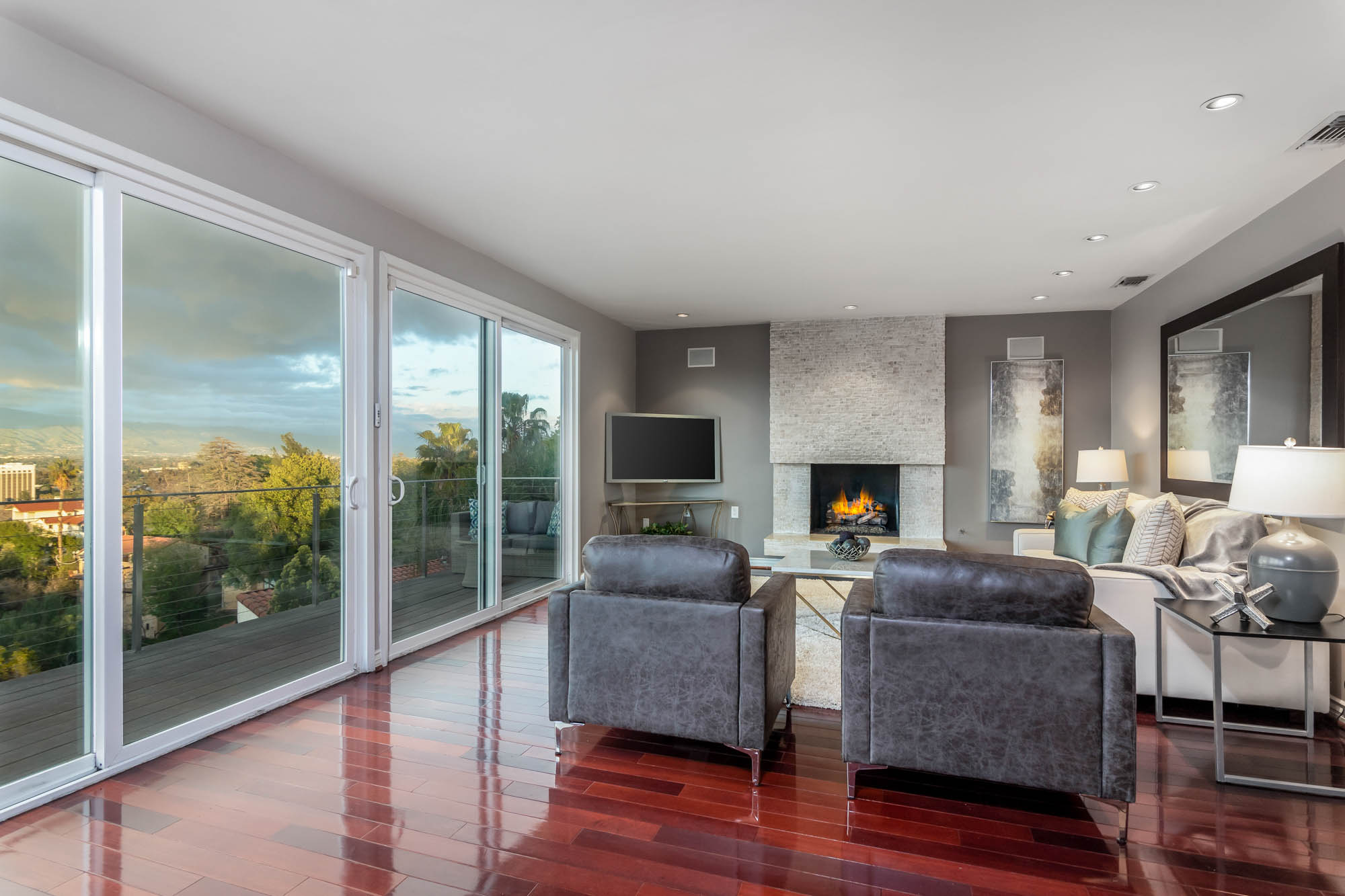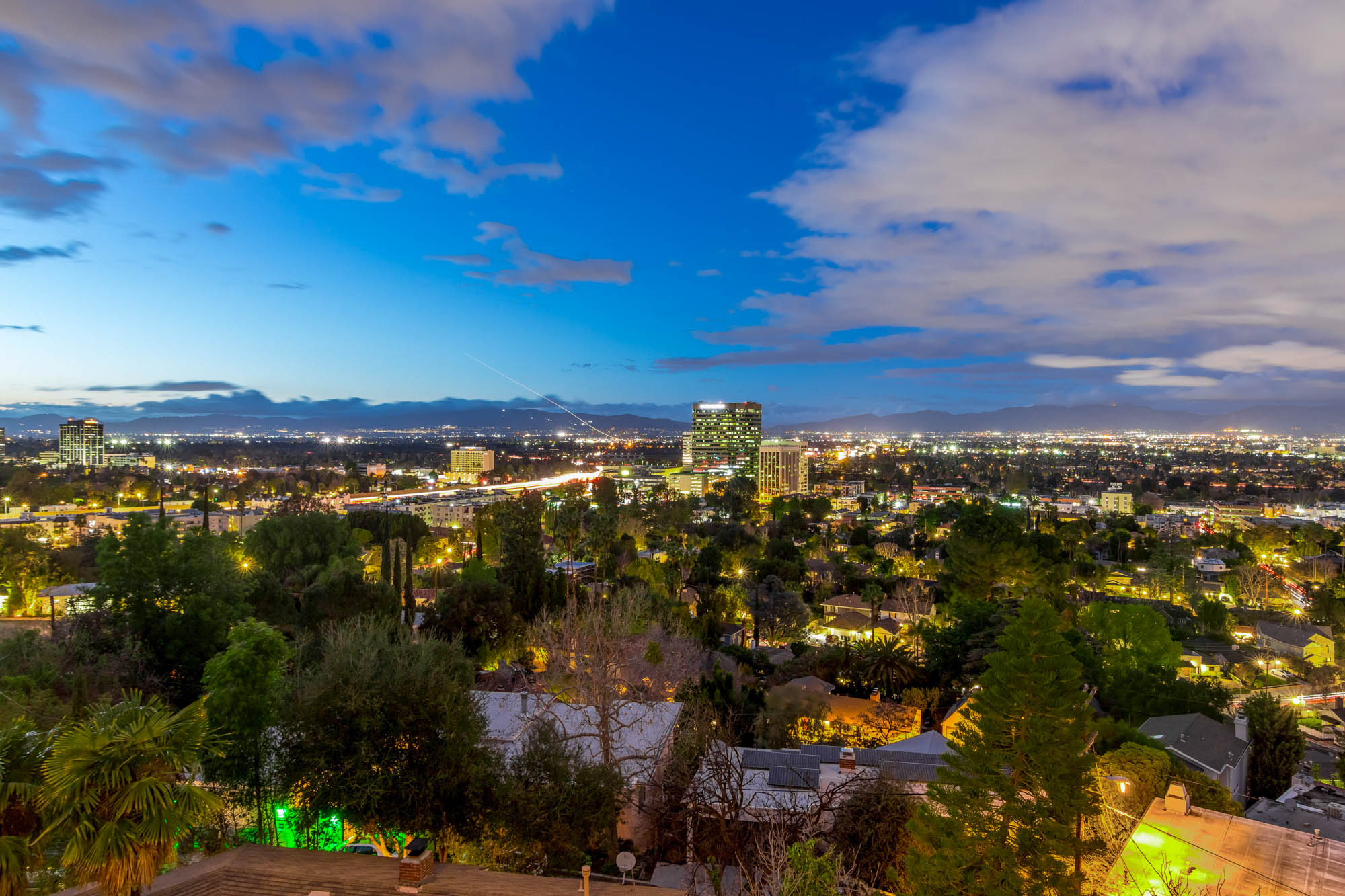 This sexy, mid-century modern, home has breathtaking views from every room! The moment you enter you’ll be captivated by 180 degree views of the valley, mountains, tree-tops, clouds, and city lights. On the main level, the well sized kitchen has lots of storage space, large center island and stainless steel appliances. In the adjoining family room, a gorgeous, natural stone fireplace is a sophisticated focal point and warms up the room for gathering with family and friends. The dining room is perfect for formal dinners and, of course, offers more stunning views. The main level bedroom is generously sized. The main level restroom is sleek and modern, with high-end finishes. Downstairs, a spacious master bedroom showcases more gorgeous views...you can watch the clouds gently float by as you wind down for bedtime, or enjoy the sparkling city lights as you get ready to spice up the night. The master en suite boasts dual-vanities, walk-in shower and a free-standing deep soaking tub, perfect for taking a relaxing bubble bath. The second downstairs bedroom also has an en suite with two separate vanities and tub/shower combo. This room even has a drop down projection screen for hosting fun movie nights! For outdoor entertaining, the full length patio on the main level and a huge full-length patio on the lower level are perfect for barbequing and entertaining guests. Enjoy this private and quiet neighborhood, yet be just moments from the fun and convenience of Ventura Blvd!