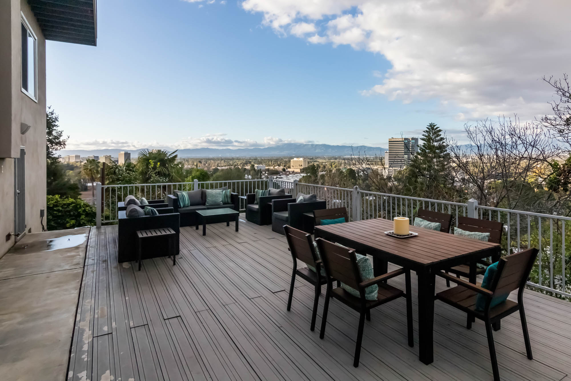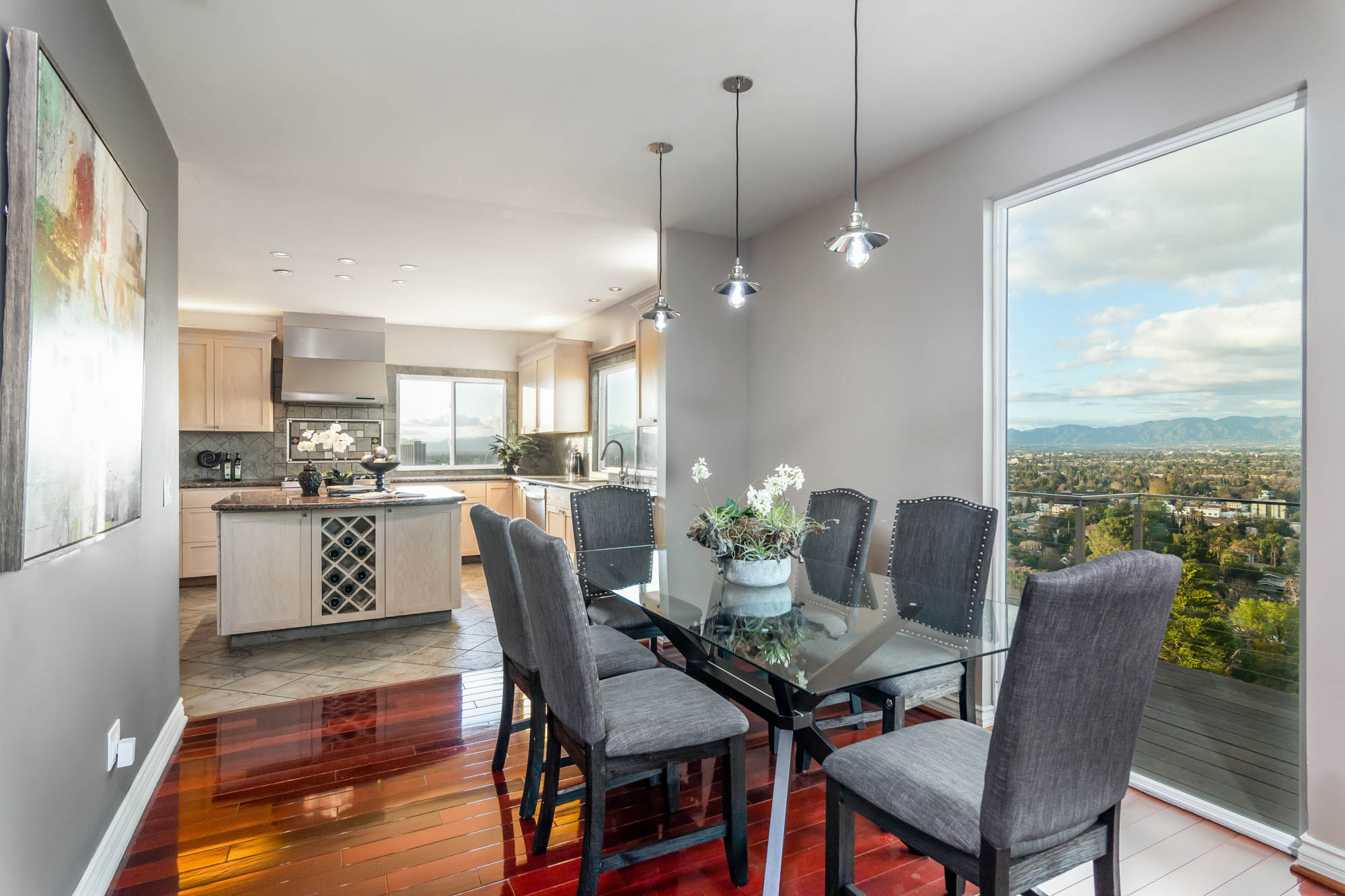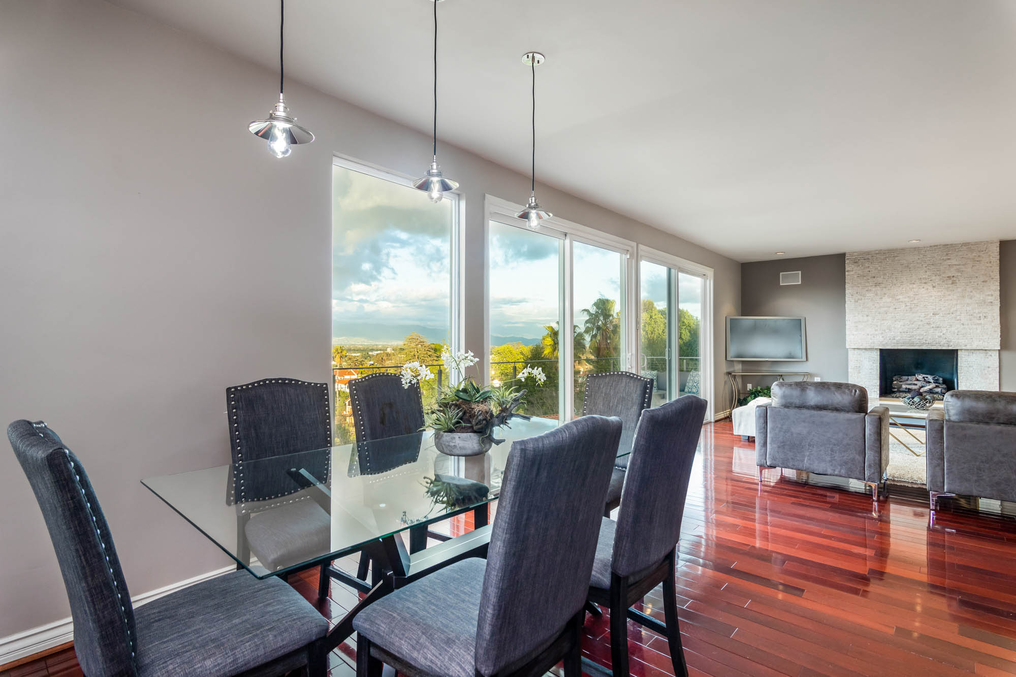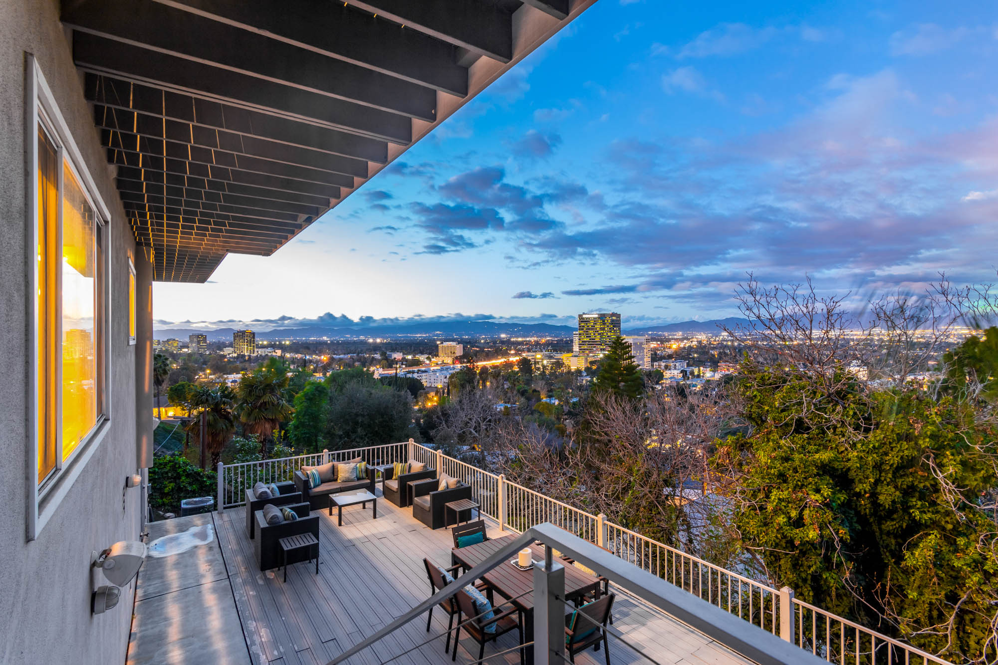 This sexy, mid-century modern, home has breathtaking views from every room! The moment you enter you’ll be captivated by 180 degree views of the valley, mountains, tree-tops, clouds, and city lights. On the main level, the well sized kitchen has lots of storage space, large center island and stainless steel appliances. In the adjoining family room, a gorgeous, natural stone fireplace is a sophisticated focal point and warms up the room for gathering with family and friends. The dining room is perfect for formal dinners and, of course, offers more stunning views. The main level bedroom is generously sized. The main level restroom is sleek and modern, with high-end finishes. Downstairs, a spacious master bedroom showcases more gorgeous views...you can watch the clouds gently float by as you wind down for bedtime, or enjoy the sparkling city lights as you get ready to spice up the night. The master en suite boasts dual-vanities, walk-in shower and a free-standing deep soaking tub, perfect for taking a relaxing bubble bath. The second downstairs bedroom also has an en suite with two separate vanities and tub/shower combo. This room even has a drop down projection screen for hosting fun movie nights! For outdoor entertaining, the full length patio on the main level and a huge full-length patio on the lower level are perfect for barbequing and entertaining guests. Enjoy this private and quiet neighborhood, yet be just moments from the fun and convenience of Ventura Blvd!