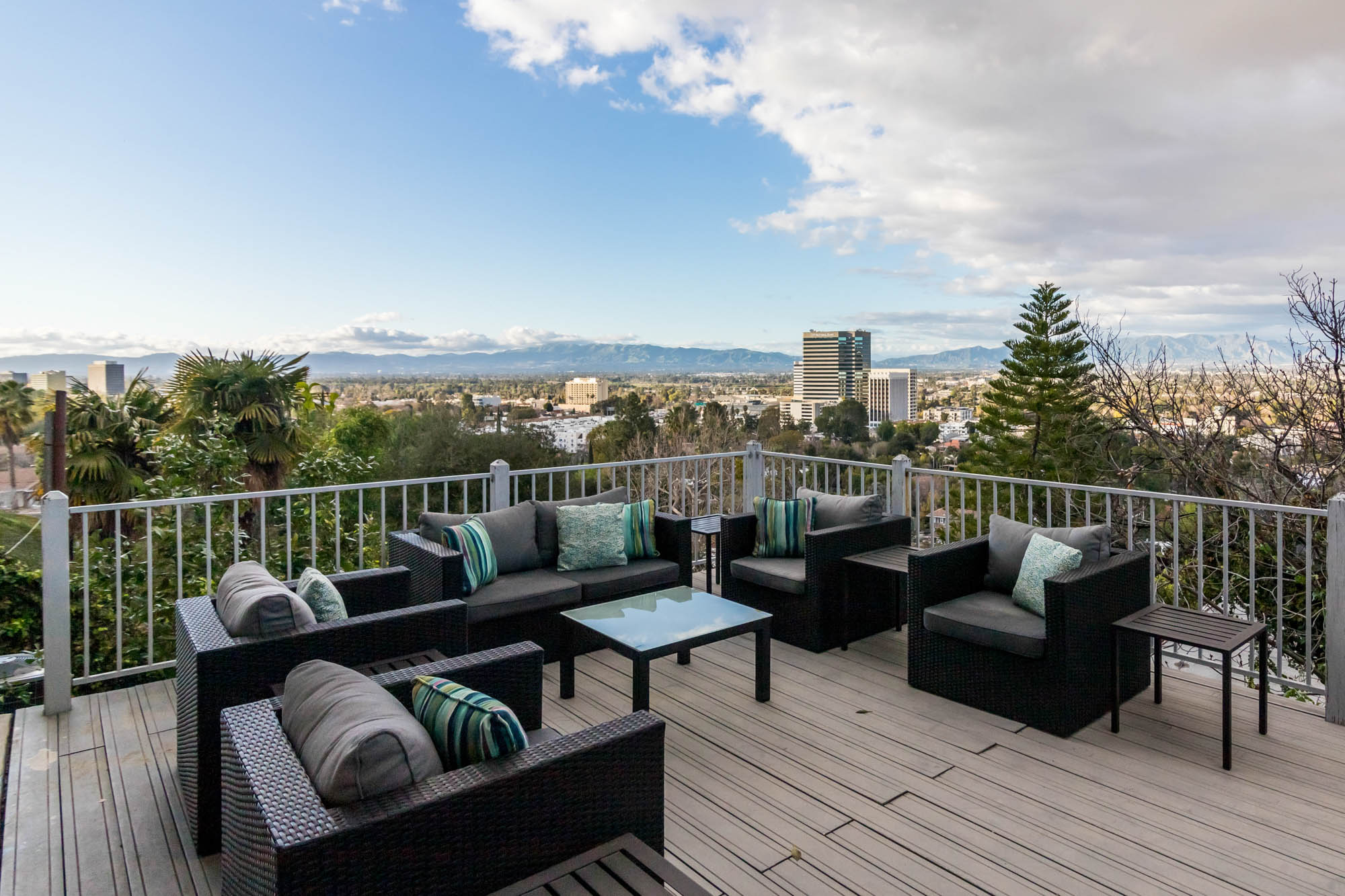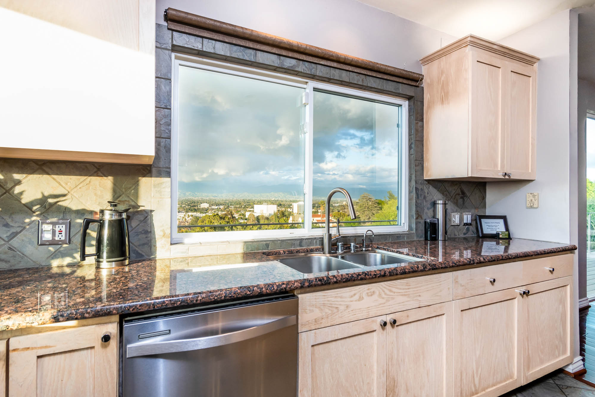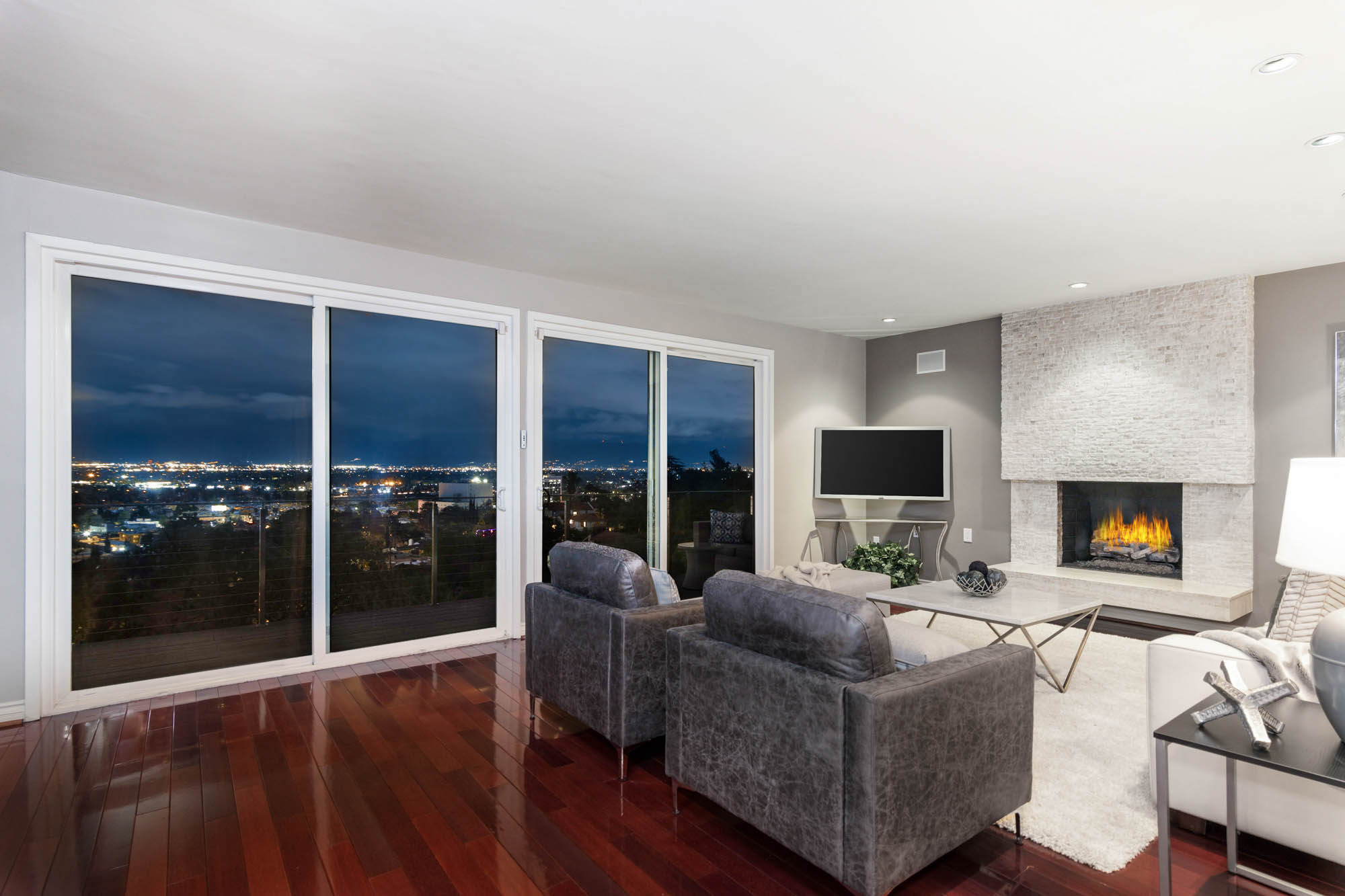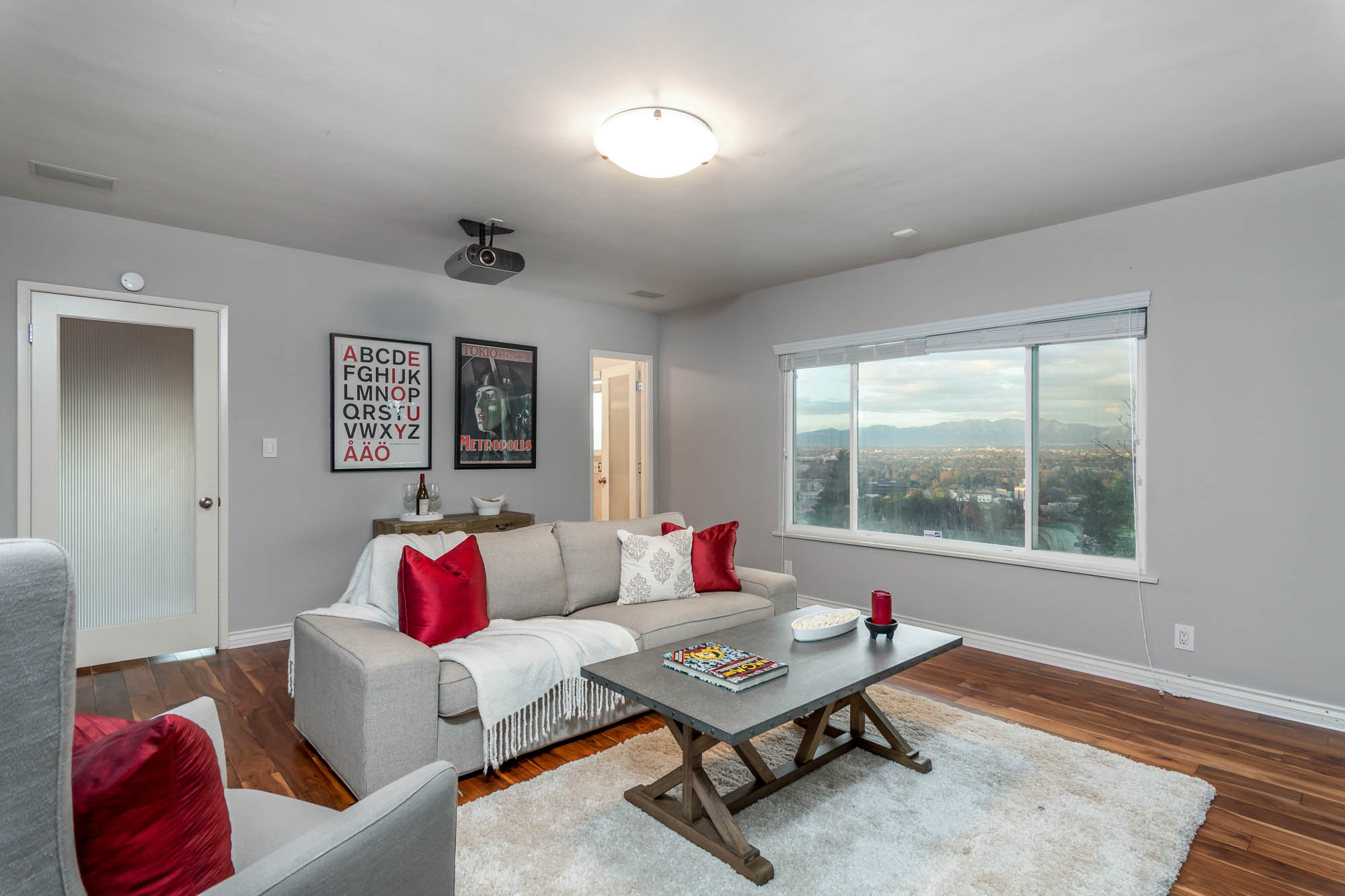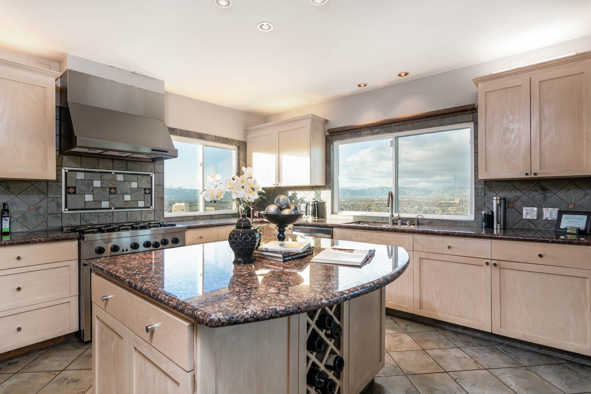 This sexy, mid-century modern, home has breathtaking views from every room! The moment you enter you’ll be captivated by 180 degree views of the valley, mountains, tree-tops, clouds, and city lights. On the main level, the well sized kitchen has lots of storage space, large center island and stainless steel appliances. In the adjoining family room, a gorgeous, natural stone fireplace is a sophisticated focal point and warms up the room for gathering with family and friends. The dining room is perfect for formal dinners and, of course, offers more stunning views. The main level bedroom is generously sized. The main level restroom is sleek and modern, with high-end finishes. Downstairs, a spacious master bedroom showcases more gorgeous views...you can watch the clouds gently float by as you wind down for bedtime, or enjoy the sparkling city lights as you get ready to spice up the night. The master en suite boasts dual-vanities, walk-in shower and a free-standing deep soaking tub, perfect for taking a relaxing bubble bath. The second downstairs bedroom also has an en suite with two separate vanities and tub/shower combo. This room even has a drop down projection screen for hosting fun movie nights! For outdoor entertaining, the full length patio on the main level and a huge full-length patio on the lower level are perfect for barbequing and entertaining guests. Enjoy this private and quiet neighborhood, yet be just moments from the fun and convenience of Ventura Blvd!