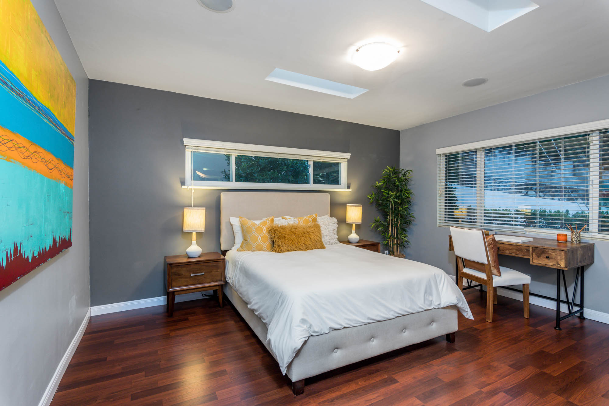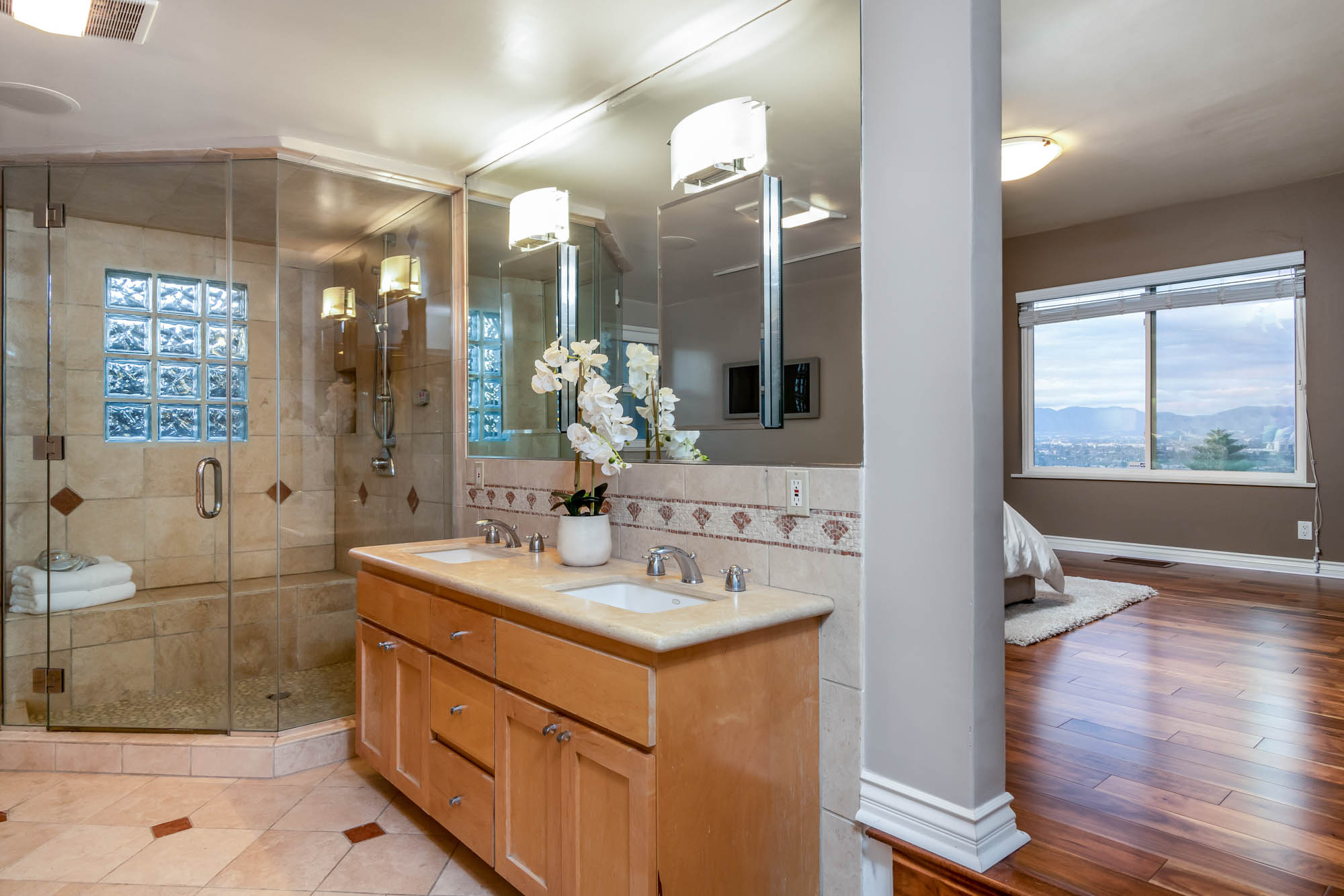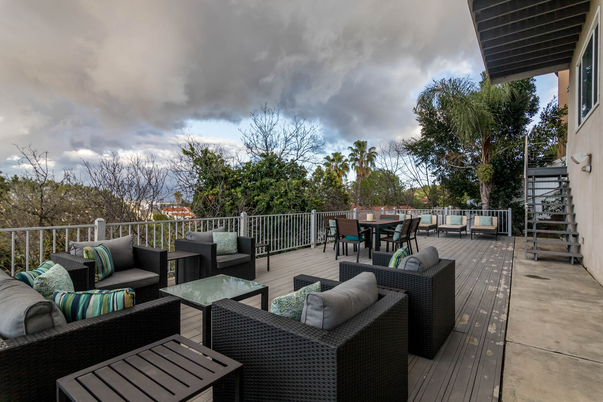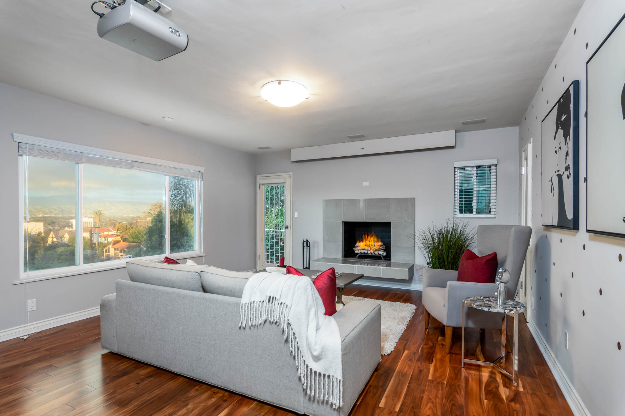 This sexy, mid-century modern, home has breathtaking views from every room! The moment you enter you’ll be captivated by 180 degree views of the valley, mountains, tree-tops, clouds, and city lights. On the main level, the well sized kitchen has lots of storage space, large center island and stainless steel appliances. In the adjoining family room, a gorgeous, natural stone fireplace is a sophisticated focal point and warms up the room for gathering with family and friends. The dining room is perfect for formal dinners and, of course, offers more stunning views. The main level bedroom is generously sized. The main level restroom is sleek and modern, with high-end finishes. Downstairs, a spacious master bedroom showcases more gorgeous views...you can watch the clouds gently float by as you wind down for bedtime, or enjoy the sparkling city lights as you get ready to spice up the night. The master en suite boasts dual-vanities, walk-in shower and a free-standing deep soaking tub, perfect for taking a relaxing bubble bath. The second downstairs bedroom also has an en suite with two separate vanities and tub/shower combo. This room even has a drop down projection screen for hosting fun movie nights! For outdoor entertaining, the full length patio on the main level and a huge full-length patio on the lower level are perfect for barbequing and entertaining guests. Enjoy this private and quiet neighborhood, yet be just moments from the fun and convenience of Ventura Blvd!