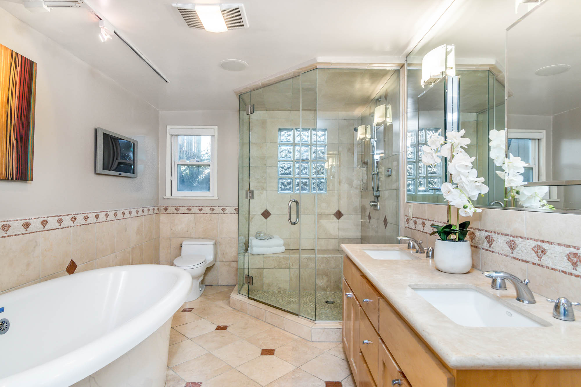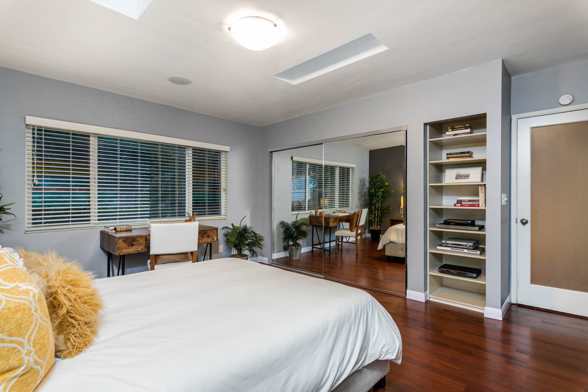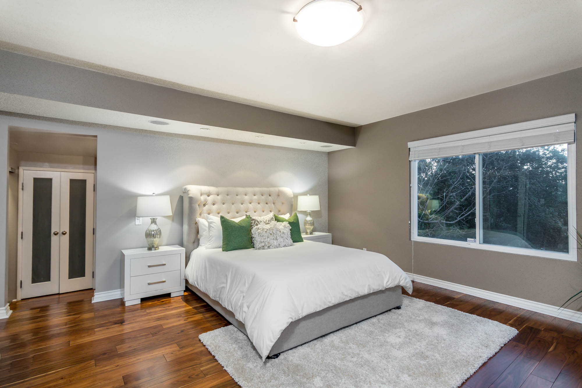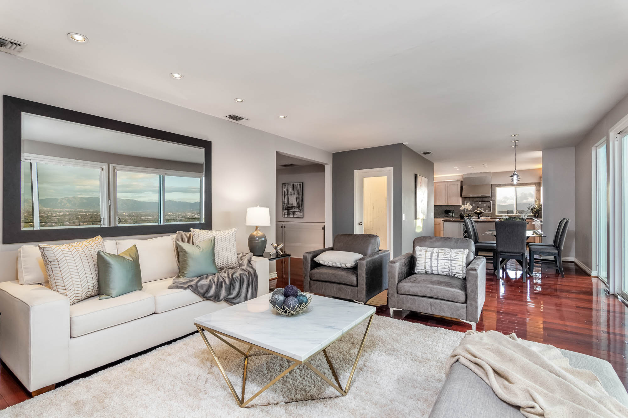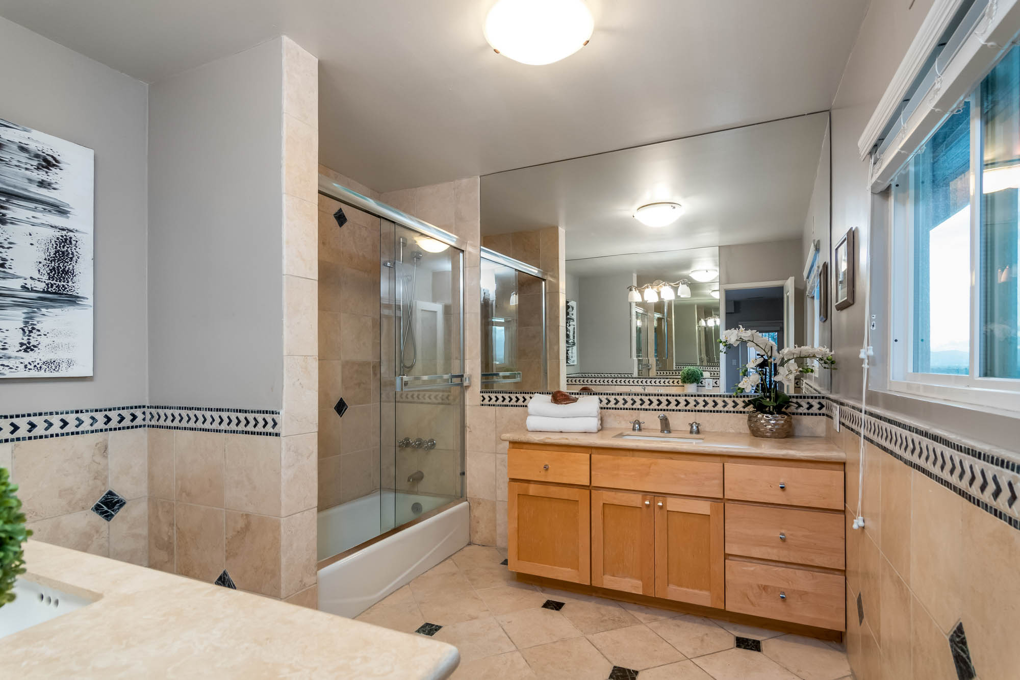 This sexy, mid-century modern, home has breathtaking views from every room! The moment you enter you’ll be captivated by 180 degree views of the valley, mountains, tree-tops, clouds, and city lights. On the main level, the well sized kitchen has lots of storage space, large center island and stainless steel appliances. In the adjoining family room, a gorgeous, natural stone fireplace is a sophisticated focal point and warms up the room for gathering with family and friends. The dining room is perfect for formal dinners and, of course, offers more stunning views. The main level bedroom is generously sized. The main level restroom is sleek and modern, with high-end finishes. Downstairs, a spacious master bedroom showcases more gorgeous views...you can watch the clouds gently float by as you wind down for bedtime, or enjoy the sparkling city lights as you get ready to spice up the night. The master en suite boasts dual-vanities, walk-in shower and a free-standing deep soaking tub, perfect for taking a relaxing bubble bath. The second downstairs bedroom also has an en suite with two separate vanities and tub/shower combo. This room even has a drop down projection screen for hosting fun movie nights! For outdoor entertaining, the full length patio on the main level and a huge full-length patio on the lower level are perfect for barbequing and entertaining guests. Enjoy this private and quiet neighborhood, yet be just moments from the fun and convenience of Ventura Blvd!