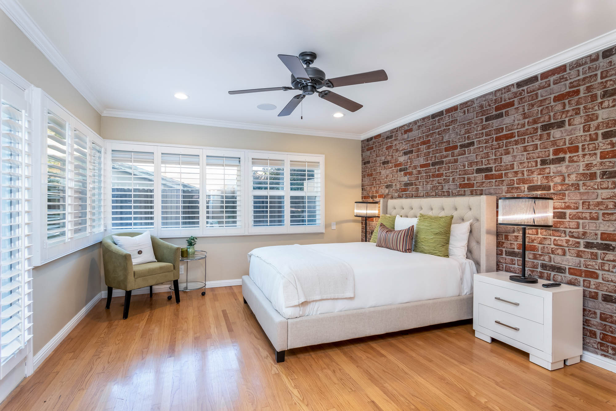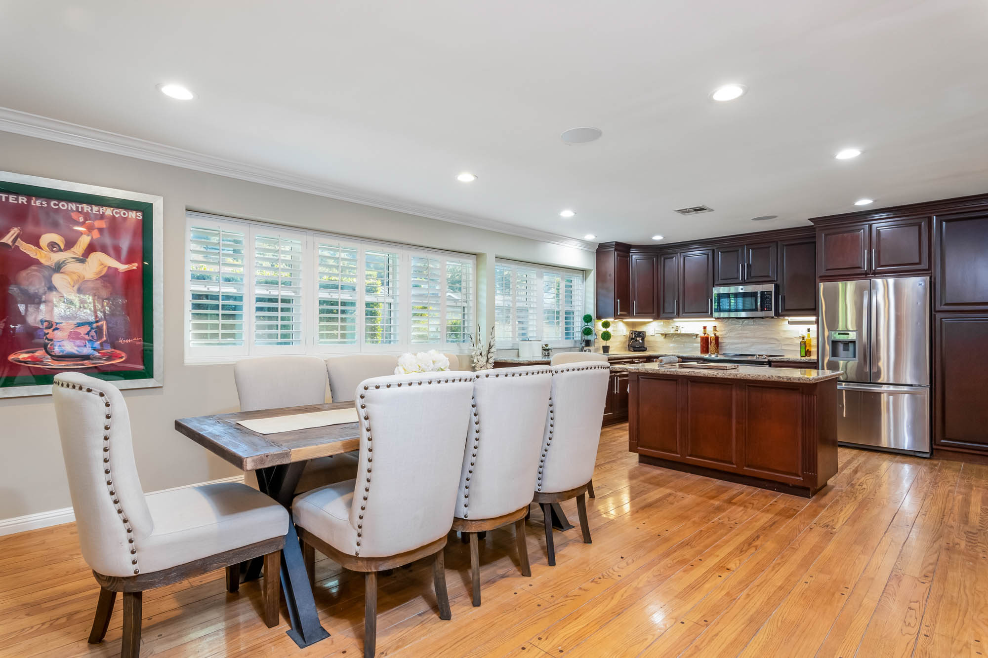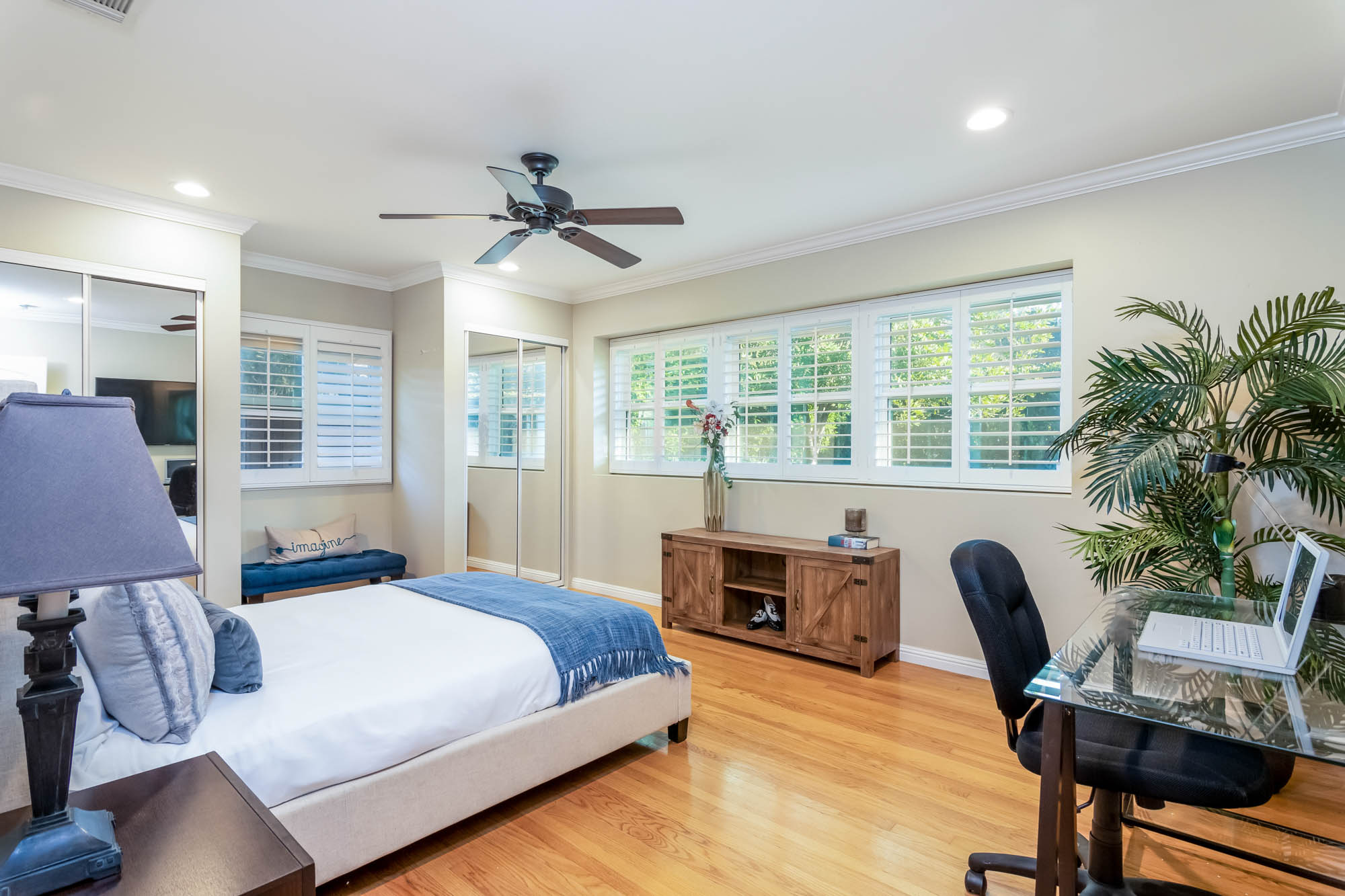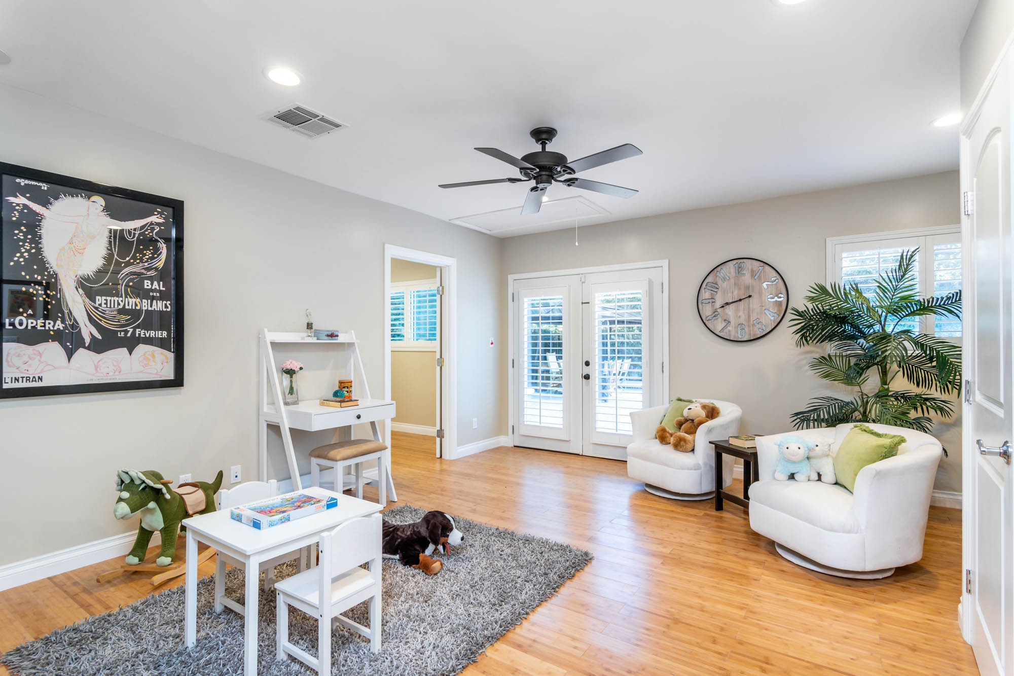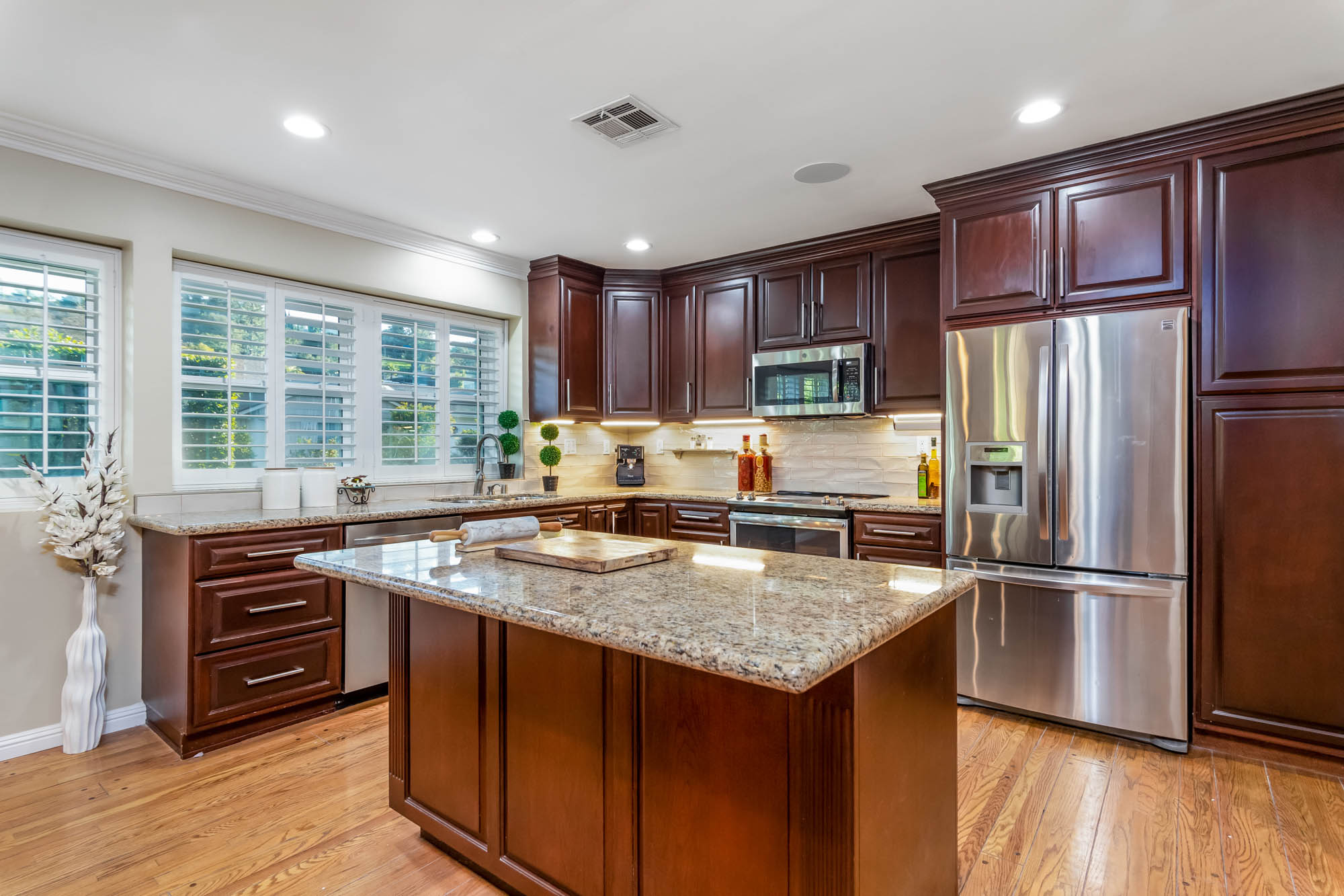 Located in the serene hills of Sherman Oaks South of the Blvd lies this stunning single story, 4 bed, 3 bath home in the Royal Woods community. Behind exclusive gates and surrounded by large privacy trees, this beautifully landscaped home is not one to miss! Upon entering this 2,570 Sqft home you are welcomed by an inviting red door and breathtaking open floor plan, that gives off a trendy New York loft-style feel. With an abundance of space, eye-catching accent wall, and access to the backyard, the living area is made to entertain. Flowing effortlessly to one side is a spacious dining area perfect for large gatherings with friends and family. A beautiful kitchen with large island follows and is fully equipped with top of the line stainless steel appliances, plentiful cabinetry, and lovely granite countertops. Plantation windows allow for an abundance of natural light that illuminates the beautiful hardwood floors. 3 sizable bedrooms and 2 luxury bathrooms are a must but the main event is the incredible master suite. Featuring a second accent wall, private access to the backyard, walk-in closet with vanity and an astounding master bathroom with a double sink vanity, Toto luxury toilet, massive shower and deep tub to soak in after a long day, this is the ultimate retreat! A bonus room with full bathroom is located towards the back of the home and is perfect for a playroom, office, or even media room! The exclusive backyard spares no expense and includes a large patio, magnificent sparkling pool, kids playground, cabana for lounging and even an outdoor bathroom with toilet and shower! Additional features include in-ceiling speakers for indoor/outdoor surround sound, dimmable recessed lighting, and attached 2 car garage with extra storage space. Conveniently located near the 101 & 405 fwys, your dream home awaits!
