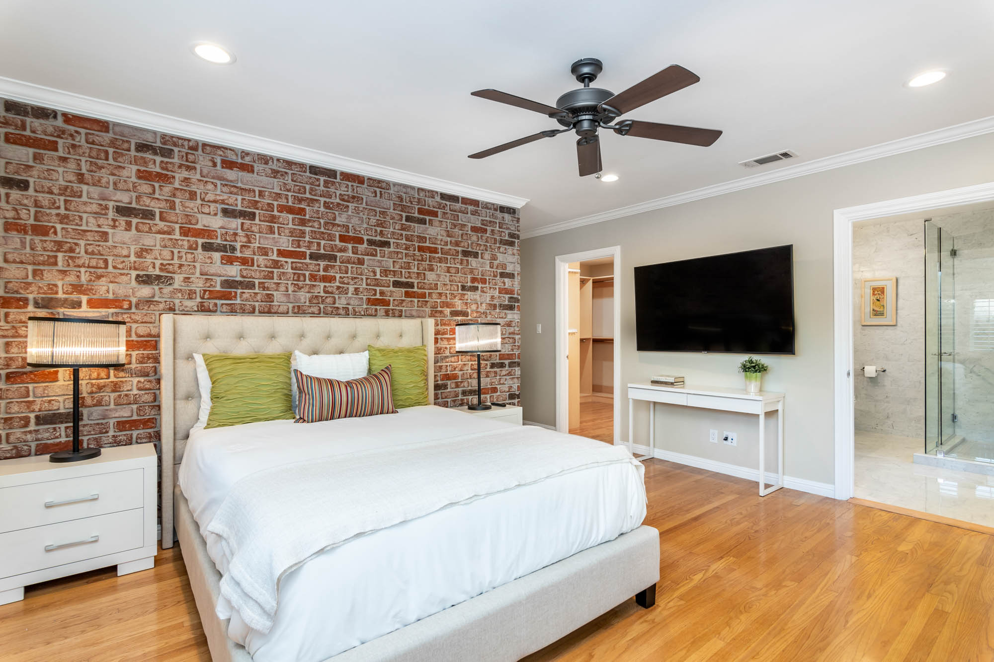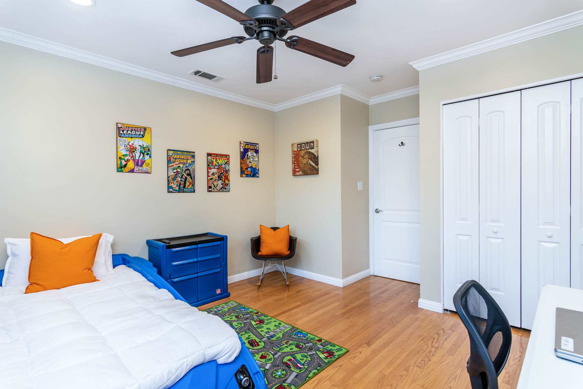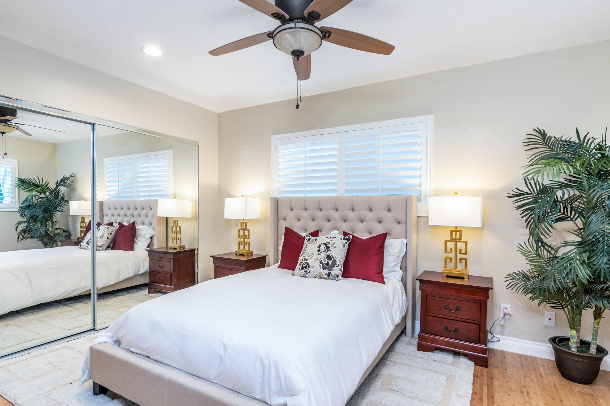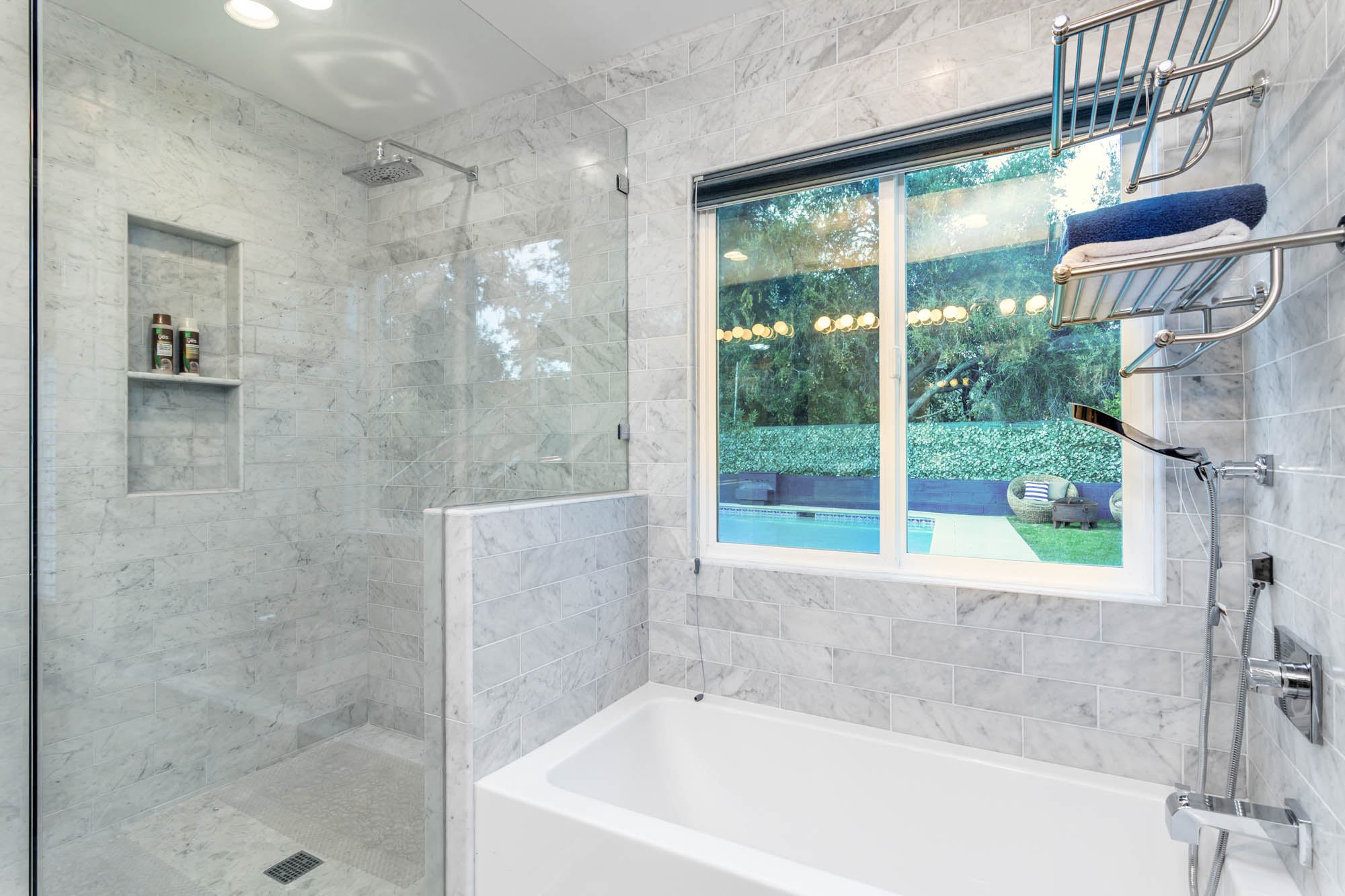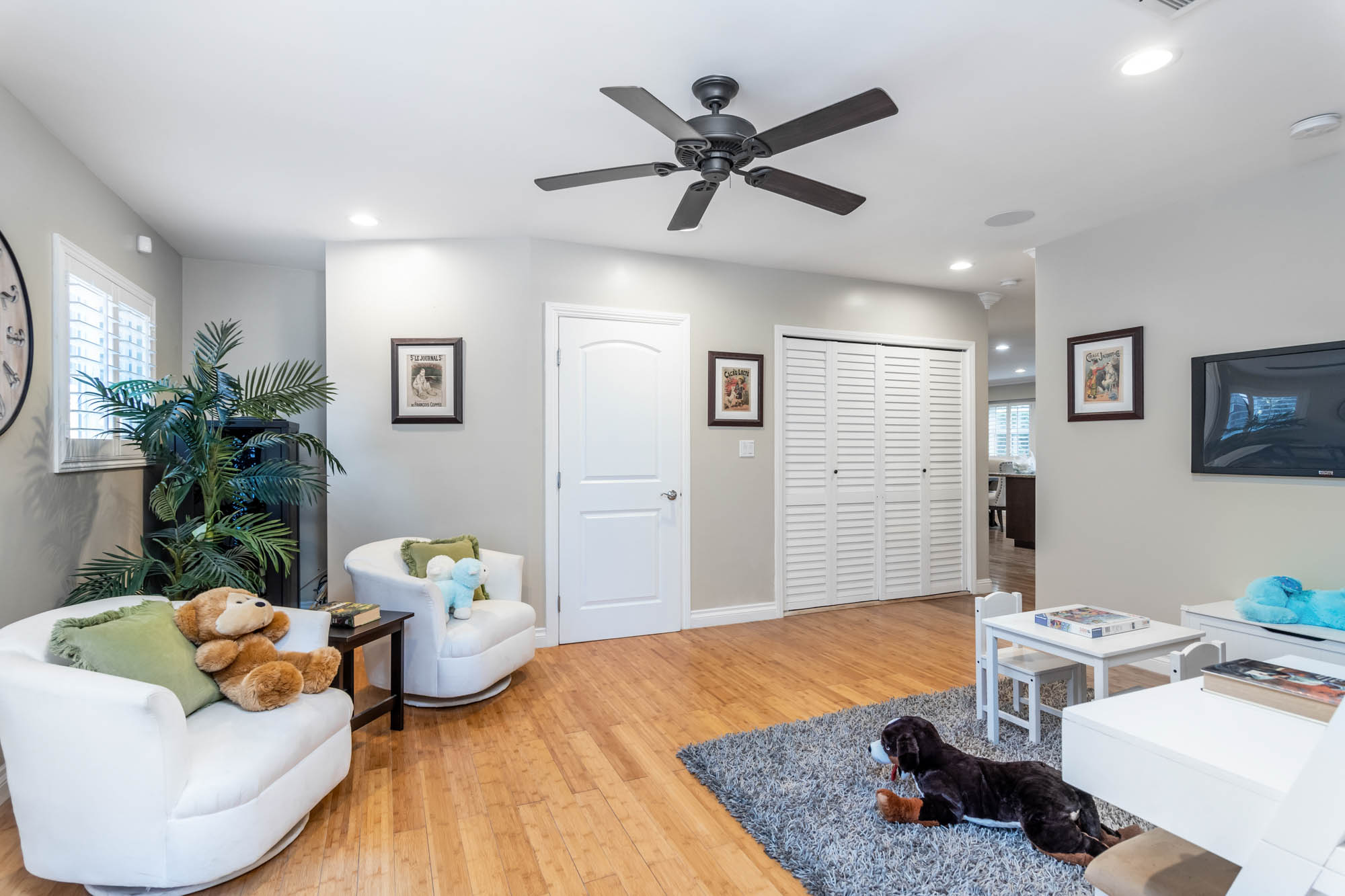 Located in the serene hills of Sherman Oaks South of the Blvd lies this stunning single story, 4 bed, 3 bath home in the Royal Woods community. Behind exclusive gates and surrounded by large privacy trees, this beautifully landscaped home is not one to miss! Upon entering this 2,570 Sqft home you are welcomed by an inviting red door and breathtaking open floor plan, that gives off a trendy New York loft-style feel. With an abundance of space, eye-catching accent wall, and access to the backyard, the living area is made to entertain. Flowing effortlessly to one side is a spacious dining area perfect for large gatherings with friends and family. A beautiful kitchen with large island follows and is fully equipped with top of the line stainless steel appliances, plentiful cabinetry, and lovely granite countertops. Plantation windows allow for an abundance of natural light that illuminates the beautiful hardwood floors. 3 sizable bedrooms and 2 luxury bathrooms are a must but the main event is the incredible master suite. Featuring a second accent wall, private access to the backyard, walk-in closet with vanity and an astounding master bathroom with a double sink vanity, Toto luxury toilet, massive shower and deep tub to soak in after a long day, this is the ultimate retreat! A bonus room with full bathroom is located towards the back of the home and is perfect for a playroom, office, or even media room! The exclusive backyard spares no expense and includes a large patio, magnificent sparkling pool, kids playground, cabana for lounging and even an outdoor bathroom with toilet and shower! Additional features include in-ceiling speakers for indoor/outdoor surround sound, dimmable recessed lighting, and attached 2 car garage with extra storage space. Conveniently located near the 101 & 405 fwys, your dream home awaits!