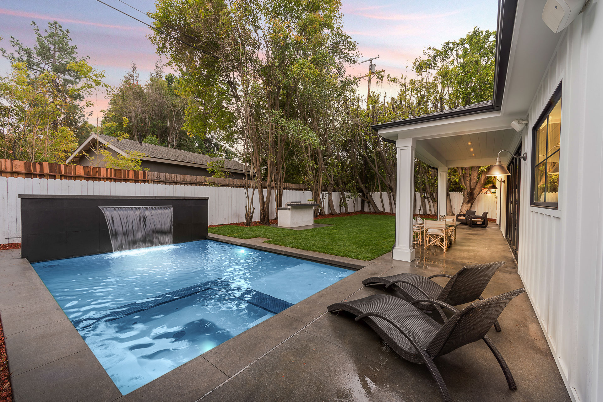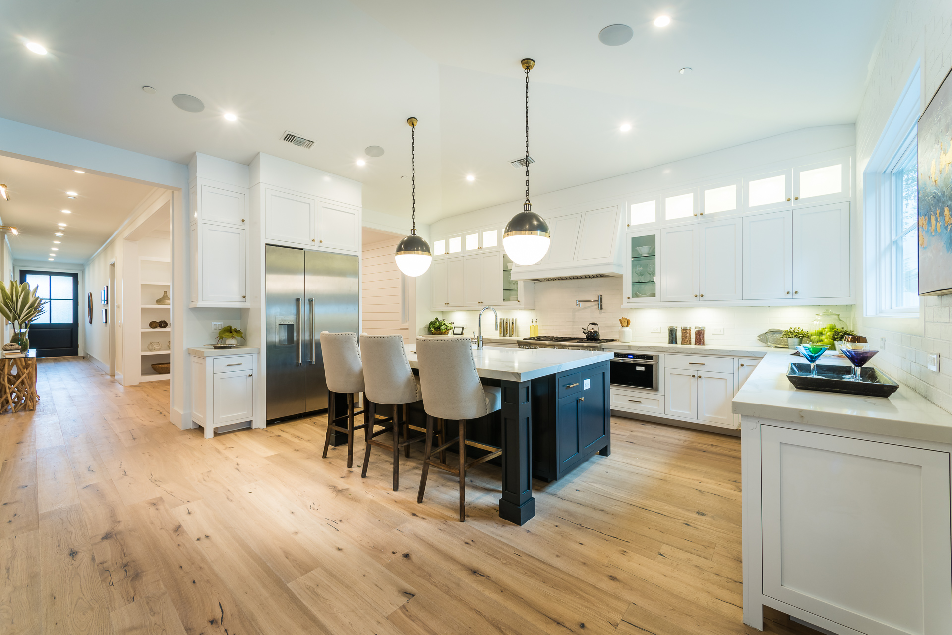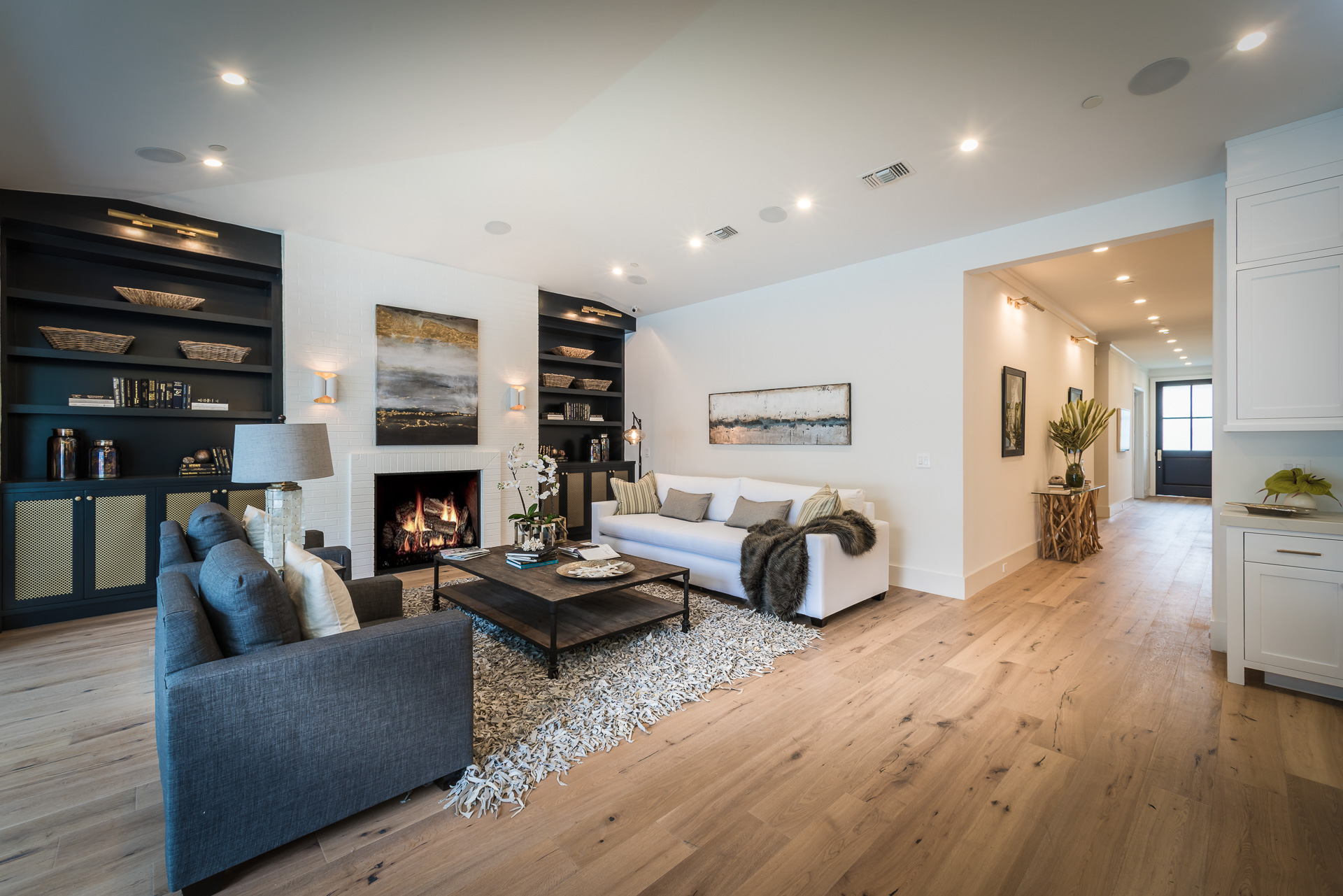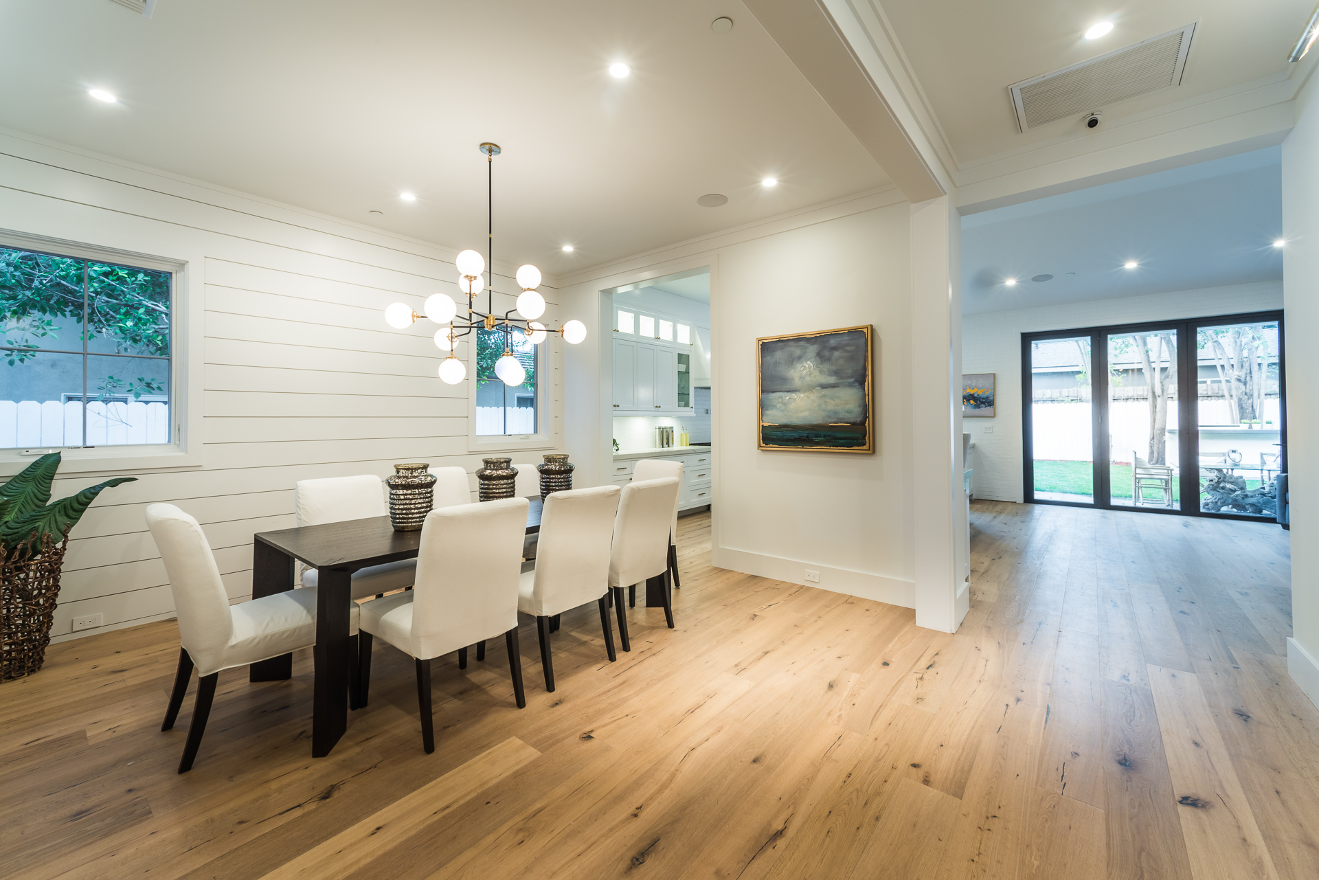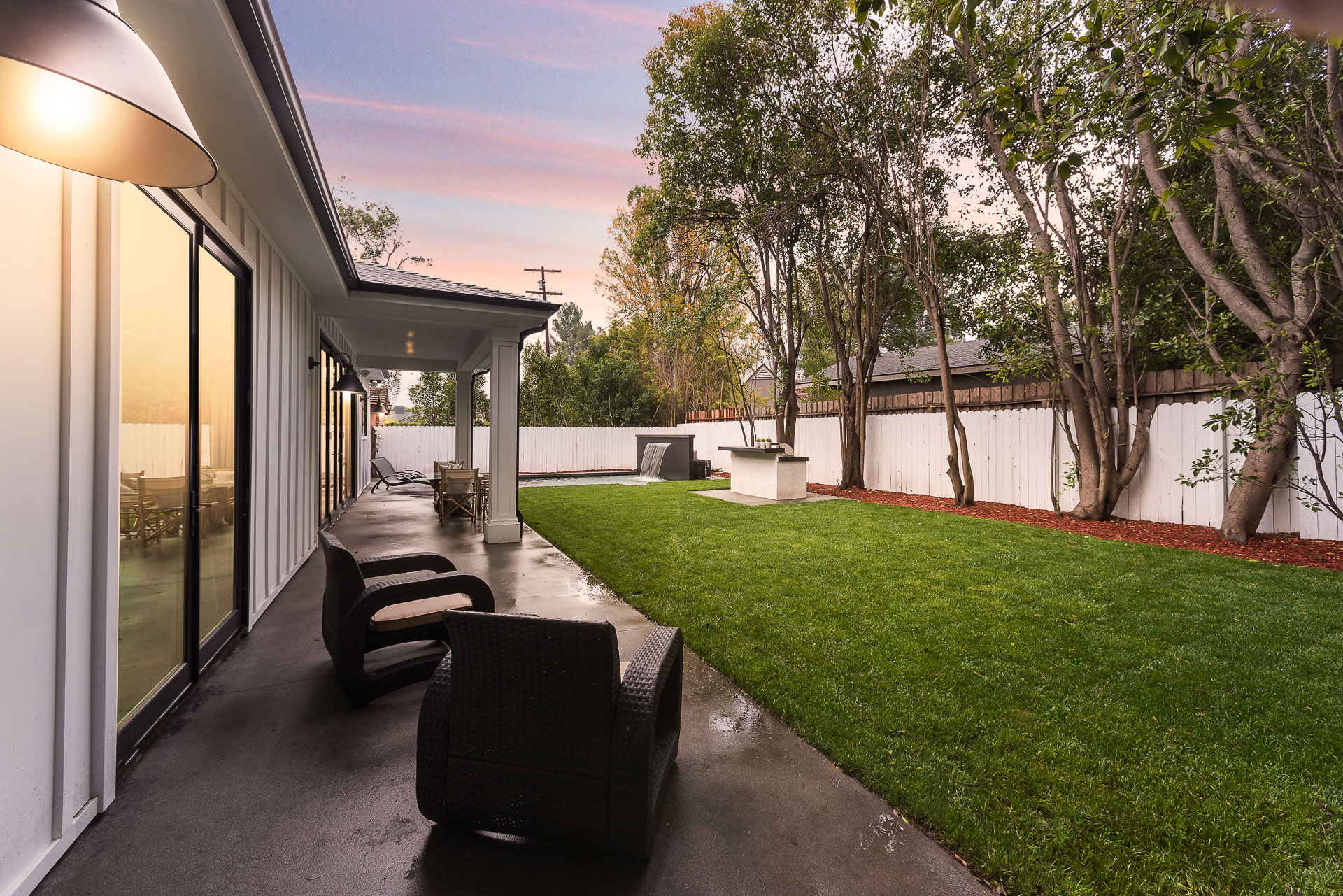 This sprawling one story new construction home is perfect for the growing family. As you enter the amazing 8ft barn door, you instantly step onto the light white oak flooring throughout that leads you to a well appointed and flowing floor plan boasting 3850 sq. ft. of artfully built single story living. The grand hallway brings together 4 bedrooms all en-suites with extensive tile work. A large gourmet chefs style kitchen with all amenities and built ins and a cozy Family room. No expense was spared, from the brass fixtures to the vaulted ceilings and brick walls. The family room is equipped with walls of glass opening up to a lush and well landscaped backyard with separate BBQ area, Custom designed Pool and Spa. The master has a spa-like bathroom w/ dual vanities, soaking tub, and oversized shower. Gorgeous looking French doors in master suite that open up to a seating/lounge area off the yard. This is a truly remarkable and well built one-story home in the heart of Encino and in a great location.