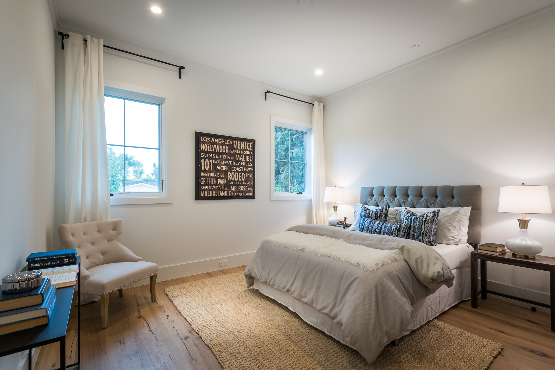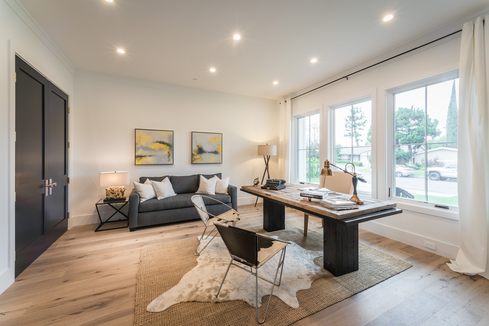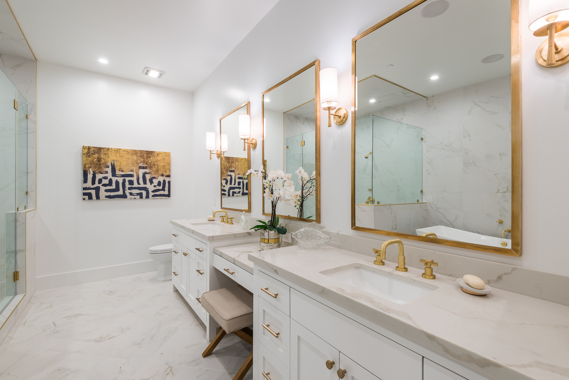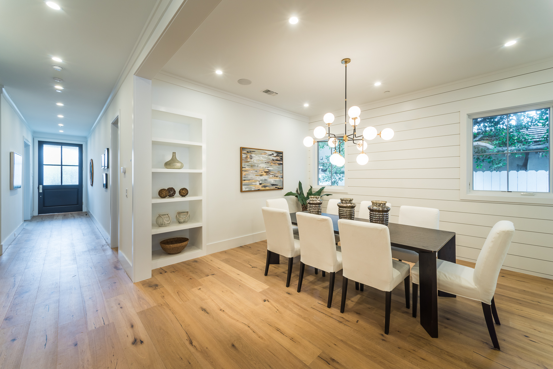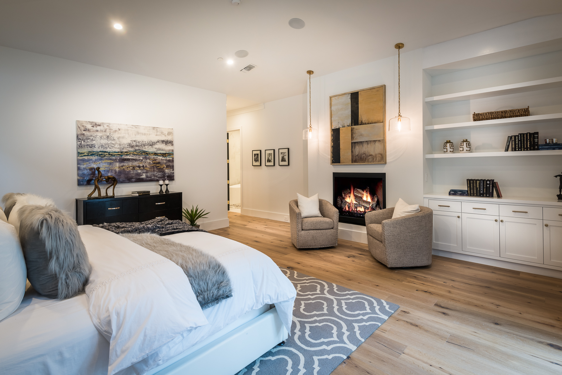 This sprawling one story new construction home is perfect for the growing family. As you enter the amazing 8ft barn door, you instantly step onto the light white oak flooring throughout that leads you to a well appointed and flowing floor plan boasting 3850 sq. ft. of artfully built single story living. The grand hallway brings together 4 bedrooms all en-suites with extensive tile work. A large gourmet chefs style kitchen with all amenities and built ins and a cozy Family room. No expense was spared, from the brass fixtures to the vaulted ceilings and brick walls. The family room is equipped with walls of glass opening up to a lush and well landscaped backyard with separate BBQ area, Custom designed Pool and Spa. The master has a spa-like bathroom w/ dual vanities, soaking tub, and oversized shower. Gorgeous looking French doors in master suite that open up to a seating/lounge area off the yard. This is a truly remarkable and well built one-story home in the heart of Encino and in a great location.