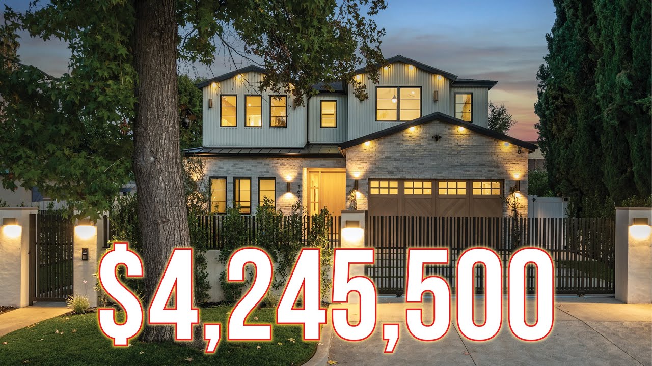 Welcome to this exquisite new construction home situated on a quiet tree-lined street just North of the Boulevard, in a highly desirable Encino neighborhood. This property boasts a sprawling open concept main house with five beds and six baths, and a one bed, one bath ADU. Designed for the most discerning of chef’s, the gourmet kitchen comes equipped with top-of-the-line Thermador appliances and a massive island with seating. Adjacent is a living room, which features a sleek fireplace surrounded by built-ins, and a formal dining room with a wine wall. An oversized sliding glass door opens to the serene backyard retreat, allowing you to enjoy indoor/outdoor living year round. Take a dip in the refreshing pool/spa or gather around the fire pit to warm up on a cool winter evening. Additionally, outside you will find an outdoor kitchenette, low maintenance artificial turf yard and privacy hedges that surround the property. Upstairs there are four ensuite bedrooms, each with its own walk-in closet, and a laundry room. The luxe primary suite is your personal oasis, complete with a cozy fireplace, vaulted ceilings, a custom walk-in closet and sumptuous bathroom that includes a soaking tub, double vanity and separate makeup vanity. The spacious ADU consists of a living room, full kitchen, one bed and one bath. Utilize the space as an office, gym, separate living space for family/guests or rent it out for additional income, the possibilities are endless. Further amenities include a home theater, main level ensuite bedroom, high ceilings throughout, smart home features, a security system, mudroom, two car garage and gated driveway. This prime location offers easy access to the Valley/Westside and is walking distance to Ventura Boulevard.