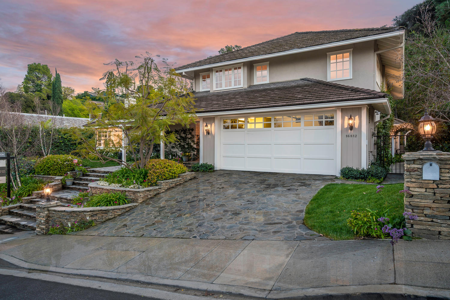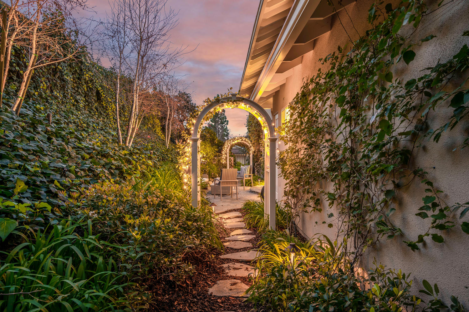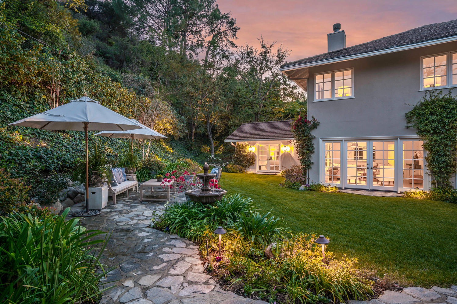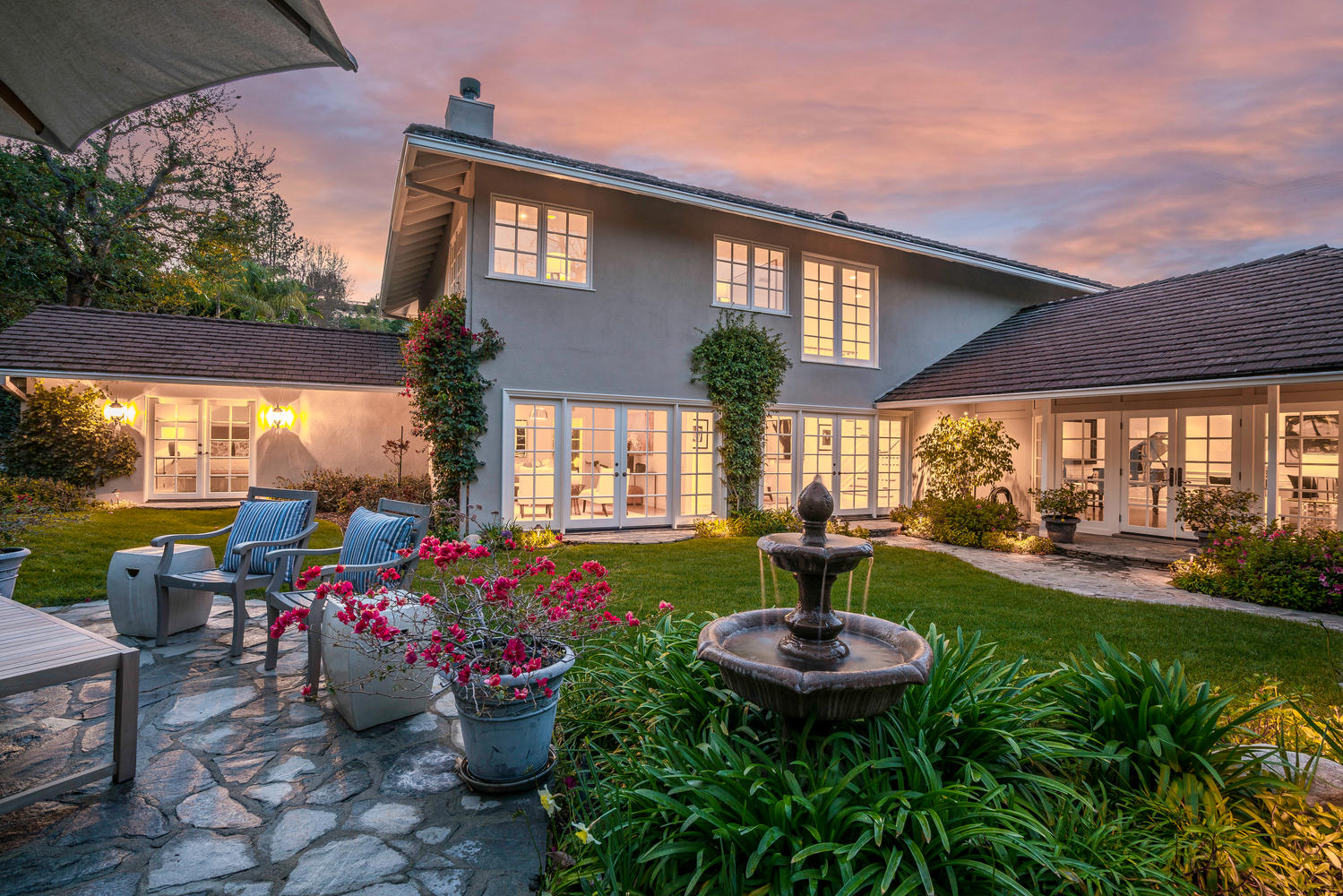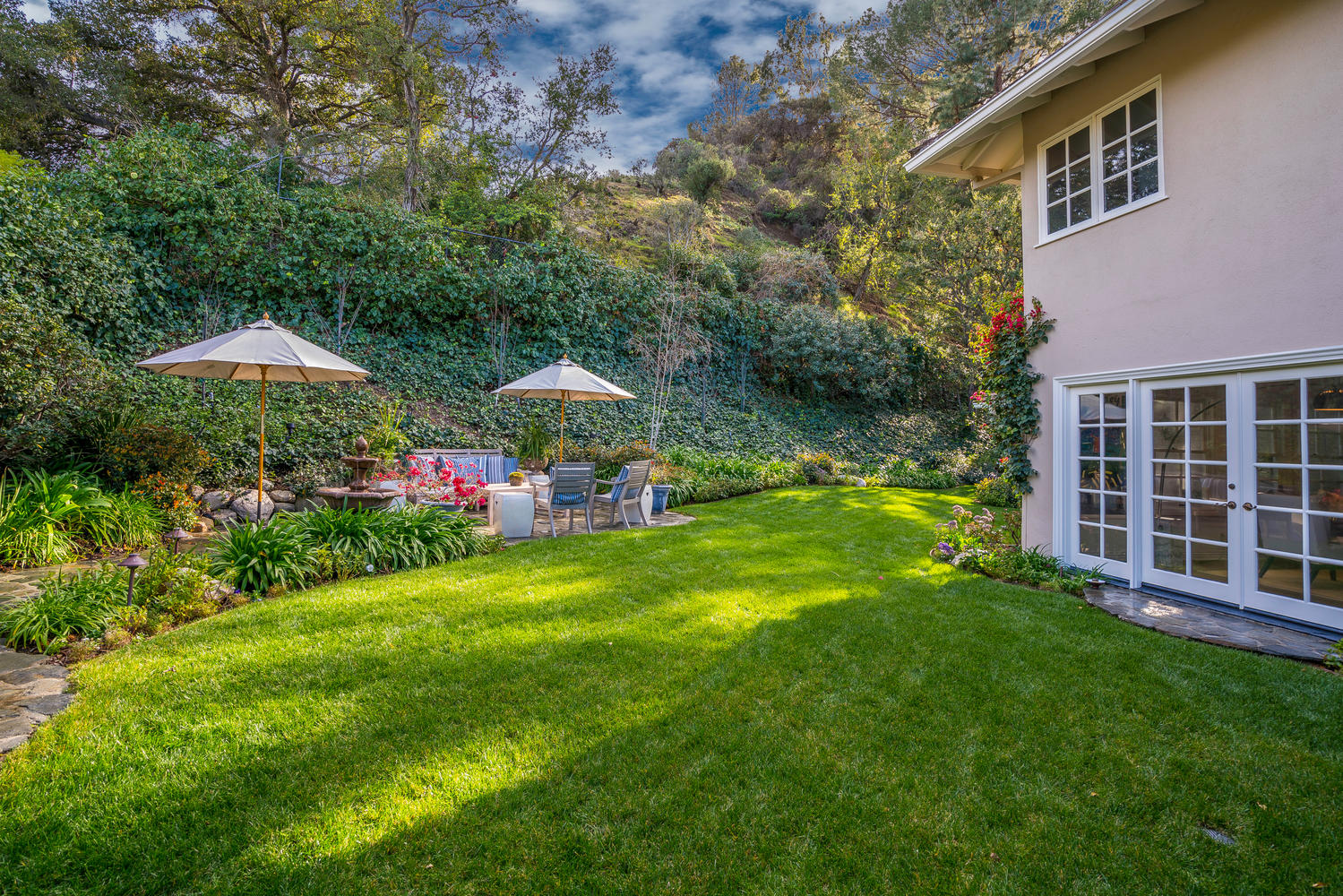 Located in the beautiful hills of Encino, in Lanai Road School District, this charming two-story traditional home is close to Mulholland Drive and extremely 'Westside Convenient'. The home welcomes you with a formal entry of lush greenery, colorful flowers, and beautiful flagstone. Inside, you're greeted by high ceilings, abundant windows, and french doors that bathe the home in natural sunlight. Every room in the home offers beautiful views of the impeccably landscaped private and tranquil gardens and bubbling ornamental fountains that surround the property. Downstairs you'll enjoy: the Formal Living room featuring coffered ceilings, luxurious marble fireplace, and direct access to the yard through French doors-- its the perfect space for entertaining!; a Bright Family room; Kitchen; Formal Dining room; Laundry Room; and a Downstairs Master Suite with its own bathroom and garden access. Upstairs provides three Spacious Bedrooms, plus a highly functional Office with built-in storage and desks. The upstairs Master Suite features high, coved ceilings, gorgeous fireplace, spacious walk-in closet, makeup area, luxurious master bath with dual sinks, soaking tub, and over-sized shower. But young kids will be most excited about the Secret "Kids-Only-Space" in the upstairs bedroom - it makes a perfect added playroom for tea-parties or hide-outs! This location offers you the ideal 'Reverse-Commute' down to Ventura Blvd and up to Mulholland. This is the home you've been searching for!