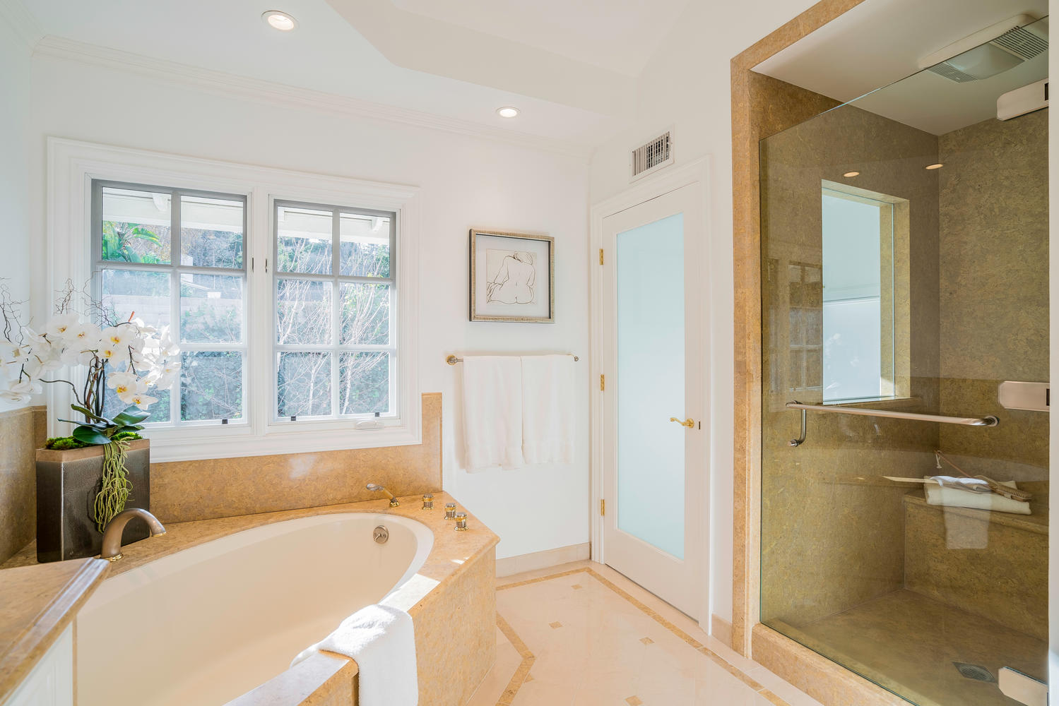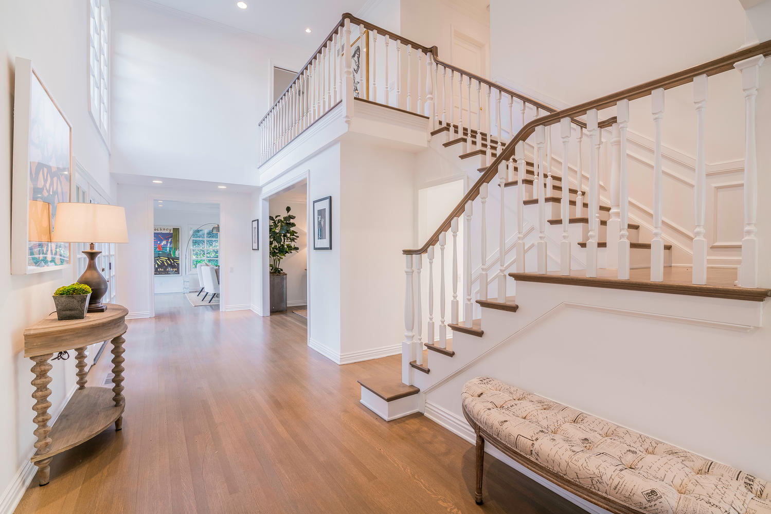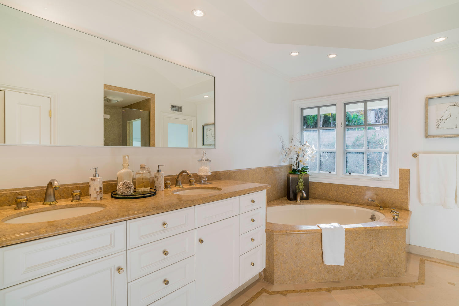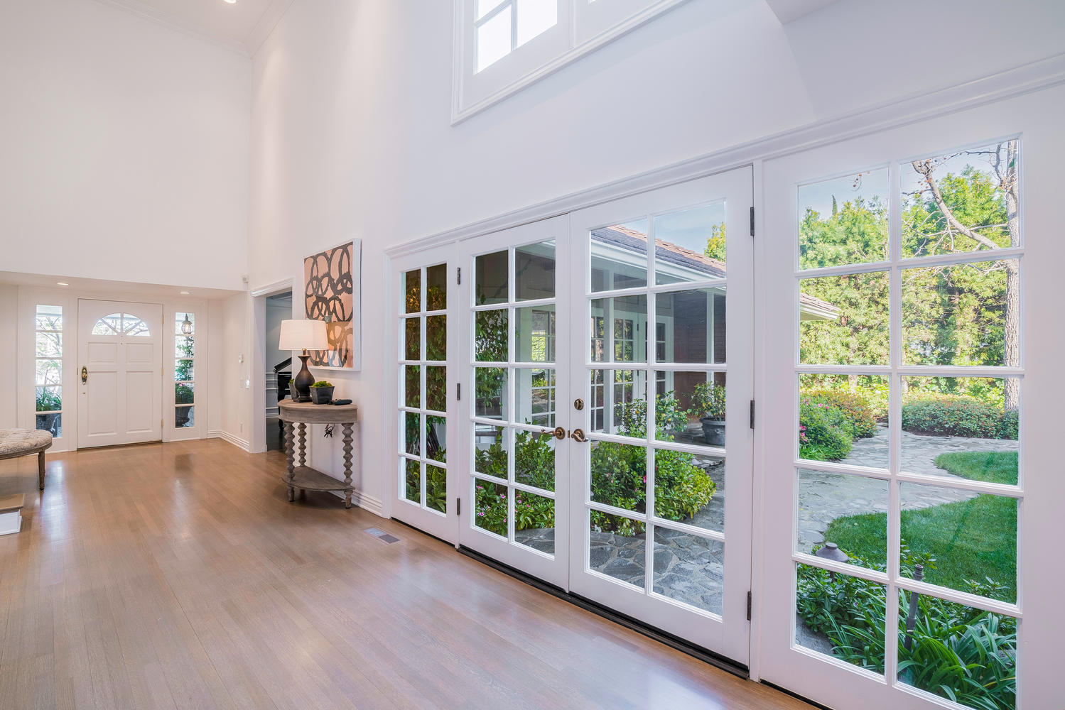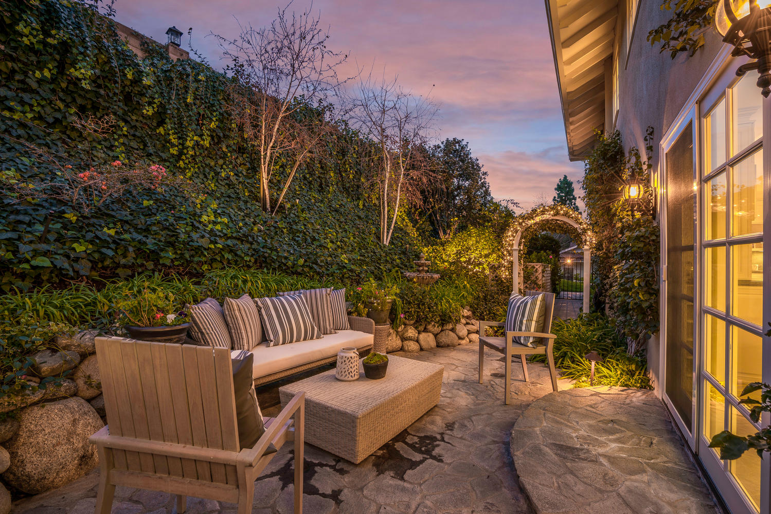 Located in the beautiful hills of Encino, in Lanai Road School District, this charming two-story traditional home is close to Mulholland Drive and extremely 'Westside Convenient'. The home welcomes you with a formal entry of lush greenery, colorful flowers, and beautiful flagstone. Inside, you're greeted by high ceilings, abundant windows, and french doors that bathe the home in natural sunlight. Every room in the home offers beautiful views of the impeccably landscaped private and tranquil gardens and bubbling ornamental fountains that surround the property. Downstairs you'll enjoy: the Formal Living room featuring coffered ceilings, luxurious marble fireplace, and direct access to the yard through French doors-- its the perfect space for entertaining!; a Bright Family room; Kitchen; Formal Dining room; Laundry Room; and a Downstairs Master Suite with its own bathroom and garden access. Upstairs provides three Spacious Bedrooms, plus a highly functional Office with built-in storage and desks. The upstairs Master Suite features high, coved ceilings, gorgeous fireplace, spacious walk-in closet, makeup area, luxurious master bath with dual sinks, soaking tub, and over-sized shower. But young kids will be most excited about the Secret "Kids-Only-Space" in the upstairs bedroom - it makes a perfect added playroom for tea-parties or hide-outs! This location offers you the ideal 'Reverse-Commute' down to Ventura Blvd and up to Mulholland. This is the home you've been searching for!