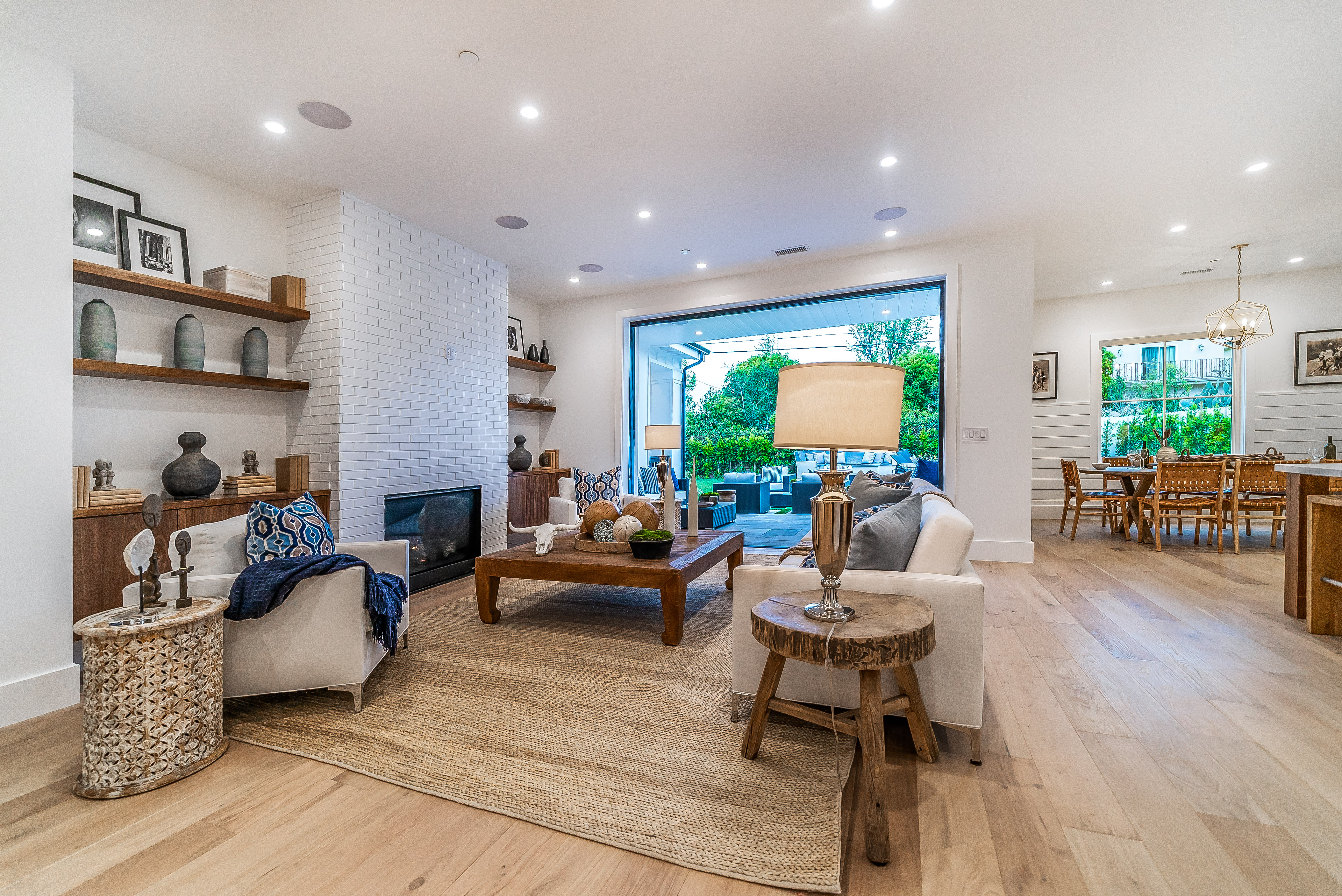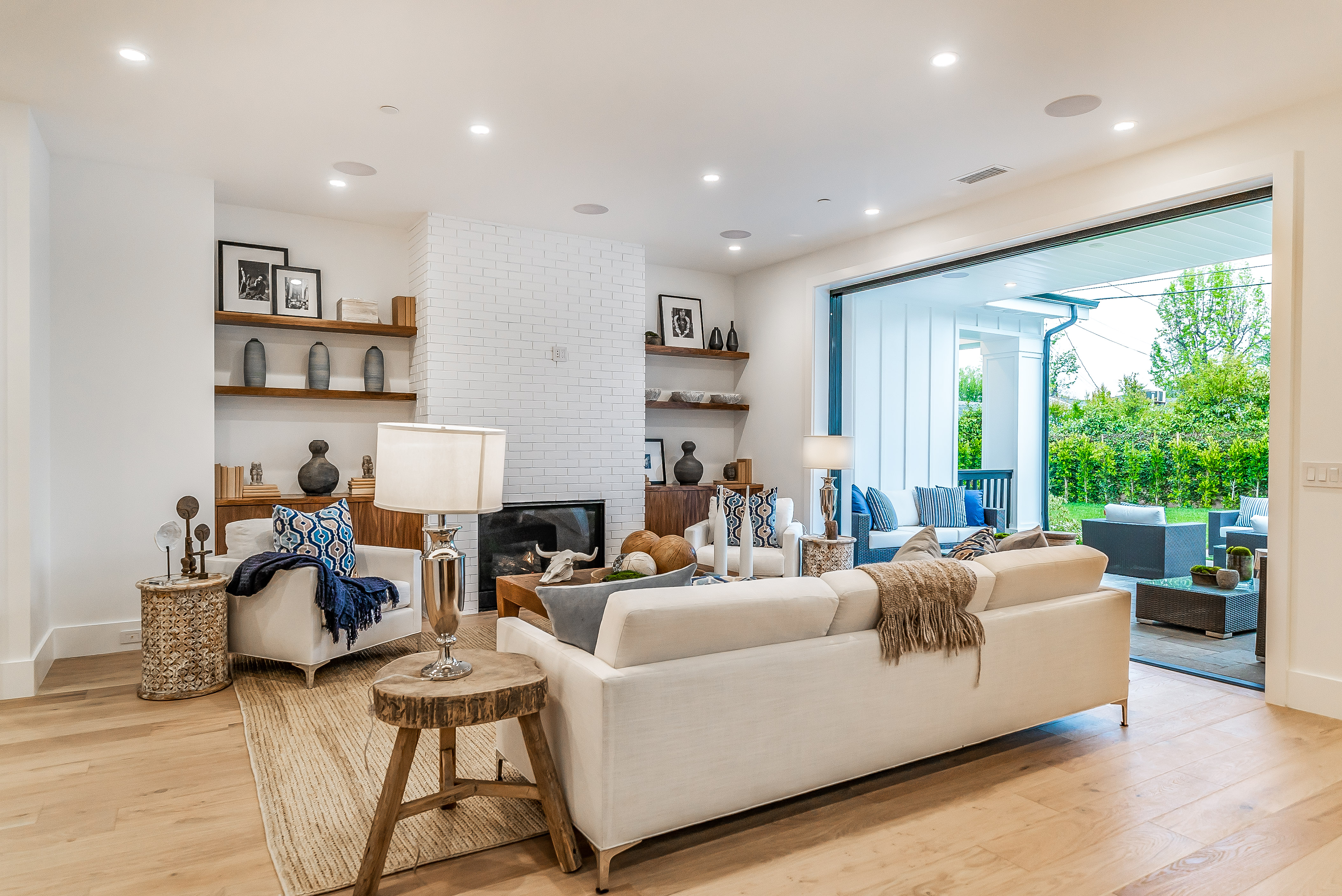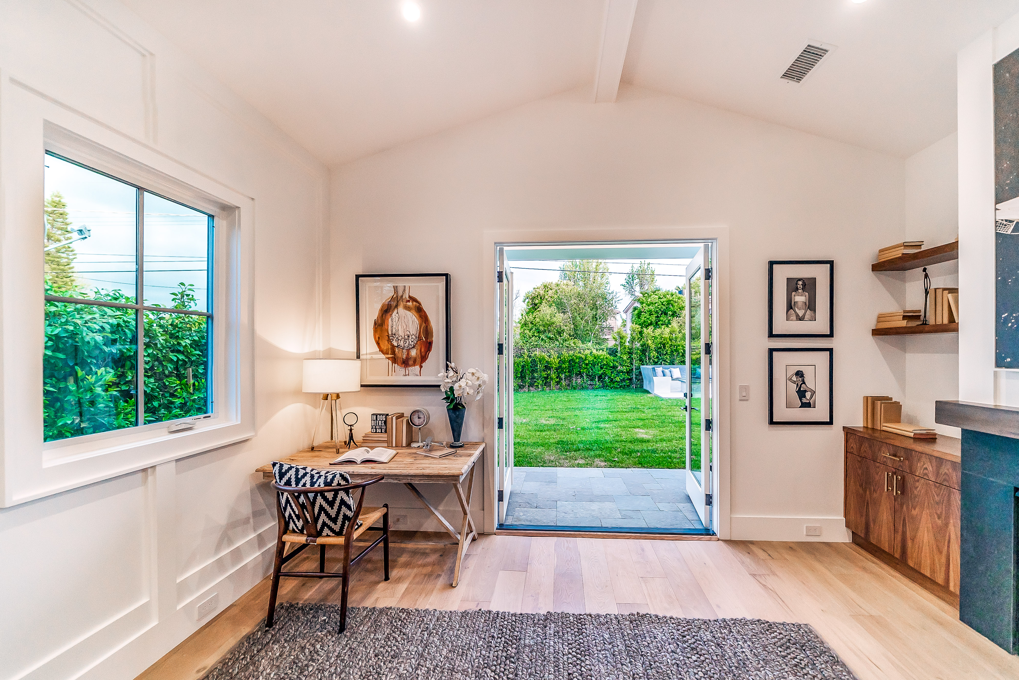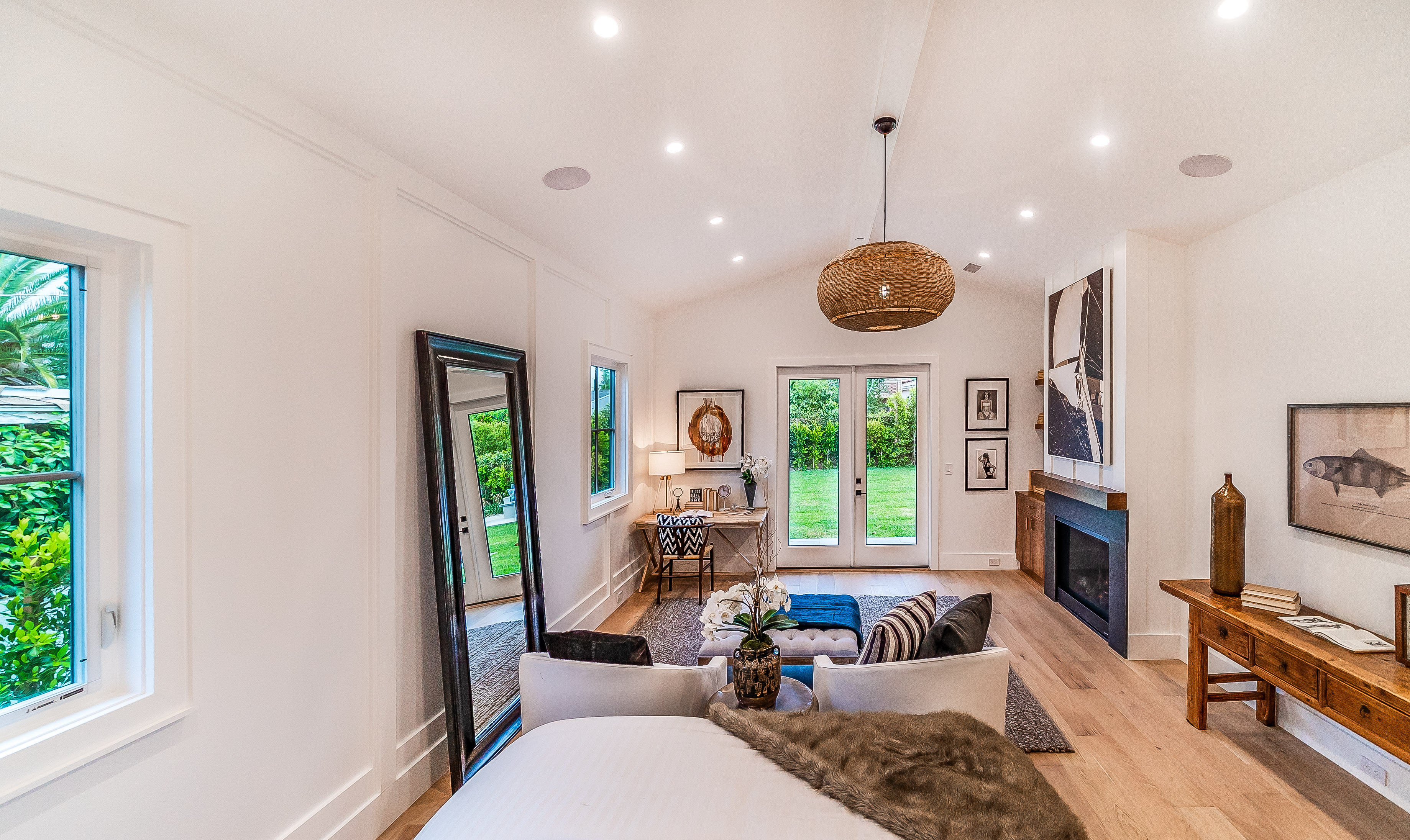 Situated in a quaint family neighborhood in Encino, this striking new custom designed home perfectly balances modern sophistication and timeless classic style. Pass lush landscaped grounds as you walk through the front doors and are greeted by soaring ceilings, white oak flooring, a bright open floor plan that flows seamlessly across all main living areas. A grand formal living room for entertaining with large windows that bring in natural light. With approx. 3,600 square-feet of designer living space boasting 4 ensuite bedrooms with built-in closets, 4.5 bathrooms all laid out on a 9,000 square-foot lot! Amenities include a custom glass-enclosed wine cellar, dining area with paneled wall+ceiling details, industrial style light fixtures and beautiful flooring. The living room hosts a sleek white brick fireplace accompanied by custom built-ins & tall glass sliding doors. The chef’s kitchen comes complete with high-end appliances, stone countertops & center island with farmhouse sink, separate breakfast area, & a butler’s pantry. The master bedroom is one to boast about, with a custom walk-in closet, high pitched ceilings and elegant master bathroom. Perfect single story family home!