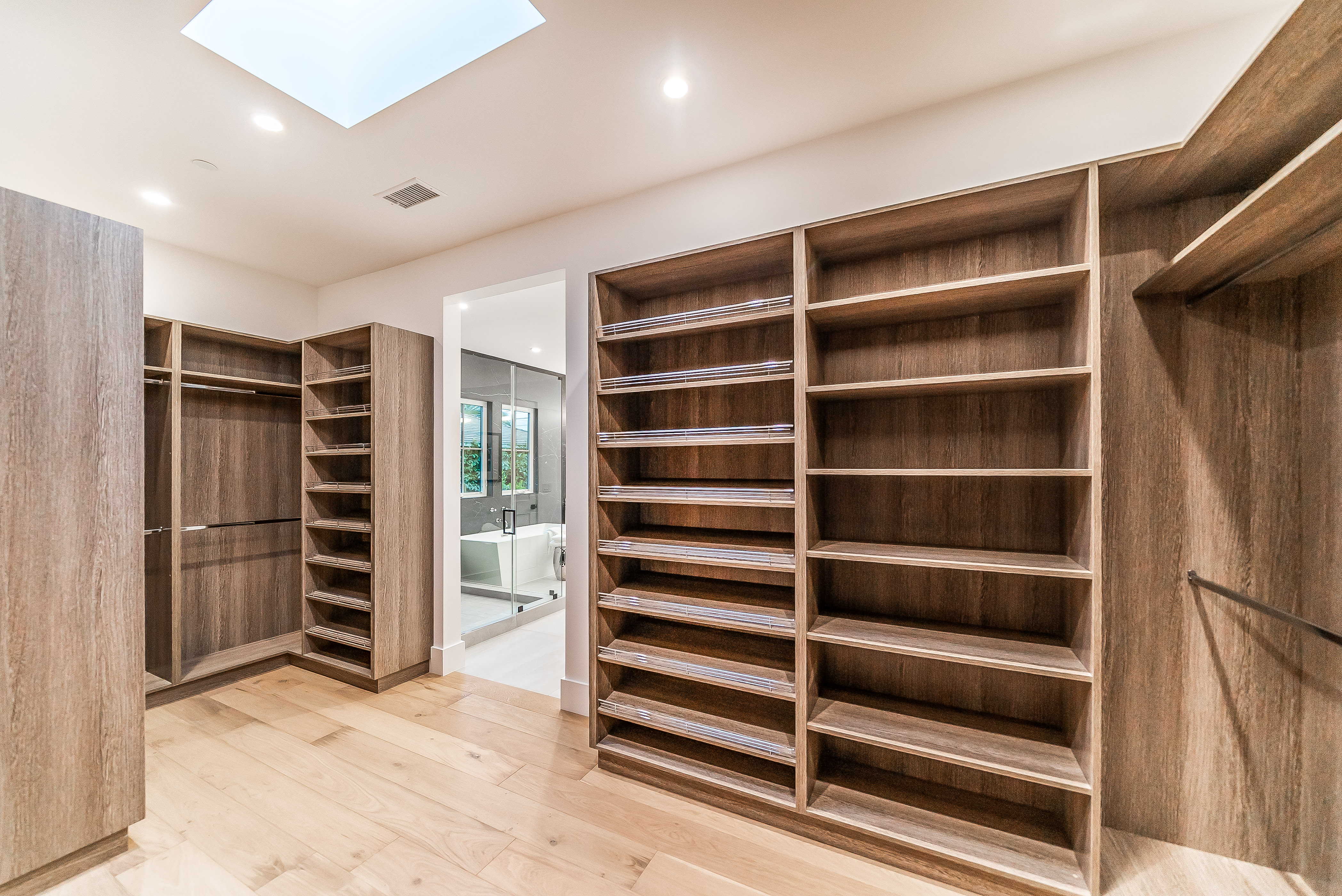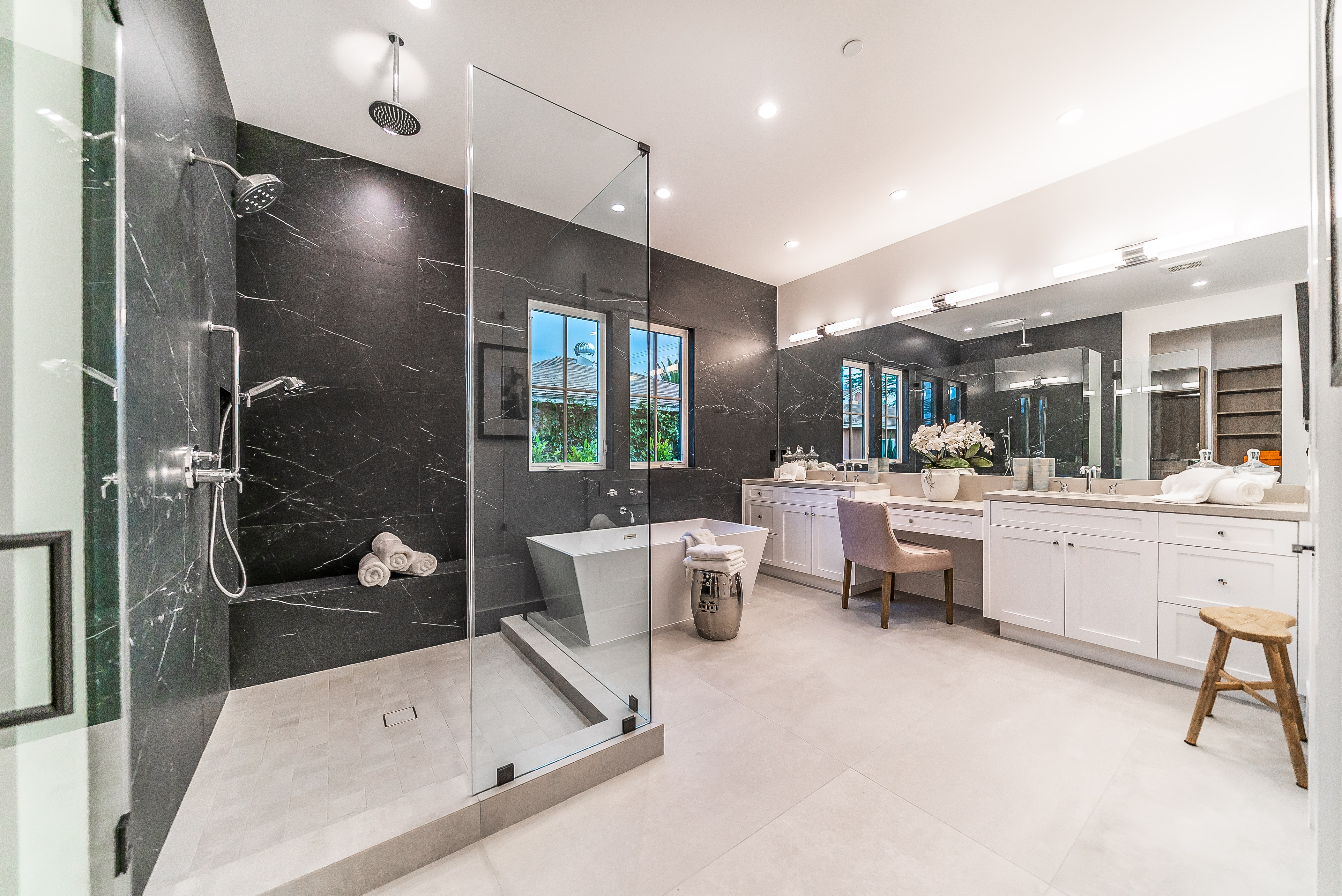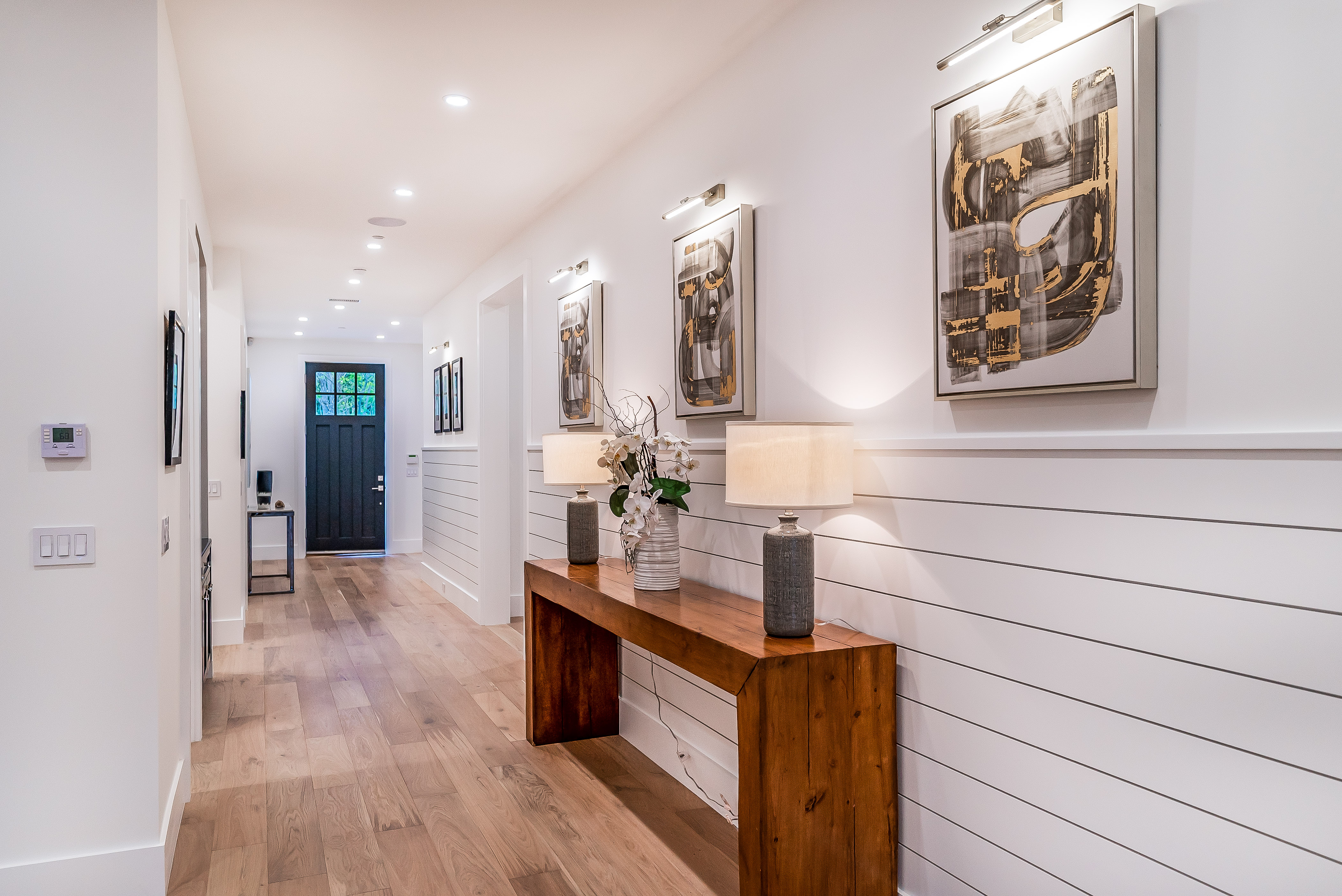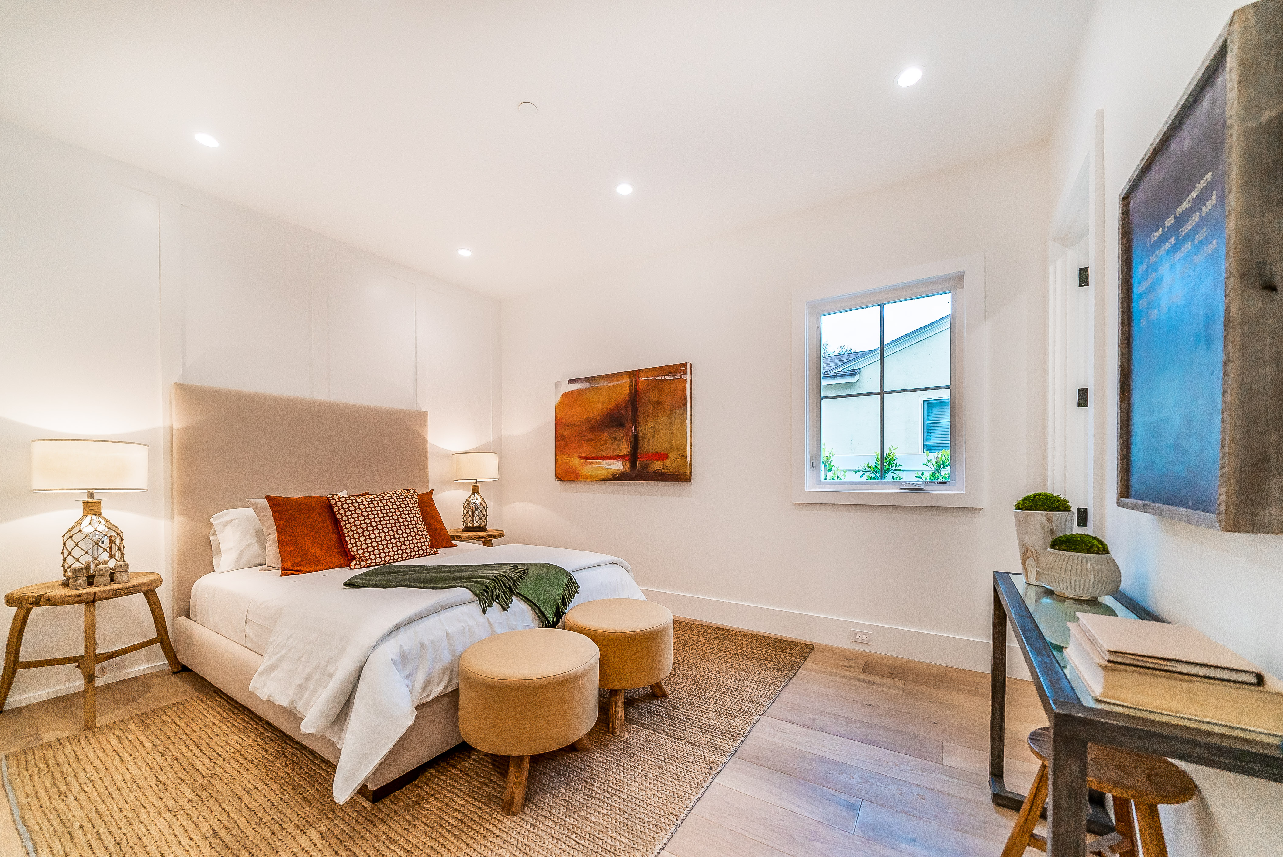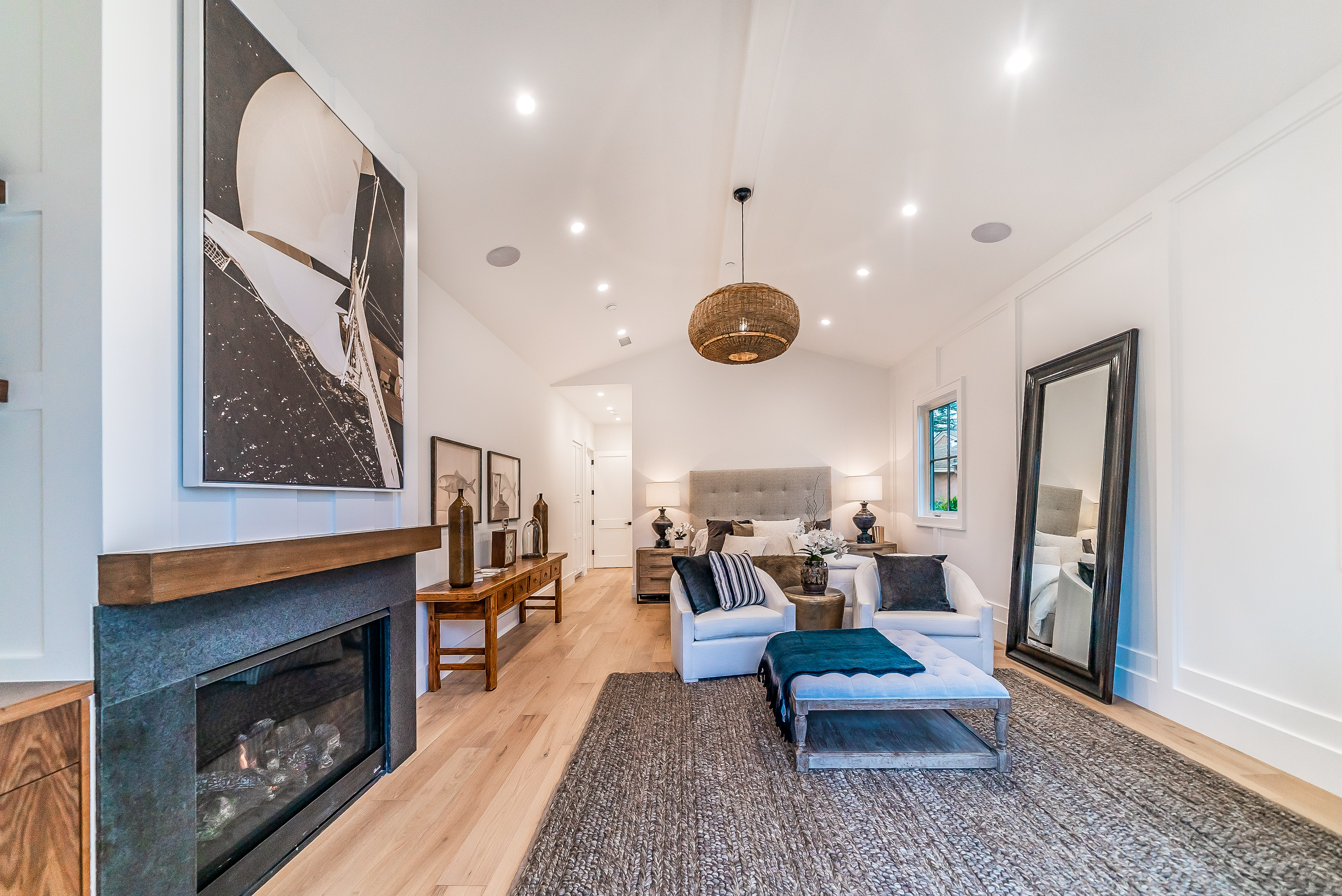 Situated in a quaint family neighborhood in Encino, this striking new custom designed home perfectly balances modern sophistication and timeless classic style. Pass lush landscaped grounds as you walk through the front doors and are greeted by soaring ceilings, white oak flooring, a bright open floor plan that flows seamlessly across all main living areas. A grand formal living room for entertaining with large windows that bring in natural light. With approx. 3,600 square-feet of designer living space boasting 4 ensuite bedrooms with built-in closets, 4.5 bathrooms all laid out on a 9,000 square-foot lot! Amenities include a custom glass-enclosed wine cellar, dining area with paneled wall+ceiling details, industrial style light fixtures and beautiful flooring. The living room hosts a sleek white brick fireplace accompanied by custom built-ins & tall glass sliding doors. The chef’s kitchen comes complete with high-end appliances, stone countertops & center island with farmhouse sink, separate breakfast area, & a butler’s pantry. The master bedroom is one to boast about, with a custom walk-in closet, high pitched ceilings and elegant master bathroom. Perfect single story family home!