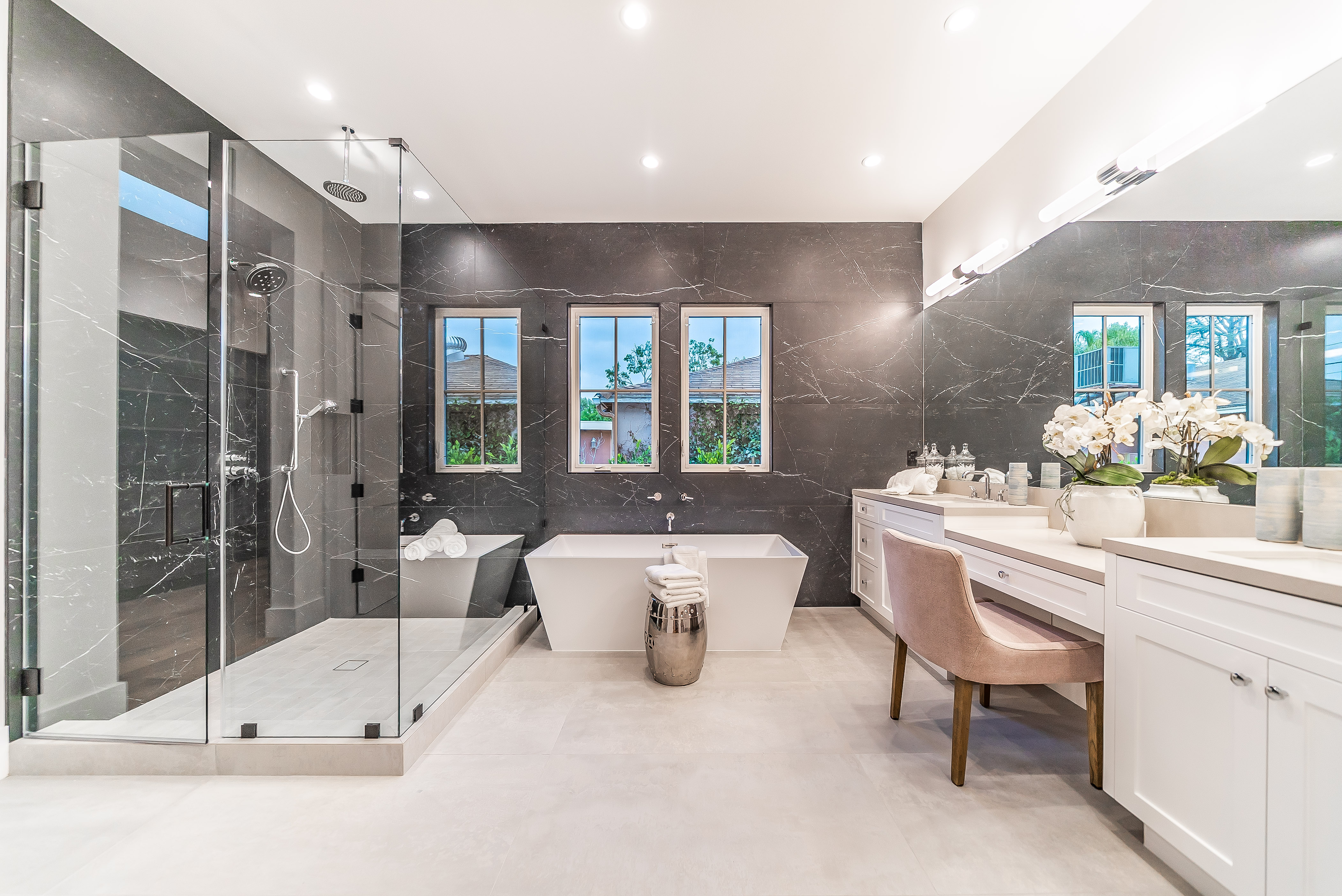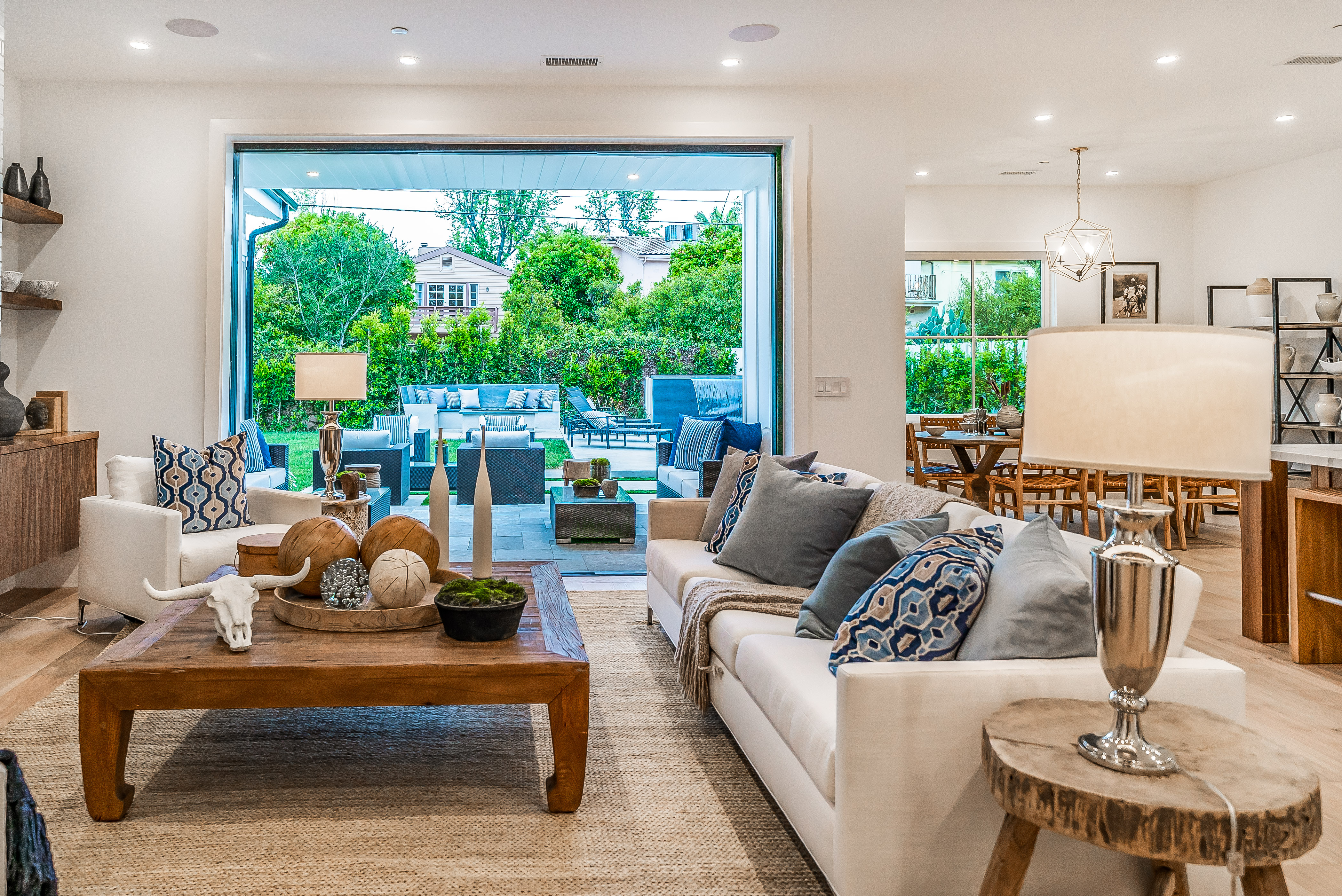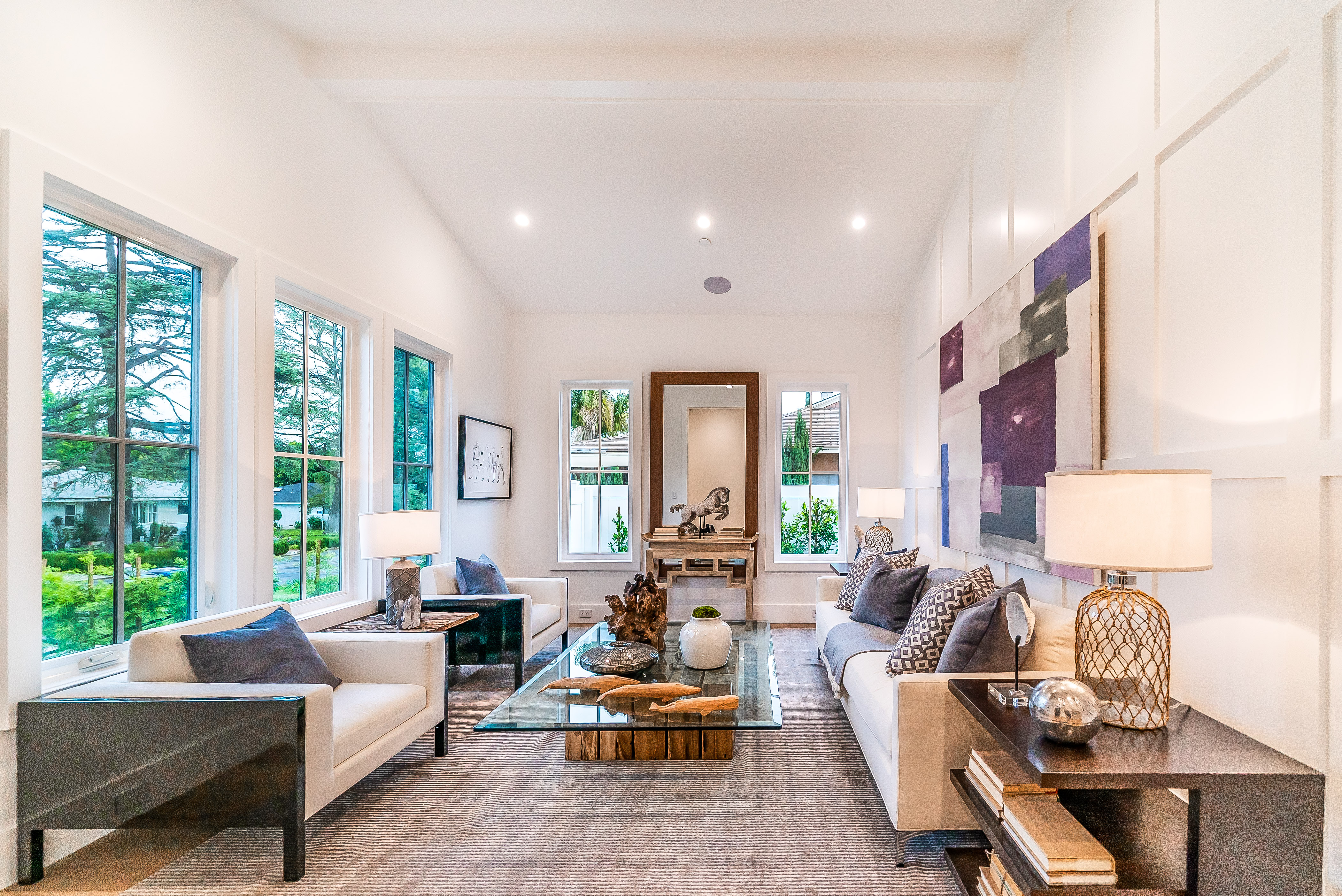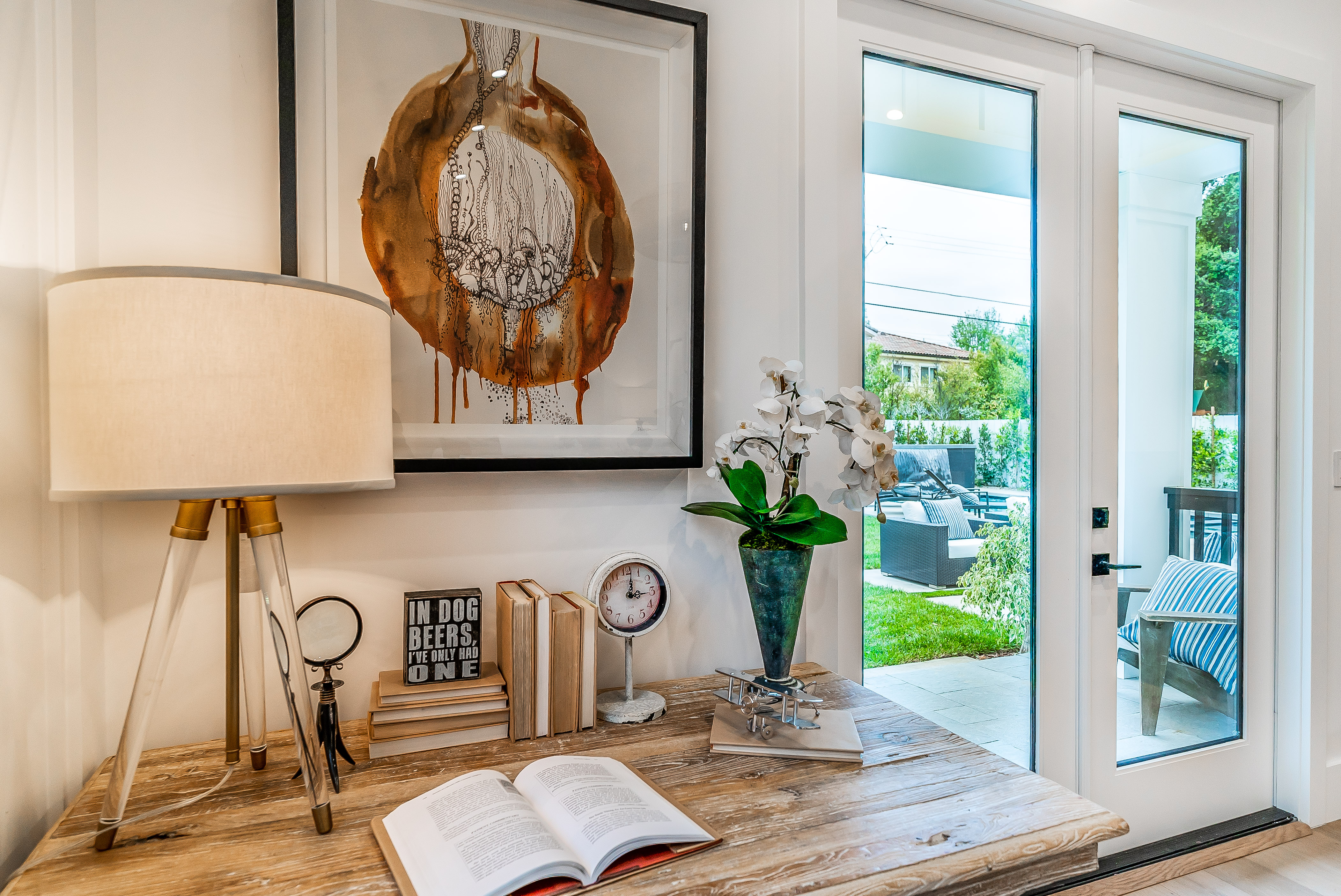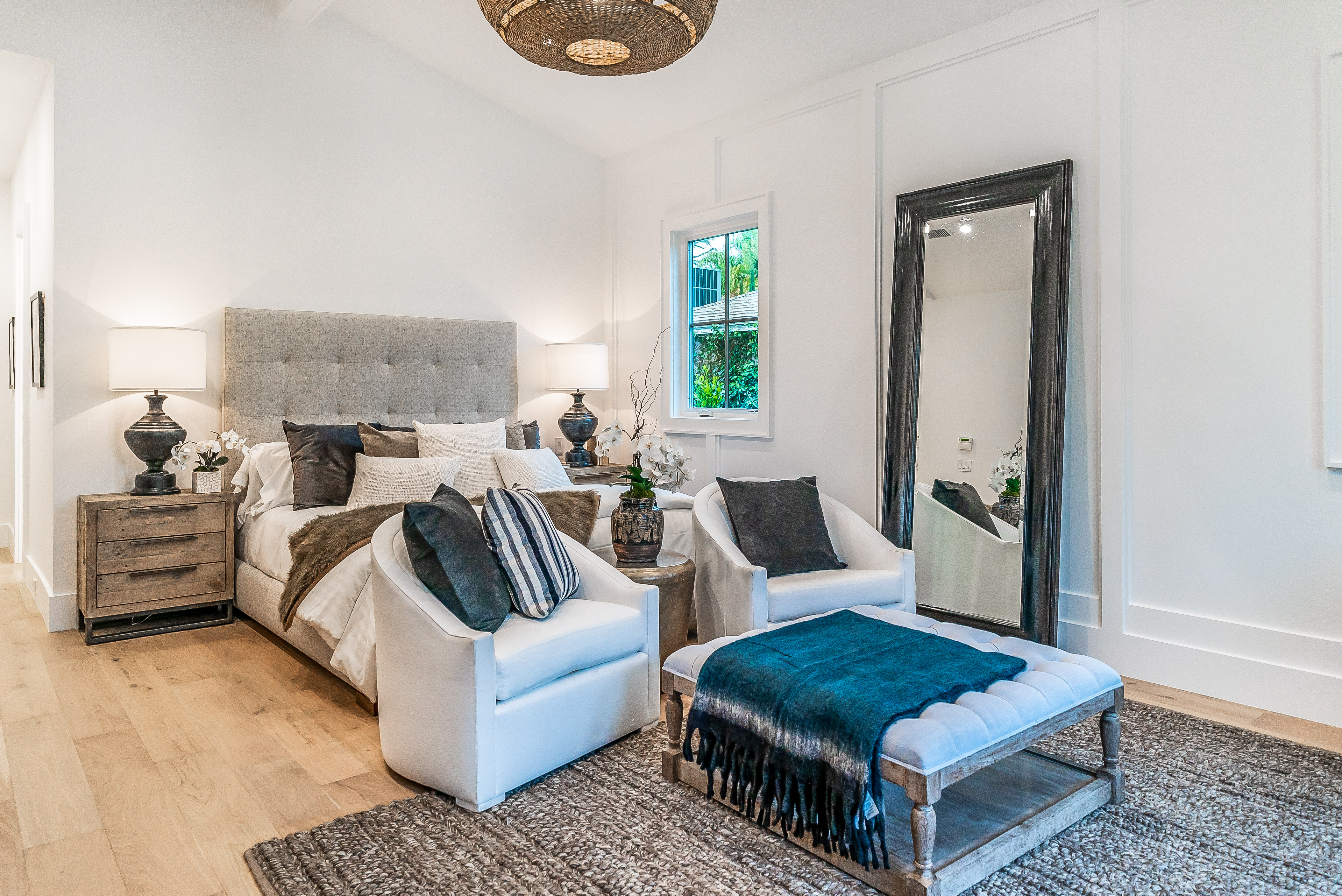 Situated in a quaint family neighborhood in Encino, this striking new custom designed home perfectly balances modern sophistication and timeless classic style. Pass lush landscaped grounds as you walk through the front doors and are greeted by soaring ceilings, white oak flooring, a bright open floor plan that flows seamlessly across all main living areas. A grand formal living room for entertaining with large windows that bring in natural light. With approx. 3,600 square-feet of designer living space boasting 4 ensuite bedrooms with built-in closets, 4.5 bathrooms all laid out on a 9,000 square-foot lot! Amenities include a custom glass-enclosed wine cellar, dining area with paneled wall+ceiling details, industrial style light fixtures and beautiful flooring. The living room hosts a sleek white brick fireplace accompanied by custom built-ins & tall glass sliding doors. The chef’s kitchen comes complete with high-end appliances, stone countertops & center island with farmhouse sink, separate breakfast area, & a butler’s pantry. The master bedroom is one to boast about, with a custom walk-in closet, high pitched ceilings and elegant master bathroom. Perfect single story family home!