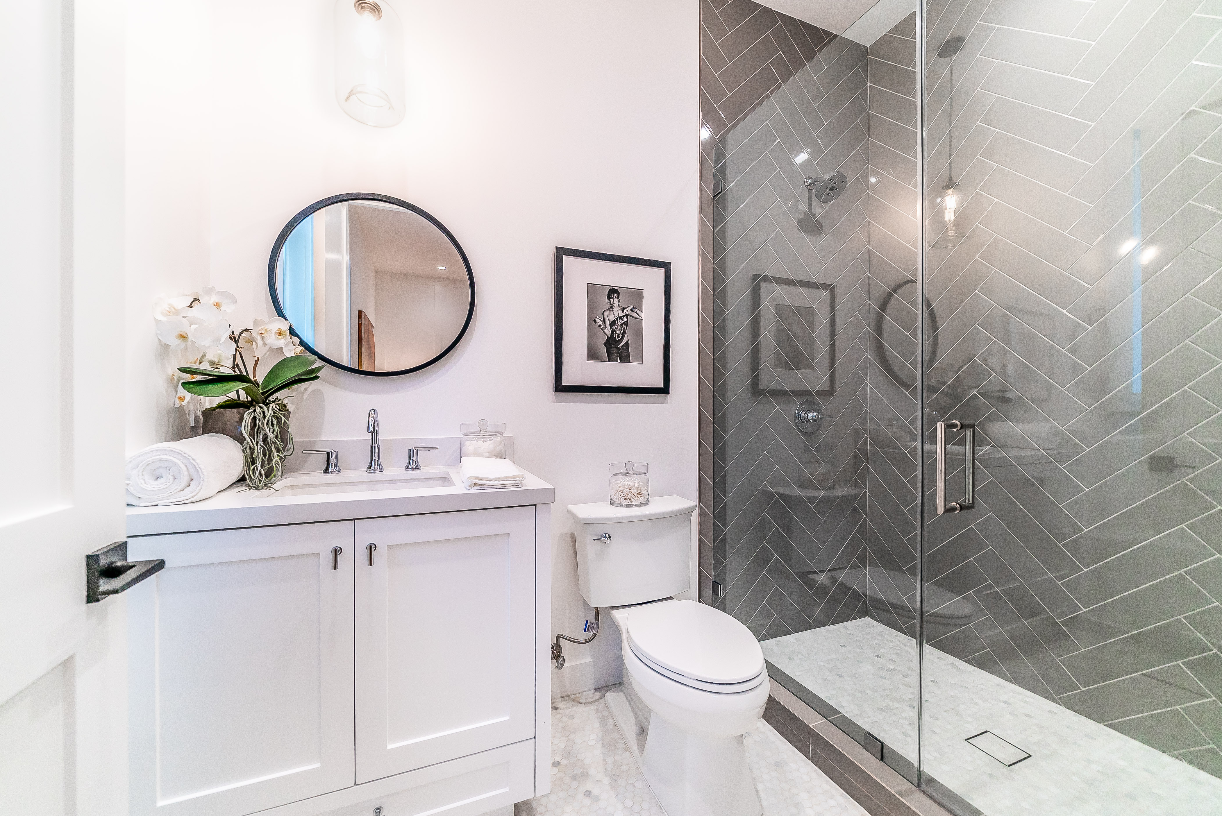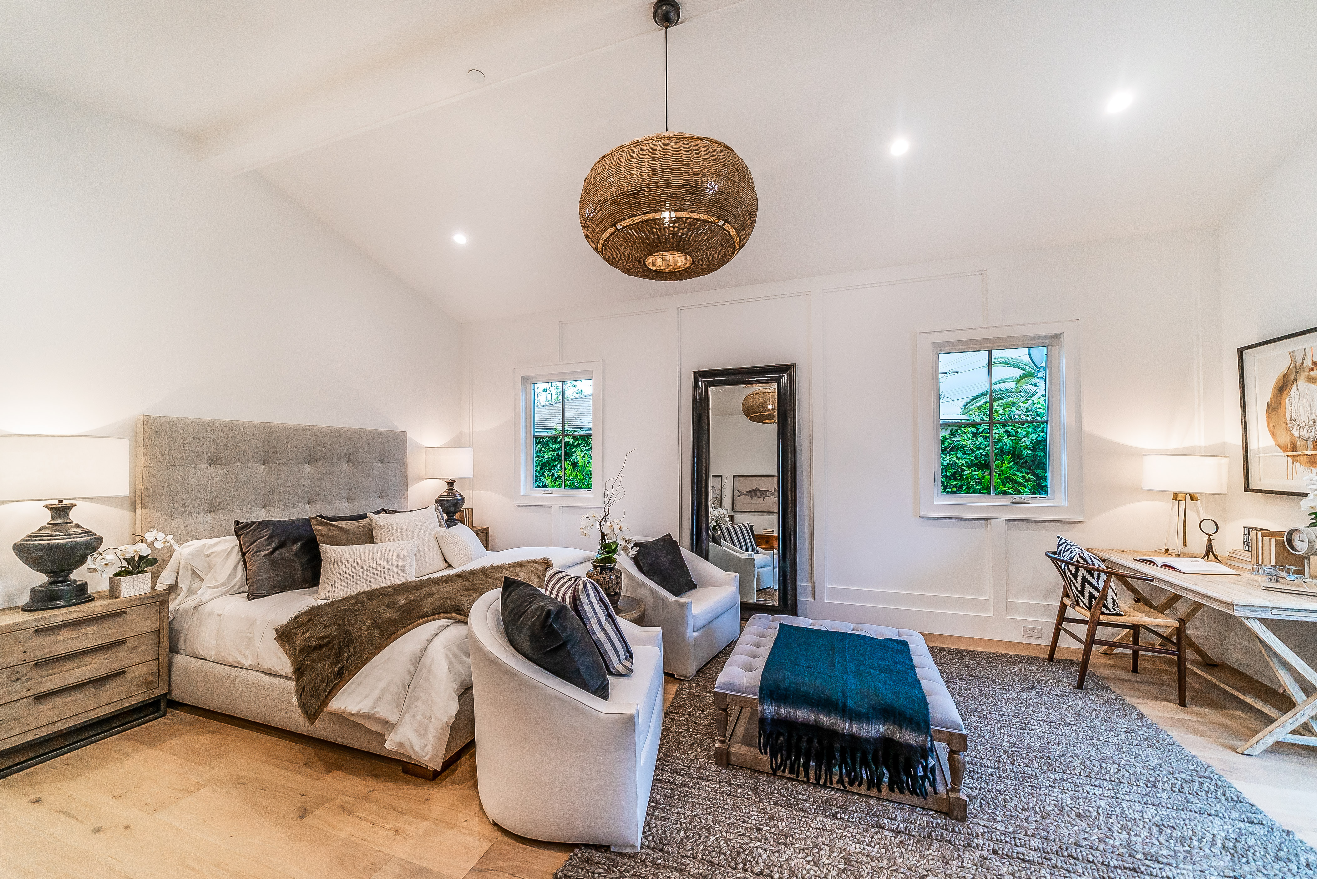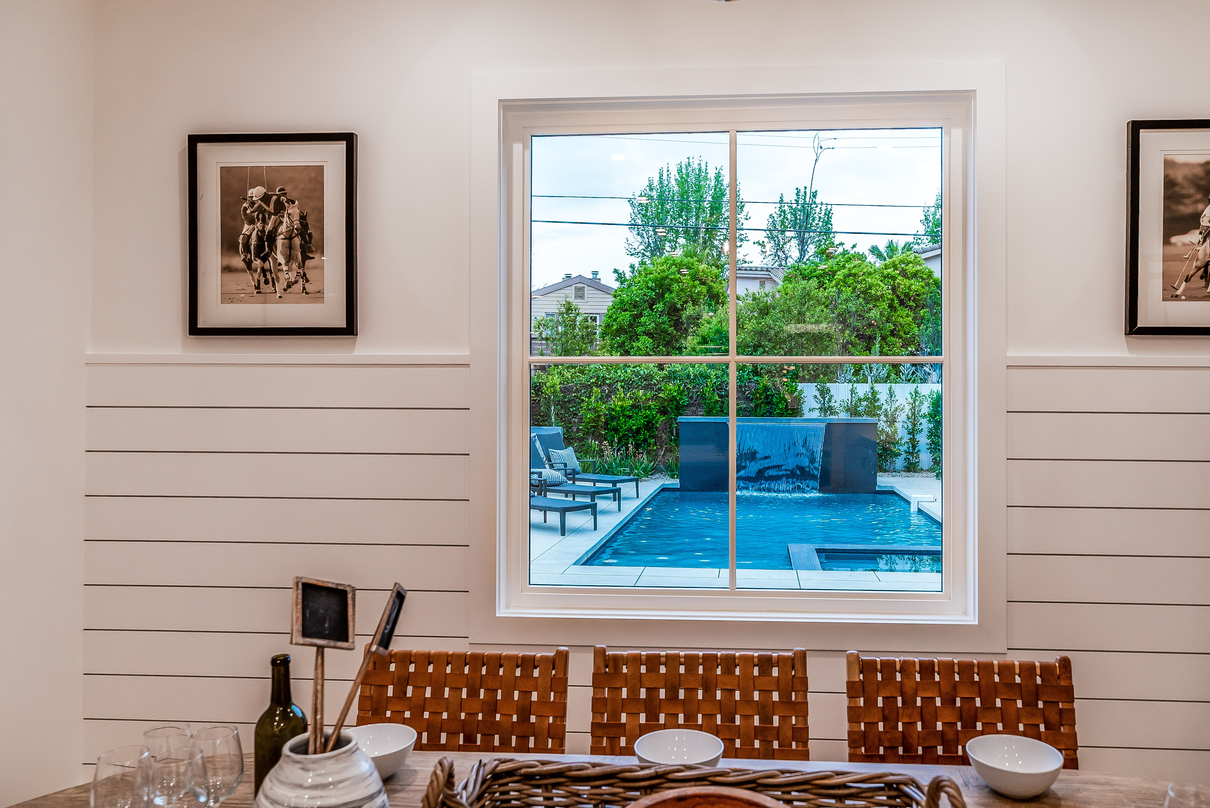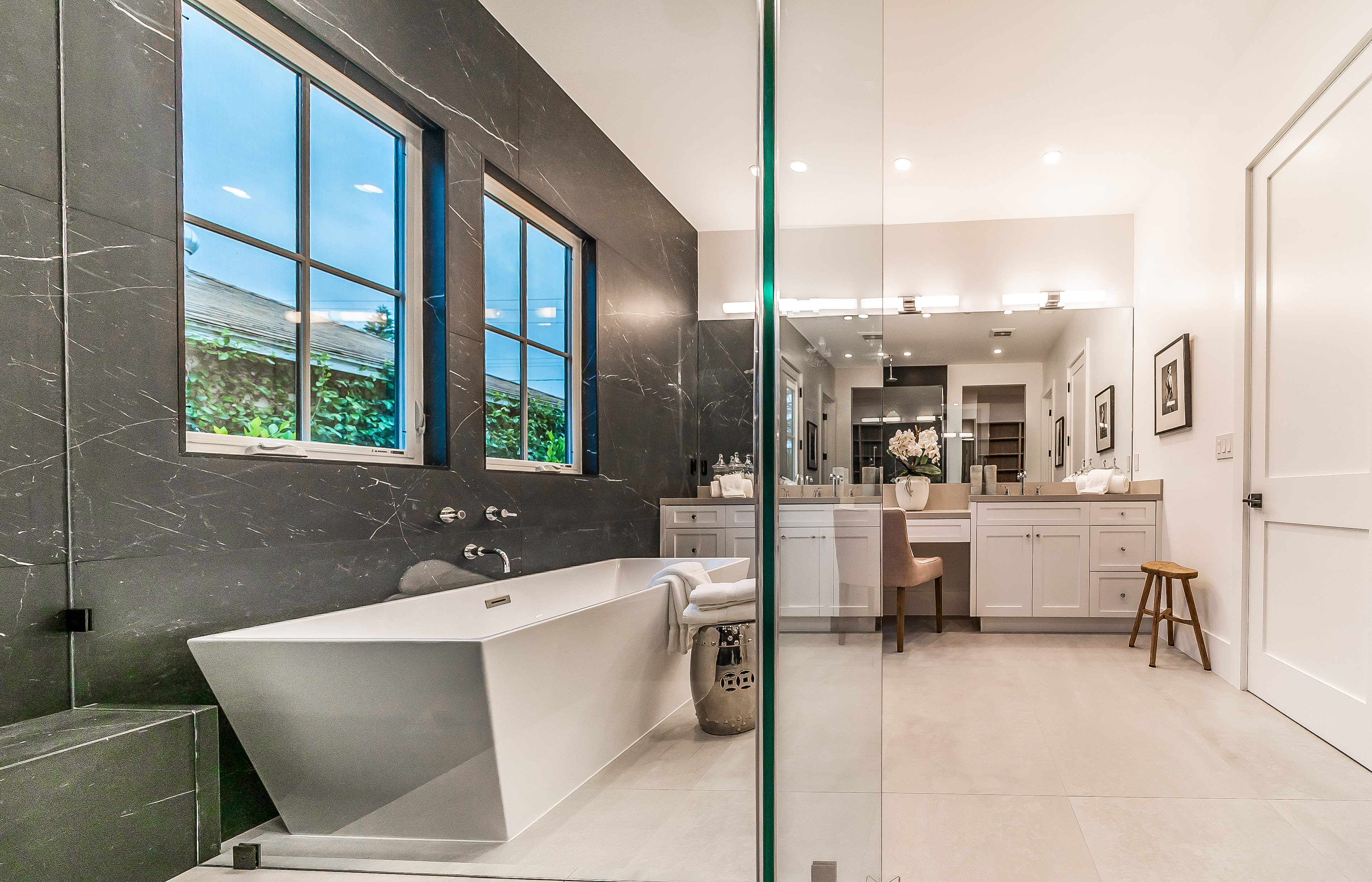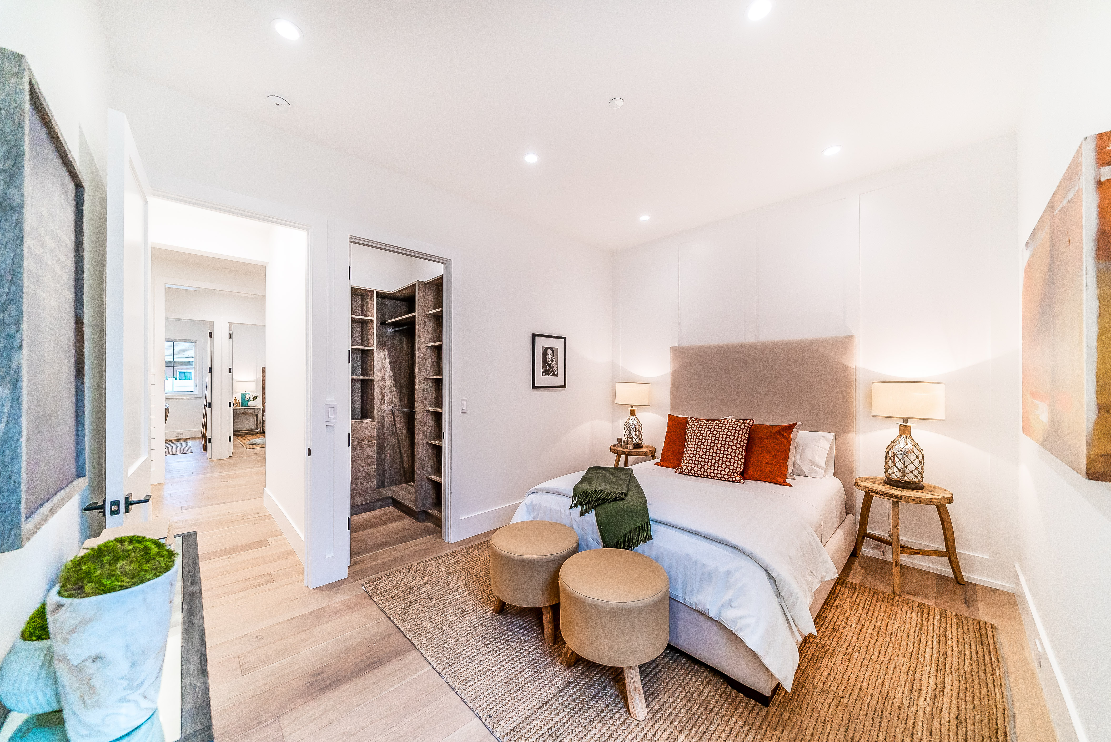 Situated in a quaint family neighborhood in Encino, this striking new custom designed home perfectly balances modern sophistication and timeless classic style. Pass lush landscaped grounds as you walk through the front doors and are greeted by soaring ceilings, white oak flooring, a bright open floor plan that flows seamlessly across all main living areas. A grand formal living room for entertaining with large windows that bring in natural light. With approx. 3,600 square-feet of designer living space boasting 4 ensuite bedrooms with built-in closets, 4.5 bathrooms all laid out on a 9,000 square-foot lot! Amenities include a custom glass-enclosed wine cellar, dining area with paneled wall+ceiling details, industrial style light fixtures and beautiful flooring. The living room hosts a sleek white brick fireplace accompanied by custom built-ins & tall glass sliding doors. The chef’s kitchen comes complete with high-end appliances, stone countertops & center island with farmhouse sink, separate breakfast area, & a butler’s pantry. The master bedroom is one to boast about, with a custom walk-in closet, high pitched ceilings and elegant master bathroom. Perfect single story family home!