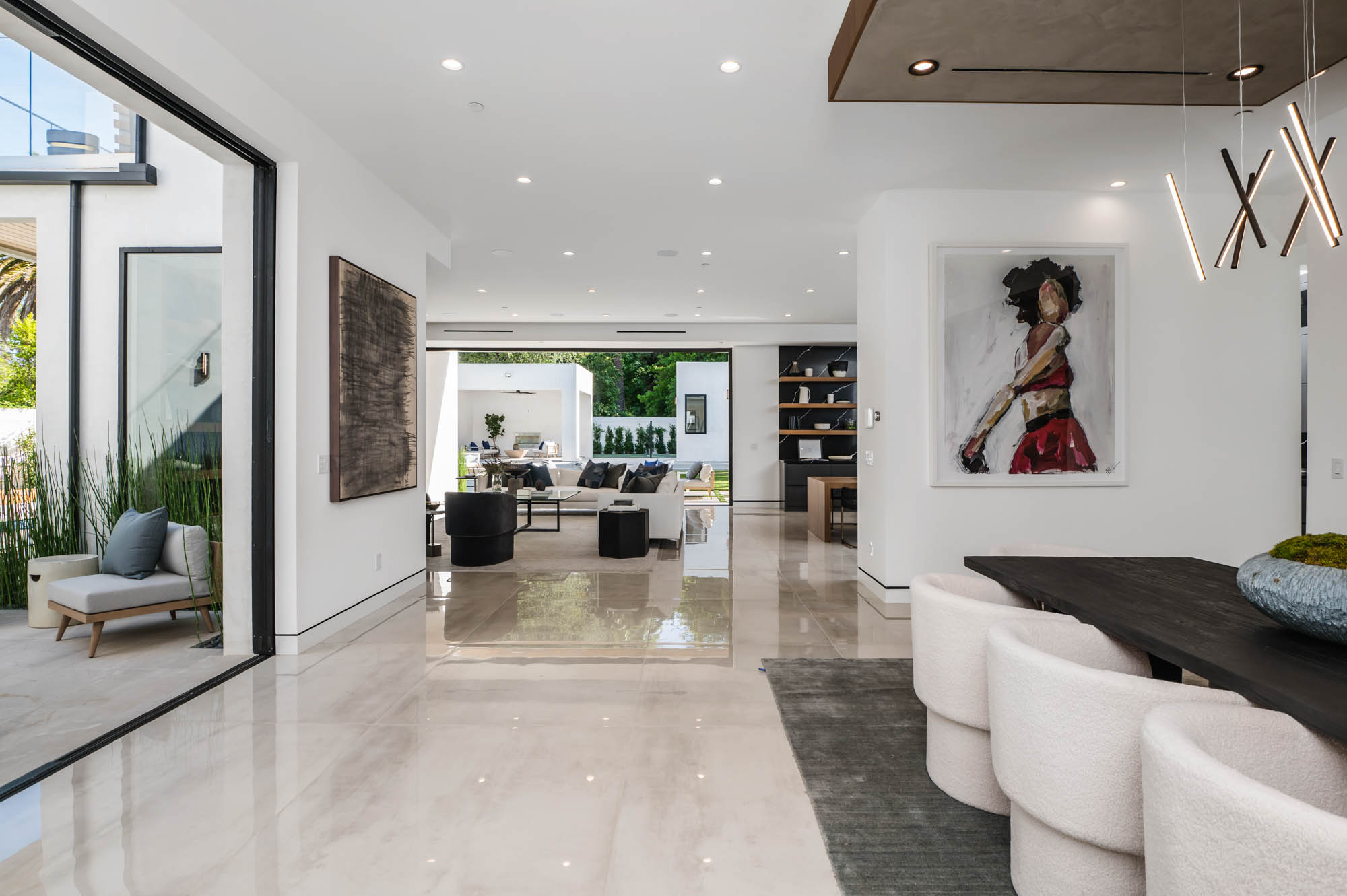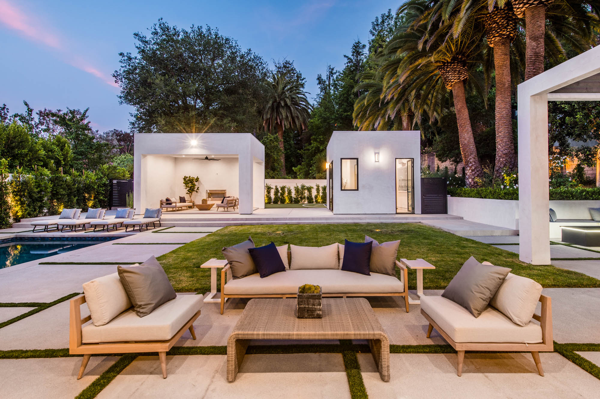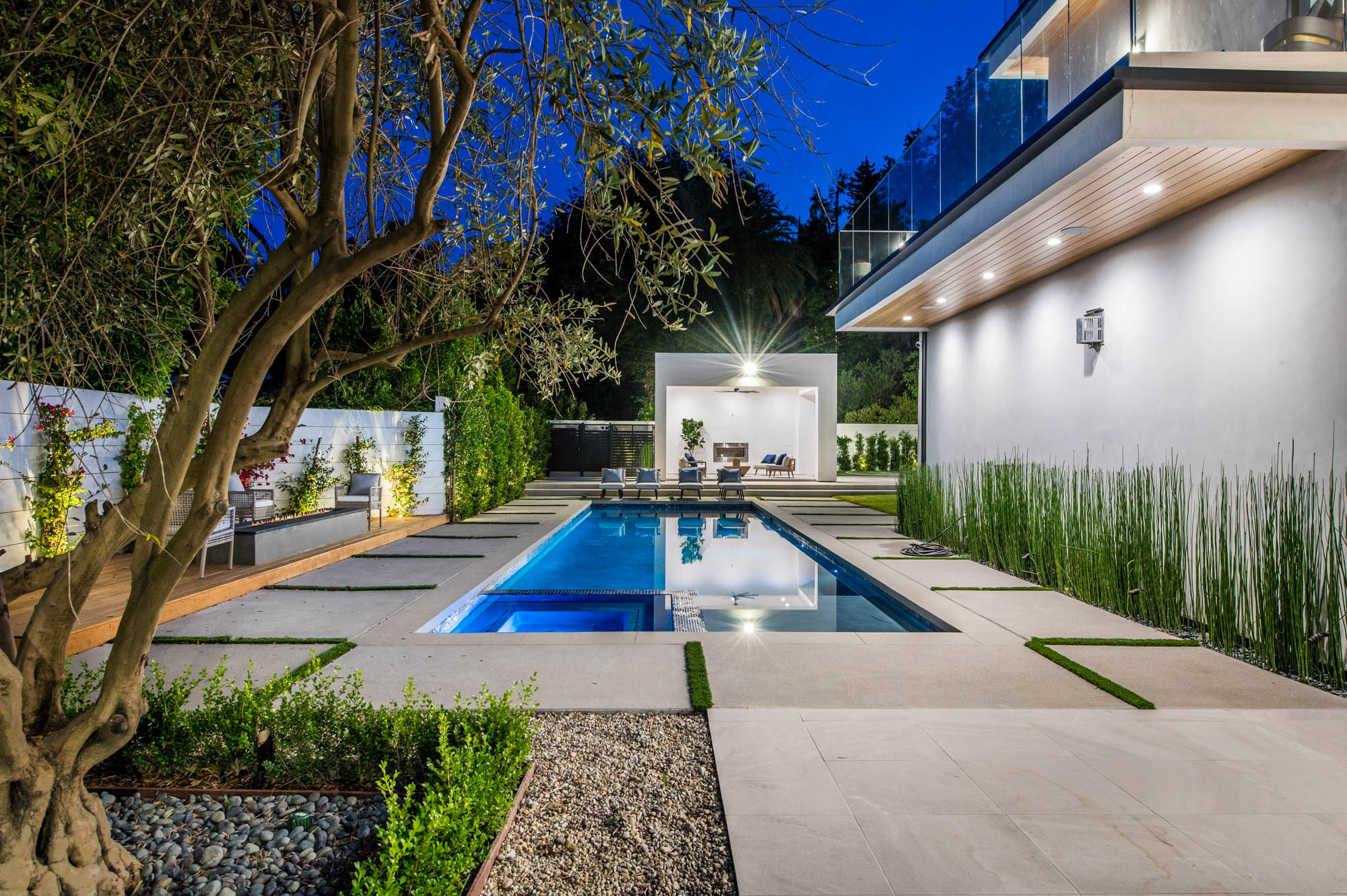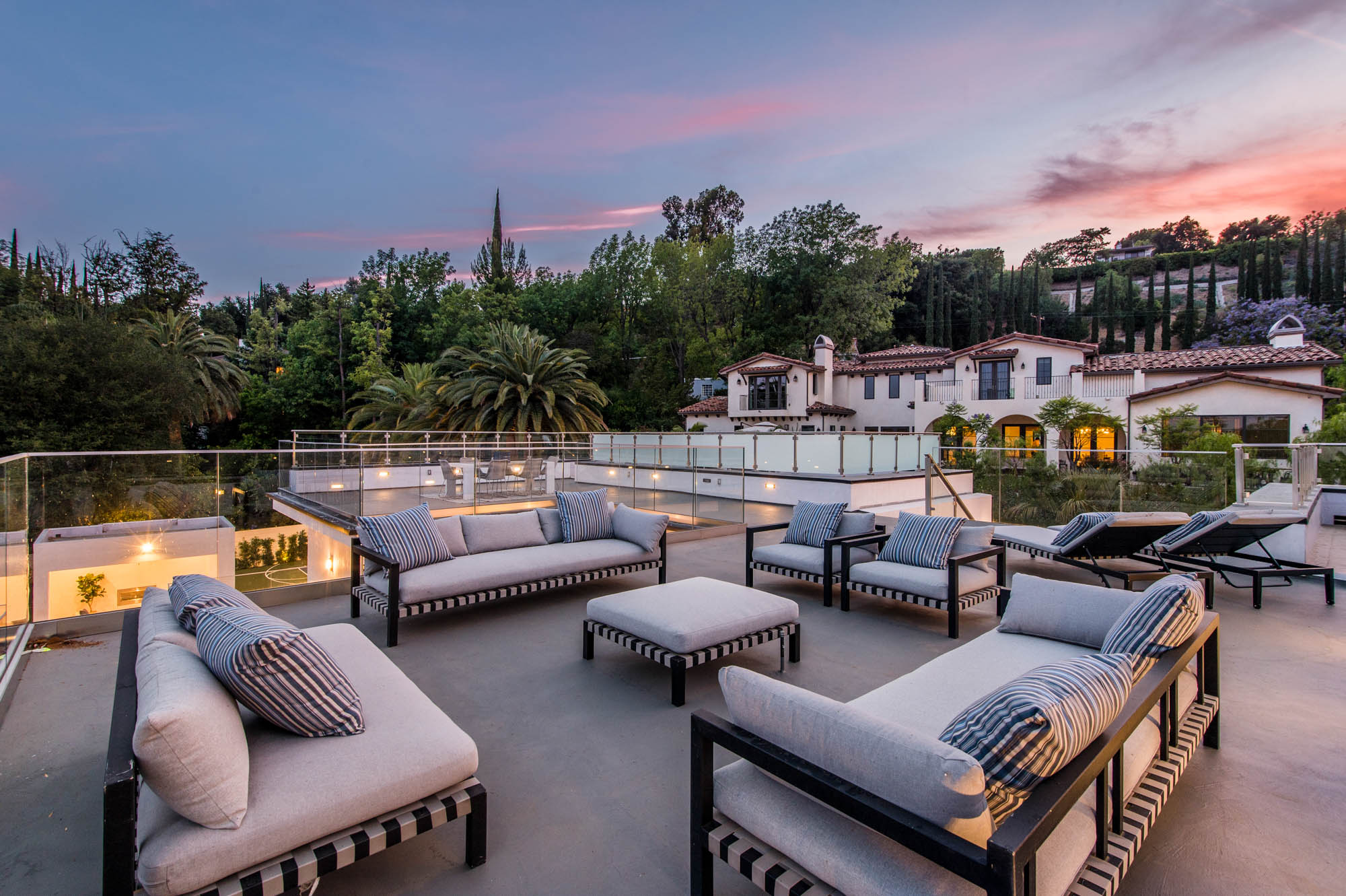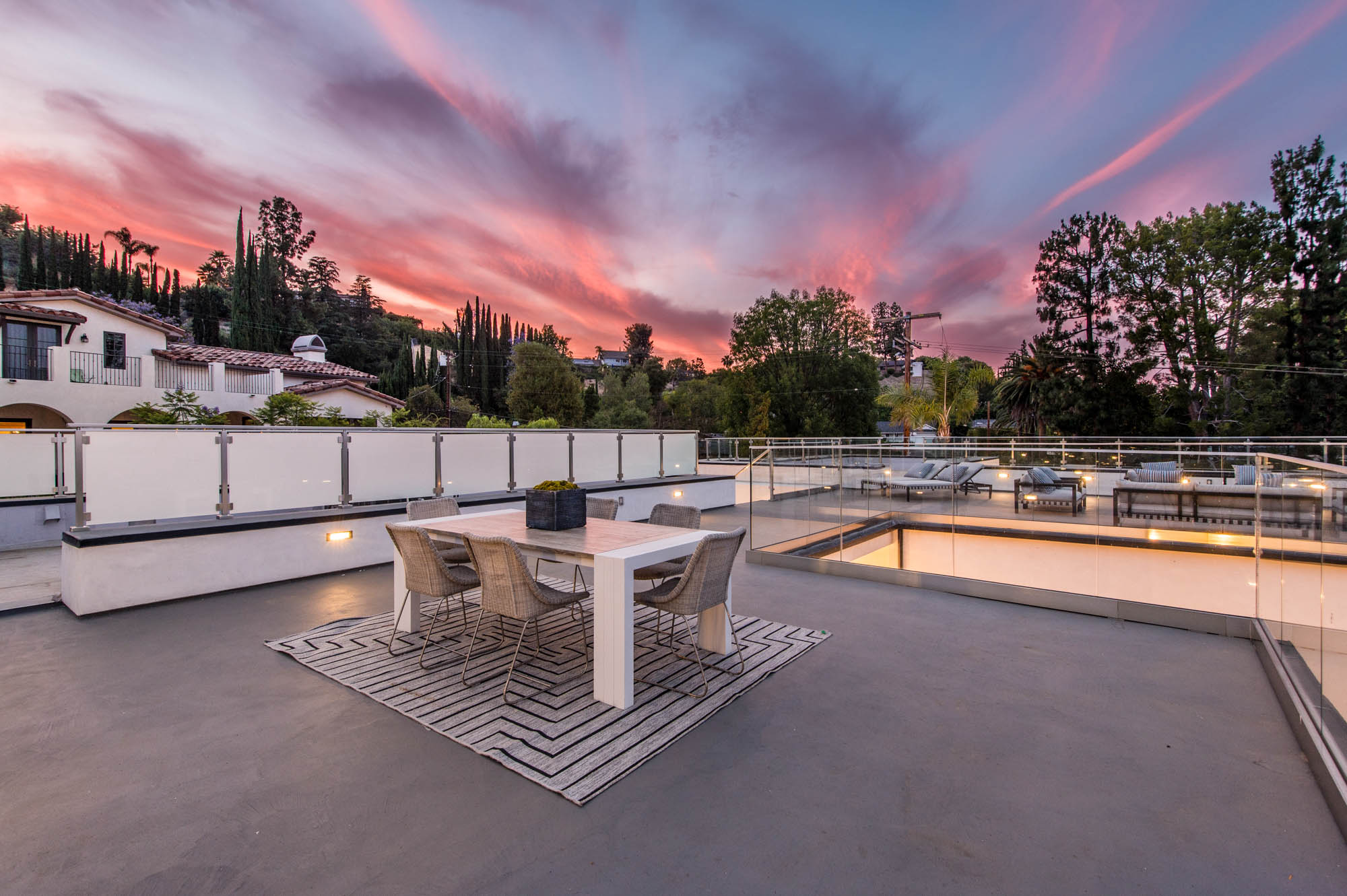 Situated on a Quiet Street South of the Blvd in Encino, this new construction contemporary modern estate is Encino's newest gem. Inside, soaring ceilings and wide glass staircase adorn a large main foyer, overlooking the expansive Entertainer's floor plan. An elegant formal dining room features a large wine cabinet flanked by a spacious interior courtyard. A sophisticated formal living room showcases a large linear fireplace, custom built-ins and large floor to ceiling pocket sliding doors that open up to an entertainer's dream backyard. The gourmet Chef's kitchen showcases quartz counters, stainless steel appliances, a large center island with an attached stone breakfast table adjacent to a second prep kitchen tucked away behind the dining room. Upstairs, the master suite features high ceilings, fireplace, sliding glass pocket doors, private balconies, and a spa-like master bath with large shower and soaking tub and spacious illuminated walk-in closet. A loft and three additional upstairs suites offer wonderful accommodations for family and friends. A spacious rooftop patio completes this property that provides you with a jetliner of the city and mountains. The Entertainer's backyard features a large sparkling pool and spa, pool cabana and pool house, sports court, numerous patio spaces complete with outdoor kitchen and 2 fire-pits. Additional conveniences include the Control4 smart home automation system. A luxurious lifestyle located near fine dining, shopping and more.