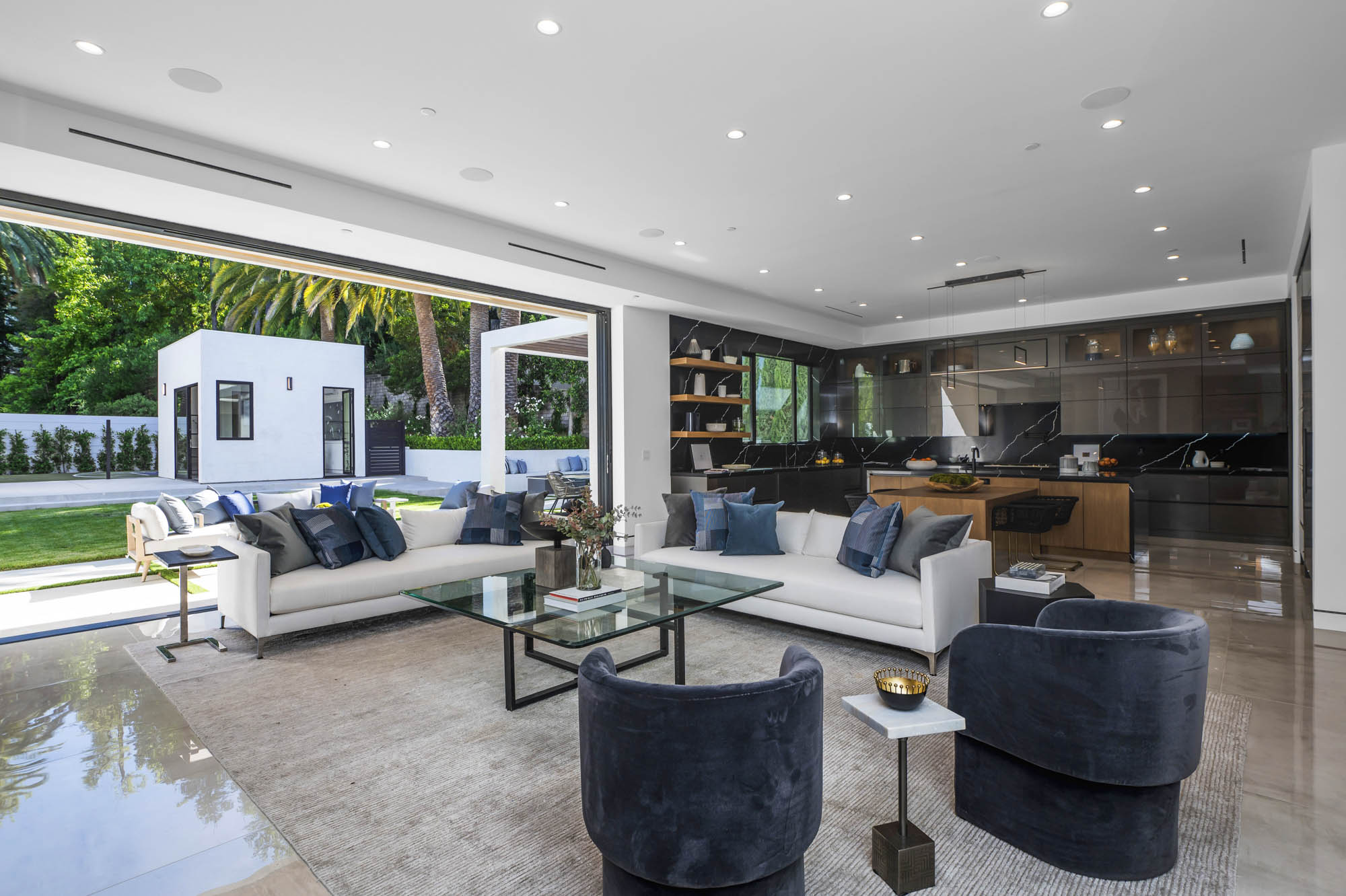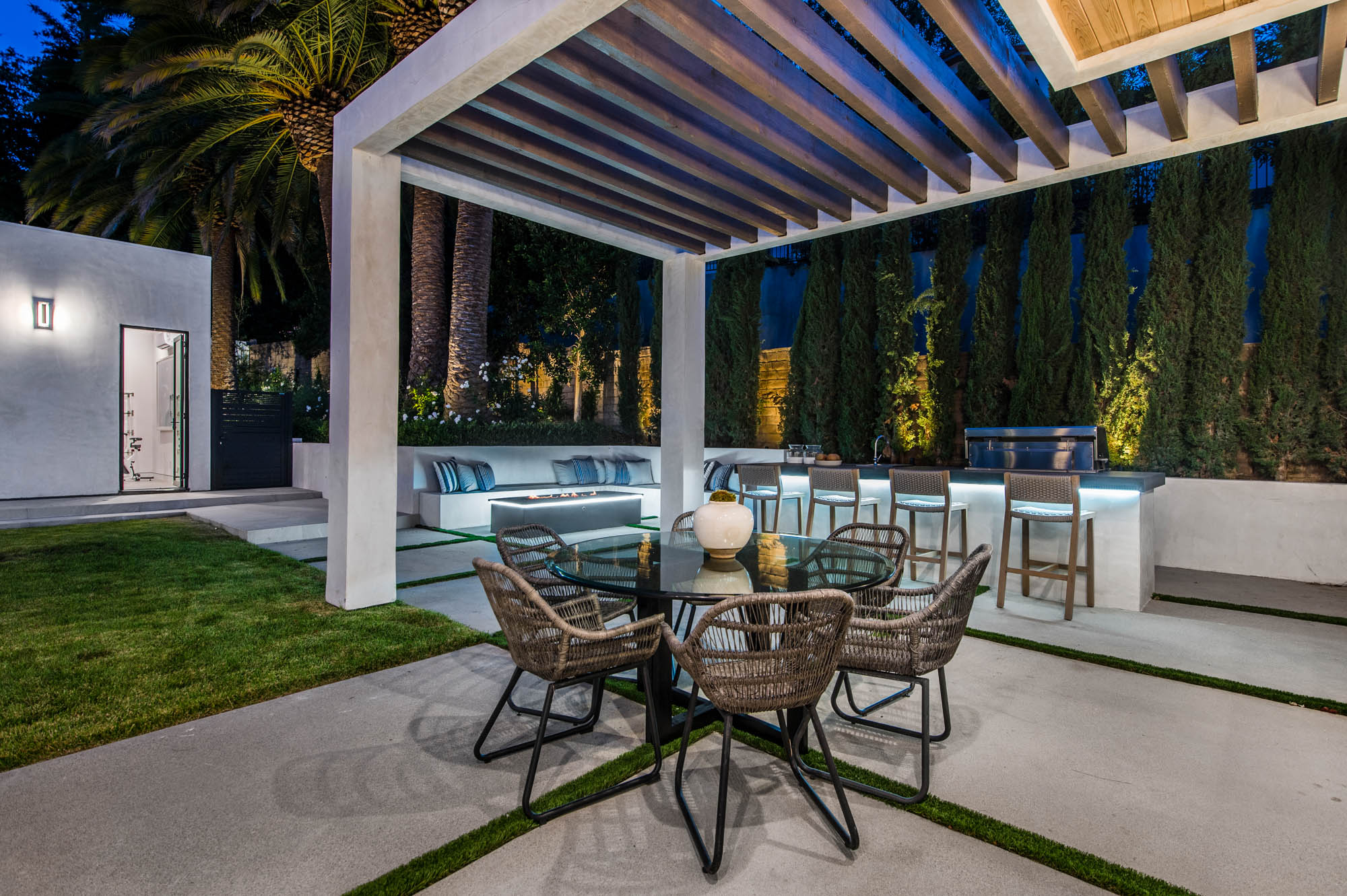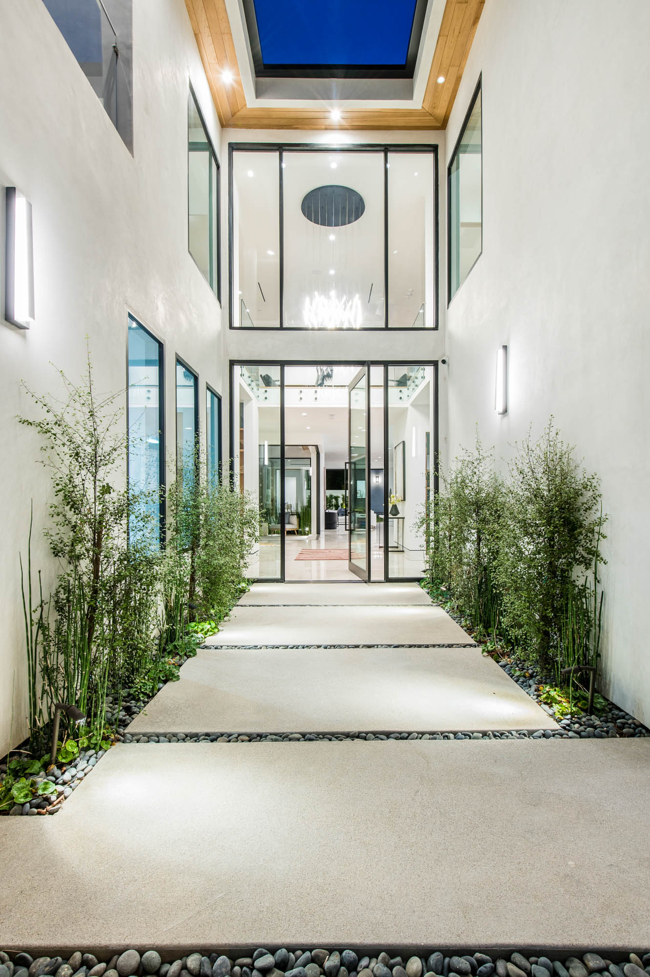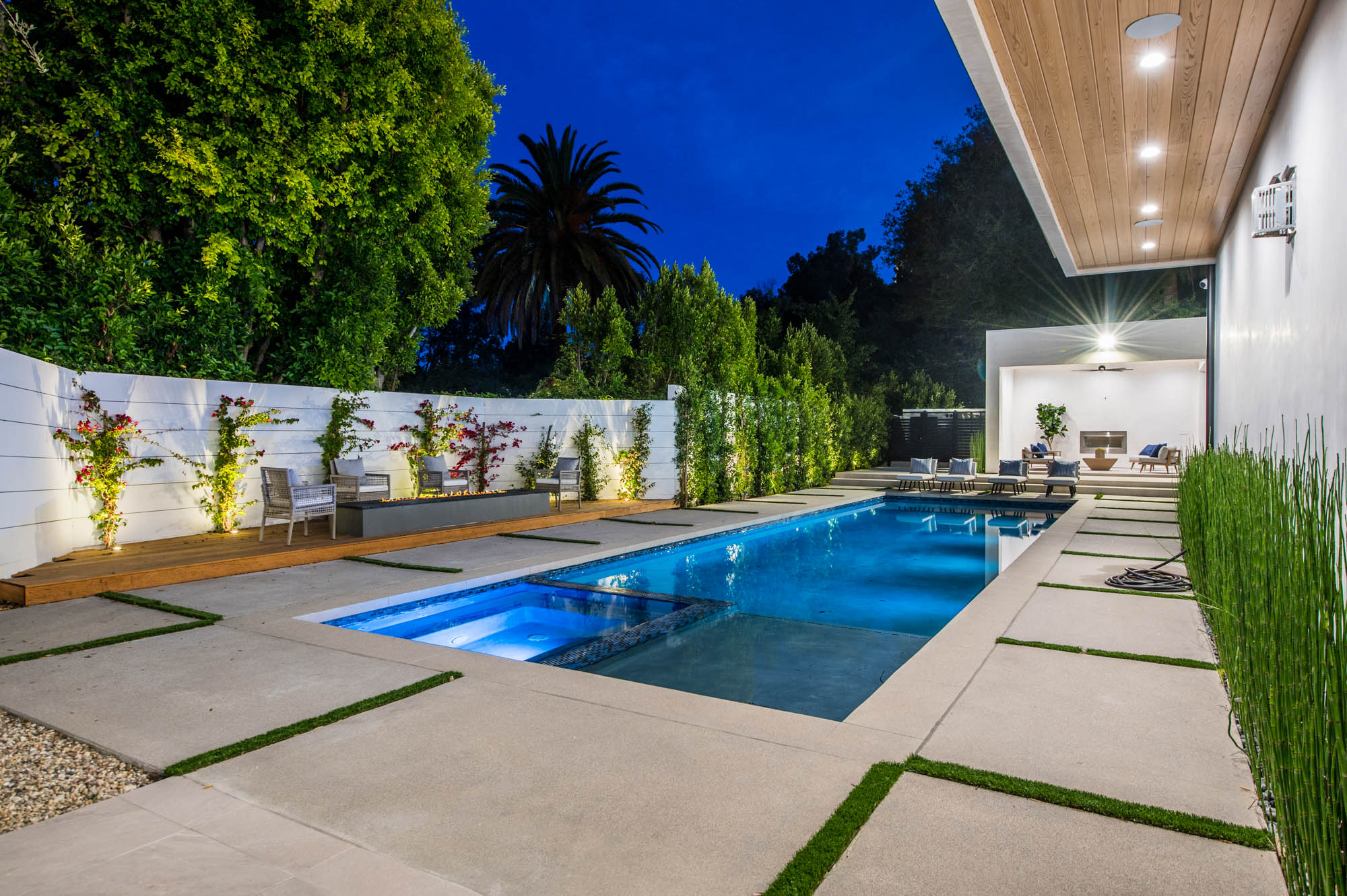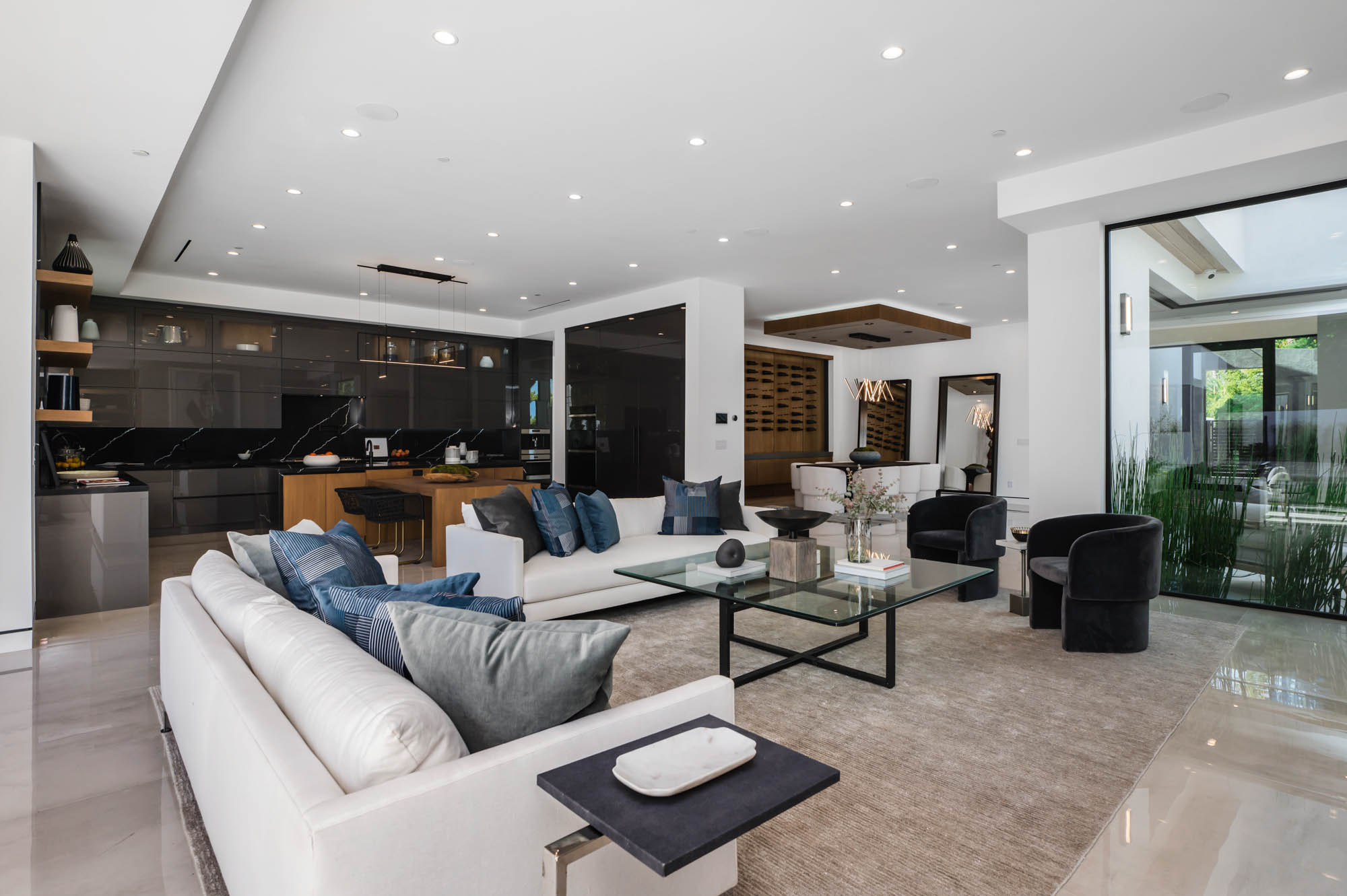 Situated on a Quiet Street South of the Blvd in Encino, this new construction contemporary modern estate is Encino's newest gem. Inside, soaring ceilings and wide glass staircase adorn a large main foyer, overlooking the expansive Entertainer's floor plan. An elegant formal dining room features a large wine cabinet flanked by a spacious interior courtyard. A sophisticated formal living room showcases a large linear fireplace, custom built-ins and large floor to ceiling pocket sliding doors that open up to an entertainer's dream backyard. The gourmet Chef's kitchen showcases quartz counters, stainless steel appliances, a large center island with an attached stone breakfast table adjacent to a second prep kitchen tucked away behind the dining room. Upstairs, the master suite features high ceilings, fireplace, sliding glass pocket doors, private balconies, and a spa-like master bath with large shower and soaking tub and spacious illuminated walk-in closet. A loft and three additional upstairs suites offer wonderful accommodations for family and friends. A spacious rooftop patio completes this property that provides you with a jetliner of the city and mountains. The Entertainer's backyard features a large sparkling pool and spa, pool cabana and pool house, sports court, numerous patio spaces complete with outdoor kitchen and 2 fire-pits. Additional conveniences include the Control4 smart home automation system. A luxurious lifestyle located near fine dining, shopping and more.