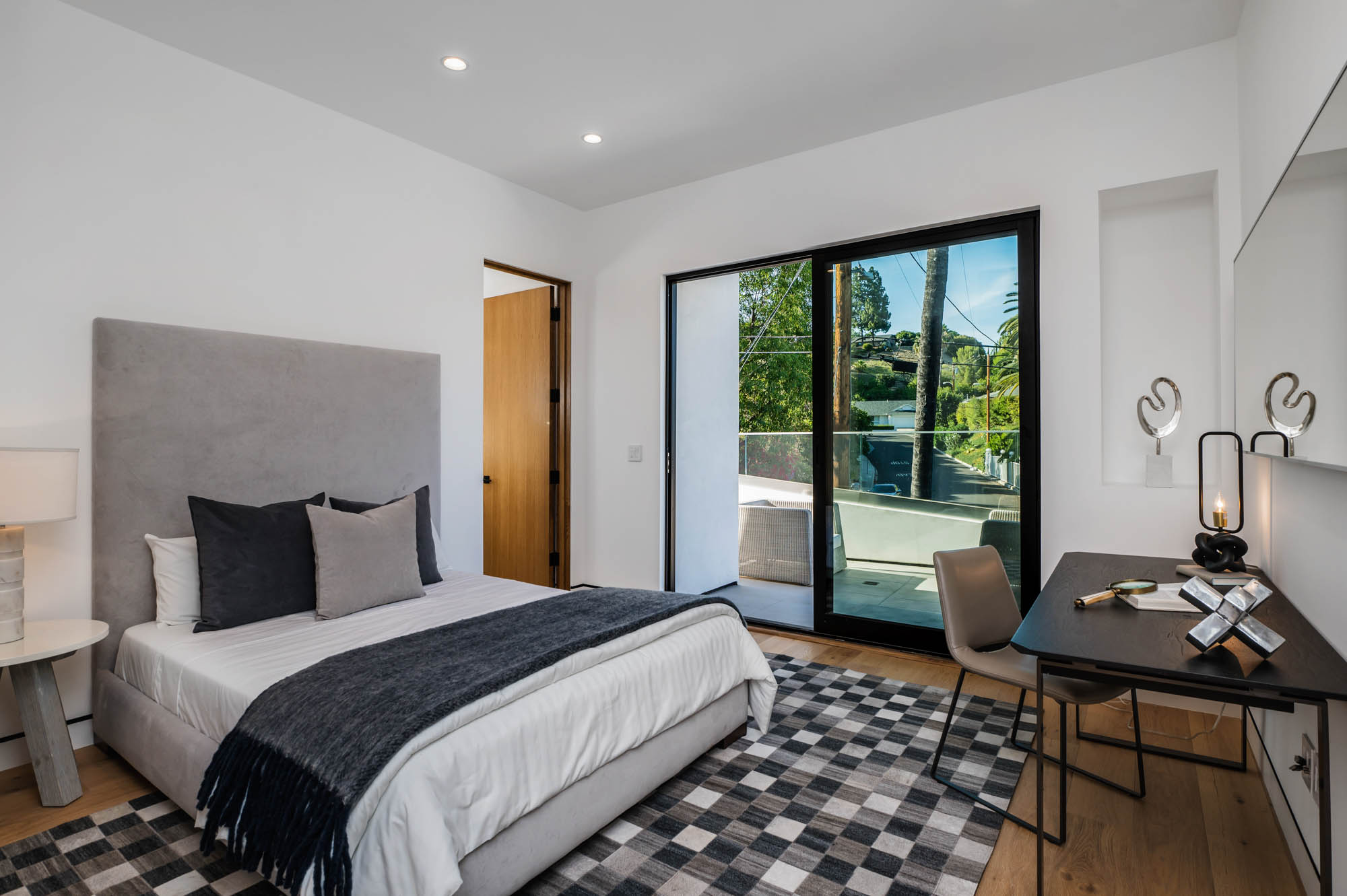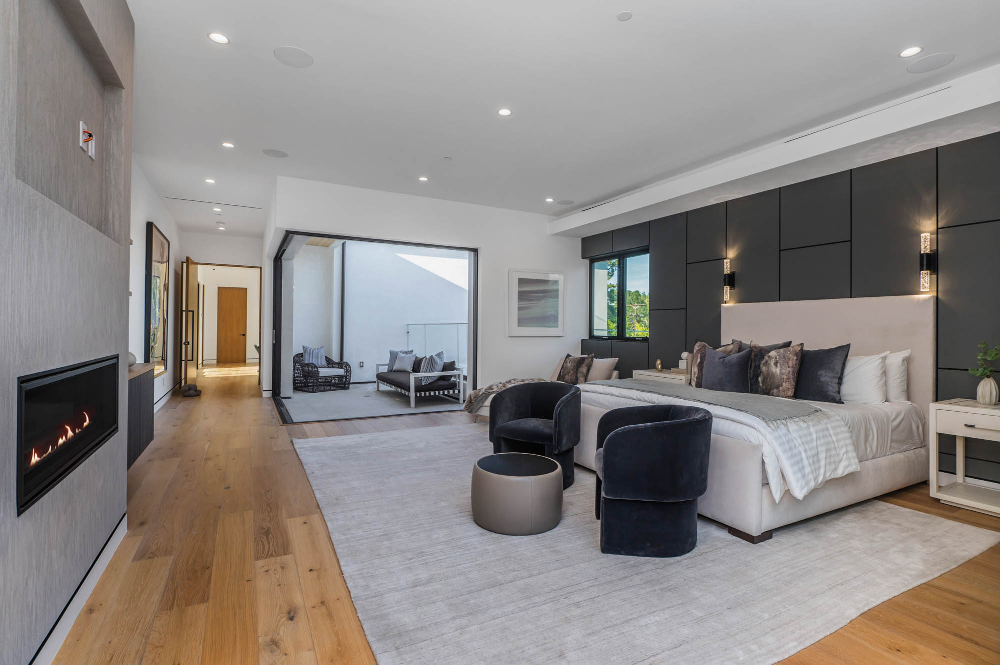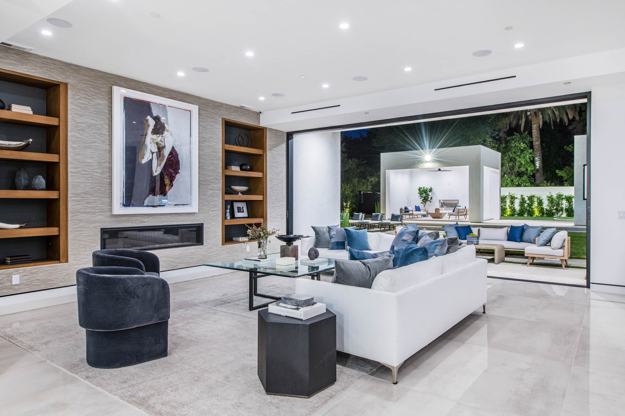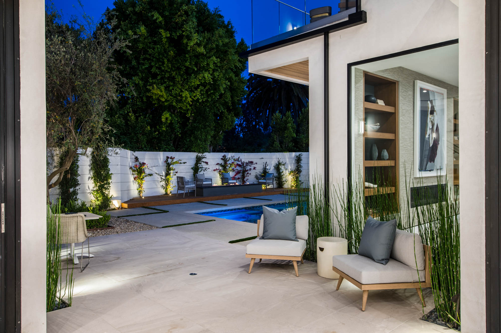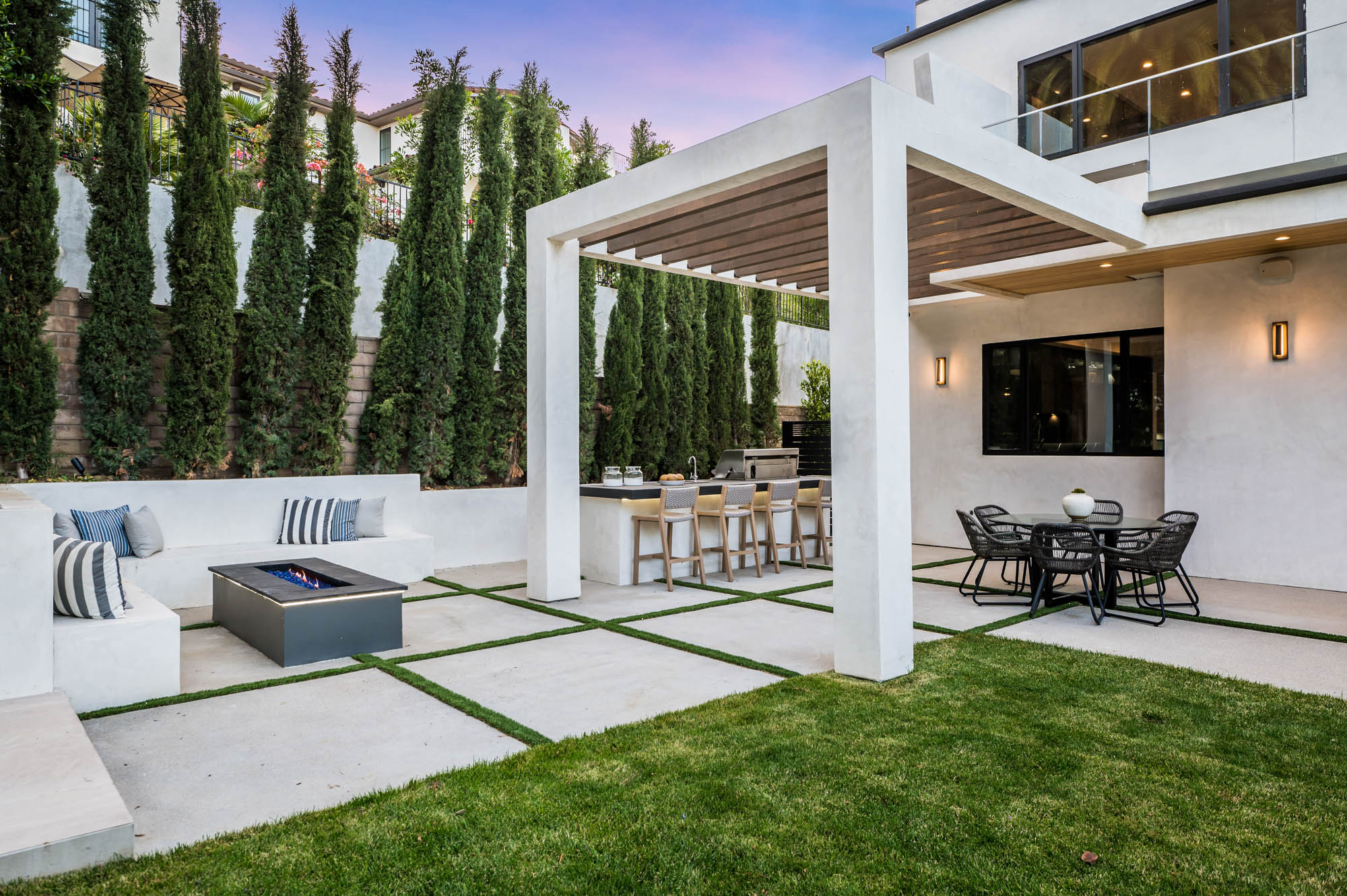 Situated on a Quiet Street South of the Blvd in Encino, this new construction contemporary modern estate is Encino's newest gem. Inside, soaring ceilings and wide glass staircase adorn a large main foyer, overlooking the expansive Entertainer's floor plan. An elegant formal dining room features a large wine cabinet flanked by a spacious interior courtyard. A sophisticated formal living room showcases a large linear fireplace, custom built-ins and large floor to ceiling pocket sliding doors that open up to an entertainer's dream backyard. The gourmet Chef's kitchen showcases quartz counters, stainless steel appliances, a large center island with an attached stone breakfast table adjacent to a second prep kitchen tucked away behind the dining room. Upstairs, the master suite features high ceilings, fireplace, sliding glass pocket doors, private balconies, and a spa-like master bath with large shower and soaking tub and spacious illuminated walk-in closet. A loft and three additional upstairs suites offer wonderful accommodations for family and friends. A spacious rooftop patio completes this property that provides you with a jetliner of the city and mountains. The Entertainer's backyard features a large sparkling pool and spa, pool cabana and pool house, sports court, numerous patio spaces complete with outdoor kitchen and 2 fire-pits. Additional conveniences include the Control4 smart home automation system. A luxurious lifestyle located near fine dining, shopping and more.