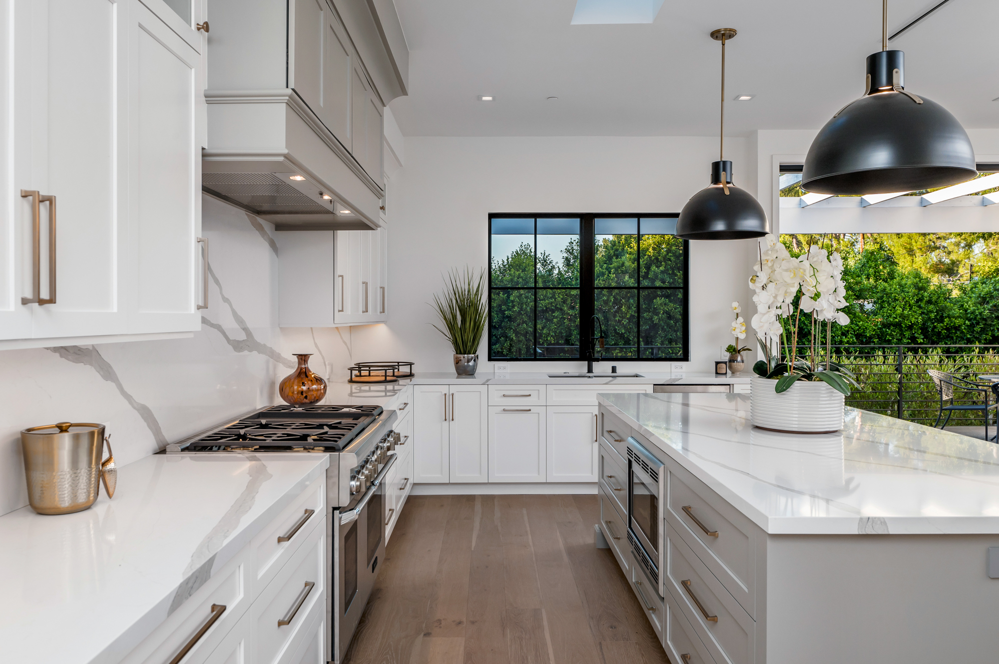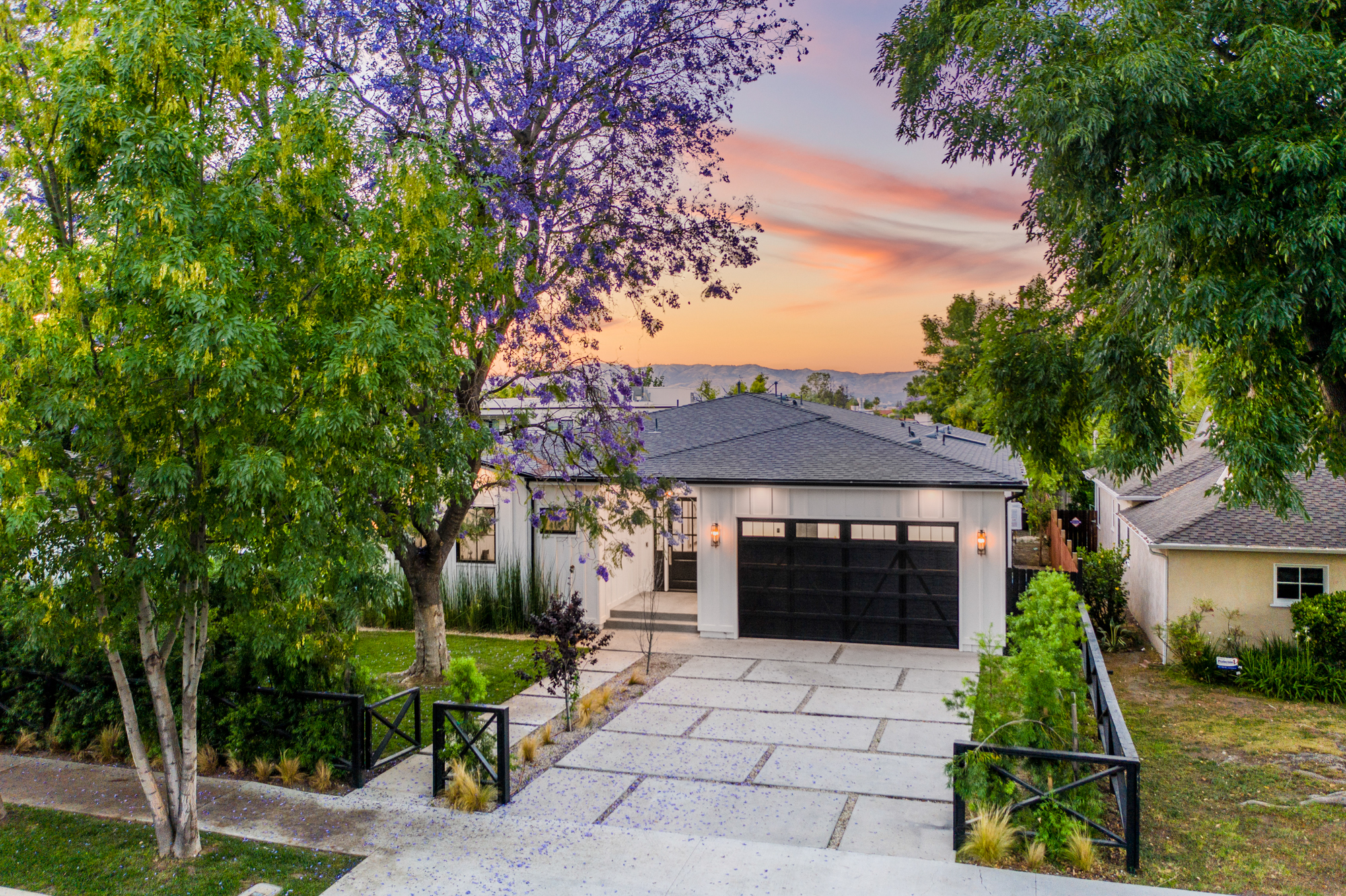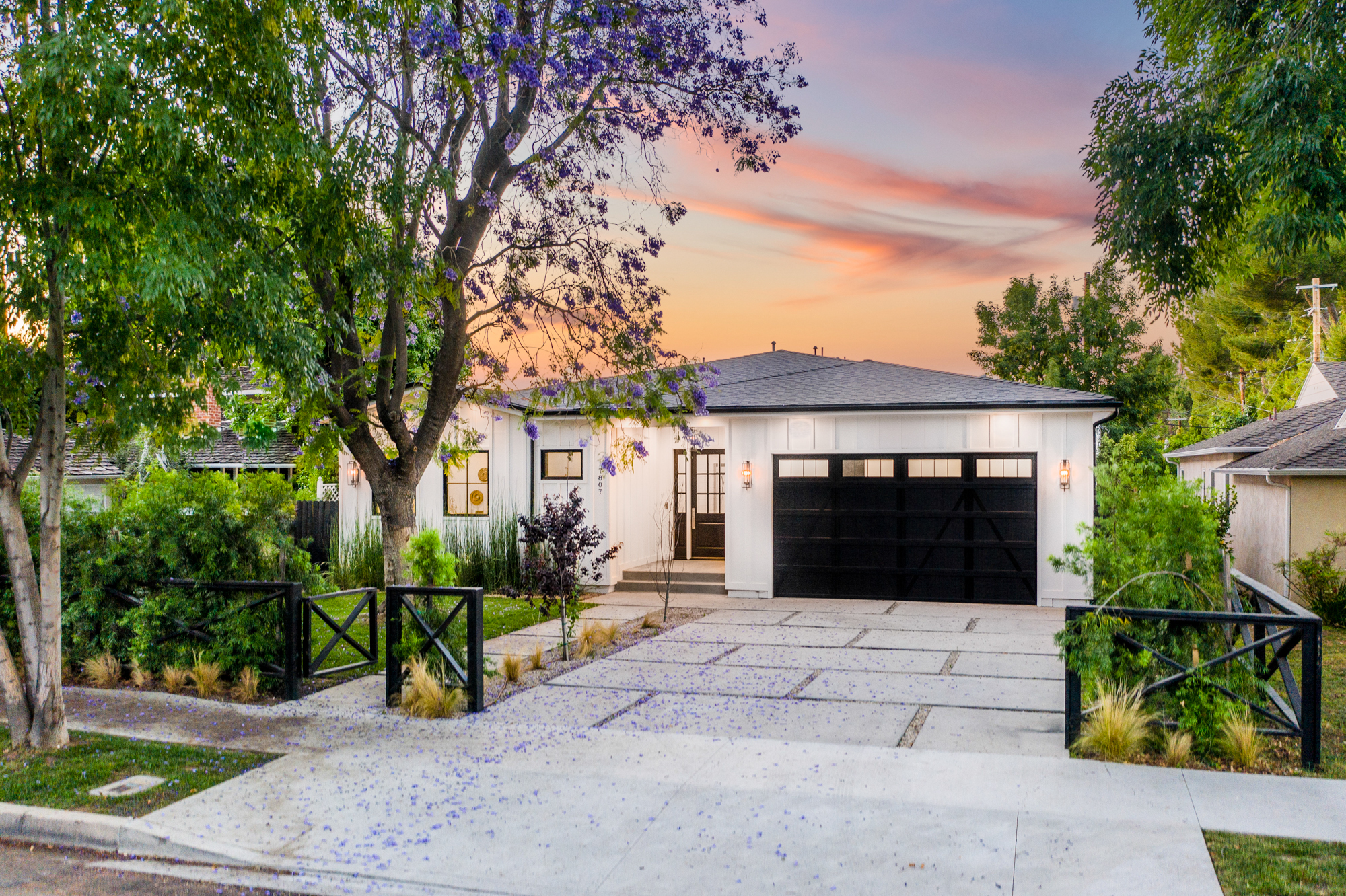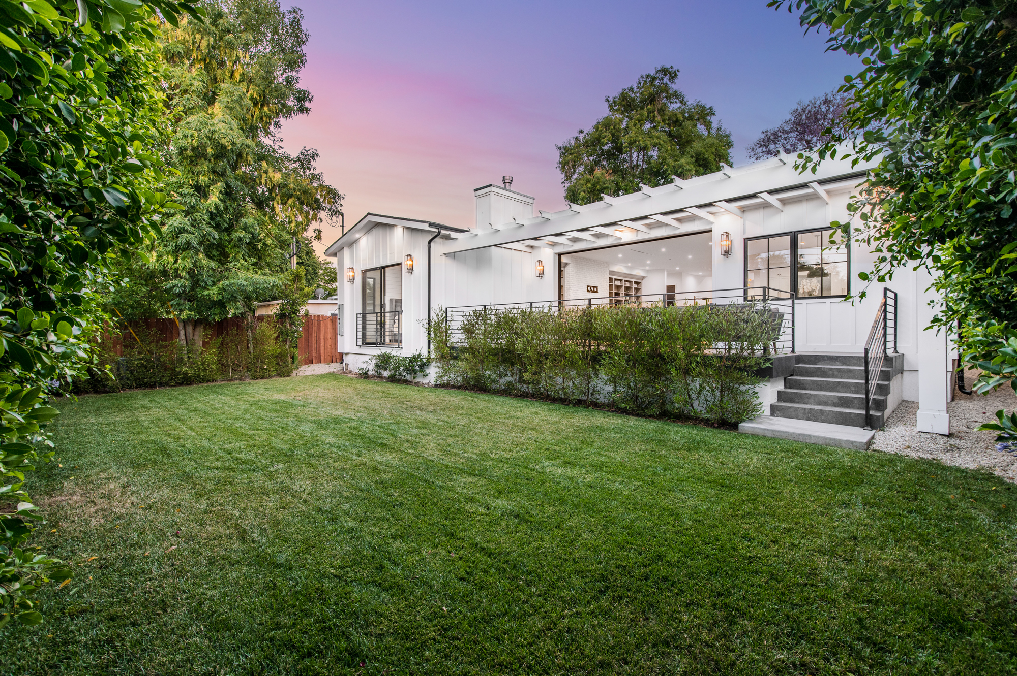 Welcome to your breathtaking single story completely re-developed modern farmhouse, located south of the boulevard. Rebuilt from the ground up with stunning curb appeal, a large grassy lawn and surrounding lush trees and plants invites you through this gorgeous 3,000+sqft home featuring an open floor plan, 10 foot high ceilings, custom built-ins, and high end finishes. Upon entrance, you are greeted with beautiful natural light pouring in from large fleetwood pocket doors. Premium light hardwood flooring leads you through the chic dining room and seamlessly flows to the glamorous kitchen and expansive living room with a fireplace. Chef’s kitchen features gleaming top of the line Thermador appliances and an incredible oversized quartz island with plenty of space for informal dining. Indoor/outdoor entertaining blends together beautifully from the living room to the patio deck which overlooks the lushly landscaped backyard; great for entertaining, playing, or lounging around. Enjoy a spacious master retreat showcasing a cozy fireplace, 8 foot sliding doors, 10-foot-high custom walk-in closet, spa like master bathroom with a soaking tub, oversized shower, complete with a remarkable sky light. Remaining outstanding bedrooms include tastefully designed en suites with custom finishes. Additional amenities include Nest thermostats, 2 car garage, laundry room, and more. Be the first to live in this charming newly developed home!