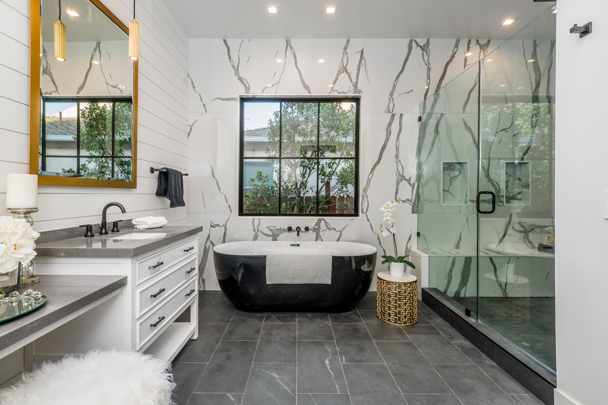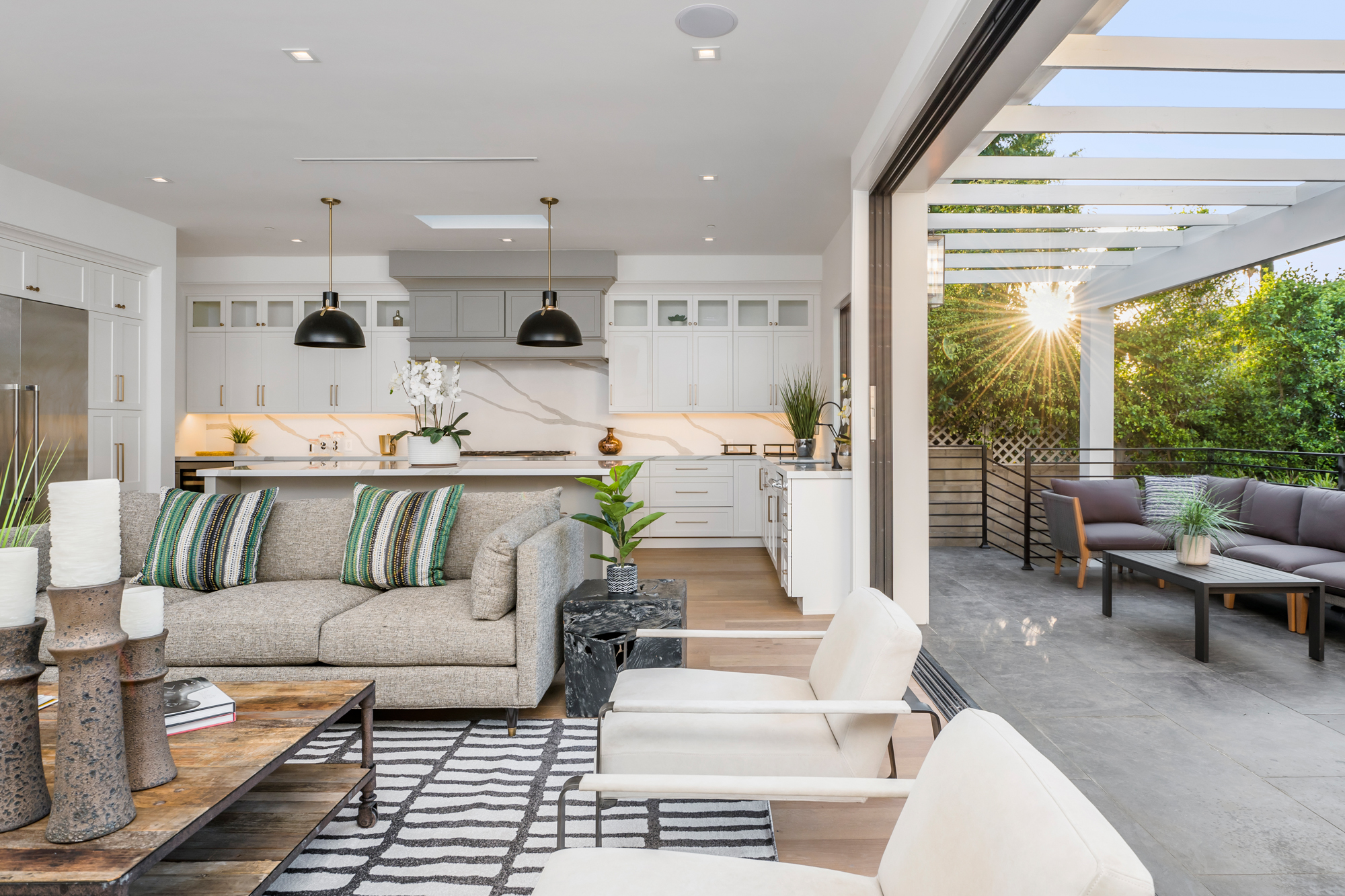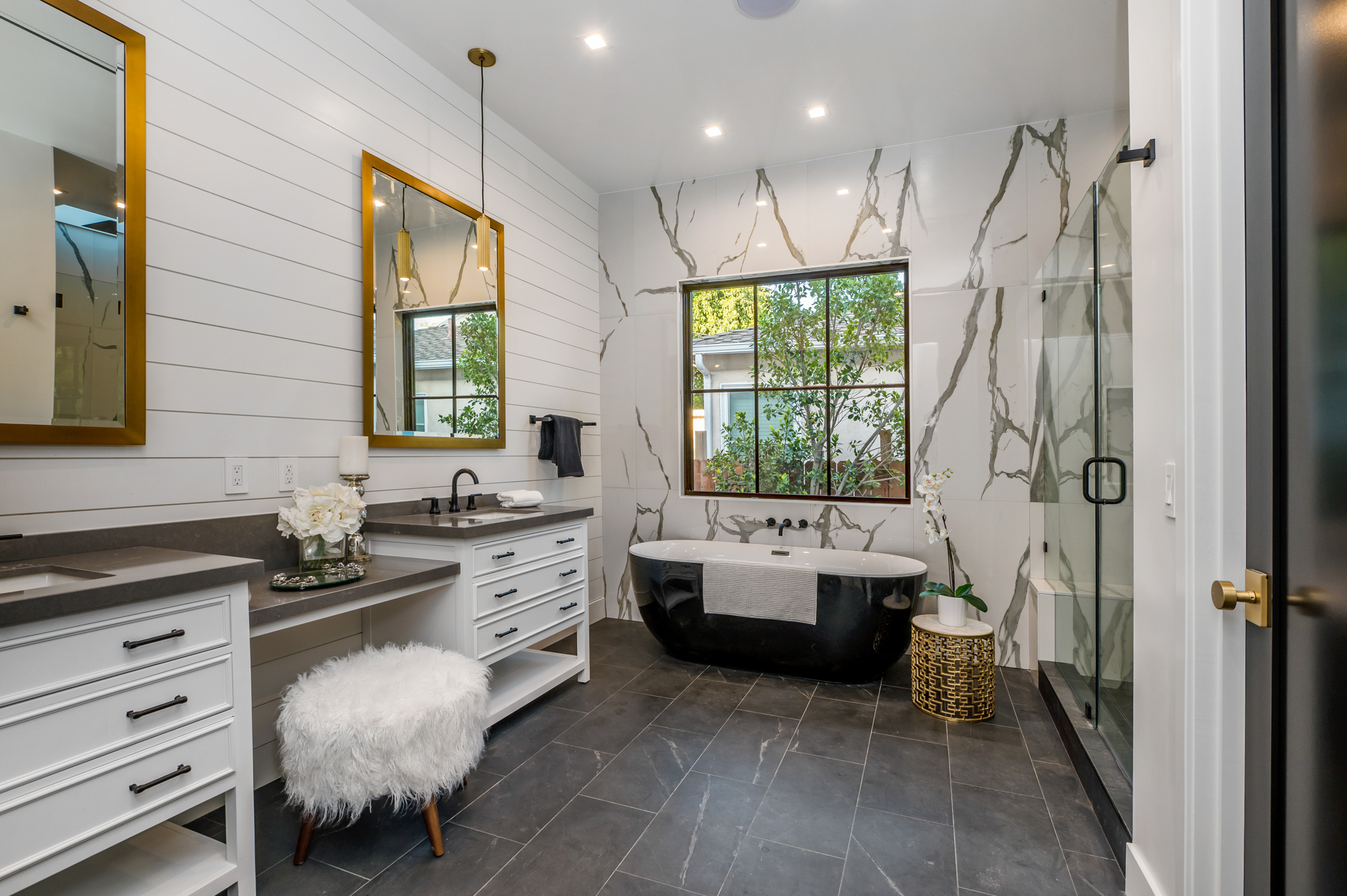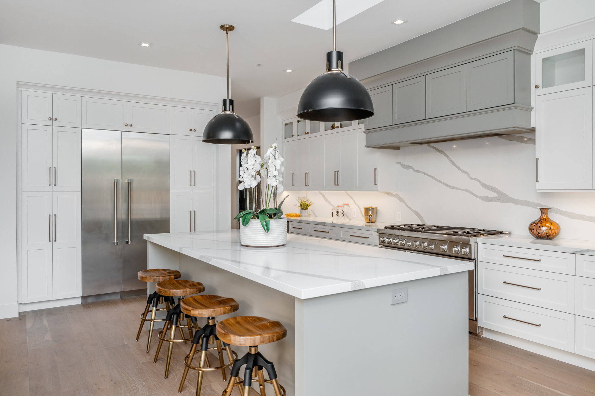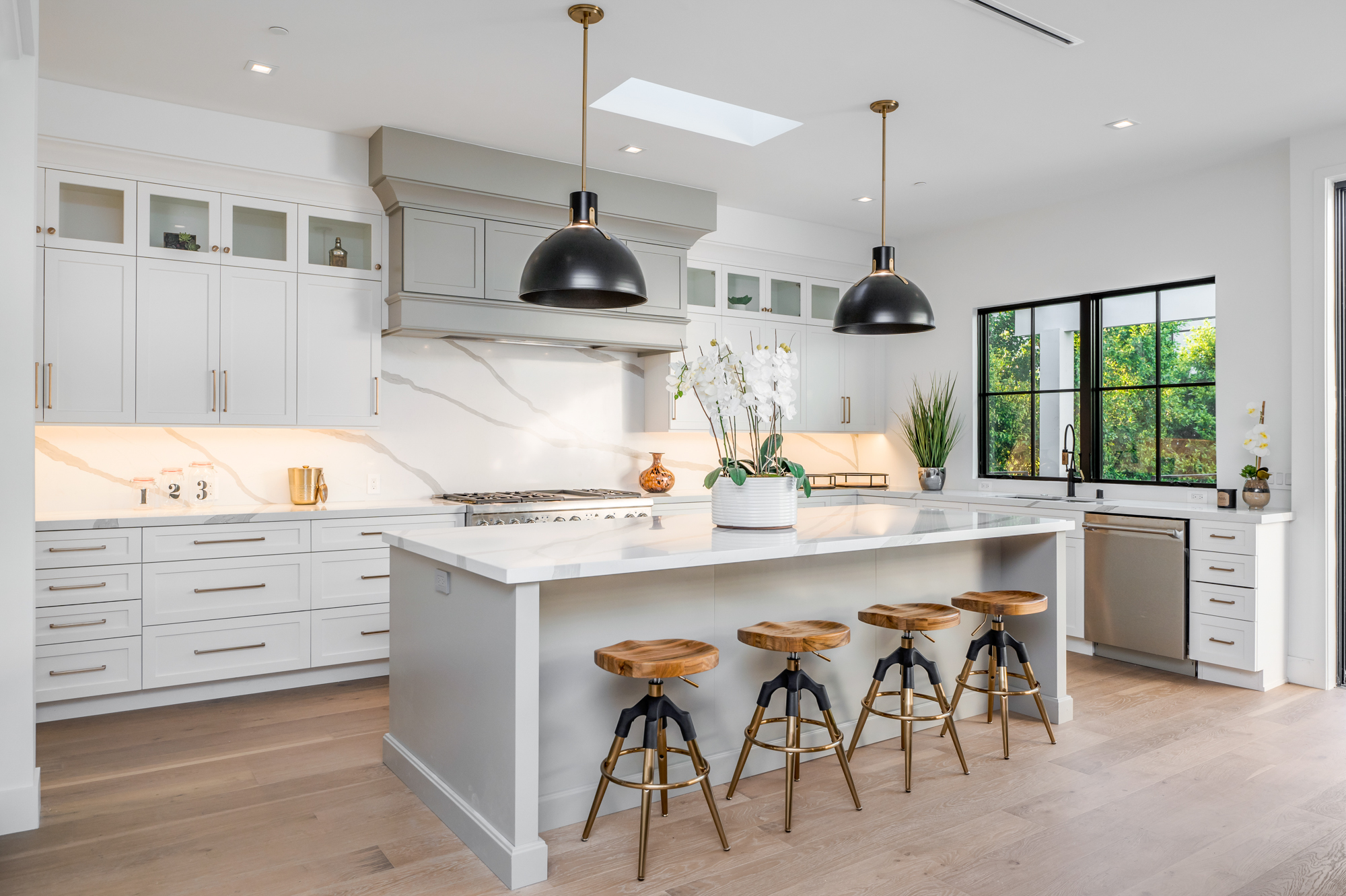 Welcome to your breathtaking single story completely re-developed modern farmhouse, located south of the boulevard. Rebuilt from the ground up with stunning curb appeal, a large grassy lawn and surrounding lush trees and plants invites you through this gorgeous 3,000+sqft home featuring an open floor plan, 10 foot high ceilings, custom built-ins, and high end finishes. Upon entrance, you are greeted with beautiful natural light pouring in from large fleetwood pocket doors. Premium light hardwood flooring leads you through the chic dining room and seamlessly flows to the glamorous kitchen and expansive living room with a fireplace. Chef’s kitchen features gleaming top of the line Thermador appliances and an incredible oversized quartz island with plenty of space for informal dining. Indoor/outdoor entertaining blends together beautifully from the living room to the patio deck which overlooks the lushly landscaped backyard; great for entertaining, playing, or lounging around. Enjoy a spacious master retreat showcasing a cozy fireplace, 8 foot sliding doors, 10-foot-high custom walk-in closet, spa like master bathroom with a soaking tub, oversized shower, complete with a remarkable sky light. Remaining outstanding bedrooms include tastefully designed en suites with custom finishes. Additional amenities include Nest thermostats, 2 car garage, laundry room, and more. Be the first to live in this charming newly developed home!